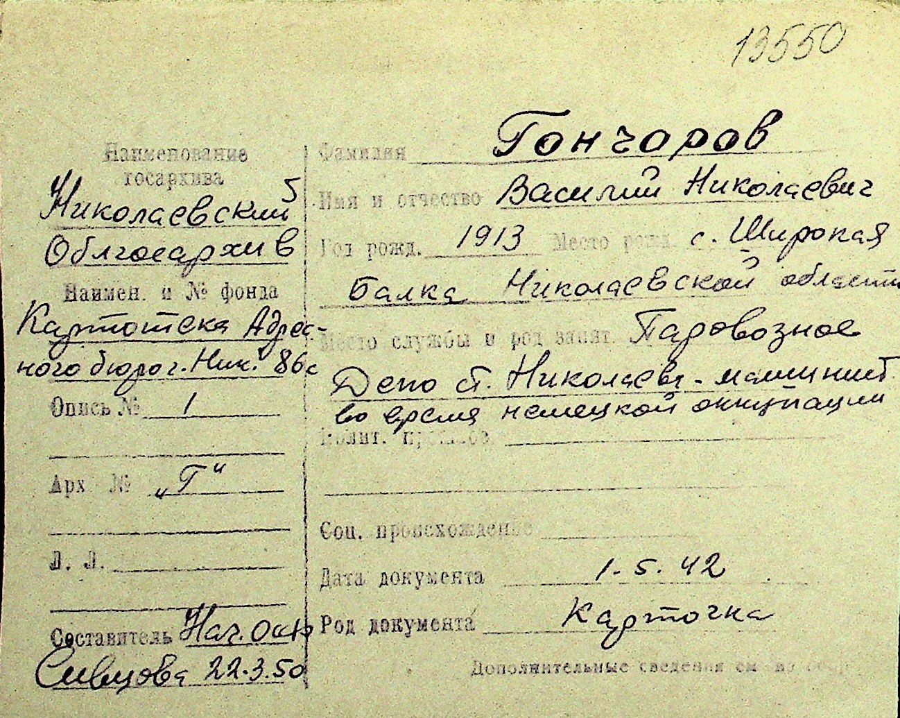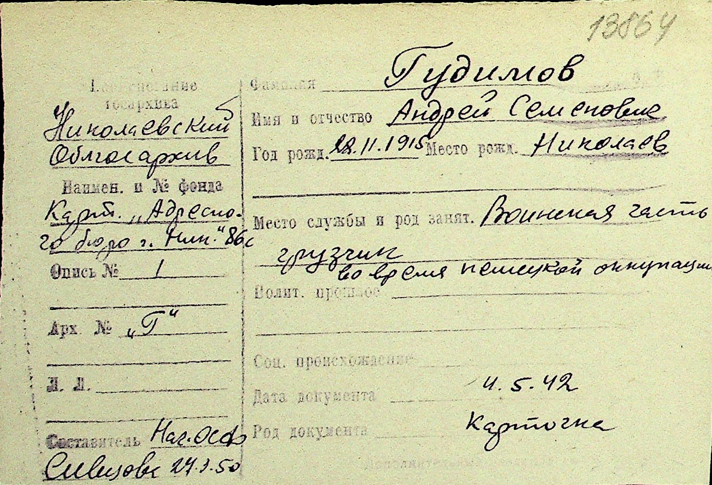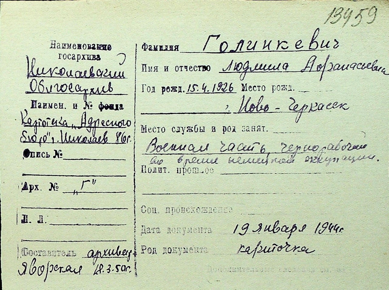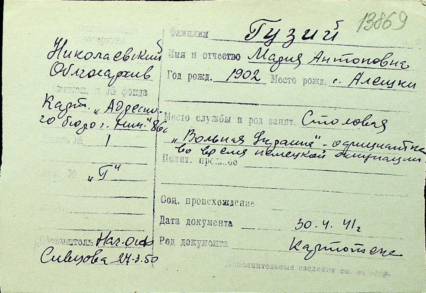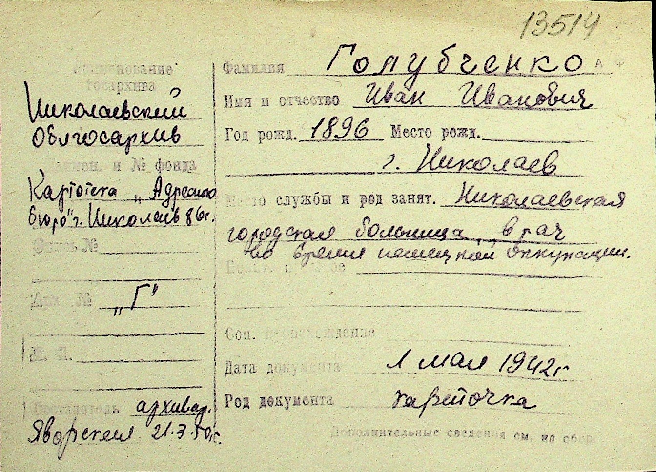 • • Перелік карток до фонду № Н-1016