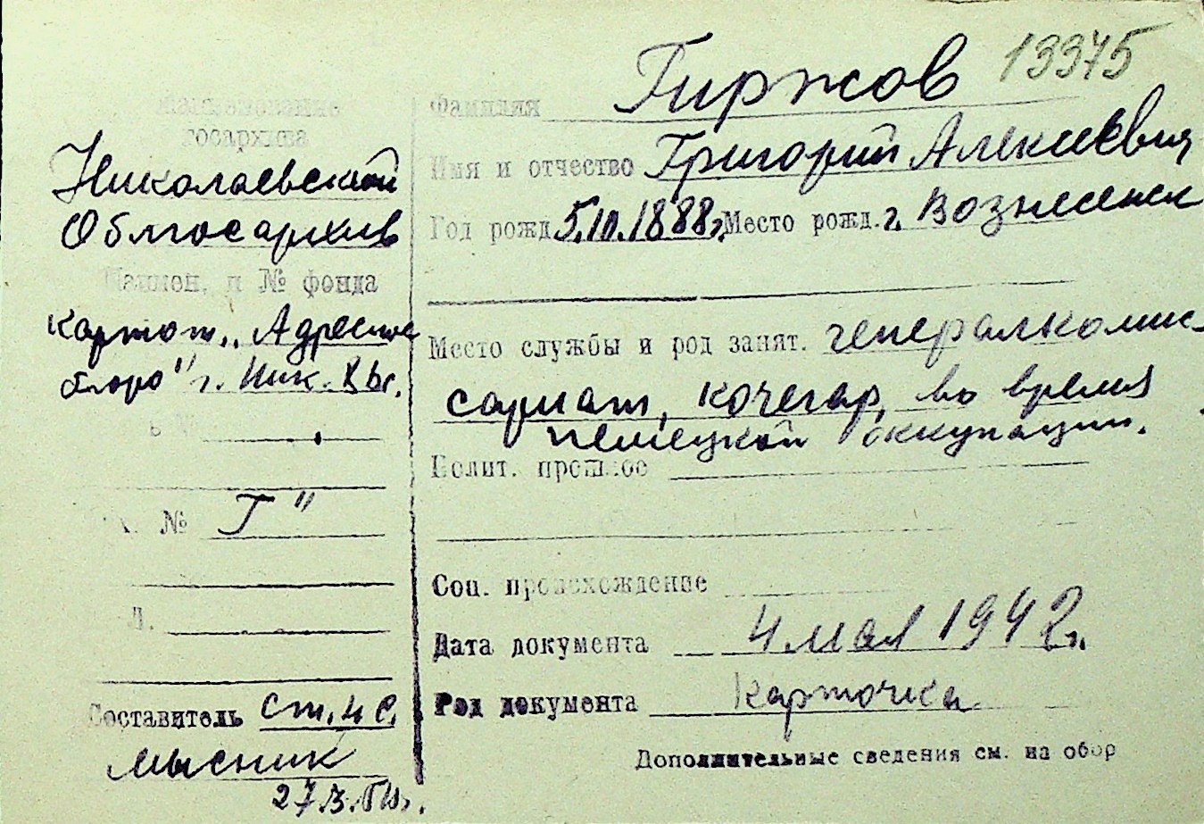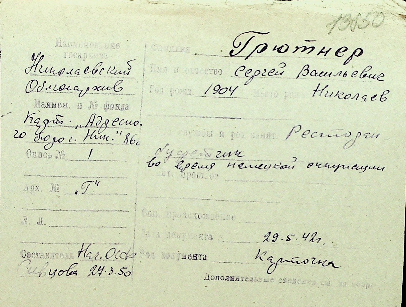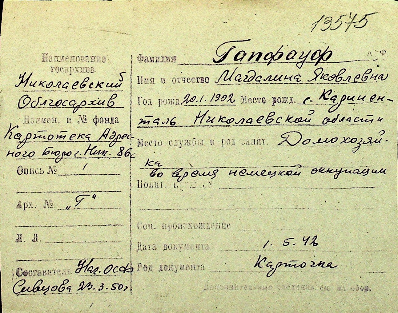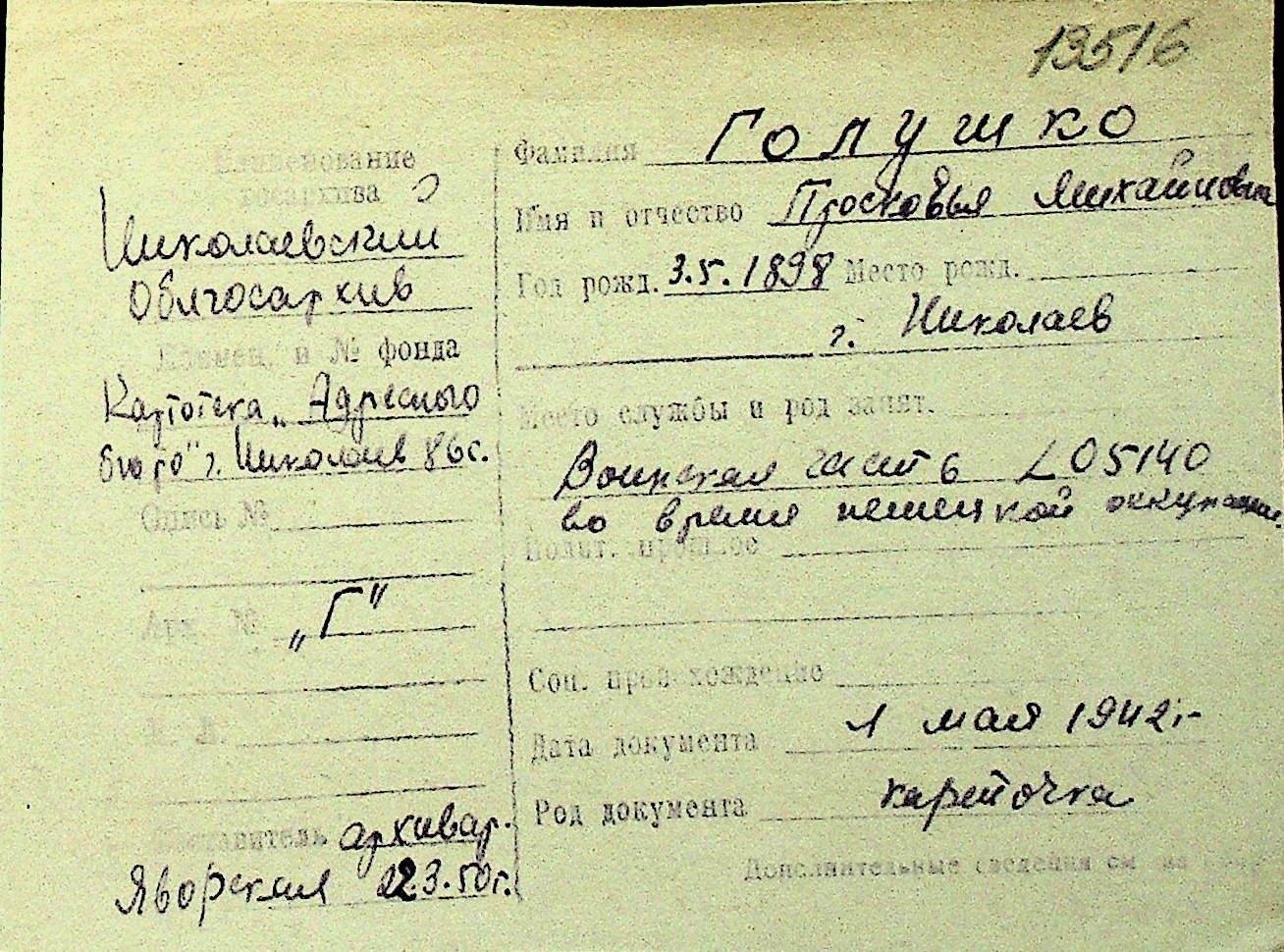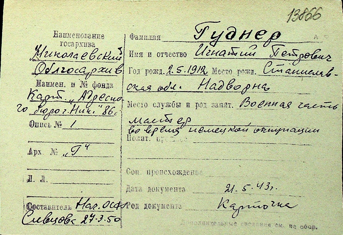 • • Перелік карток до фонду № Н-1016