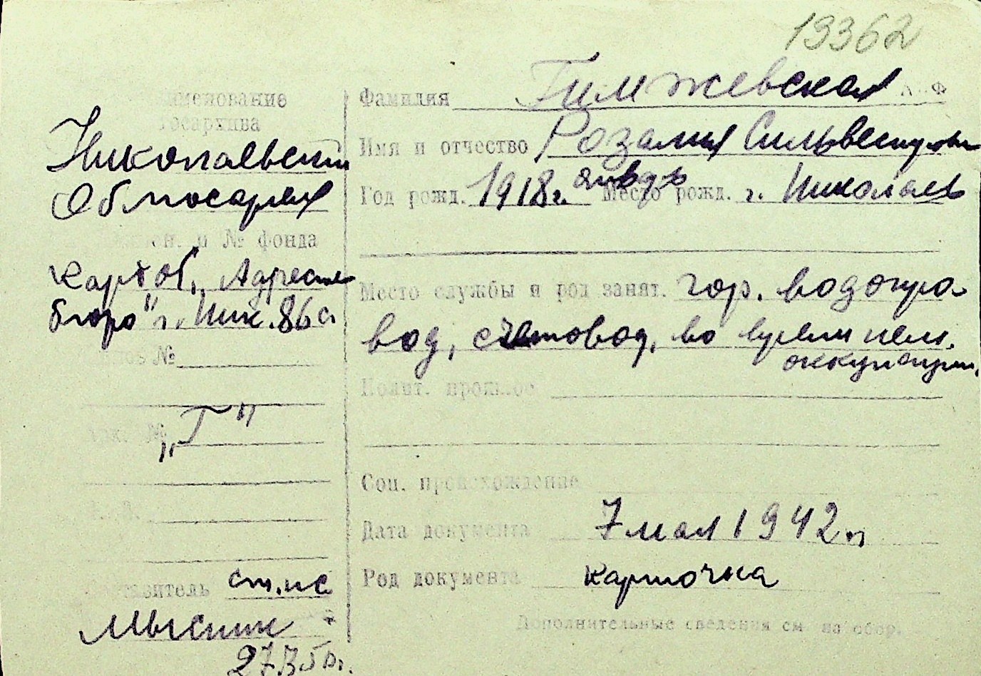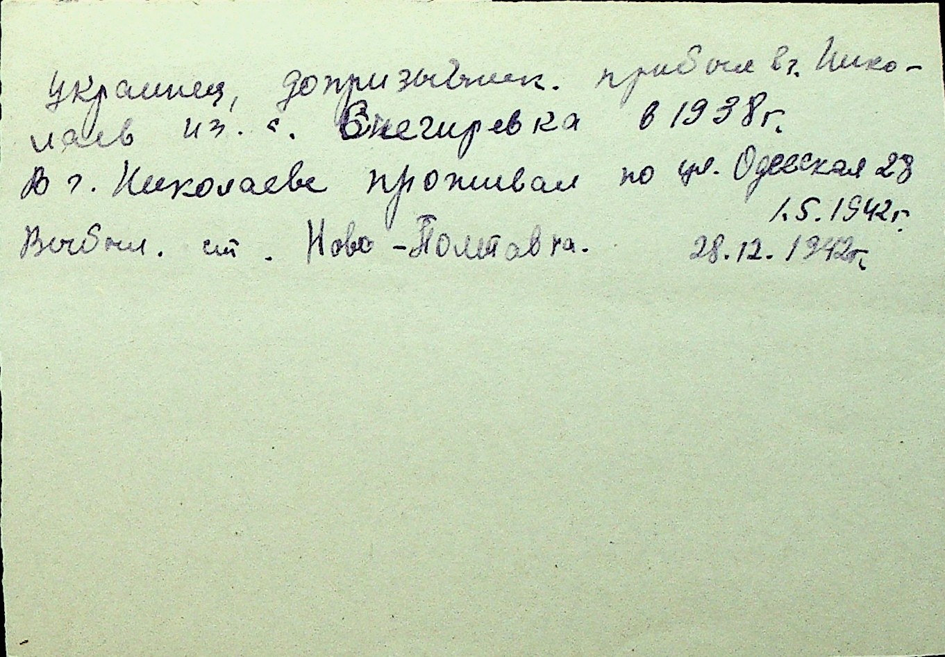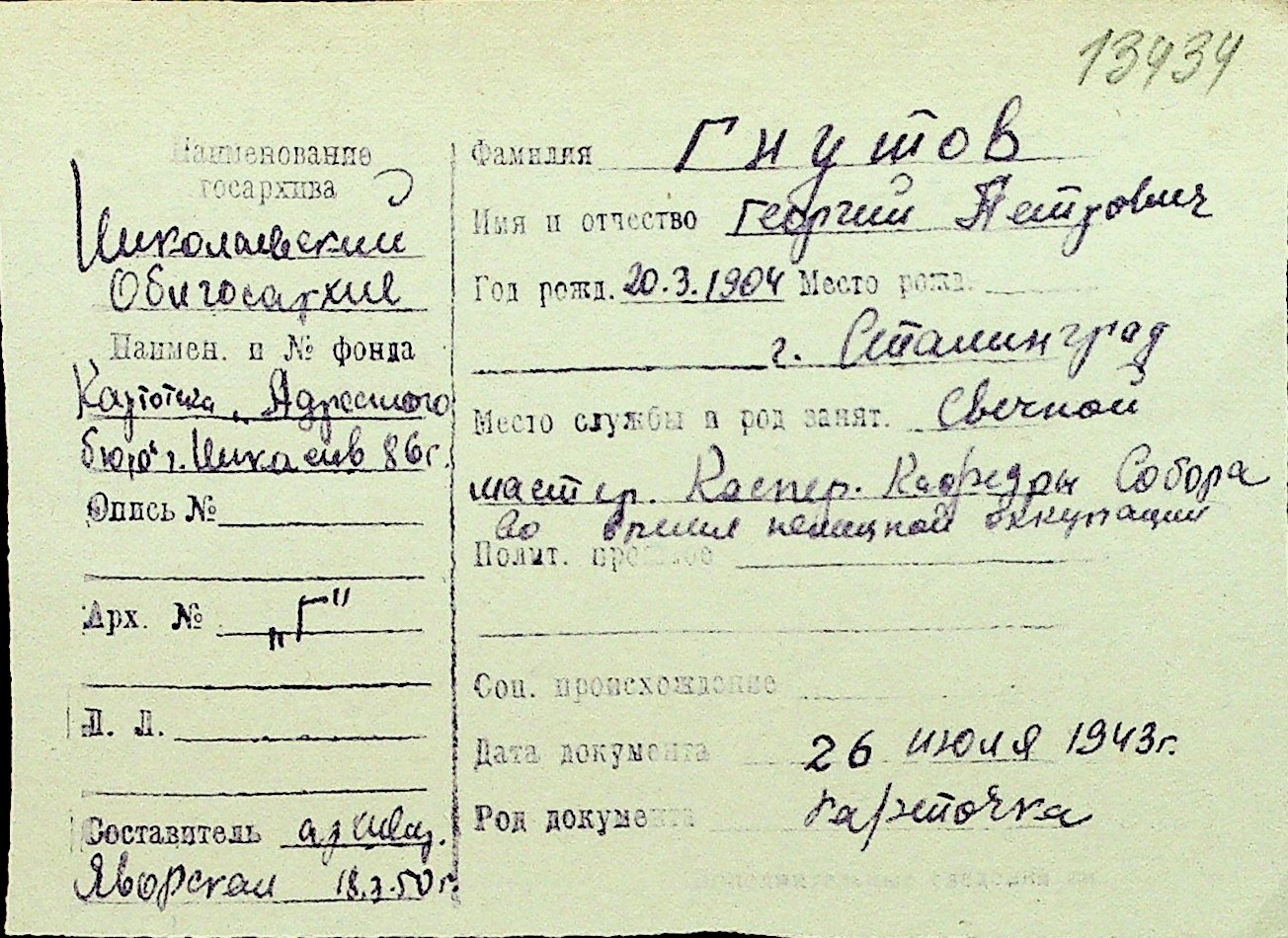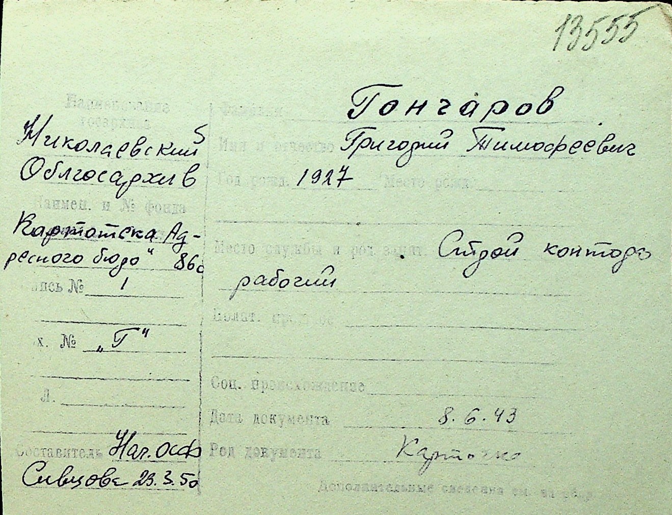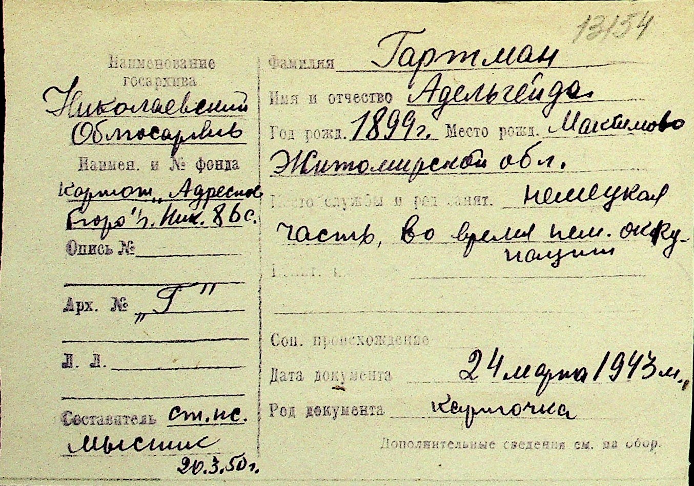 • • Перелік карток до фонду № Н-1016