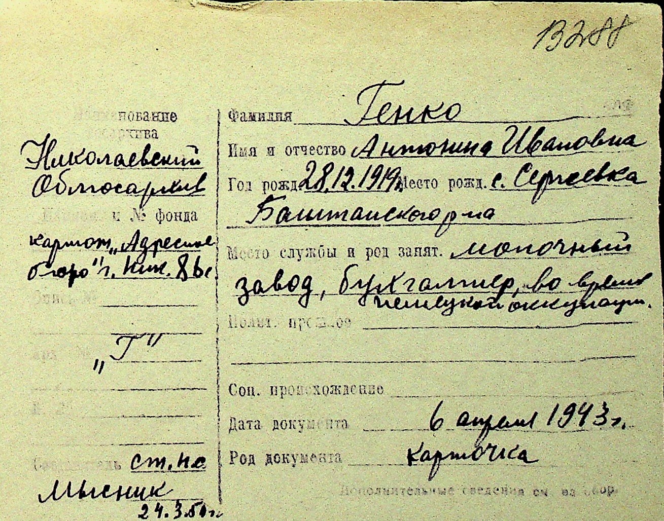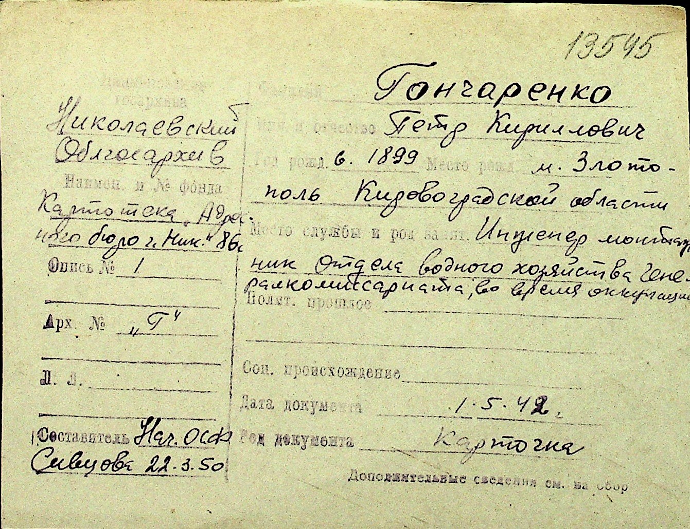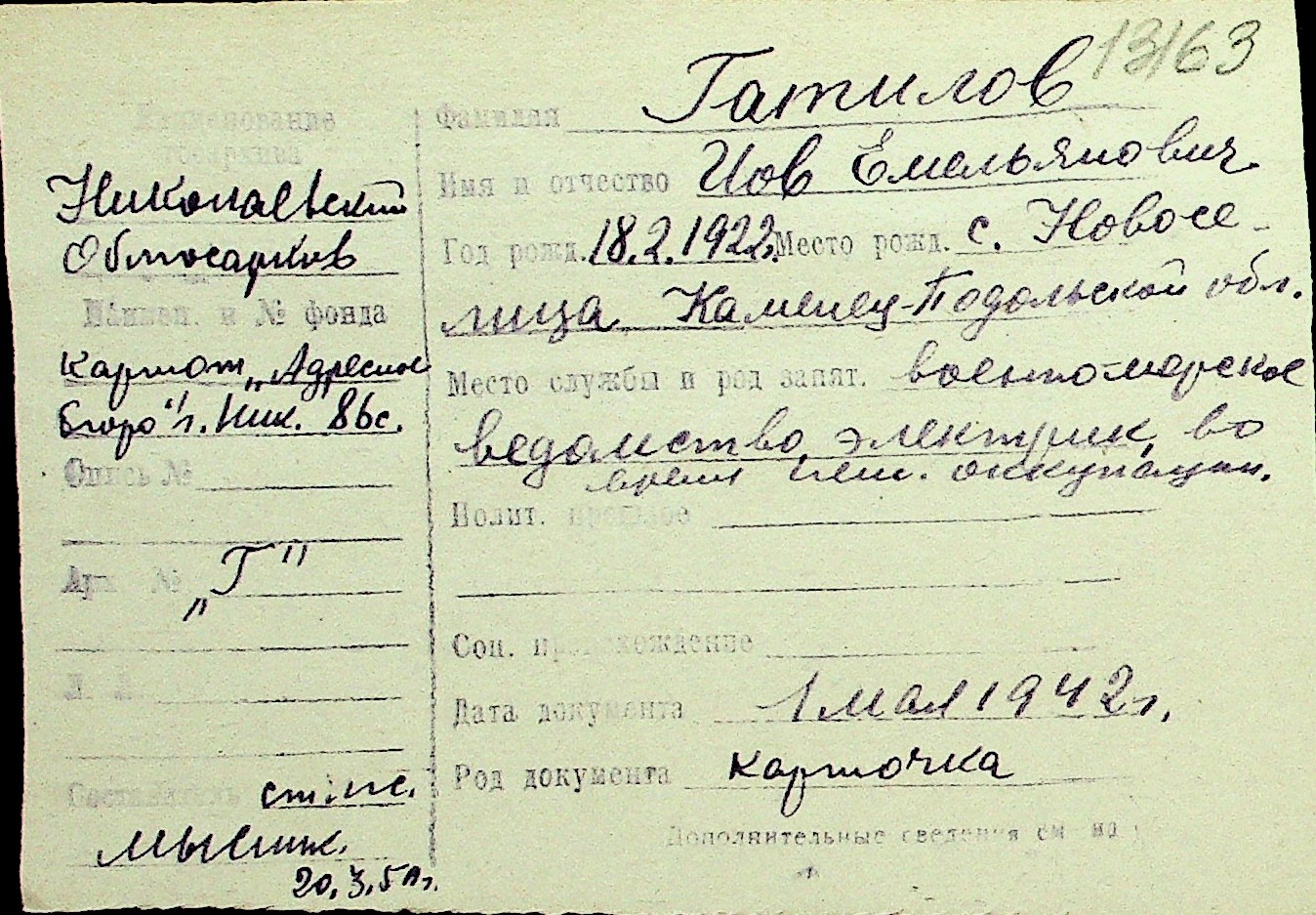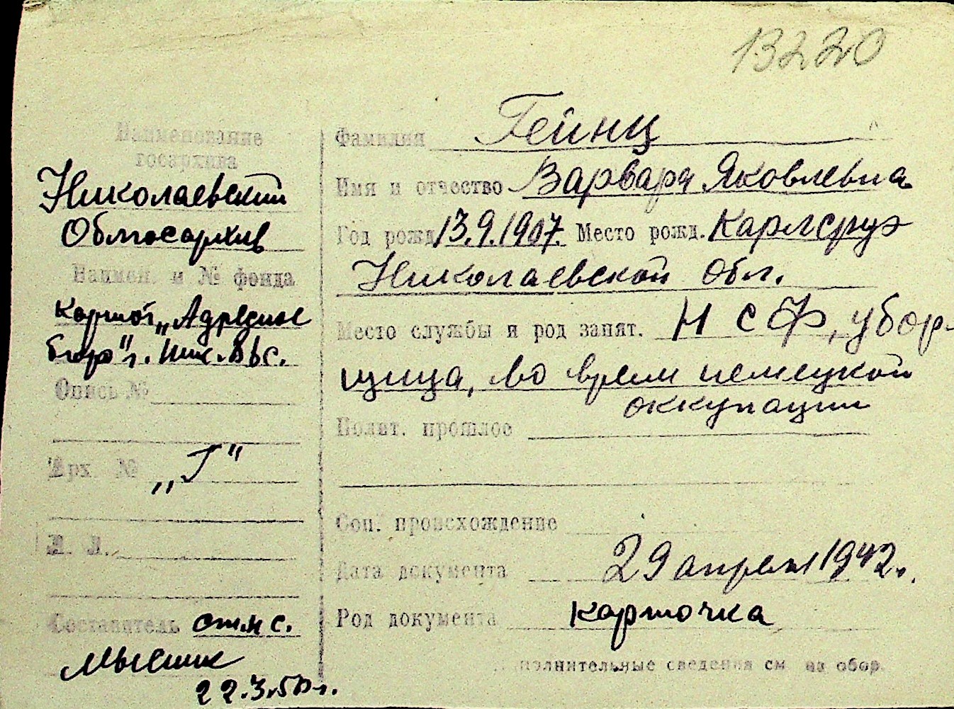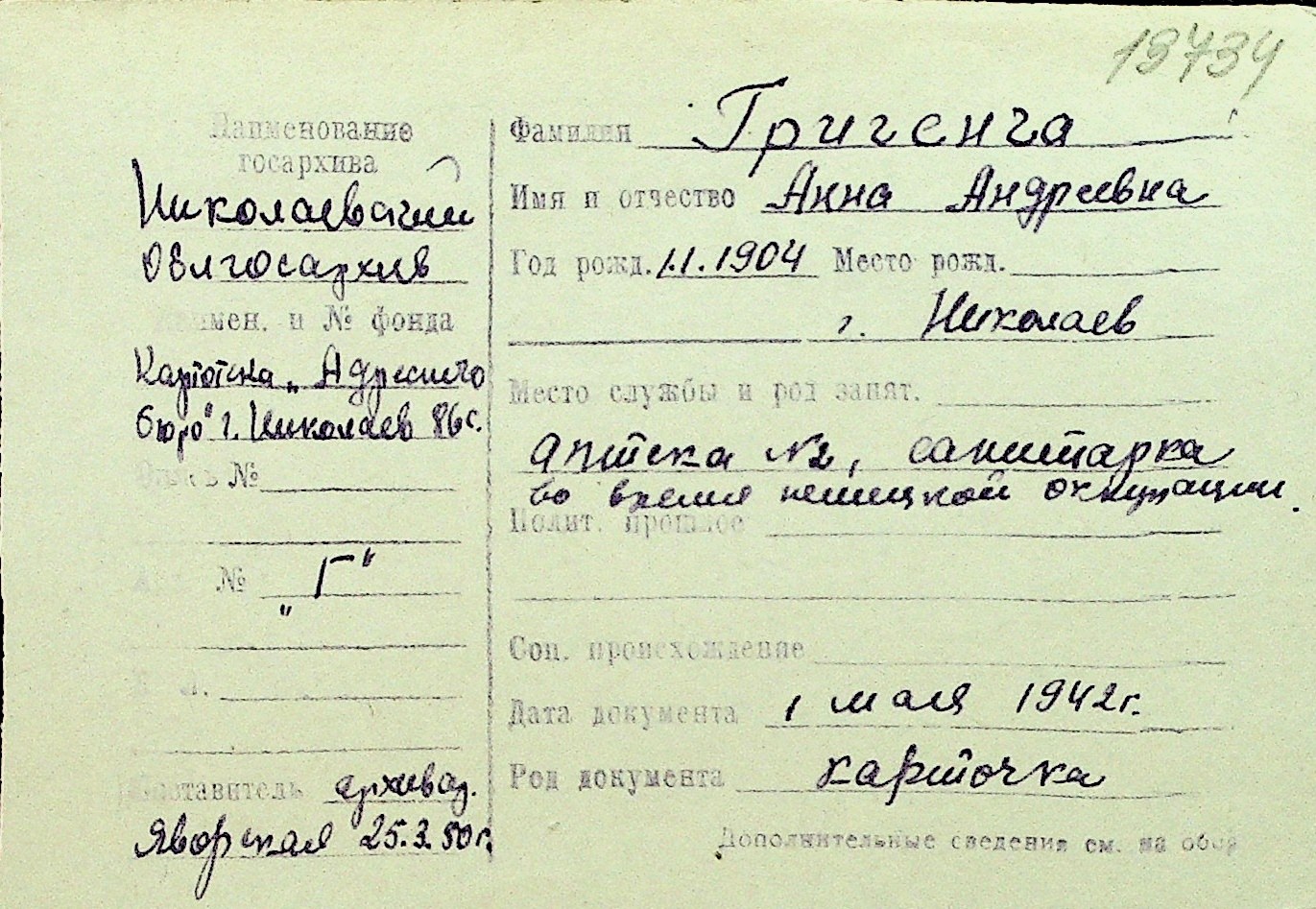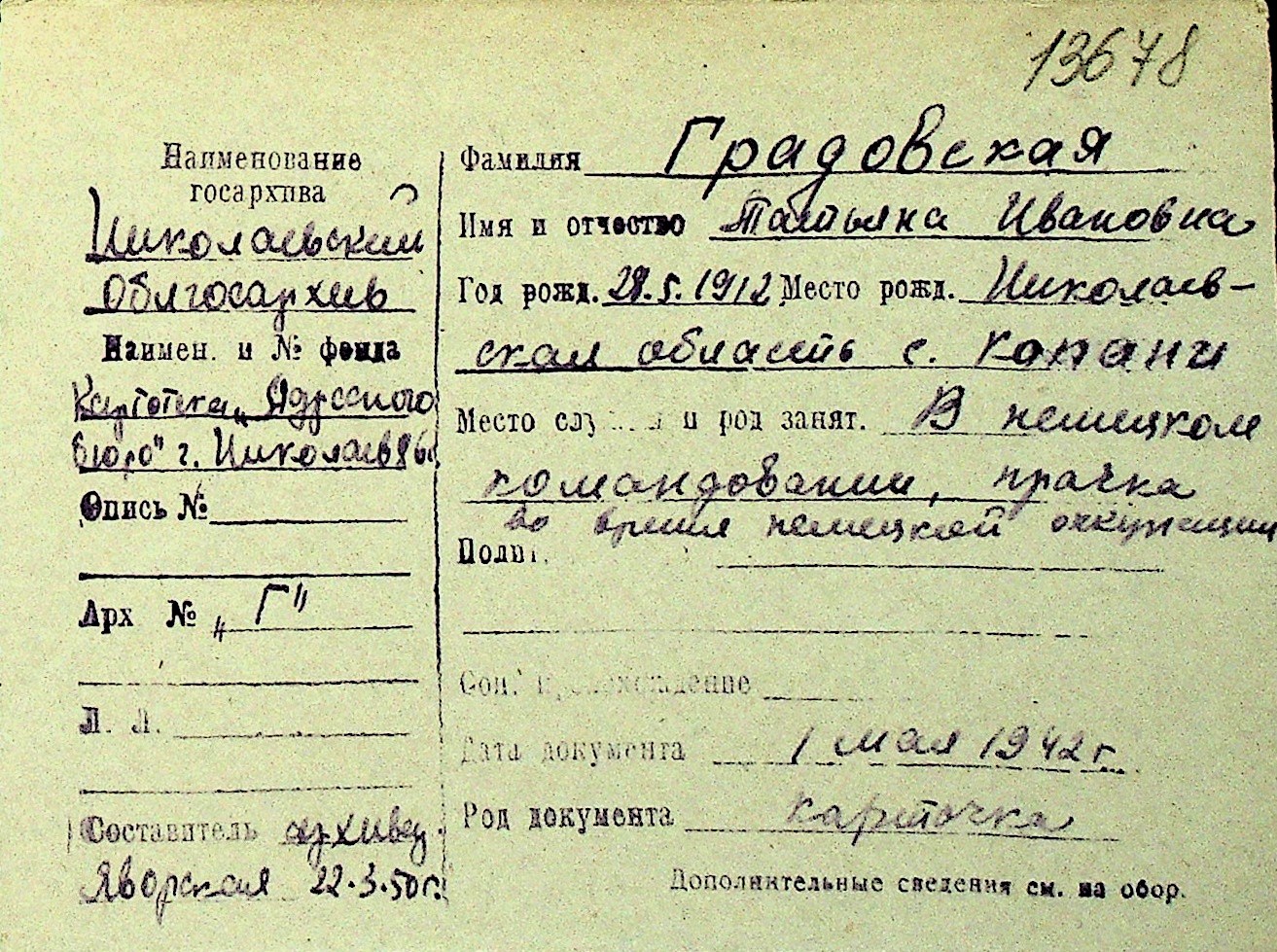• • Перелік карток до фонду № Н-1016