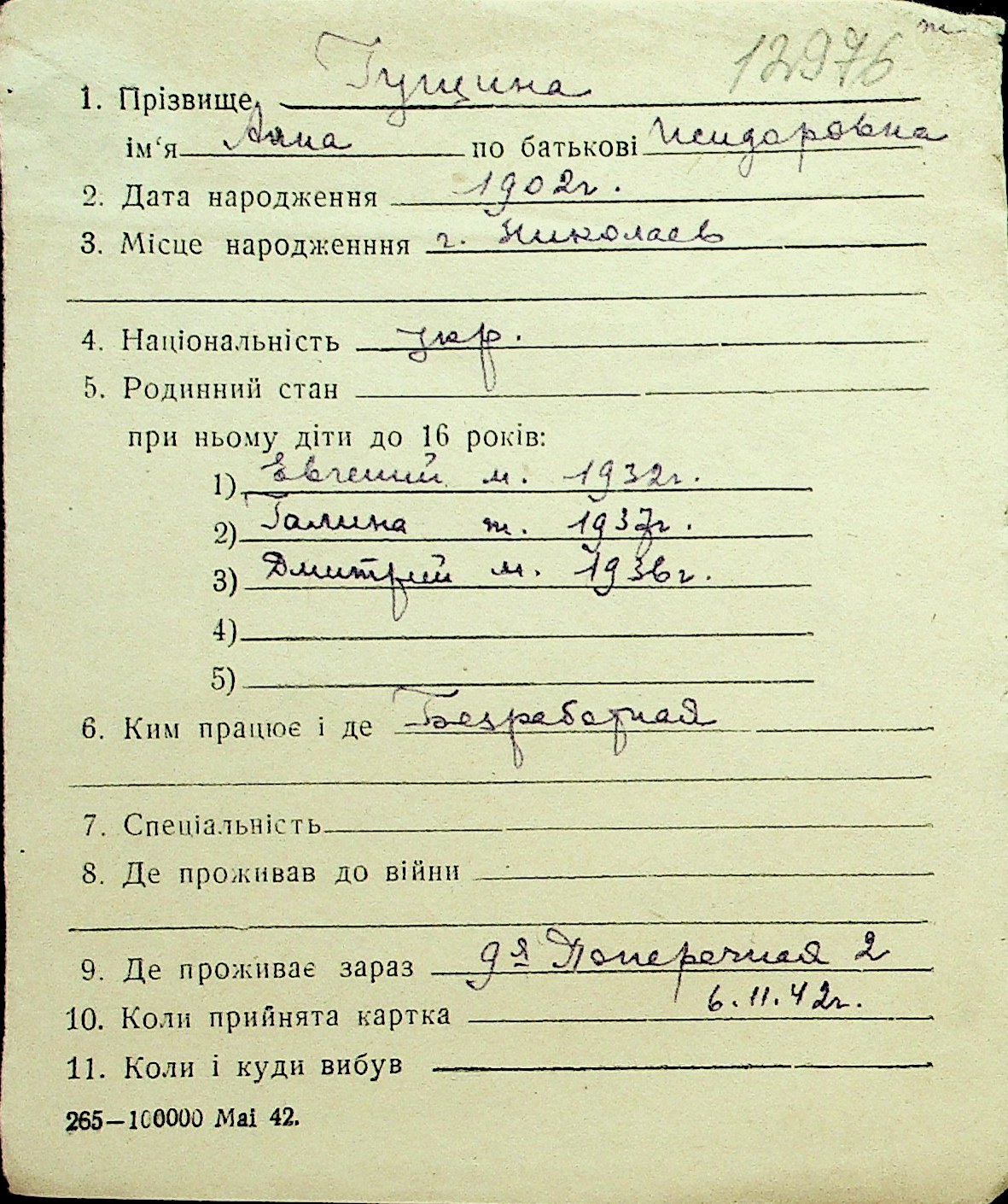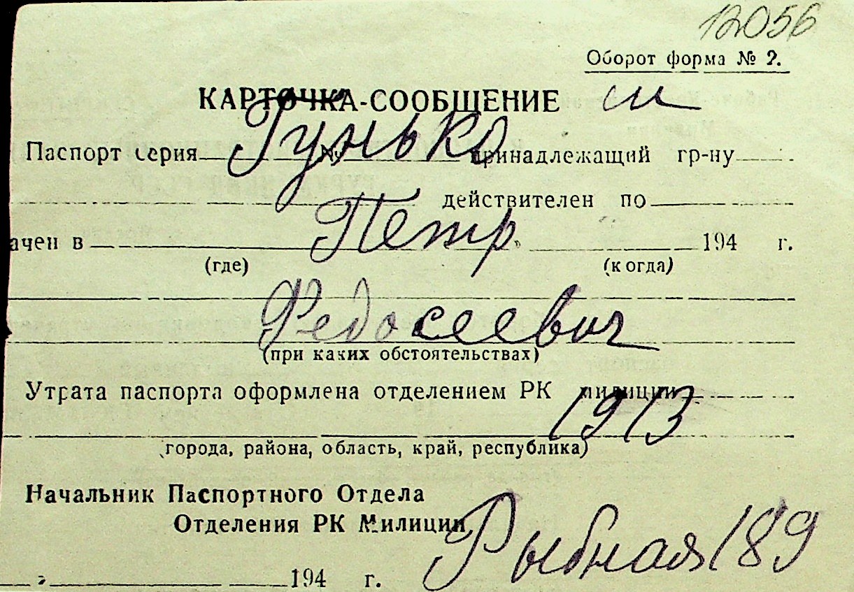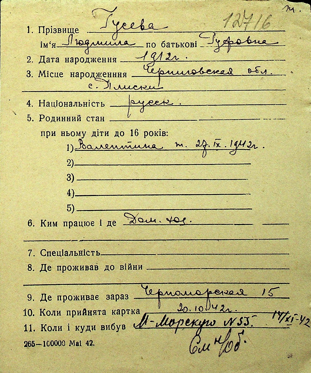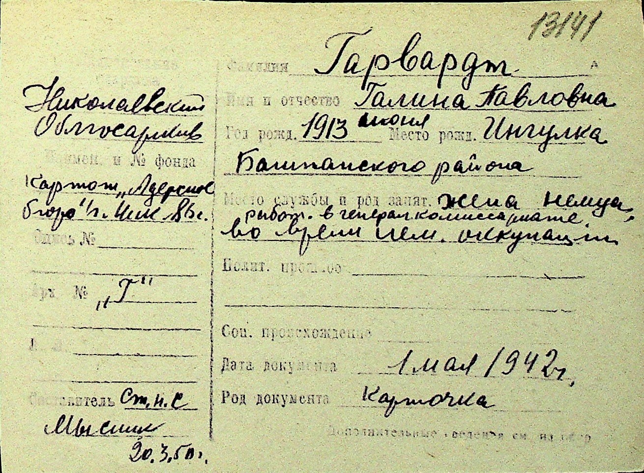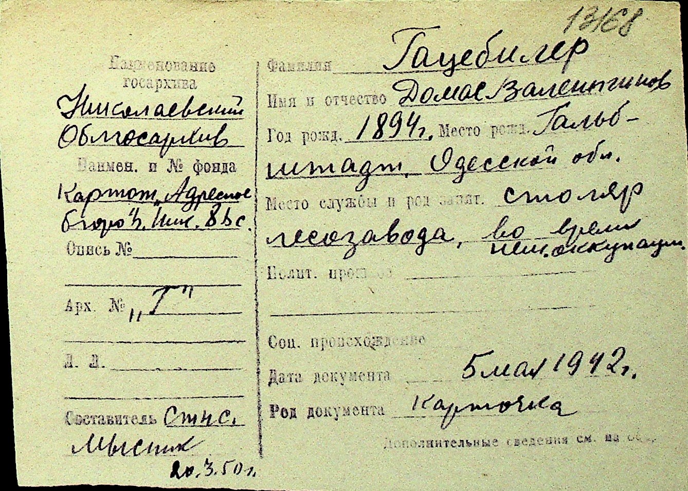 • • Перелік карток до фонду № Н-1016