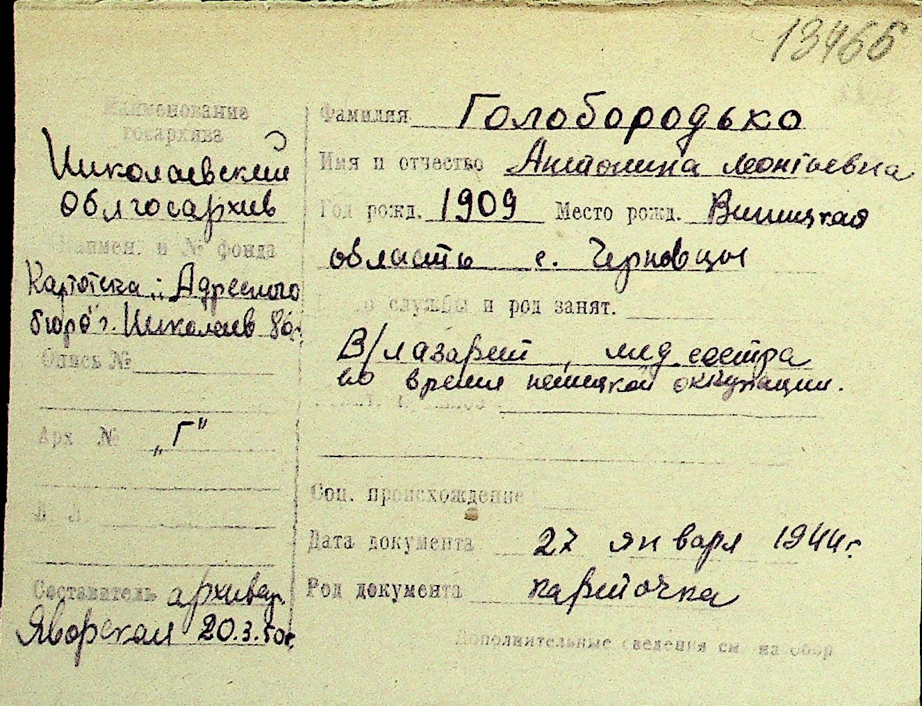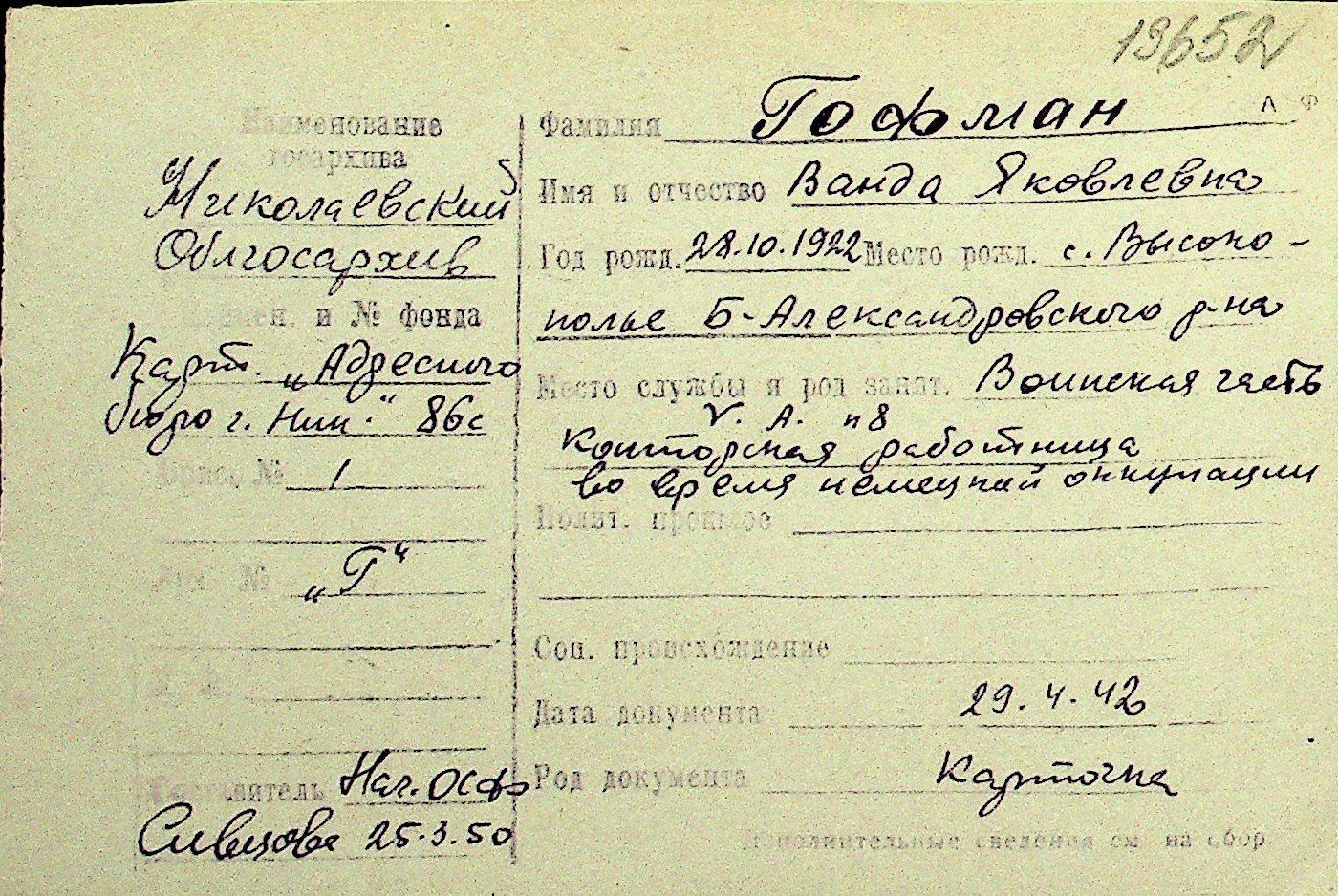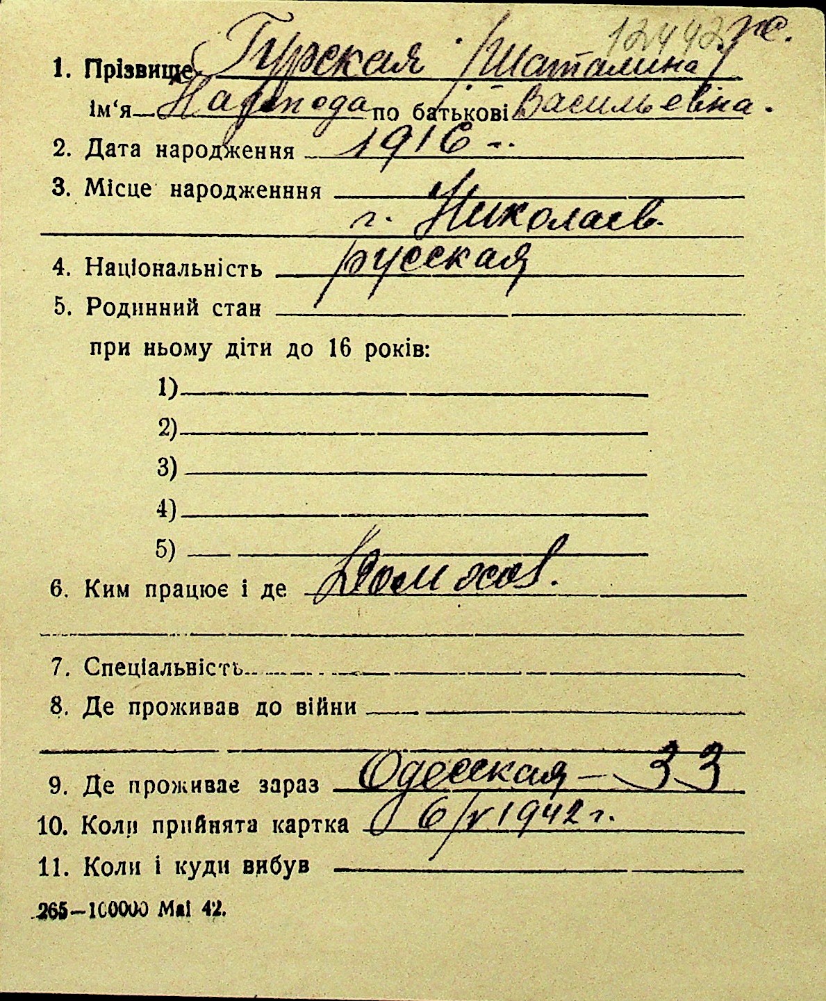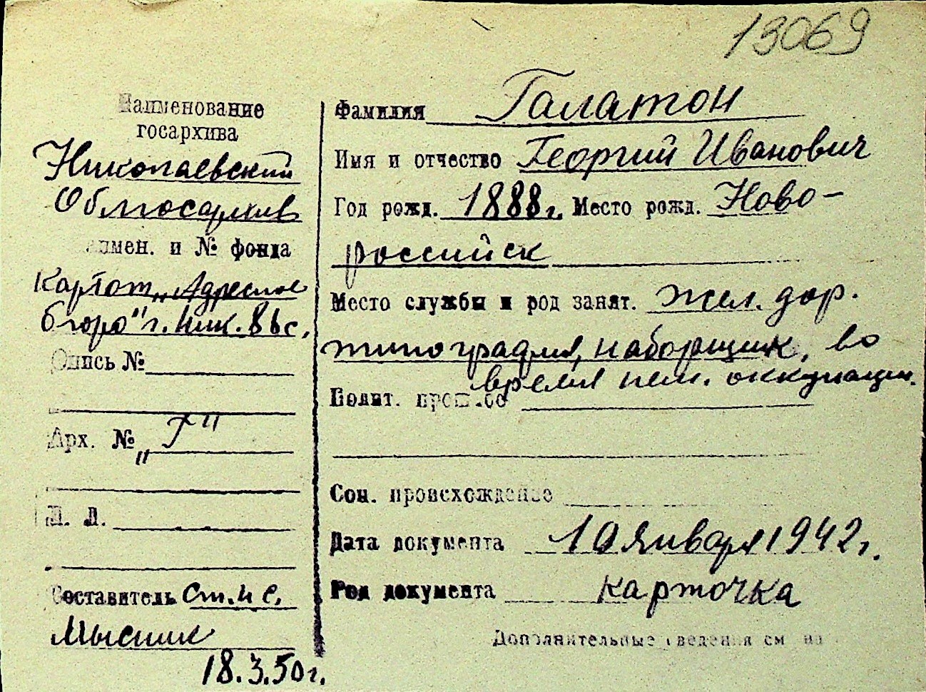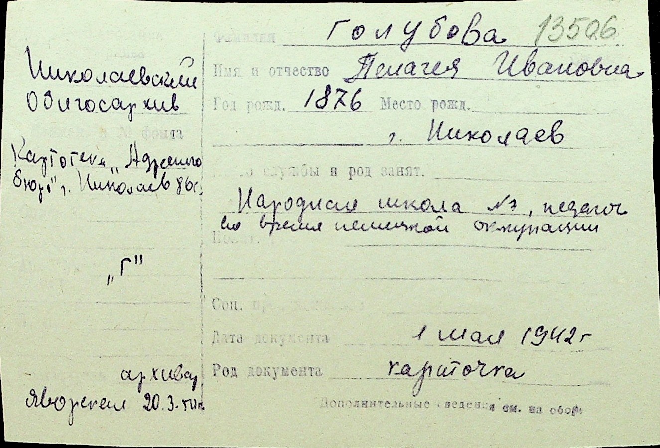 • • Перелік карток до фонду № Н-1016