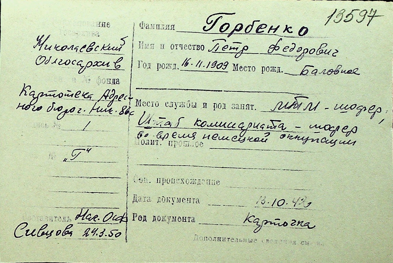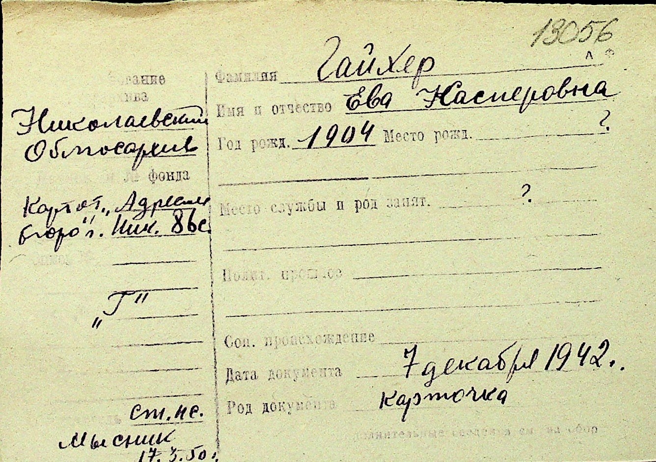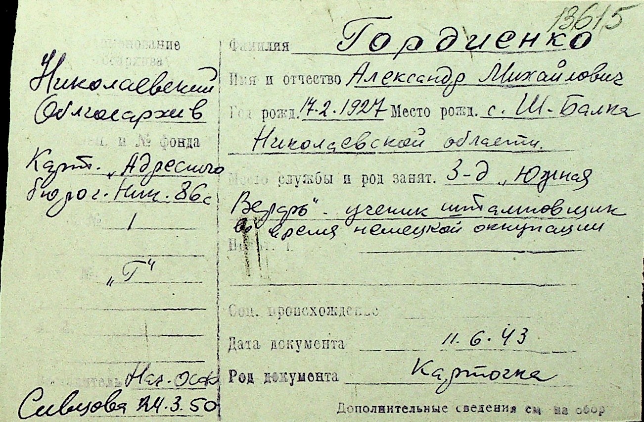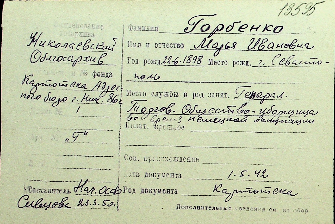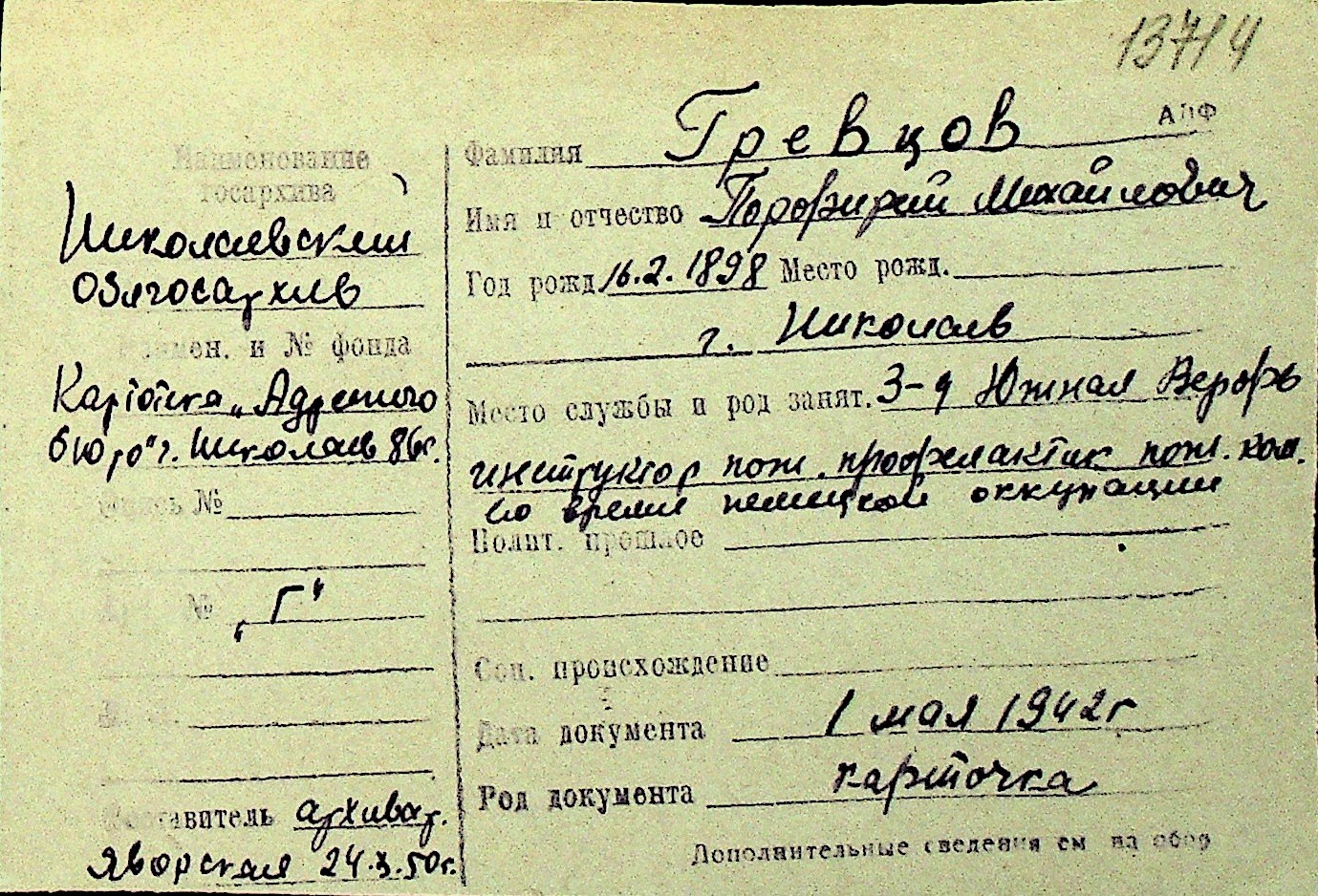 • • Перелік карток до фонду № Н-1016