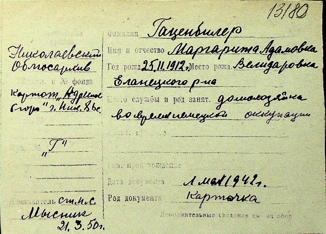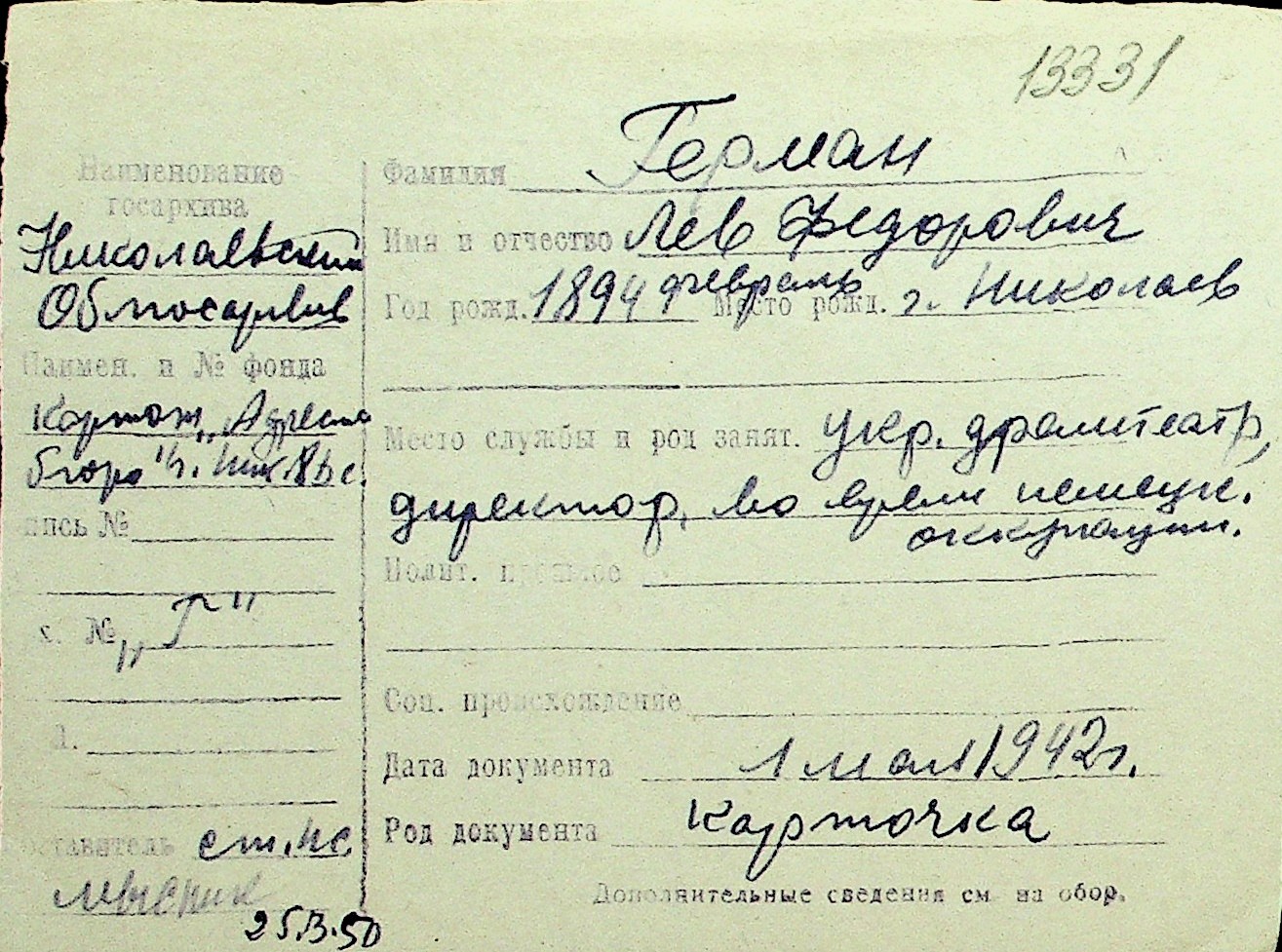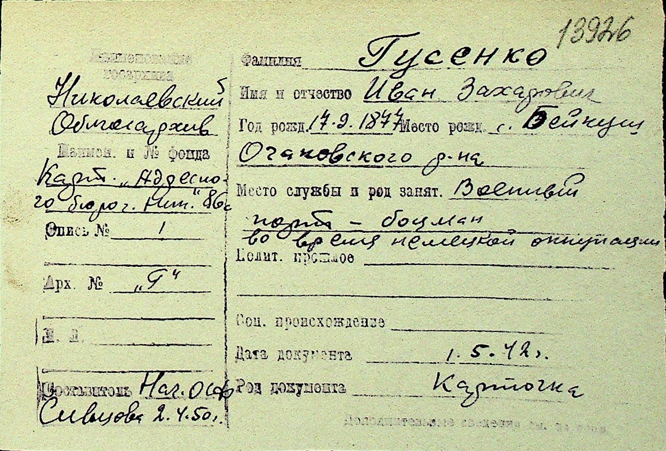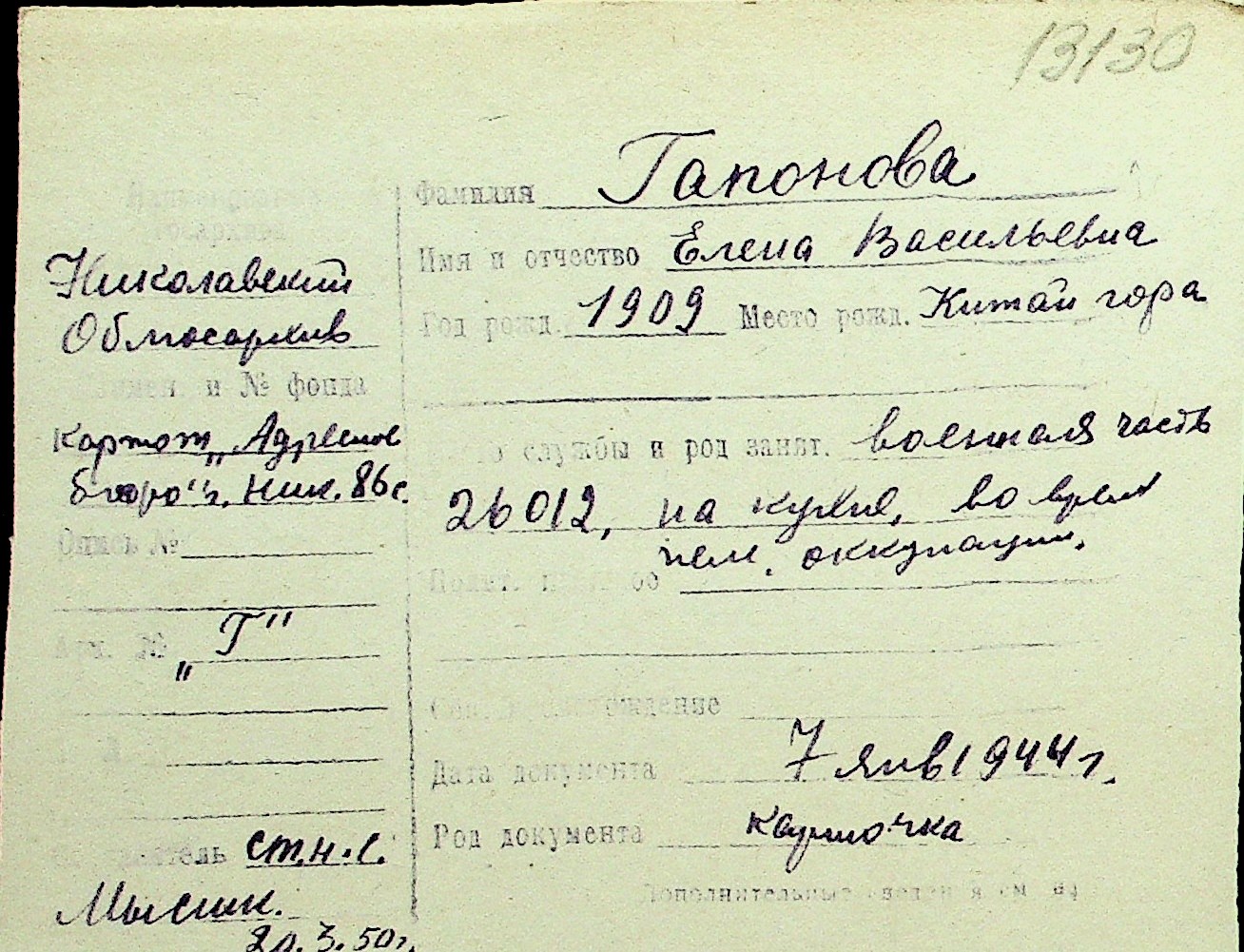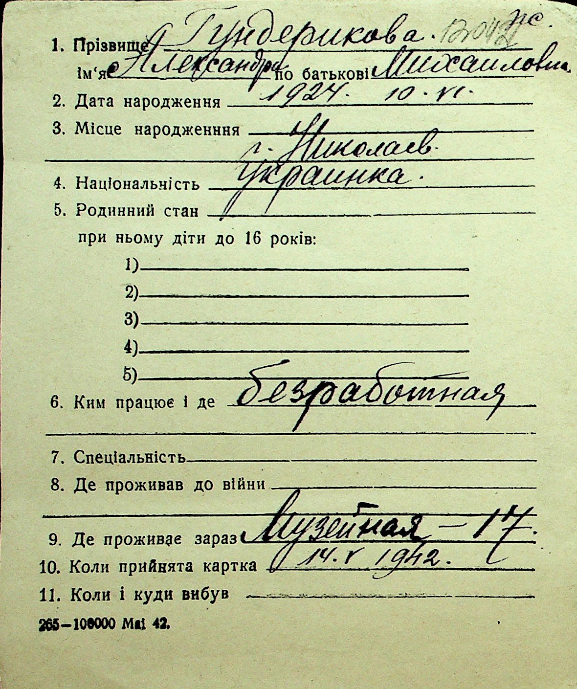 • • Перелік карток до фонду № Н-1016
