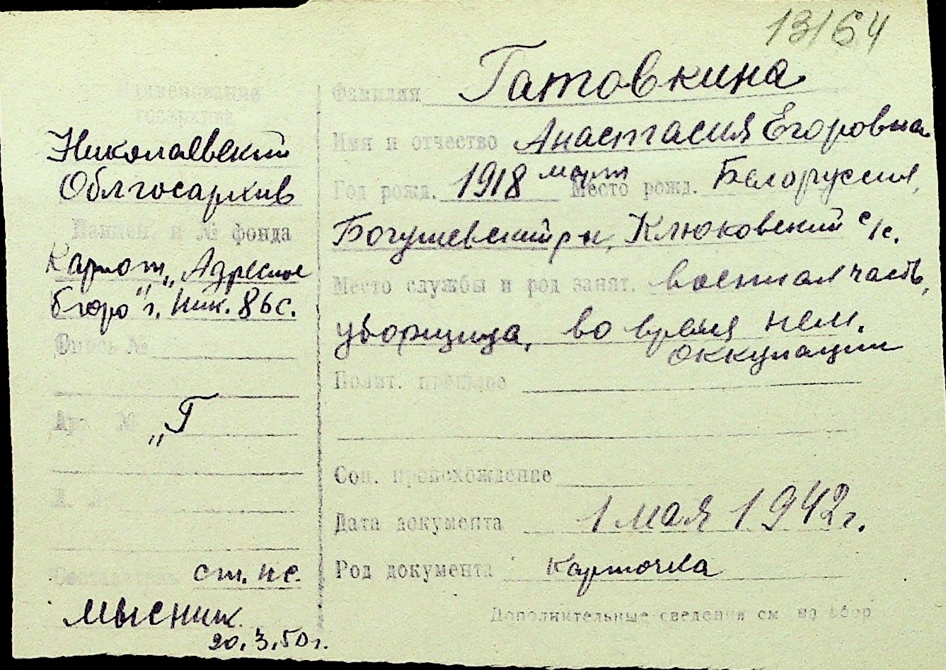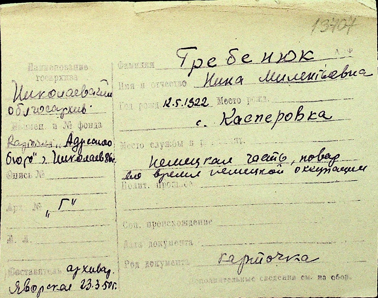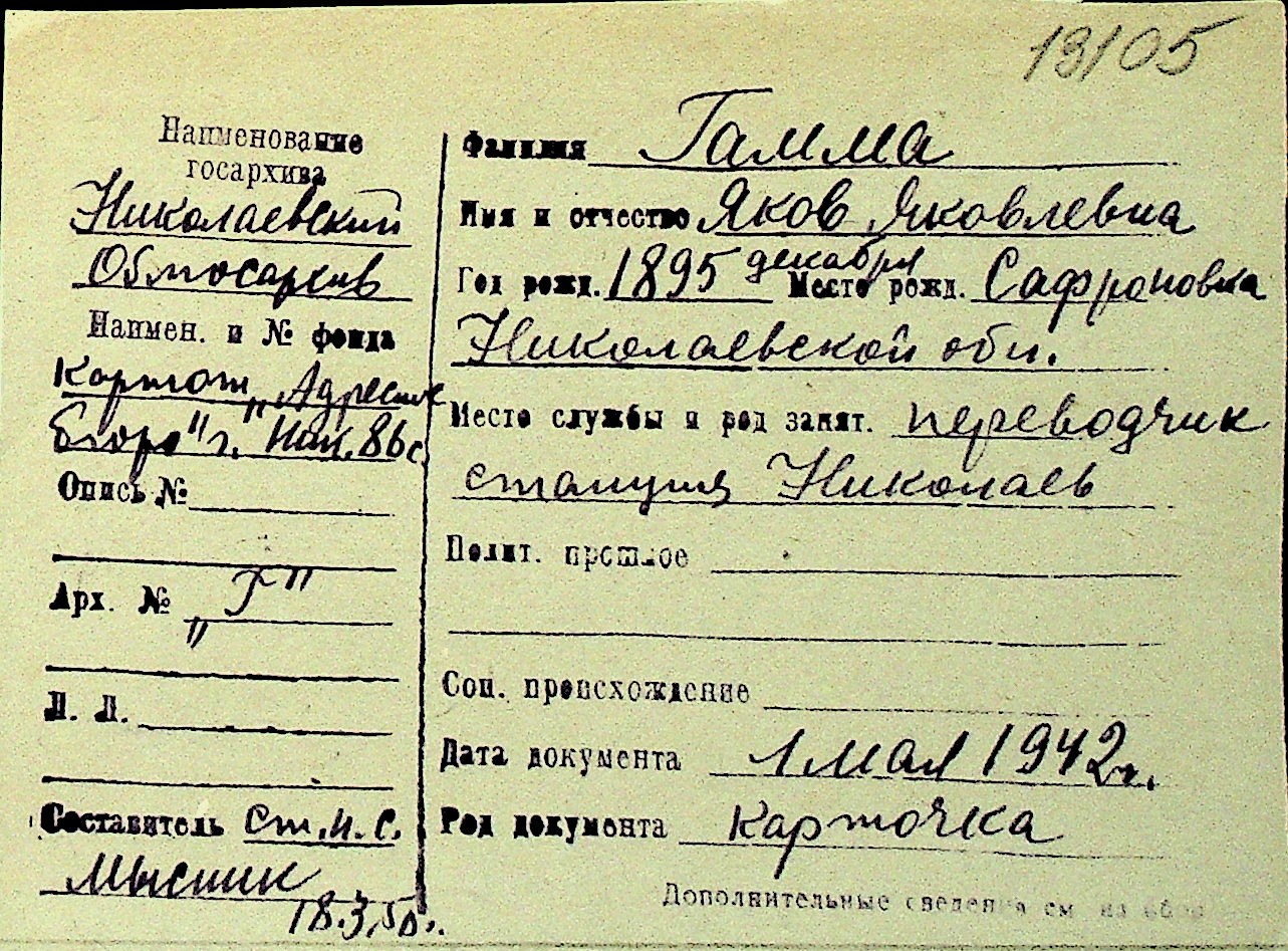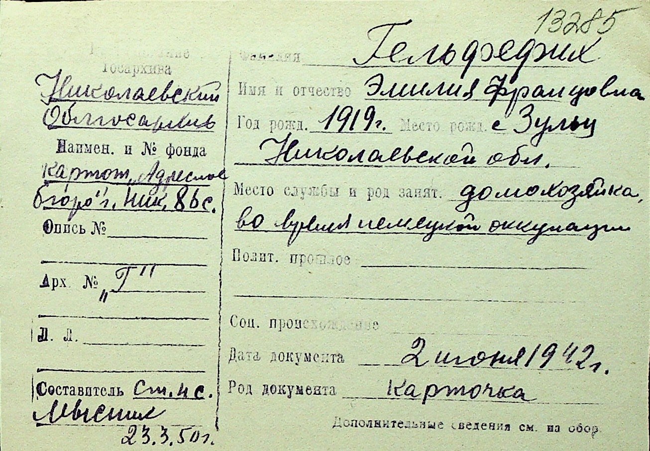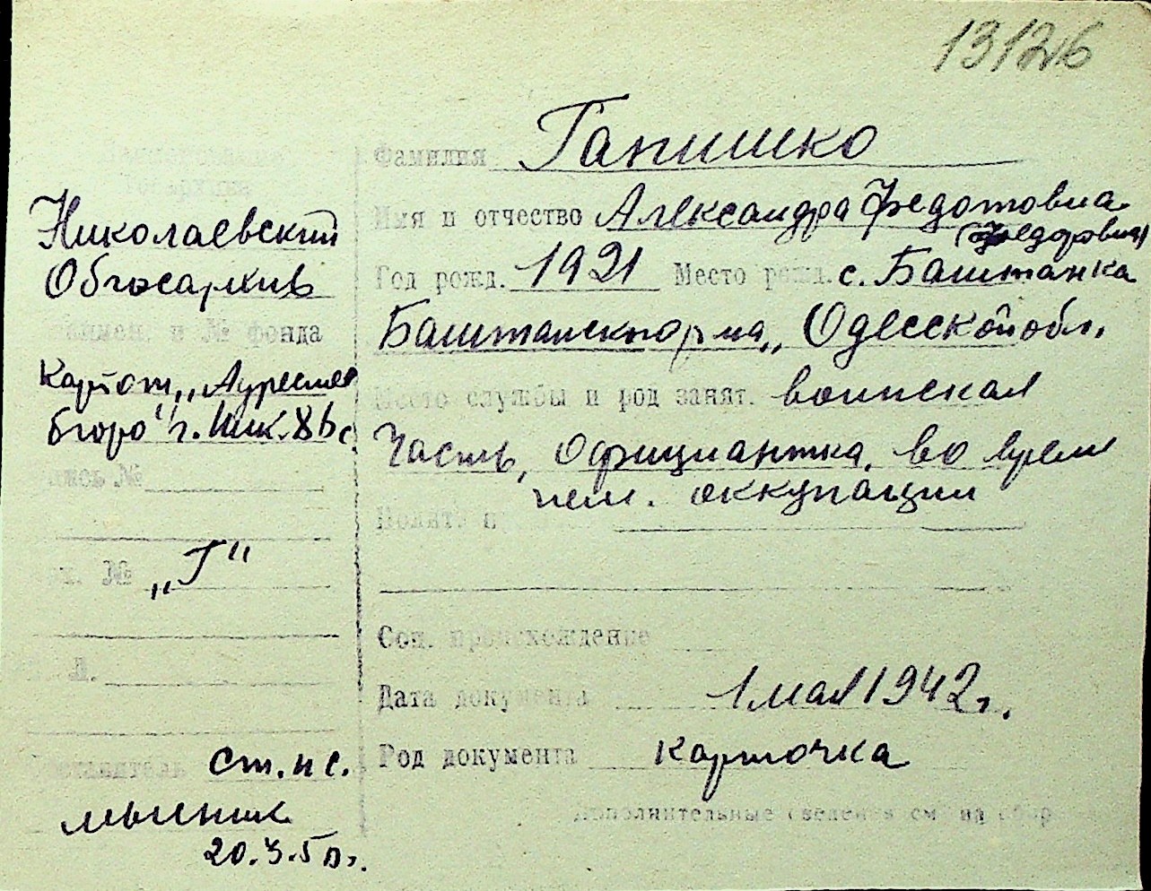 • • Перелік карток до фонду № Н-1016