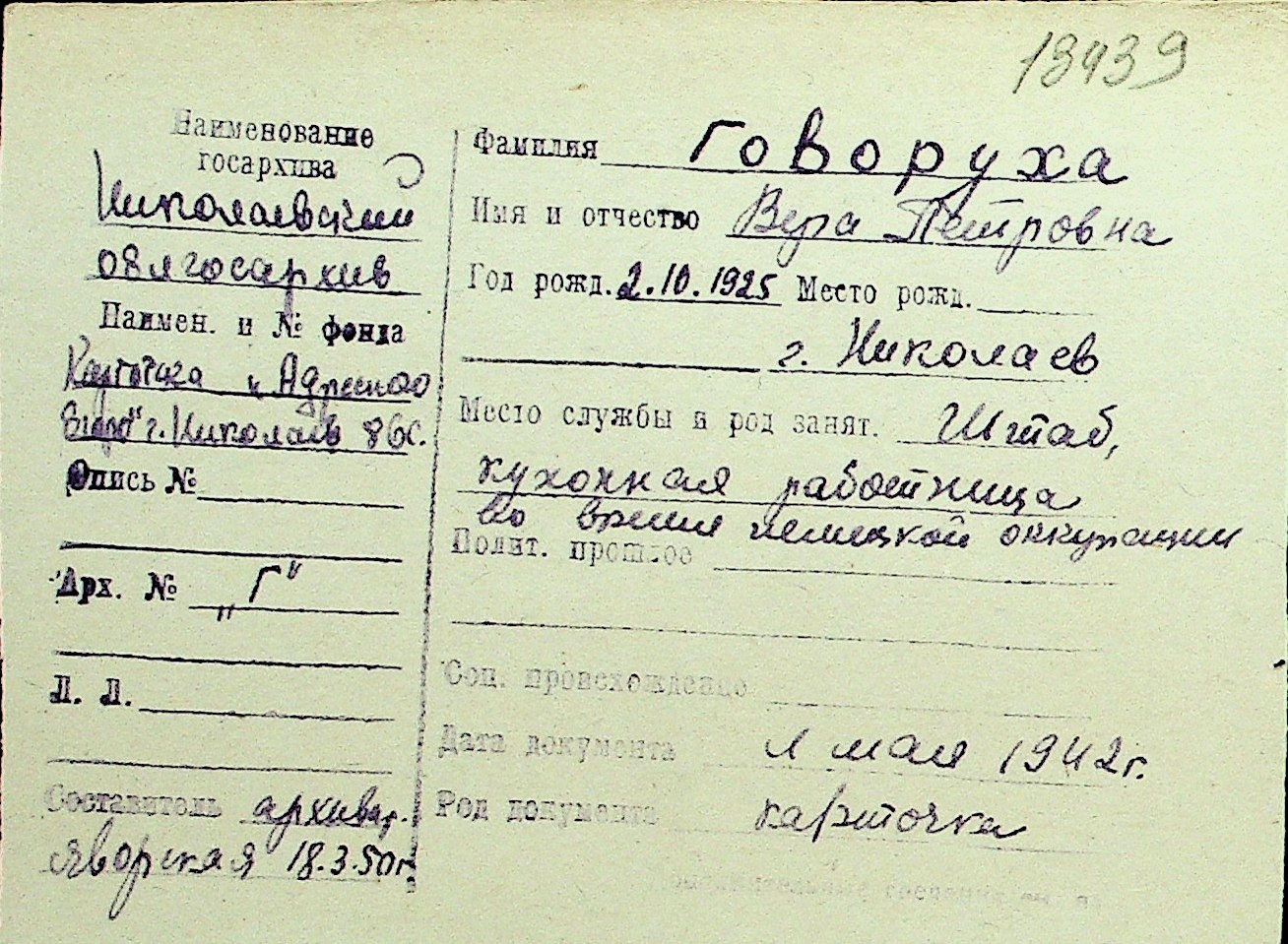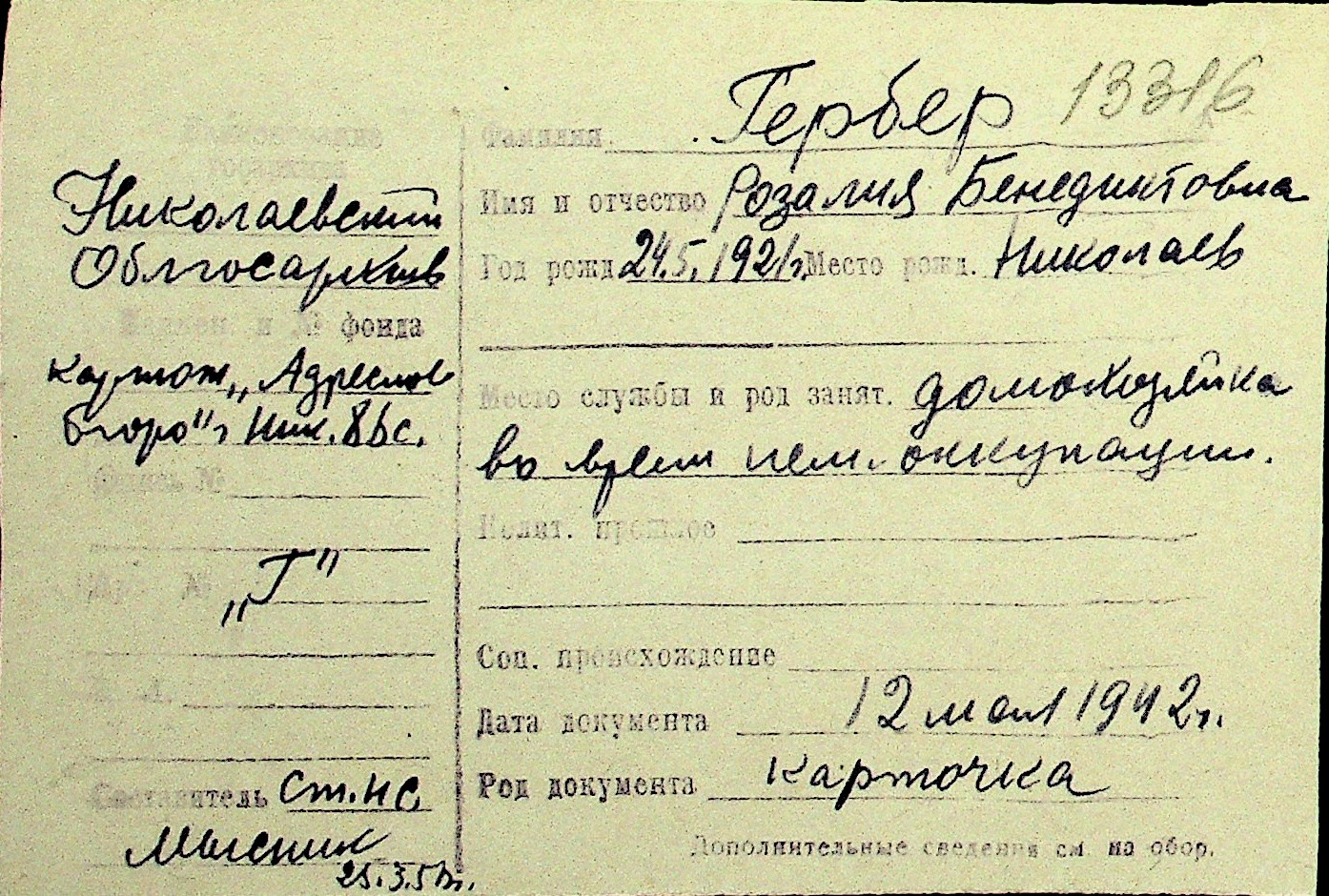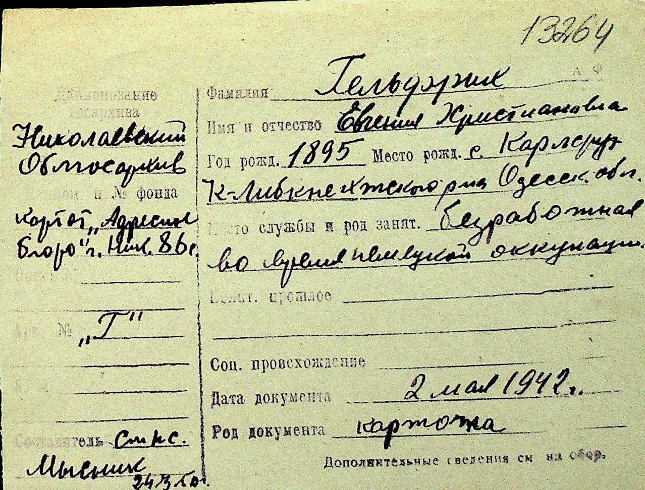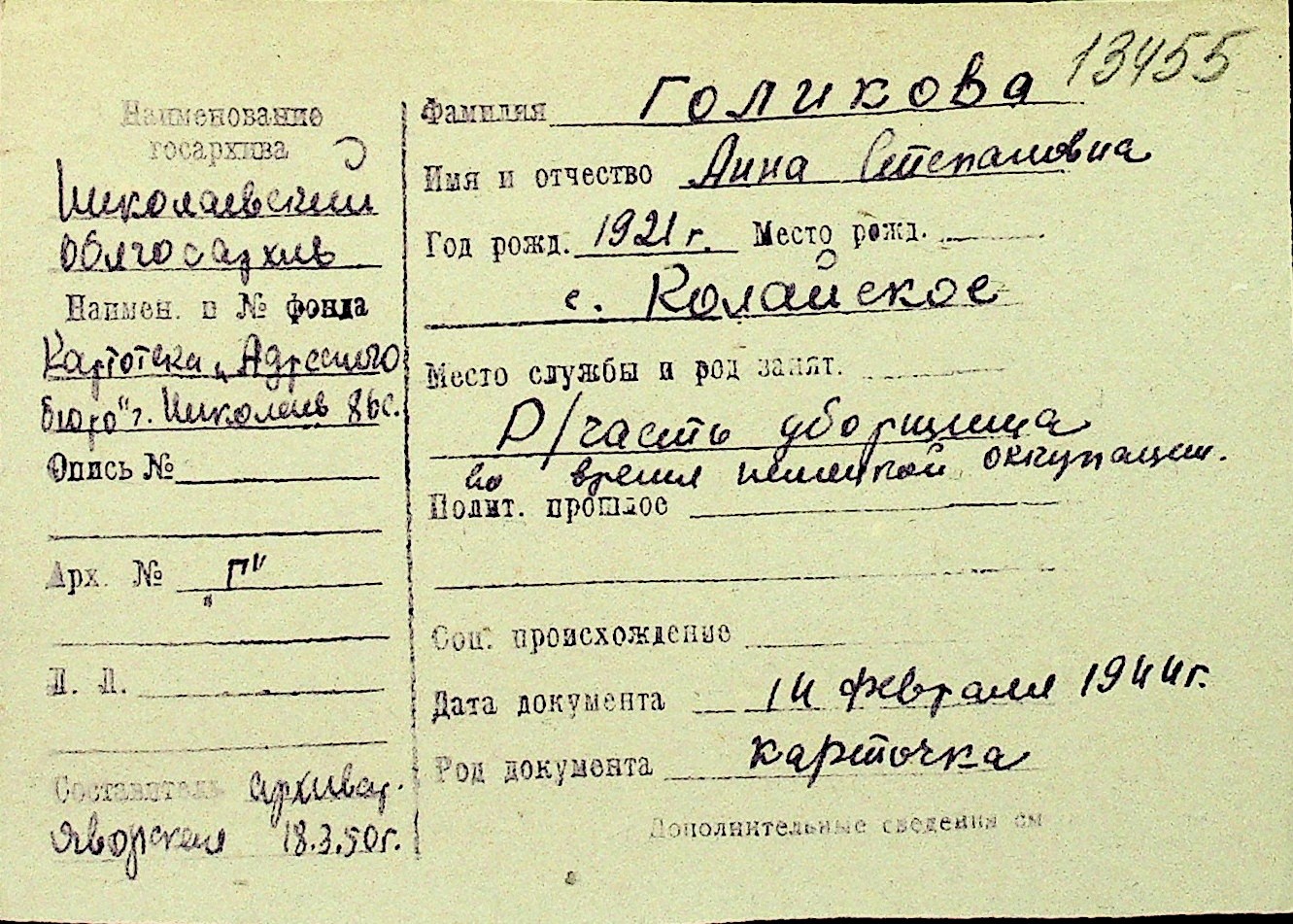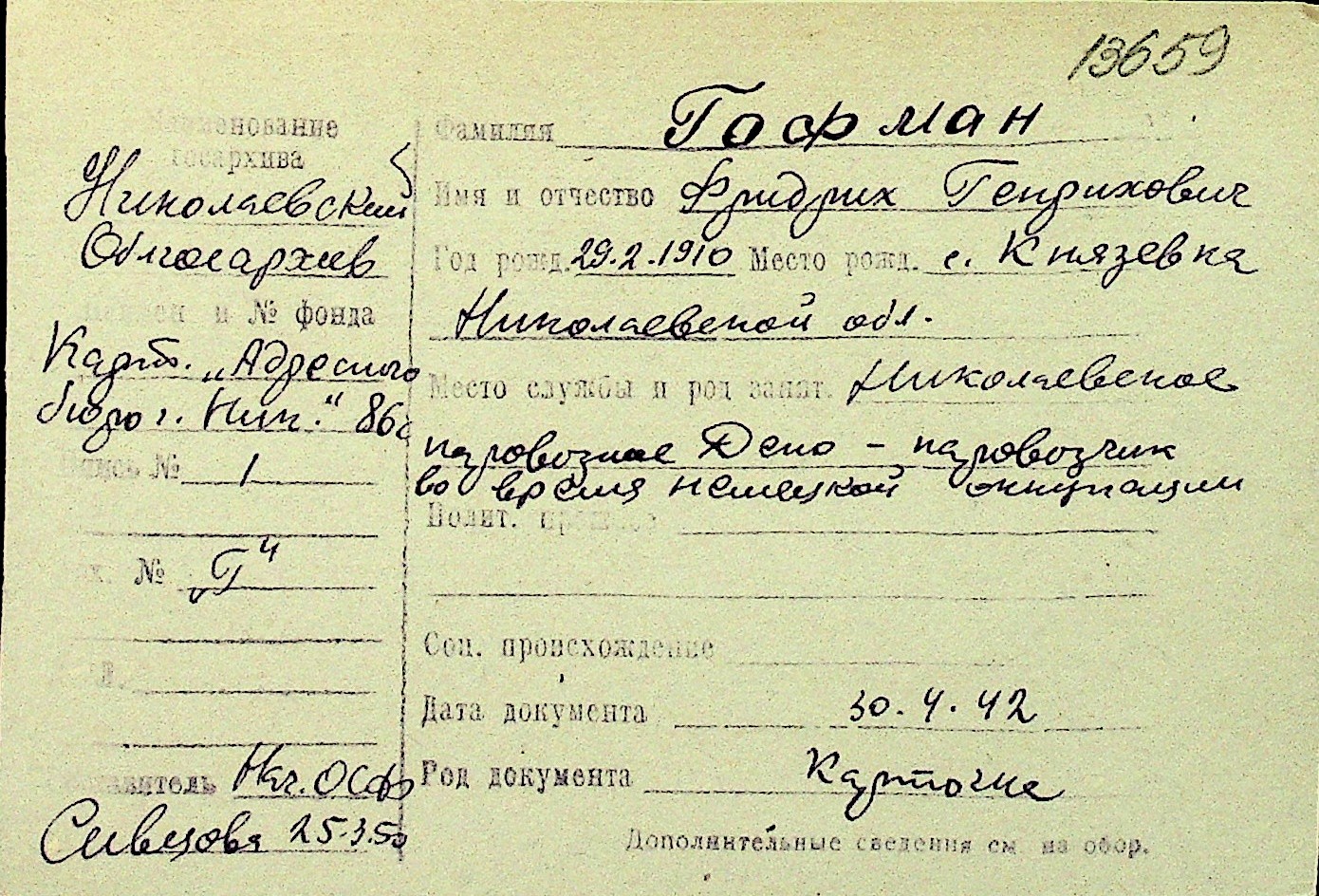 • • Перелік карток до фонду № Н-1016