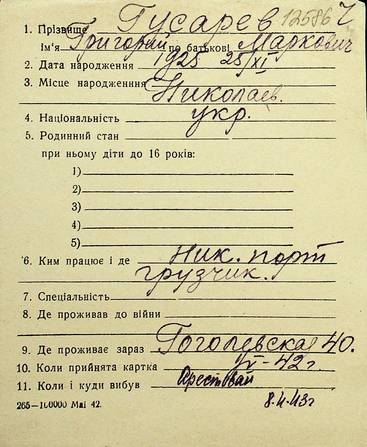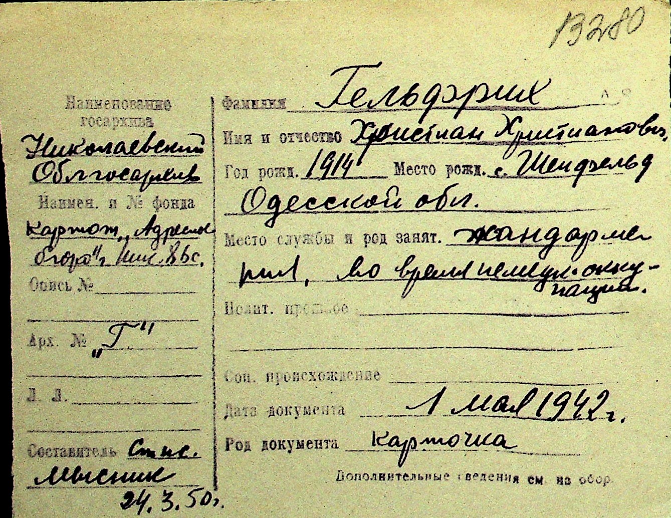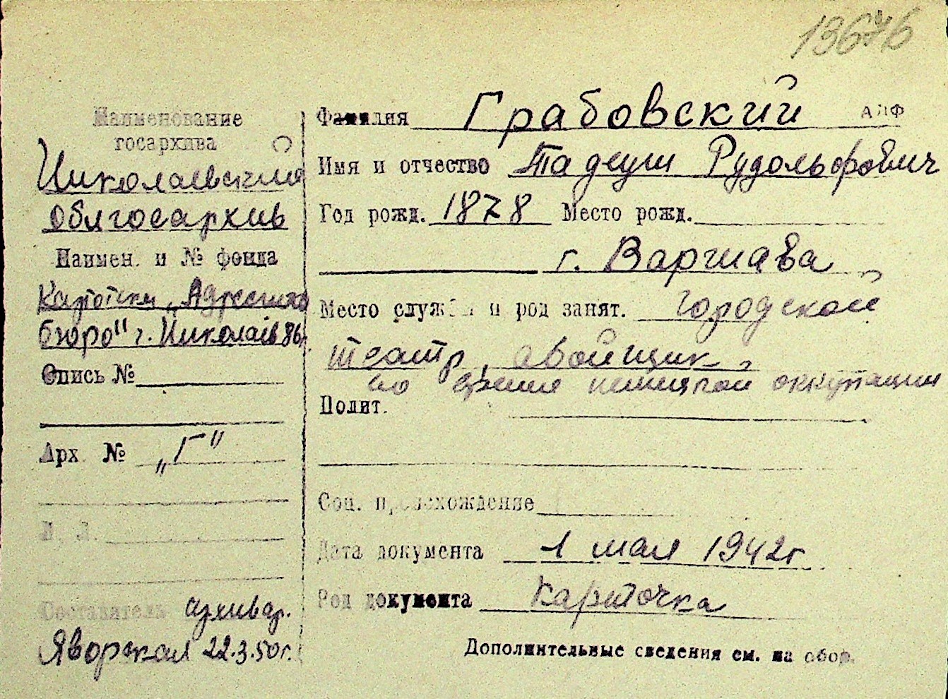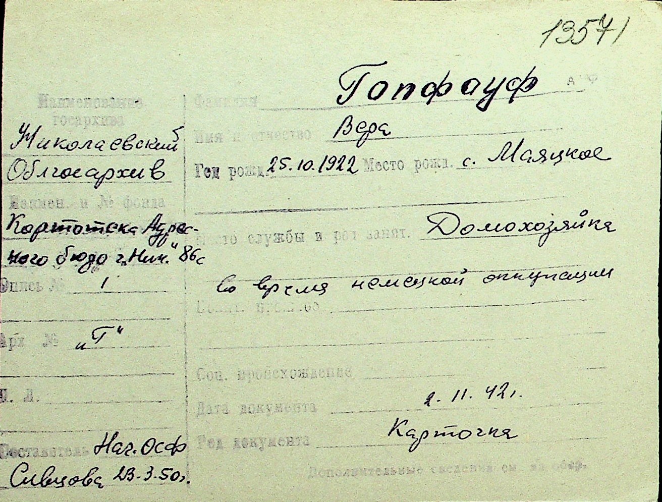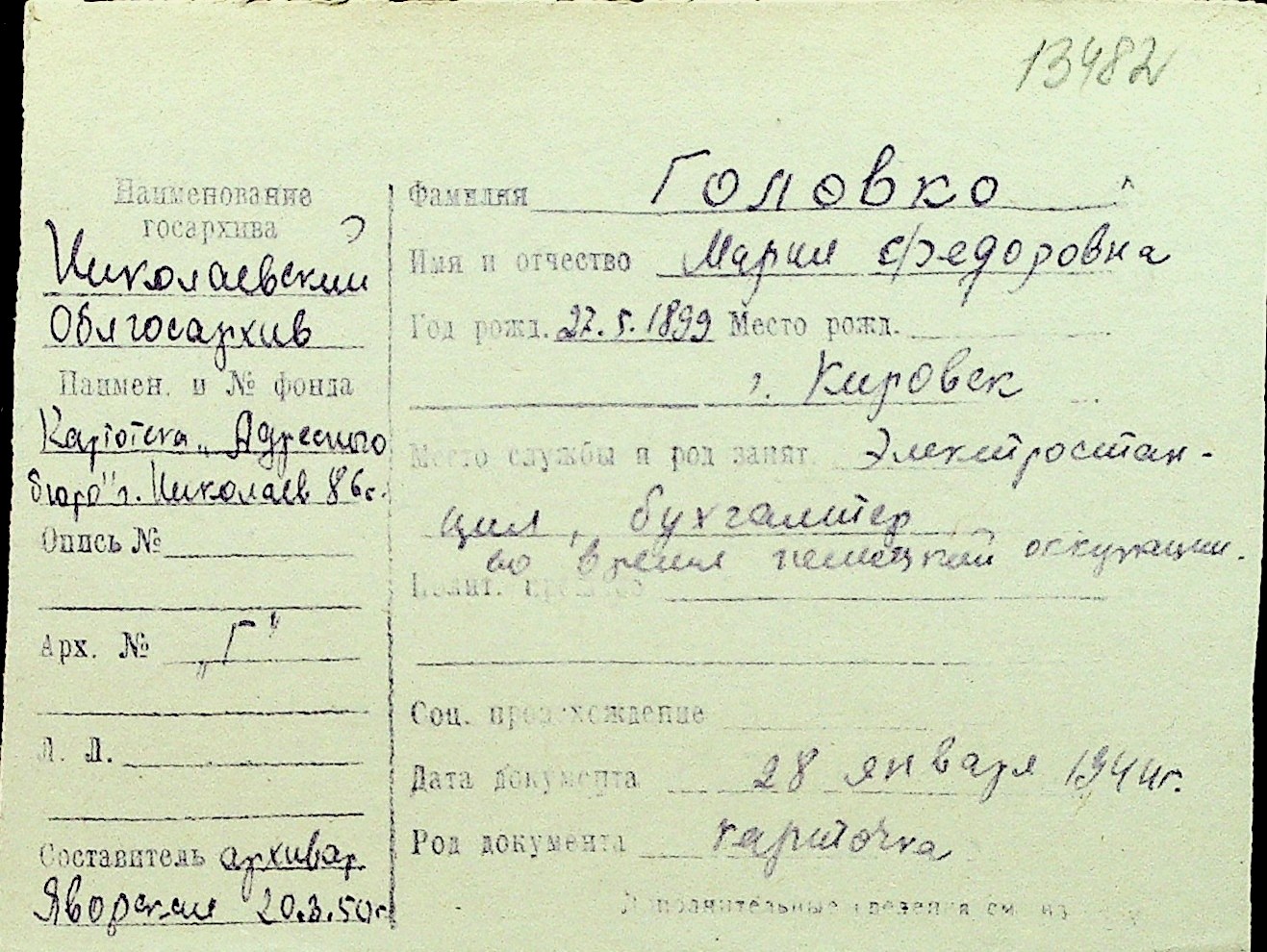 • • Перелік карток до фонду № Н-1016