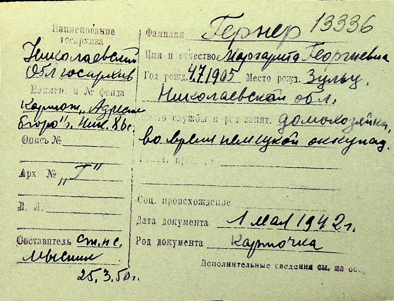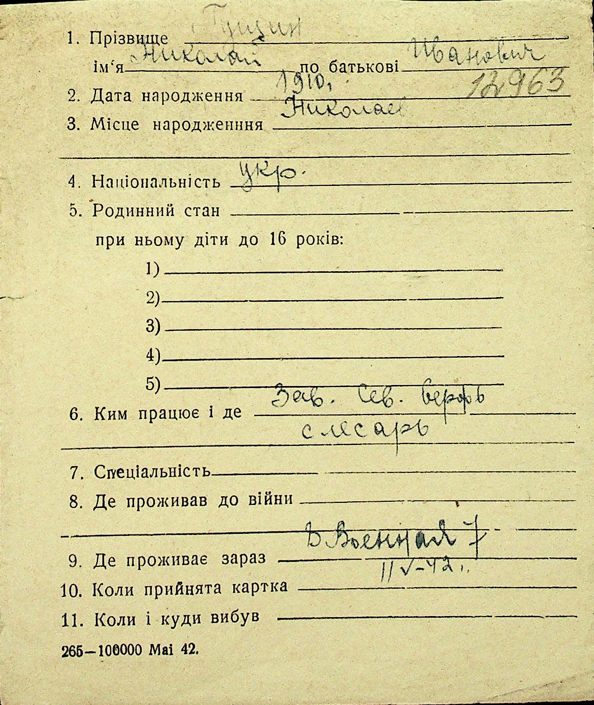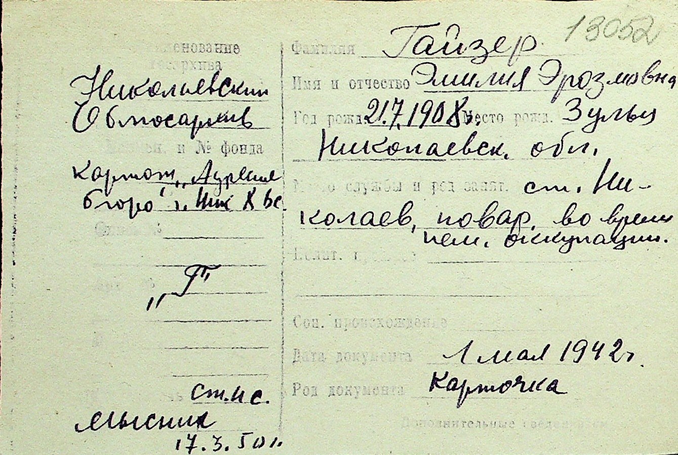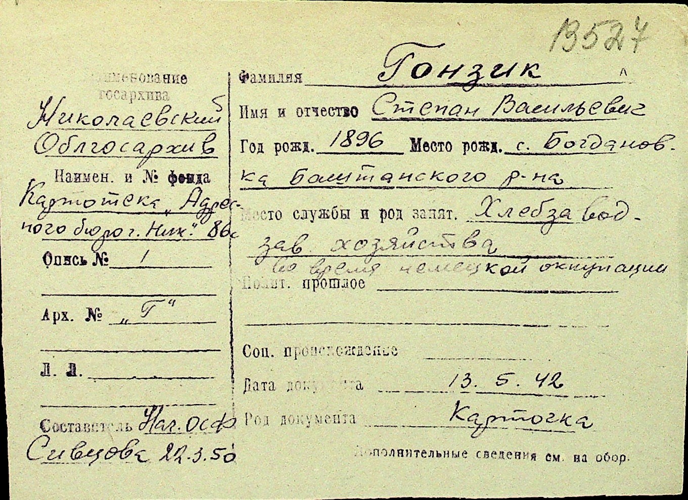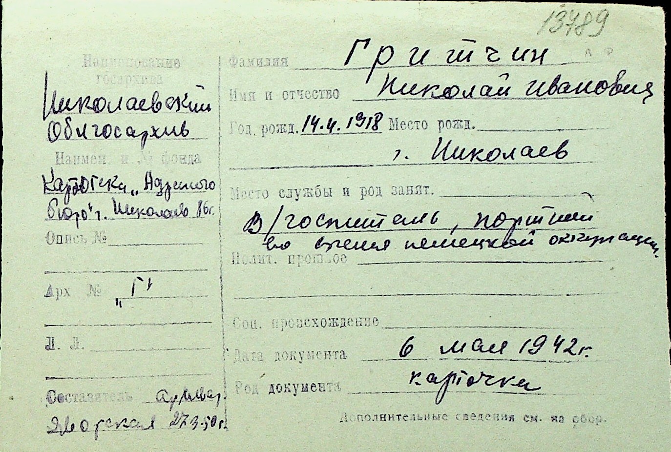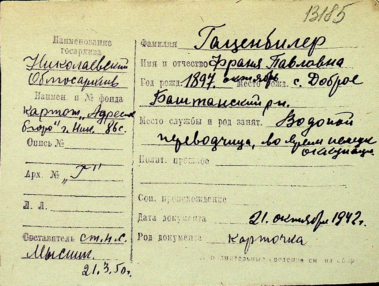 • • Перелік карток до фонду № Н-1016