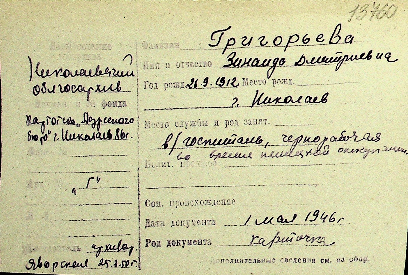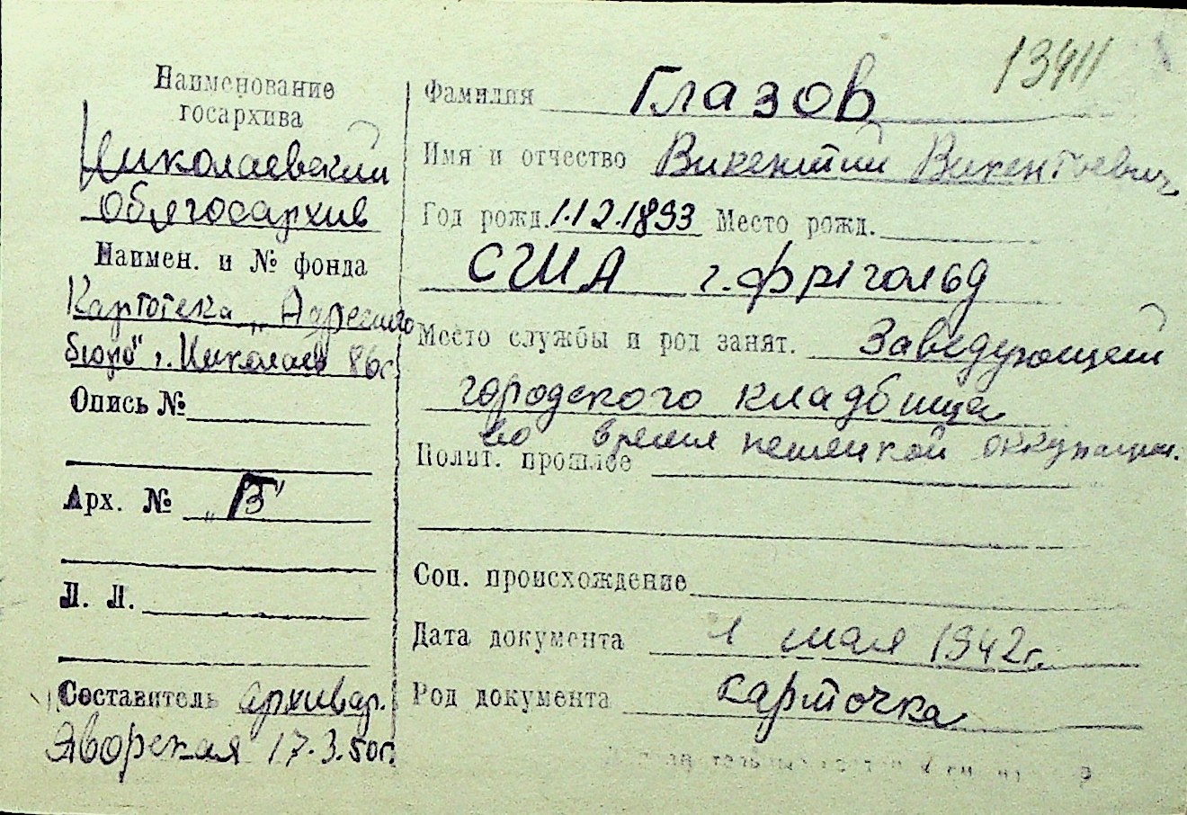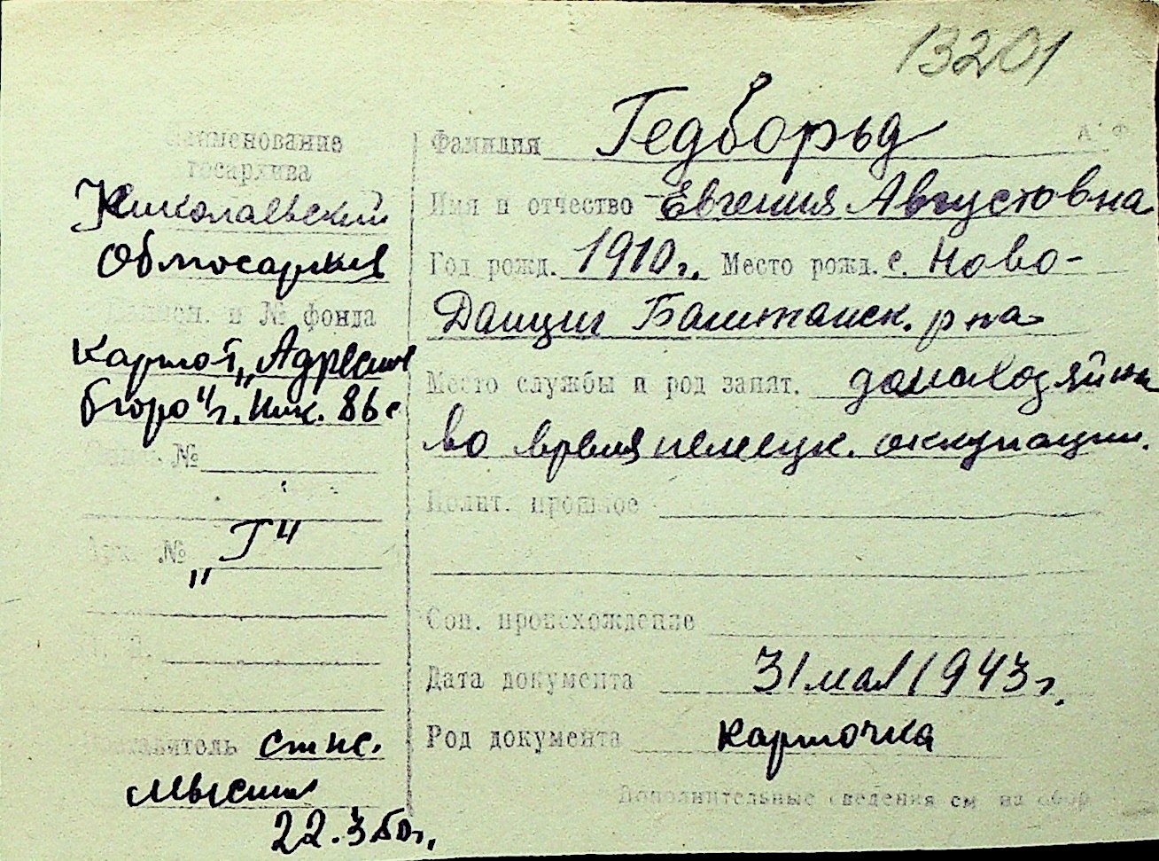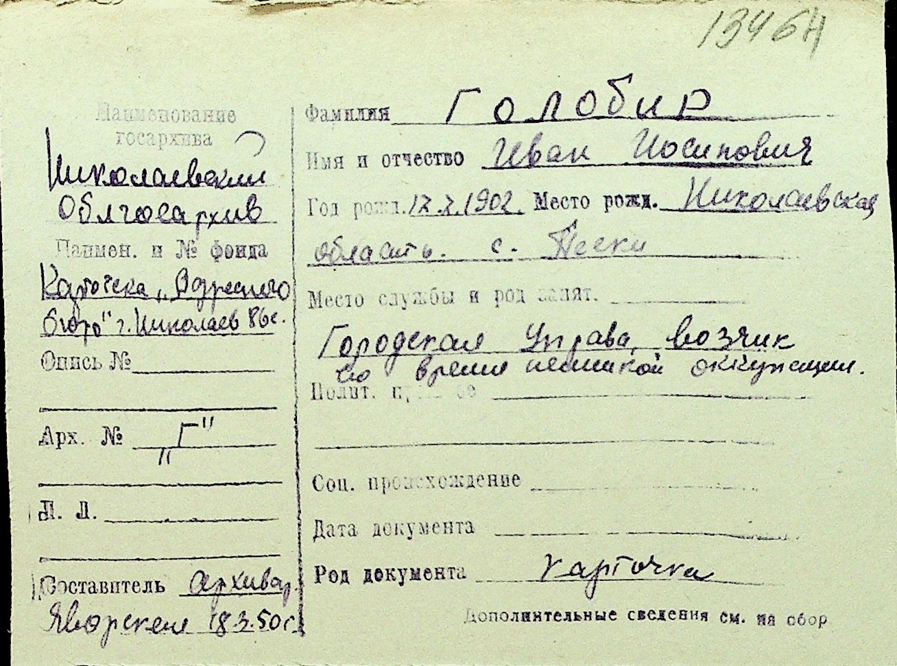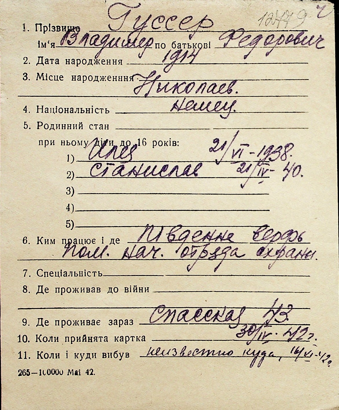 • • Перелік карток до фонду № Н-1016