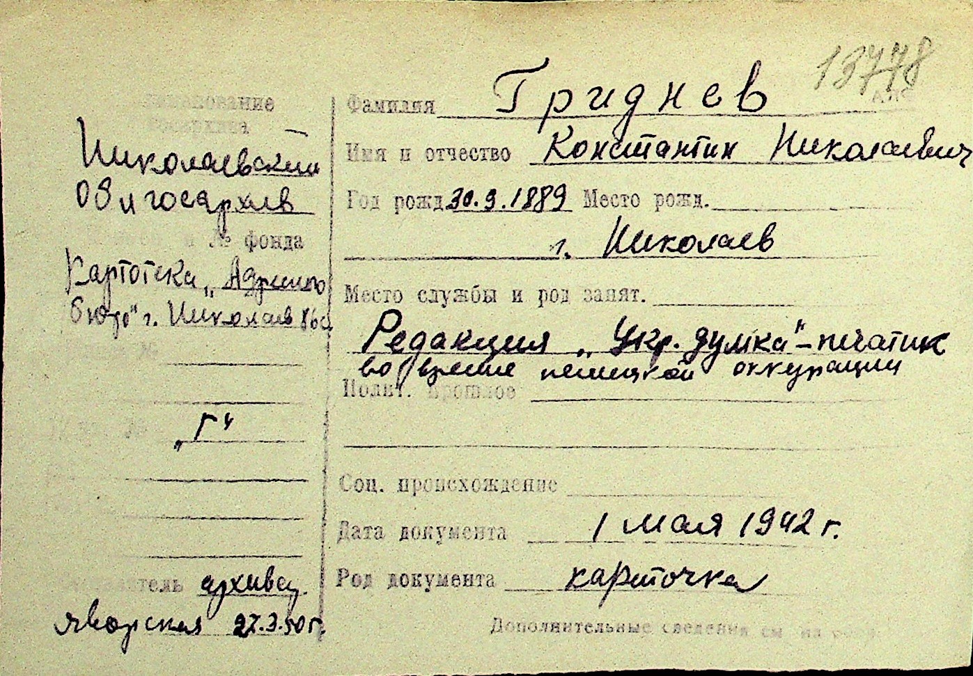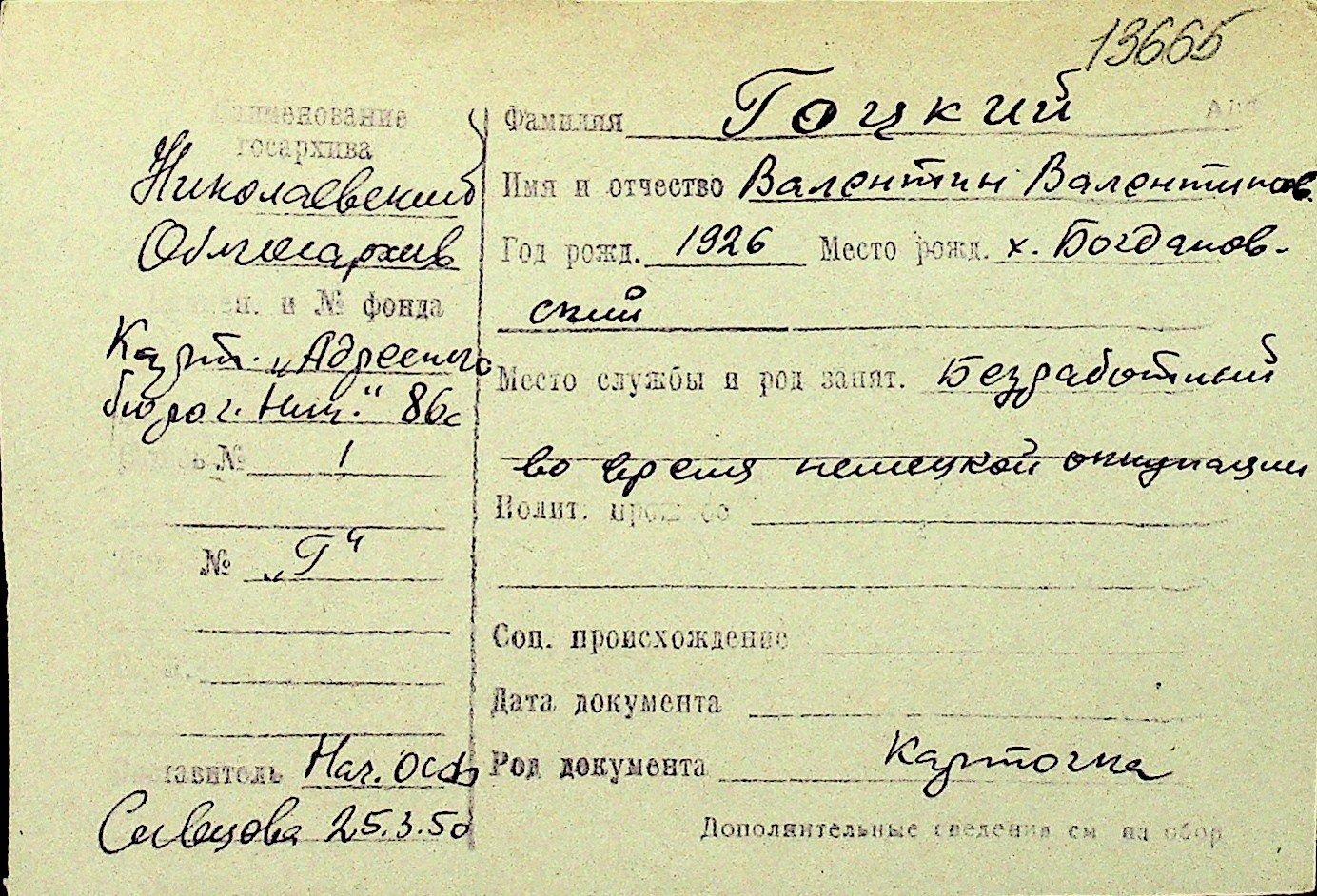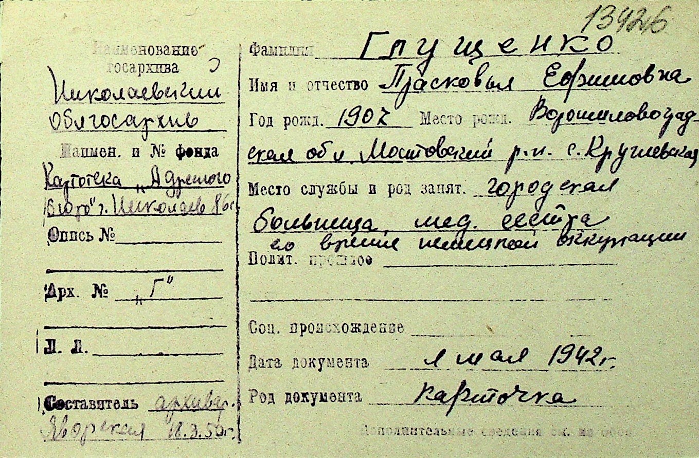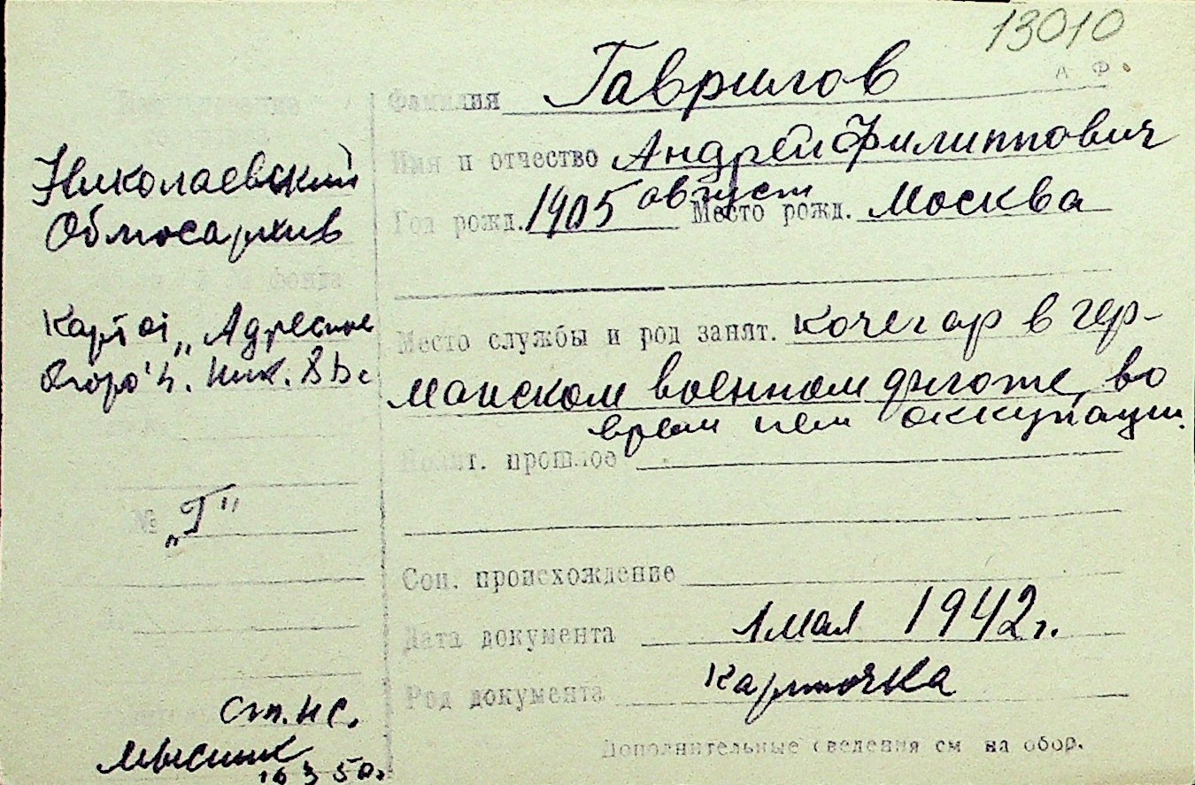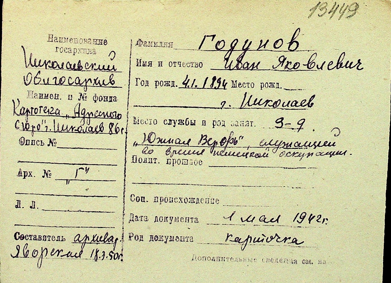 • • Перелік карток до фонду № Н-1016
