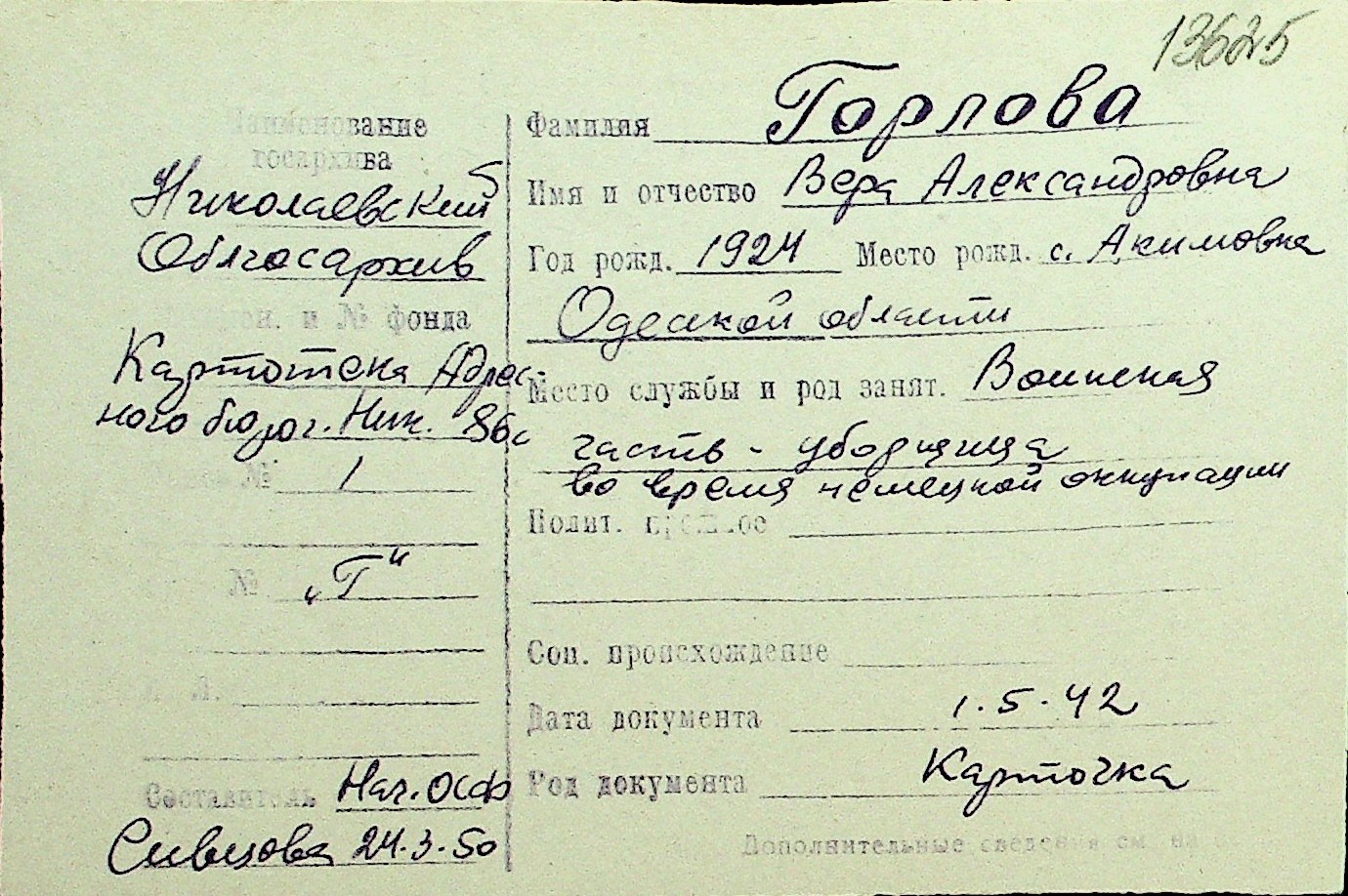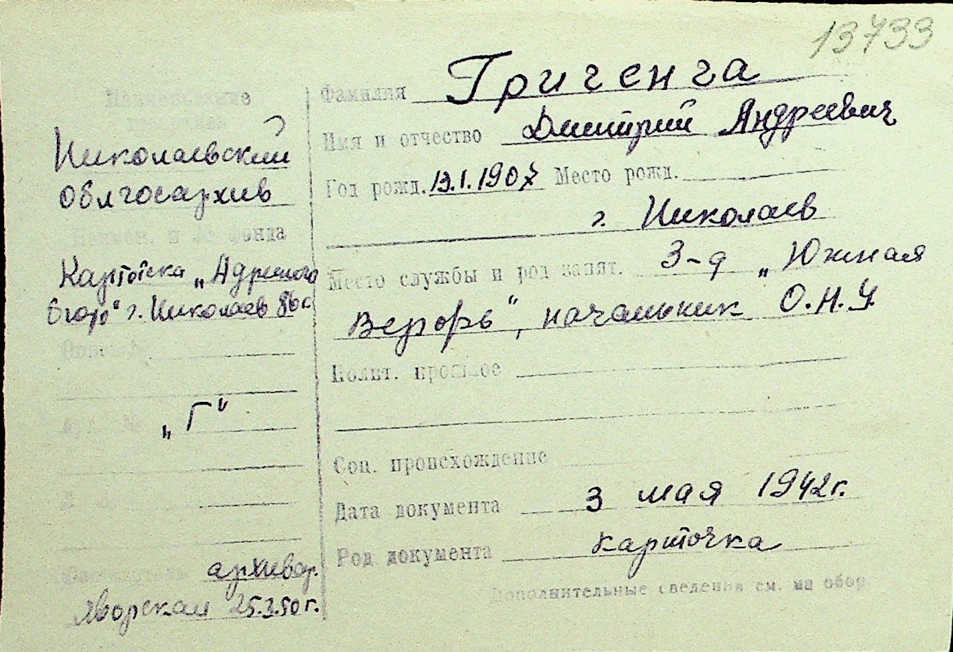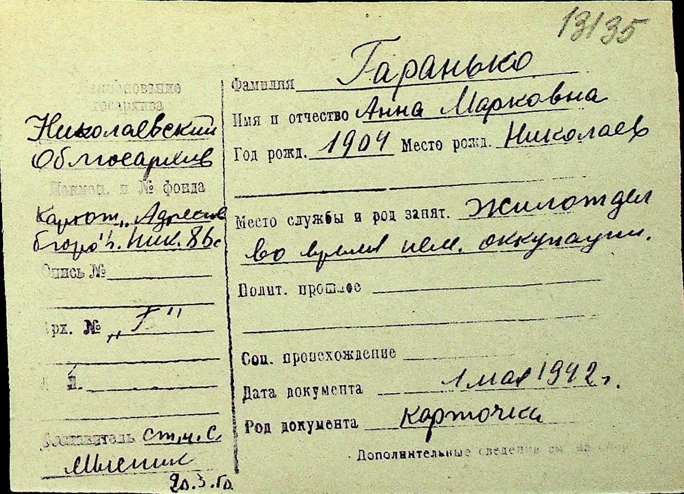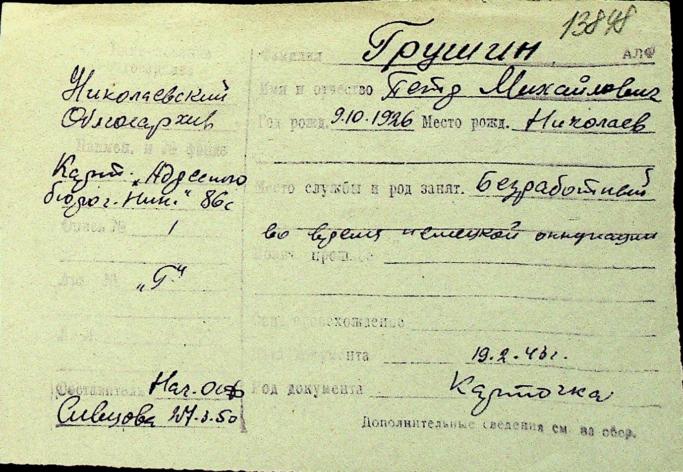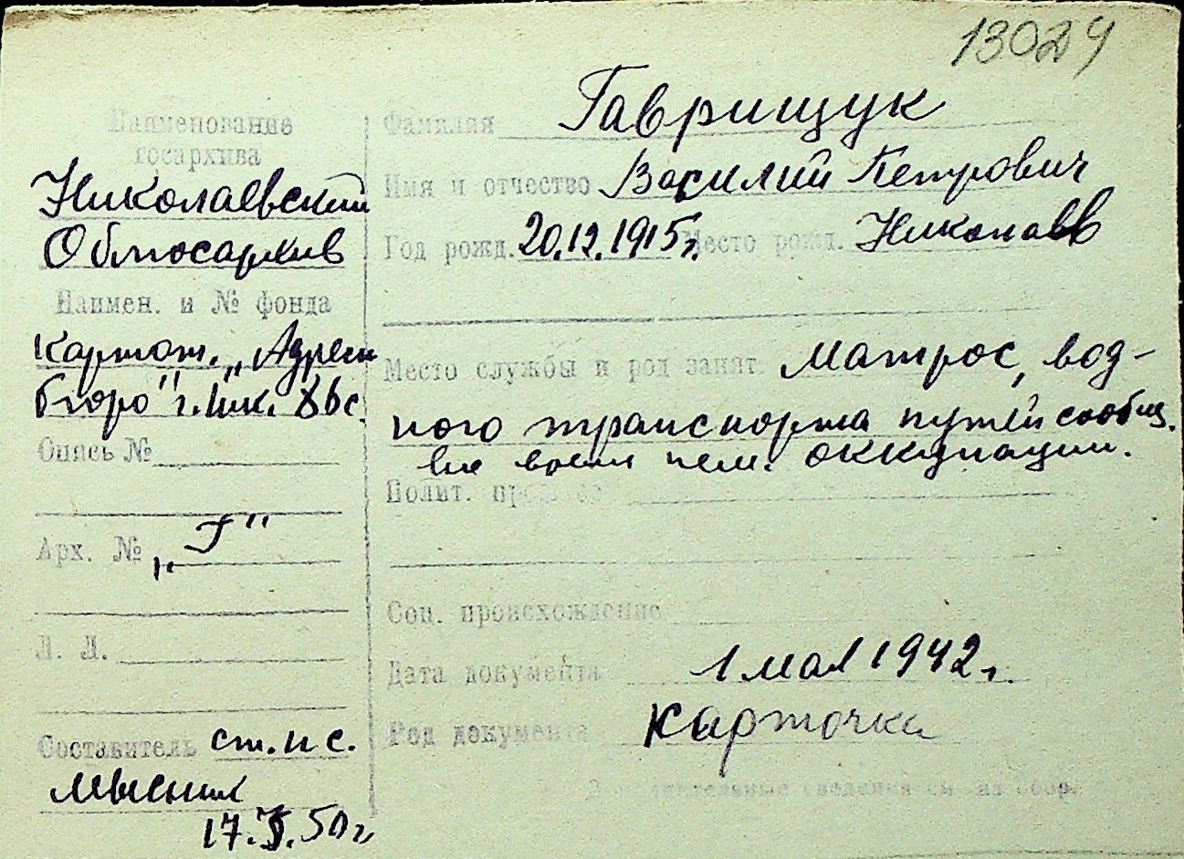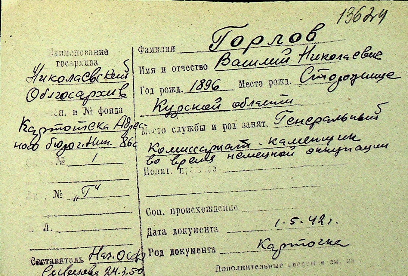 • • Перелік карток до фонду № Н-1016