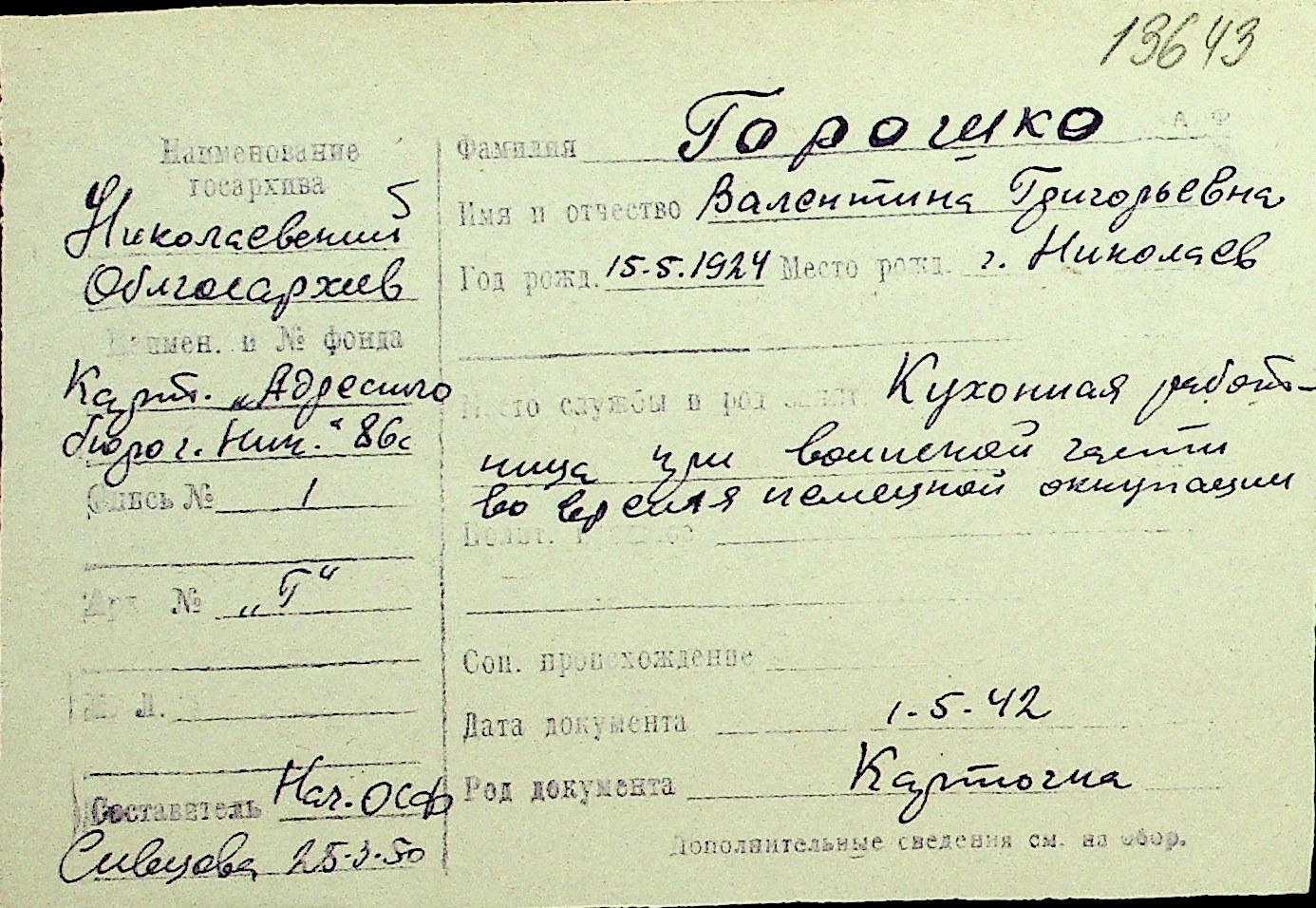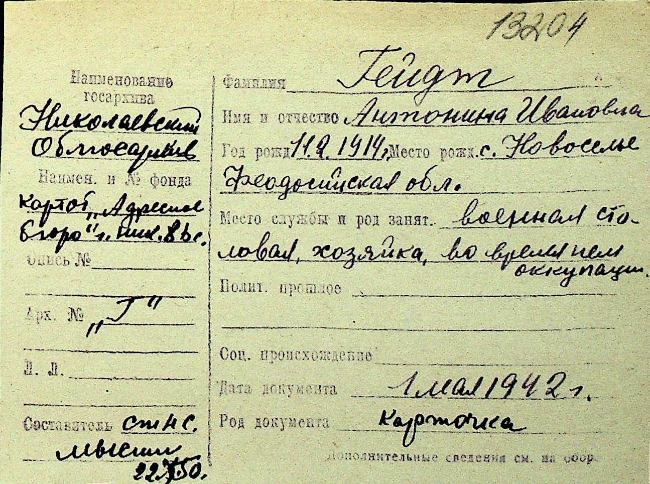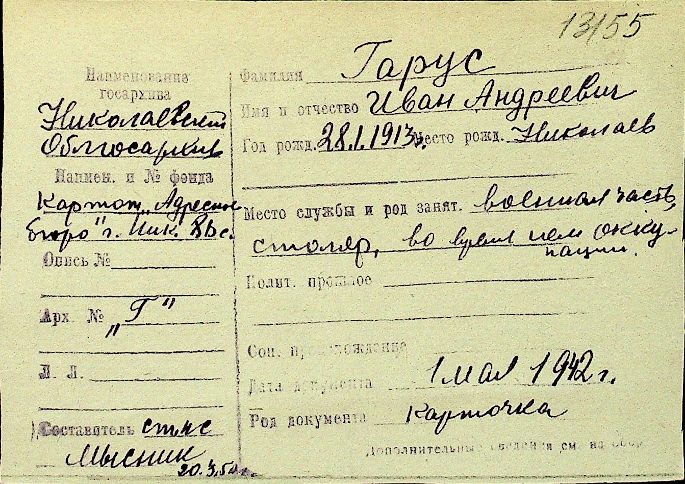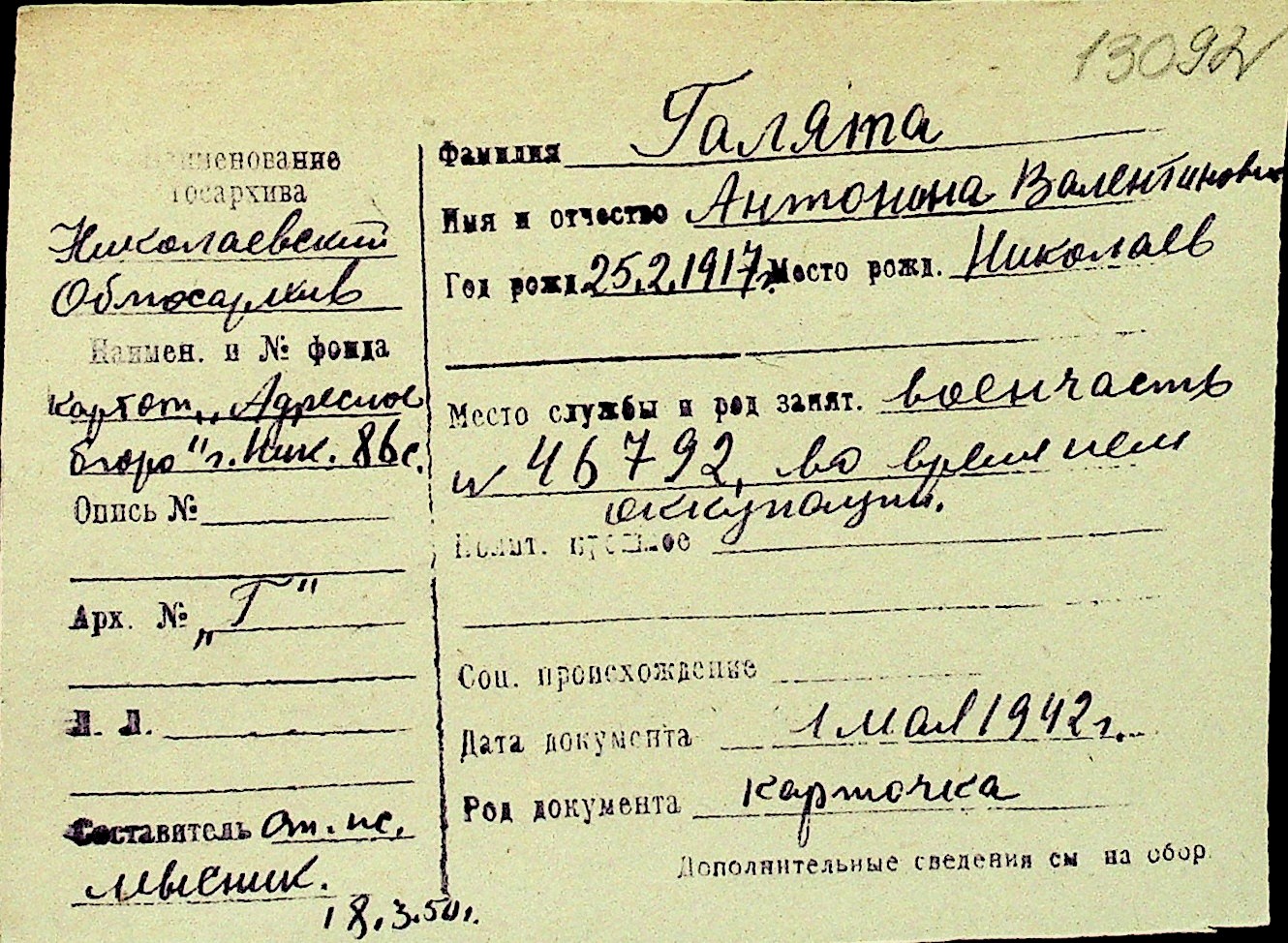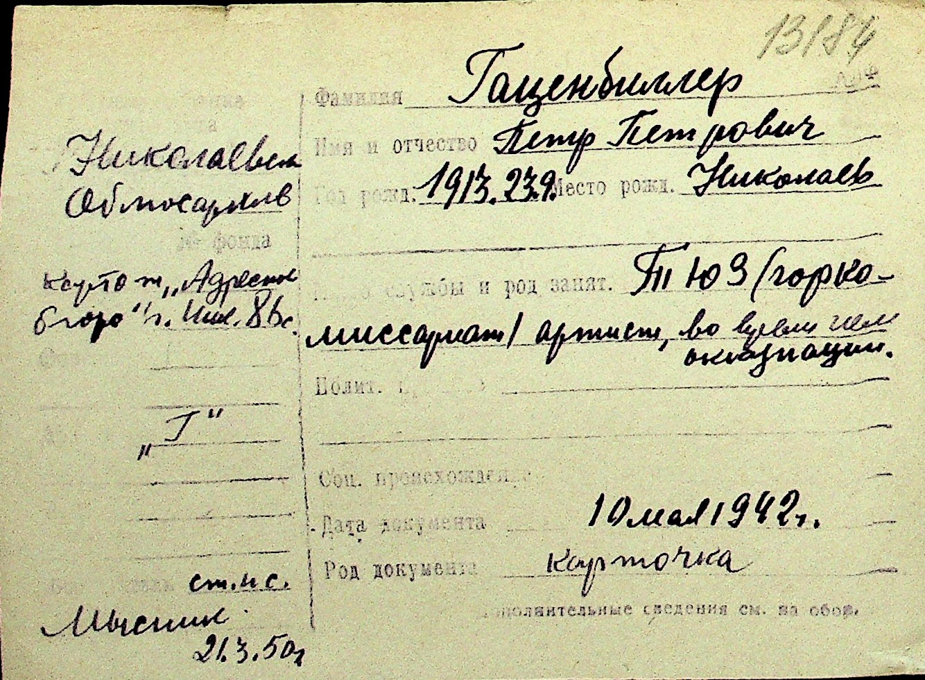 • • Перелік карток до фонду № Н-1016