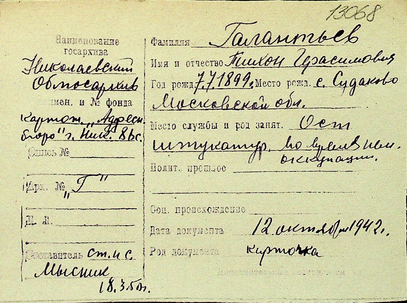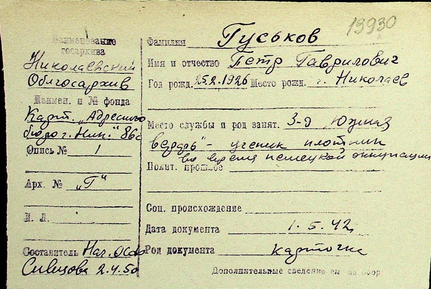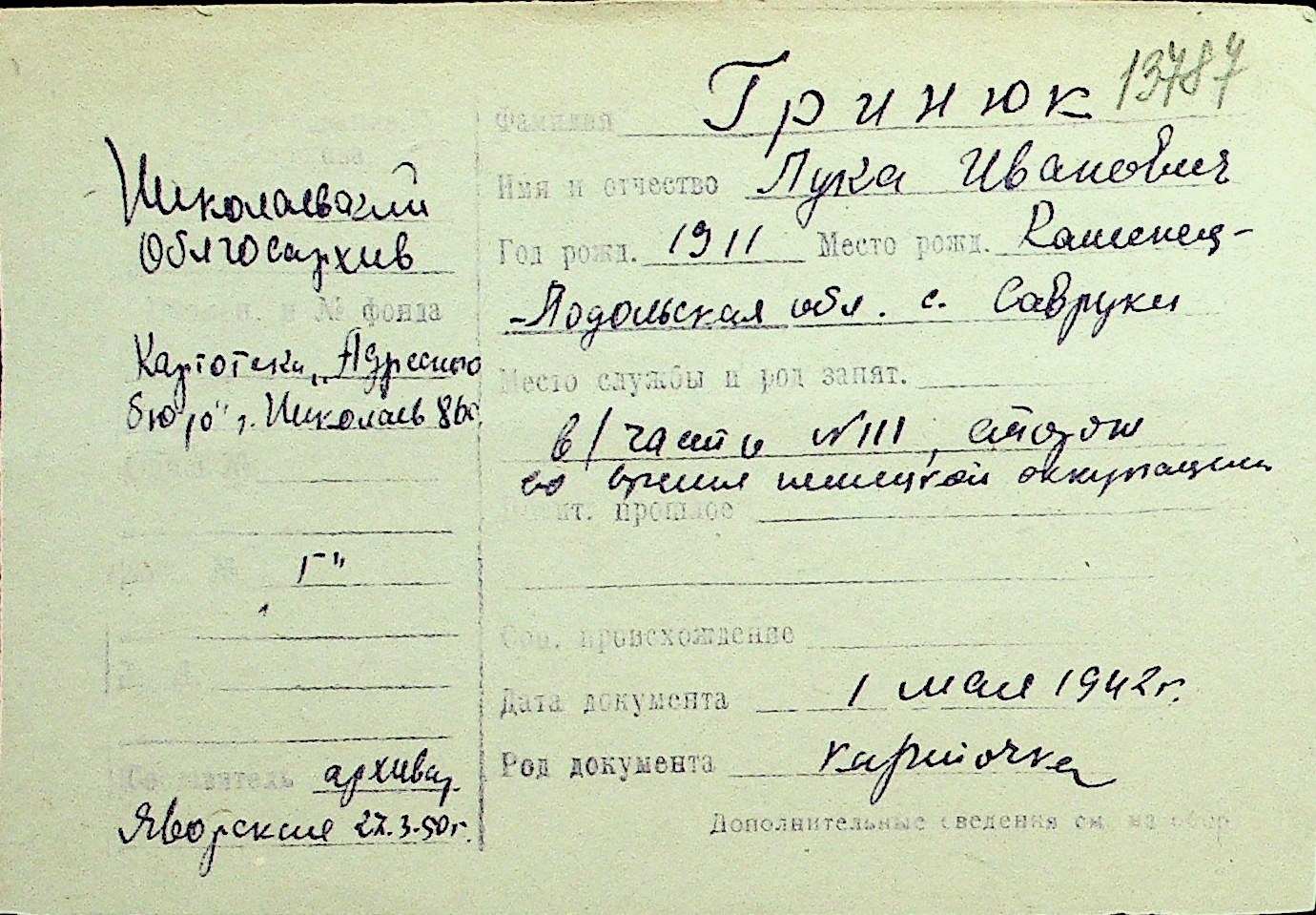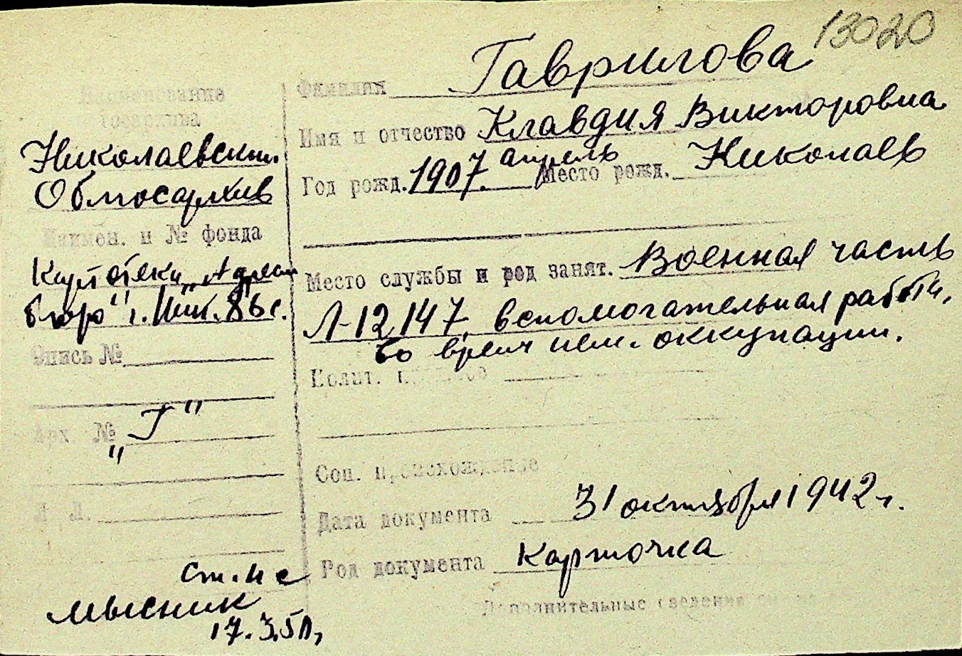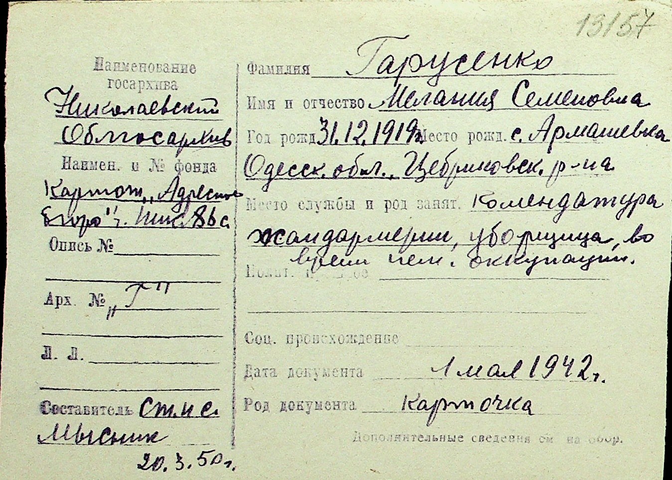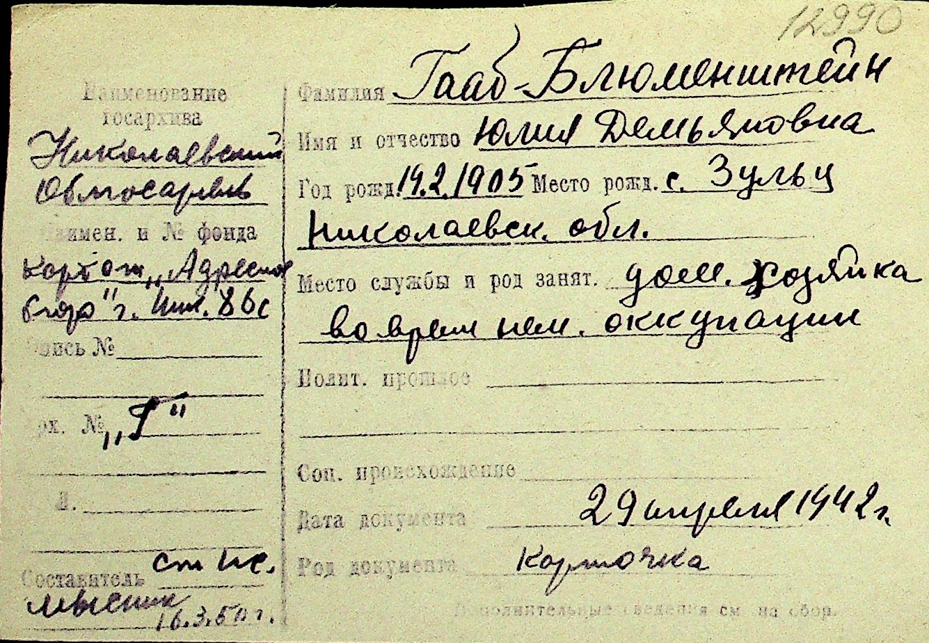 • • Перелік карток до фонду № Н-1016