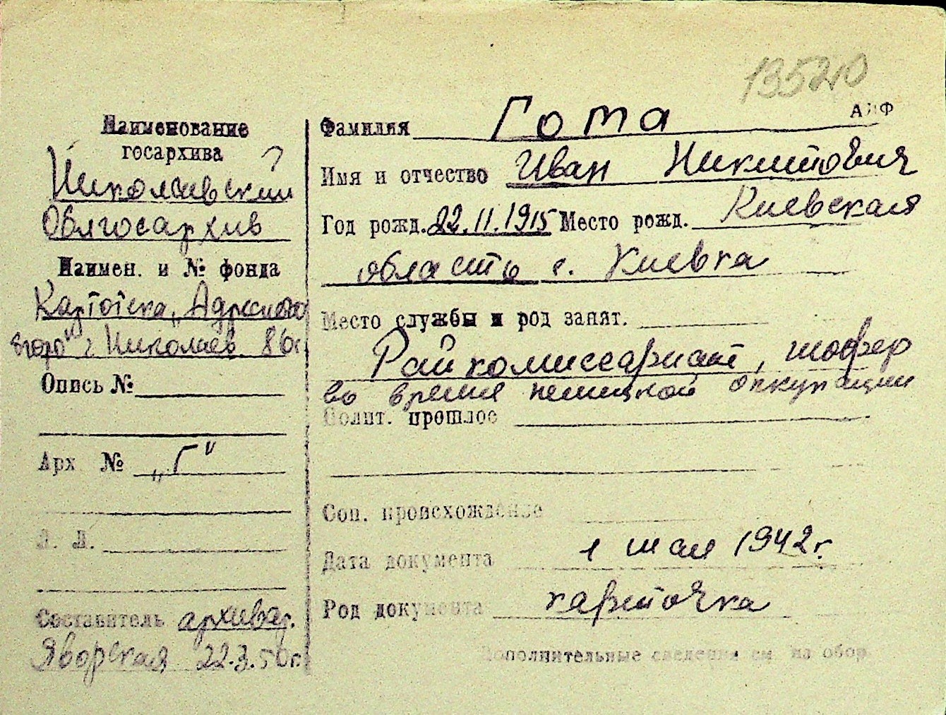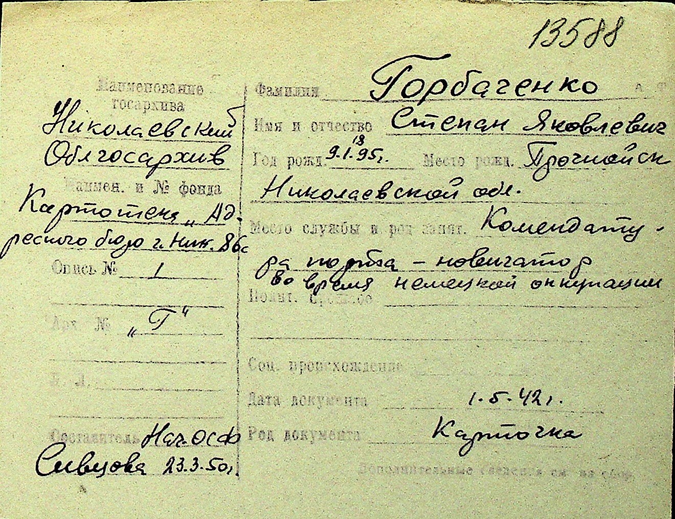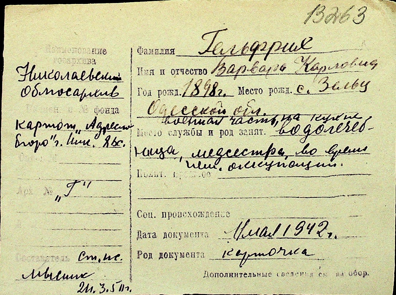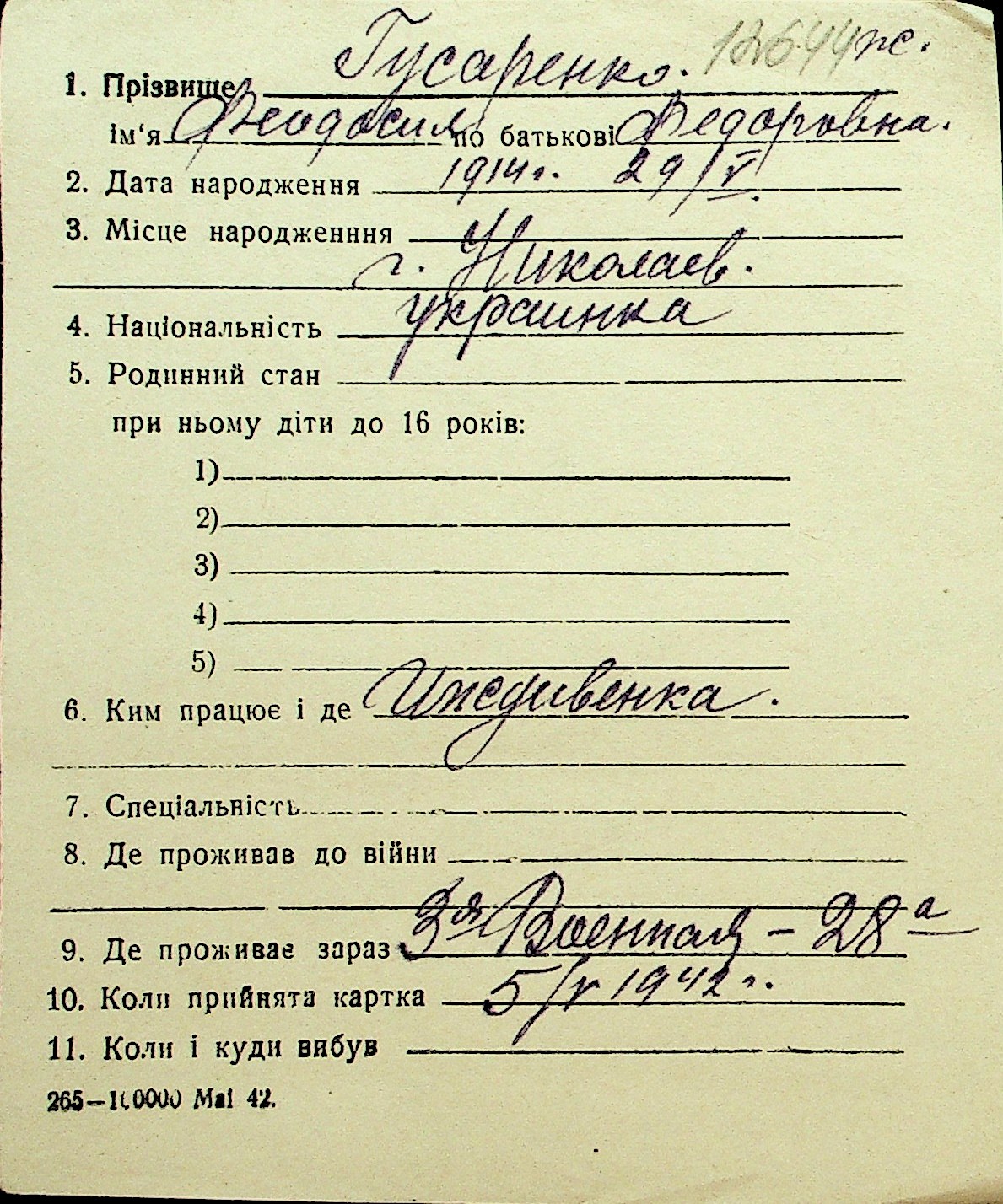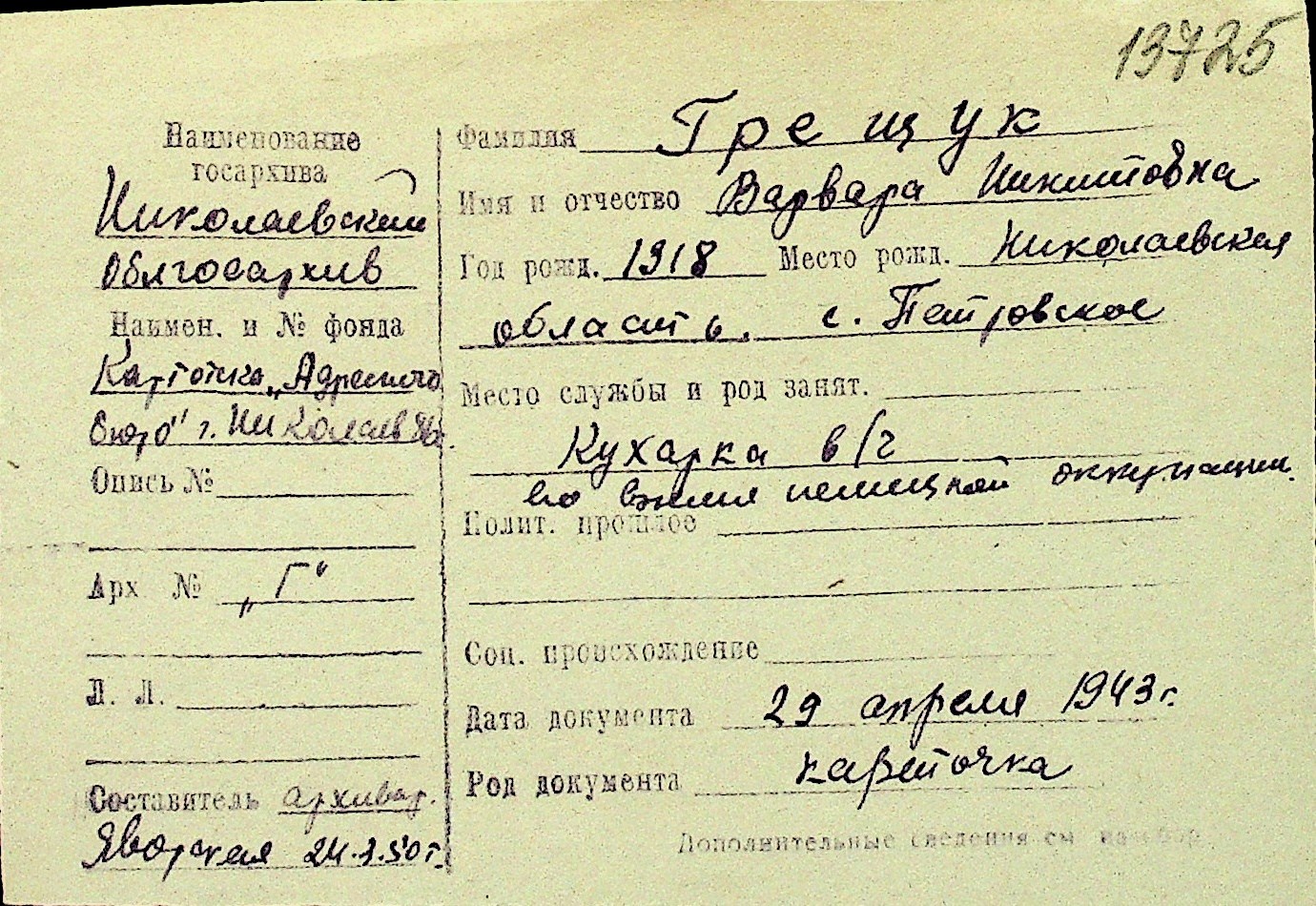 • • Перелік карток до фонду № Н-1016