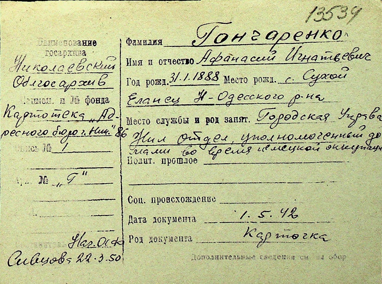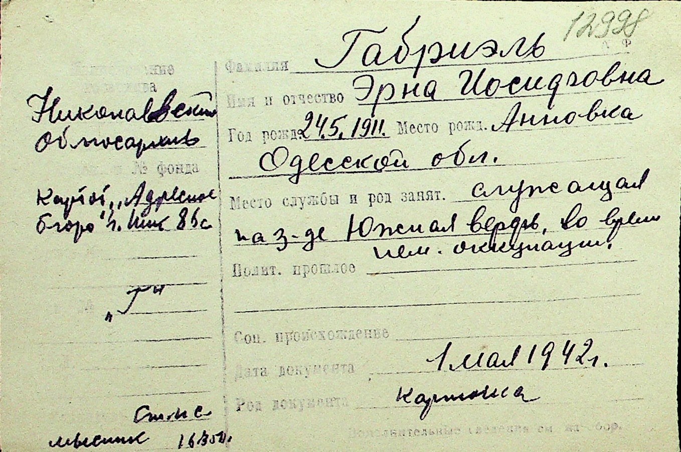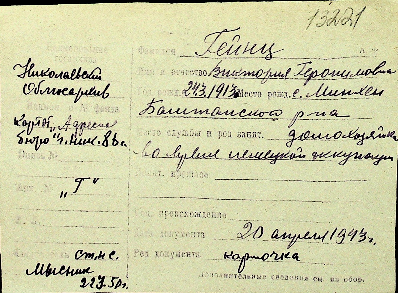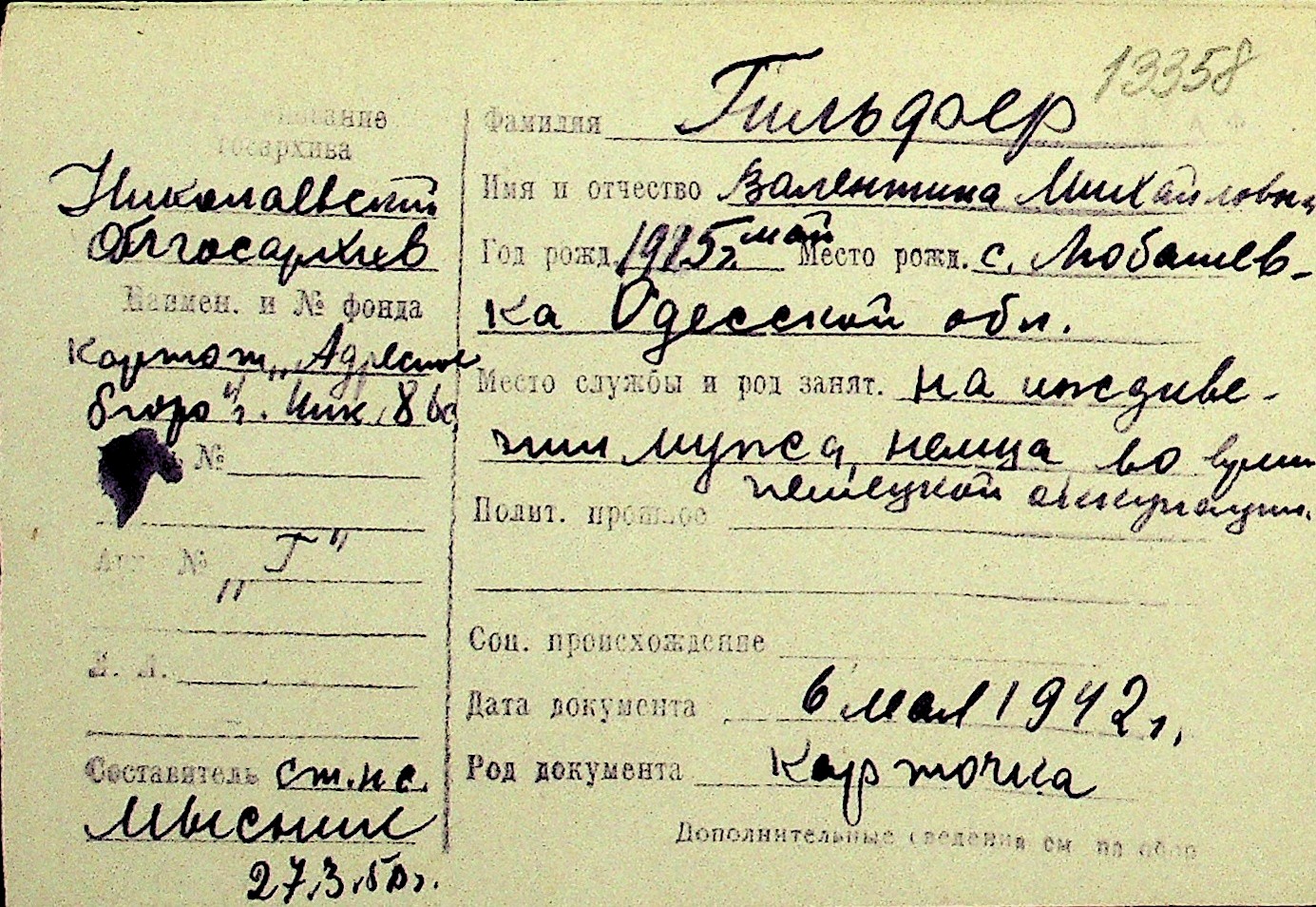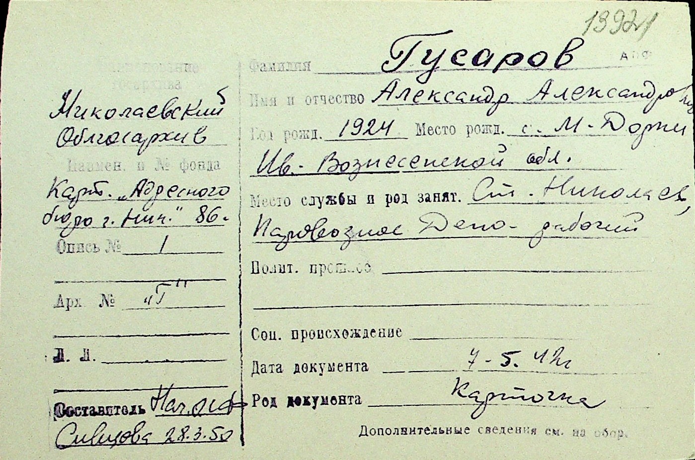 • • Перелік карток до фонду № Н-1016