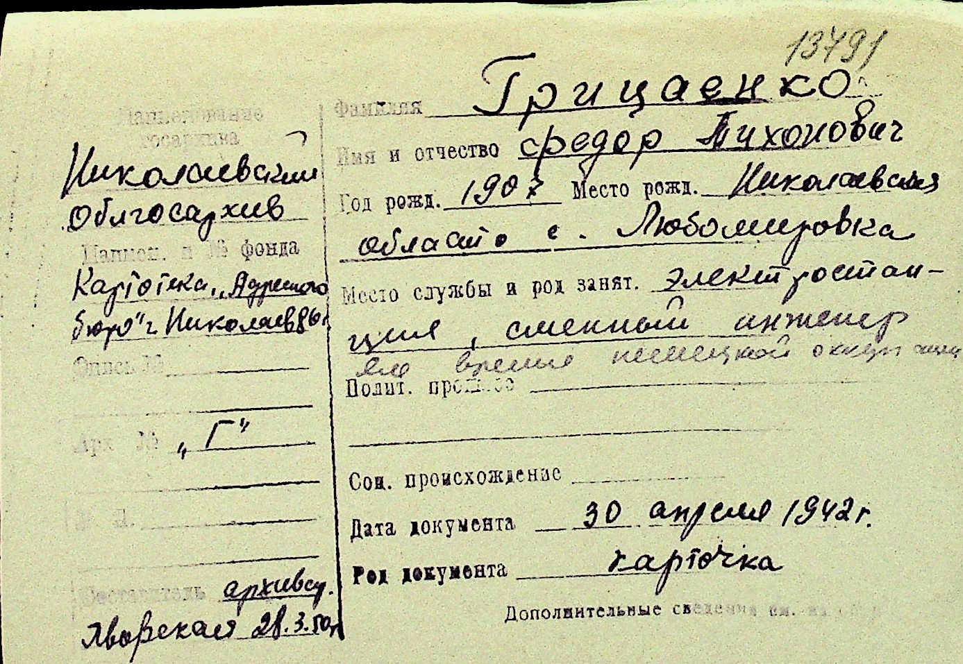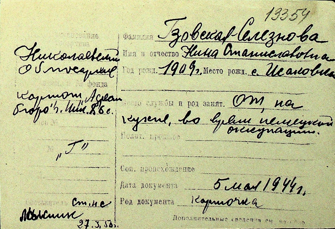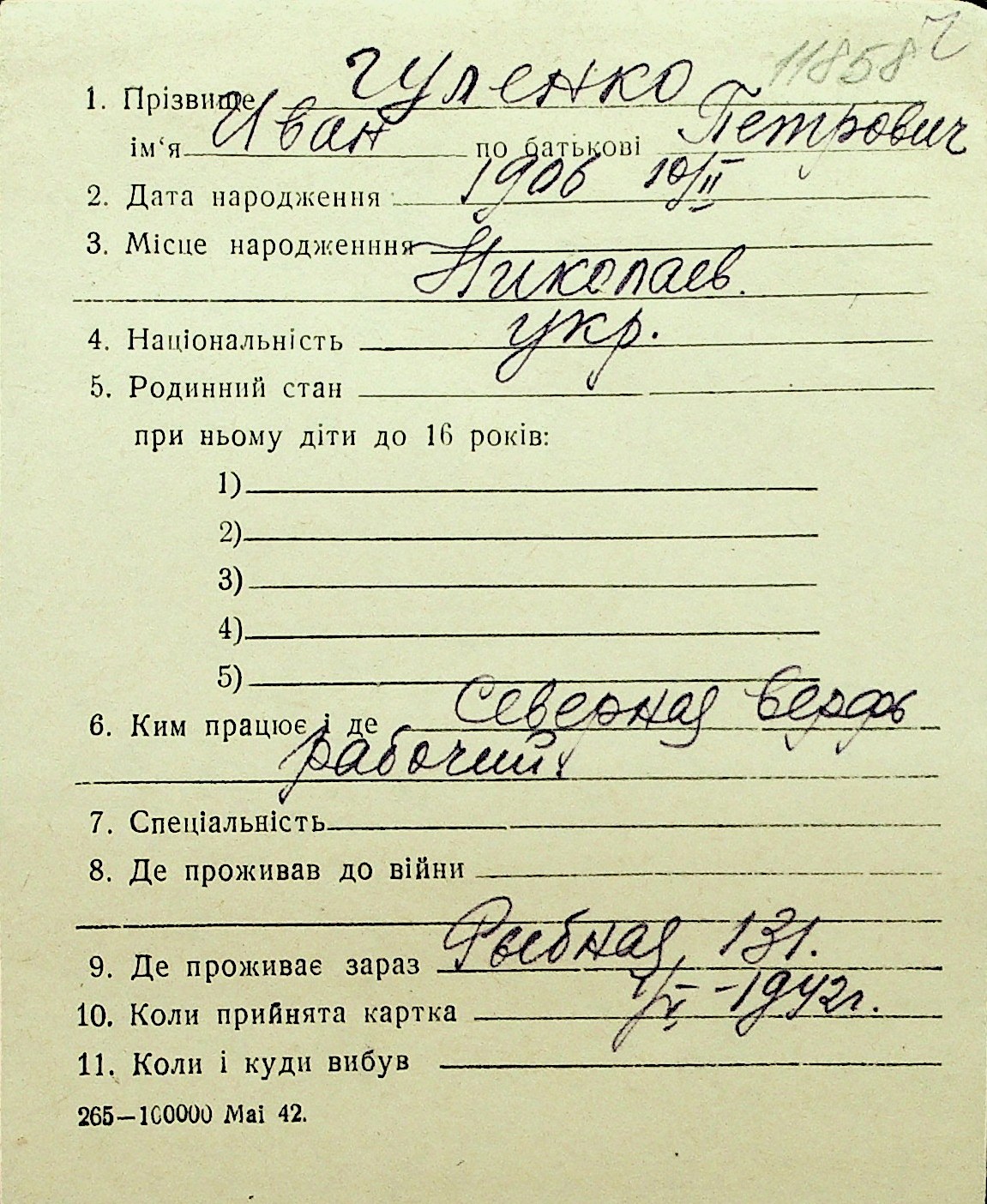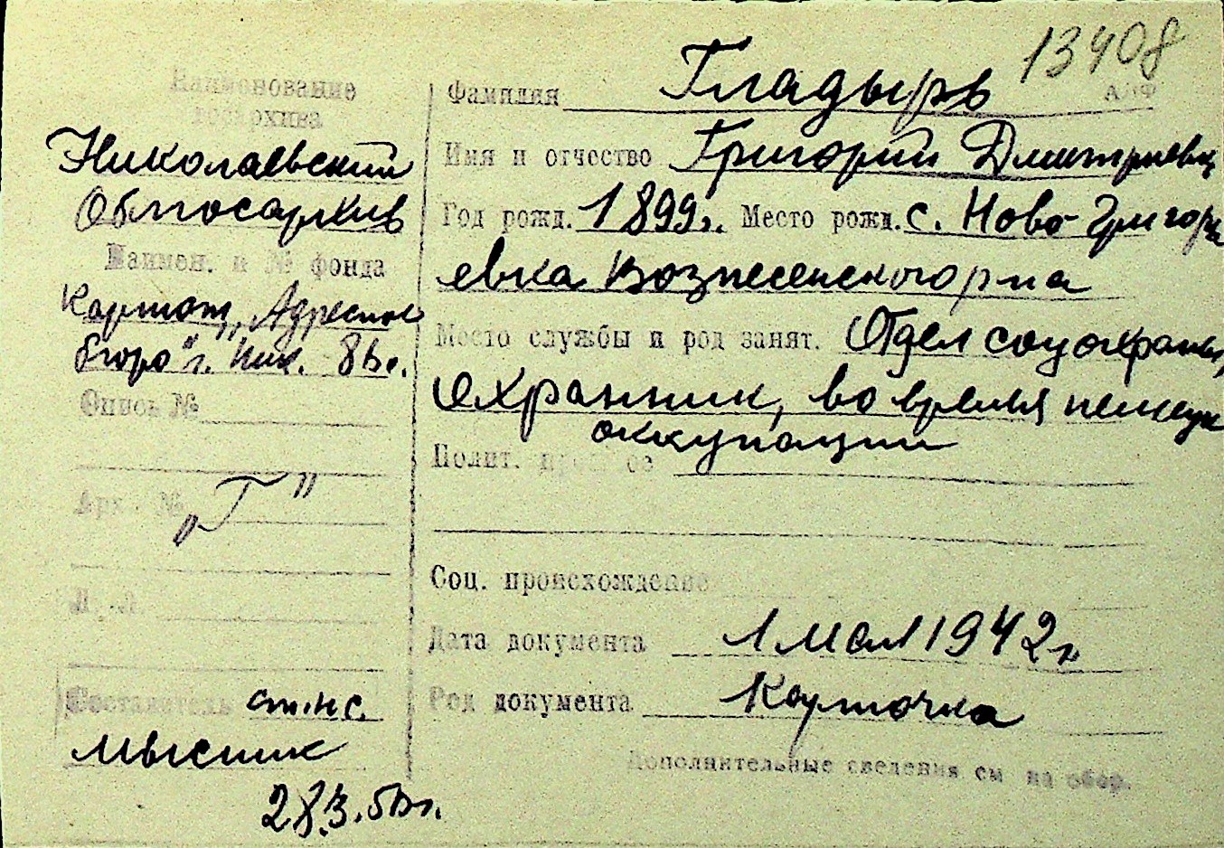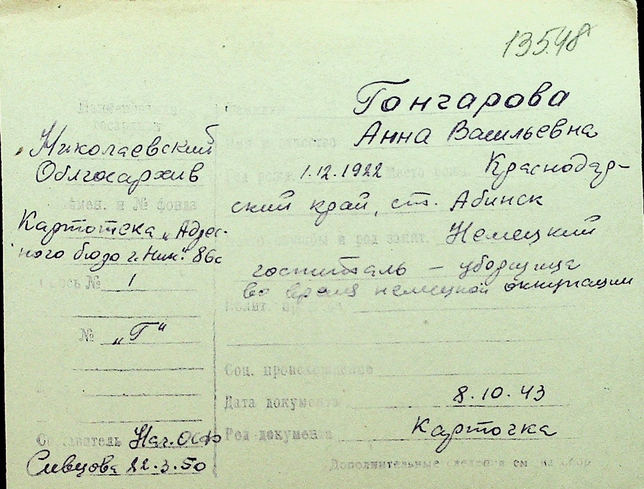 • • Перелік карток до фонду № Н-1016
