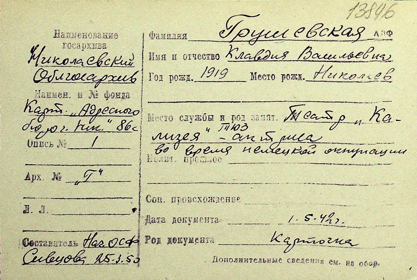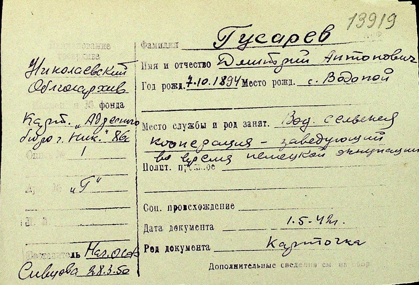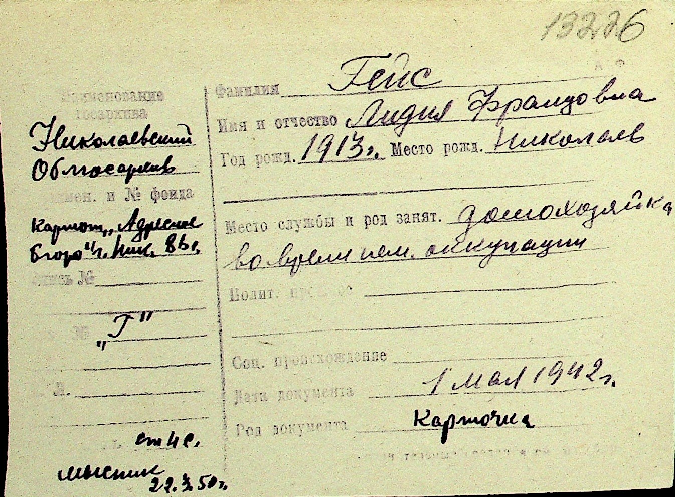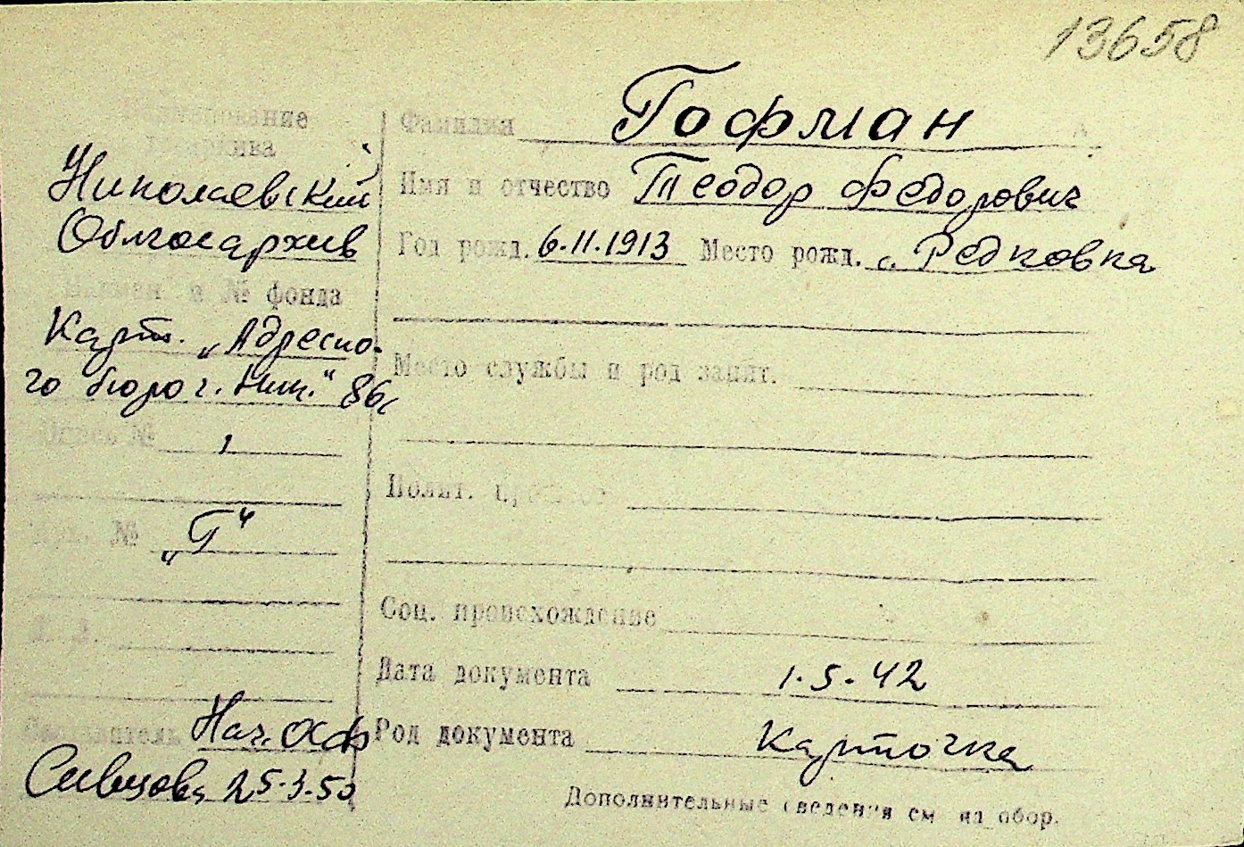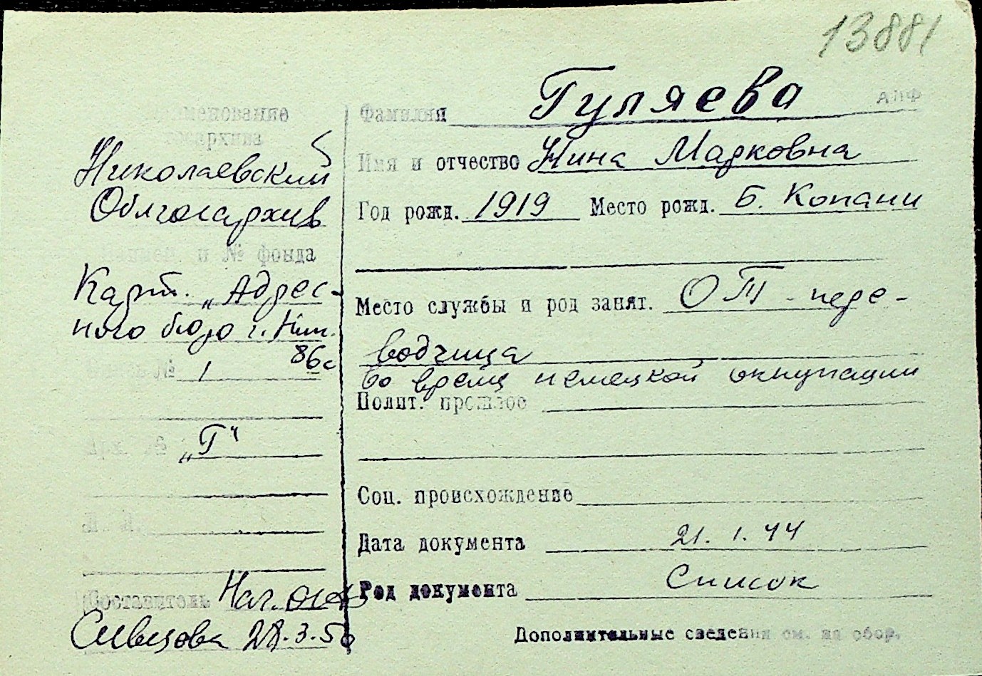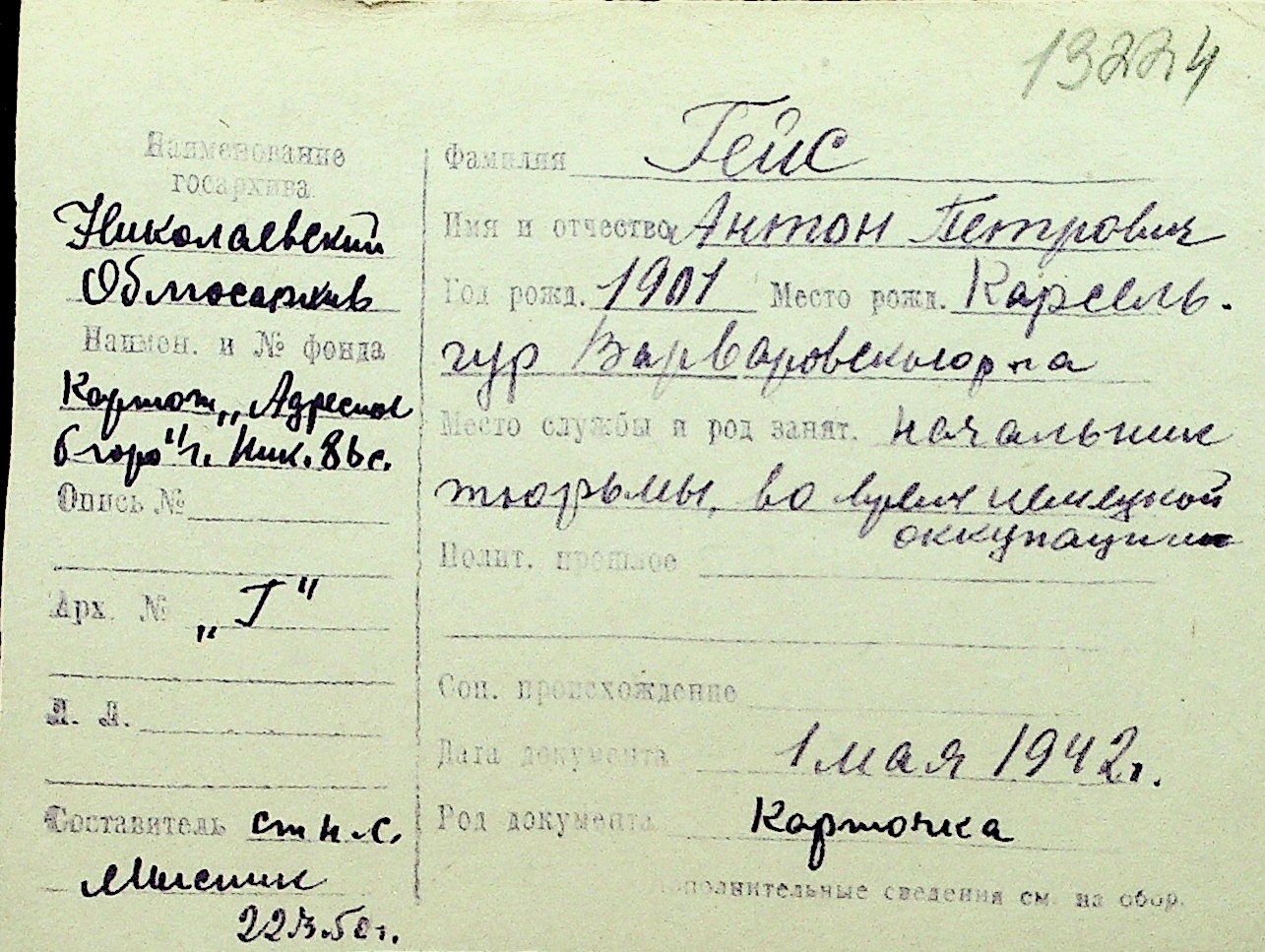 • • Перелік карток до фонду № Н-1016
