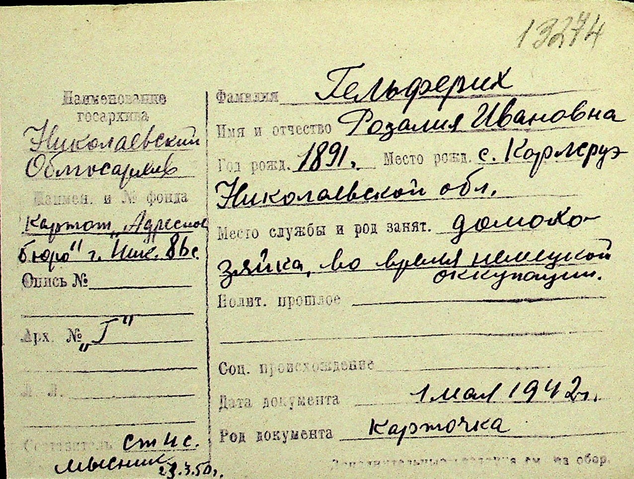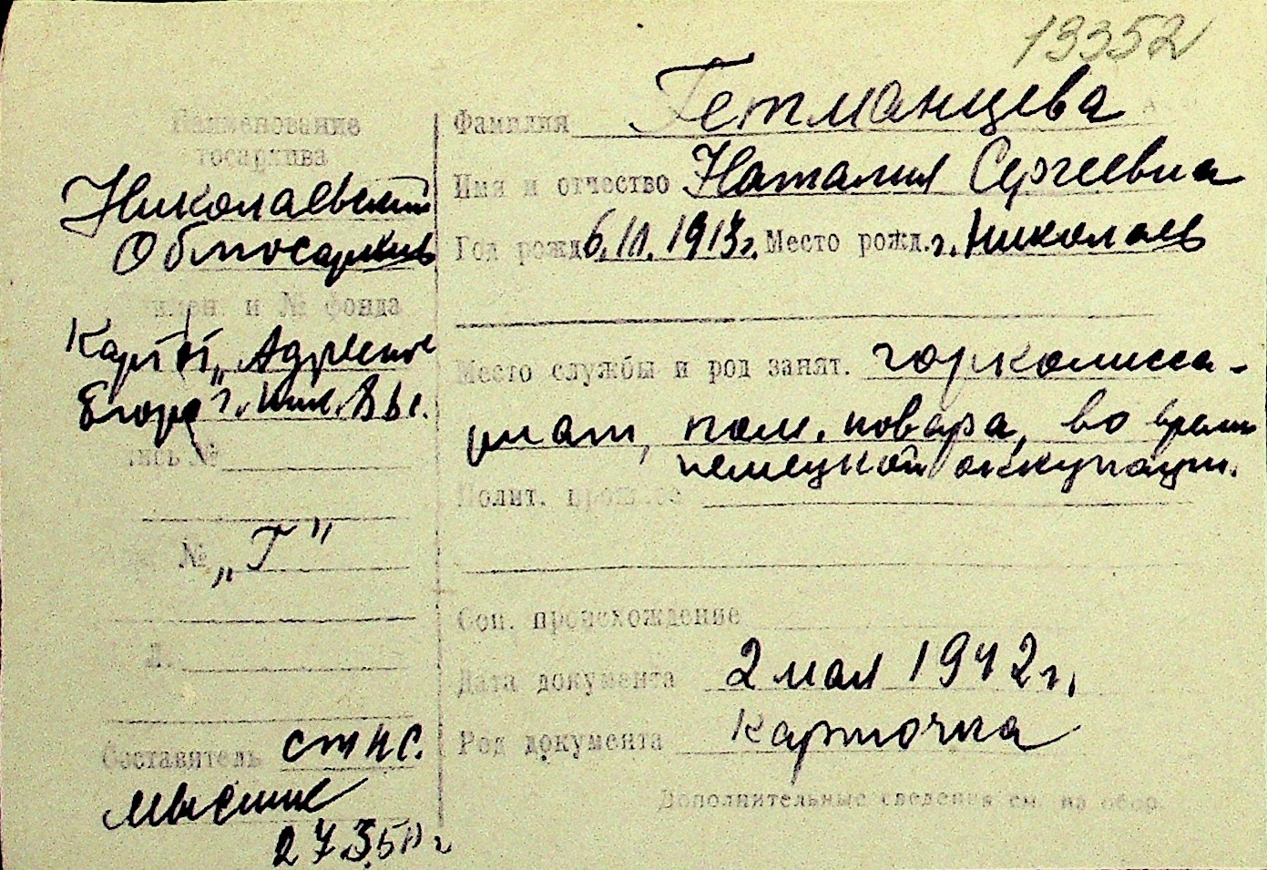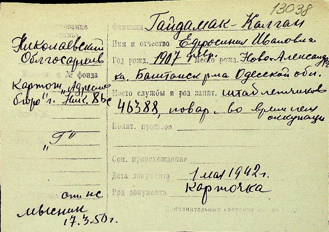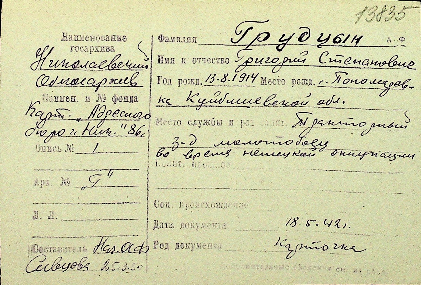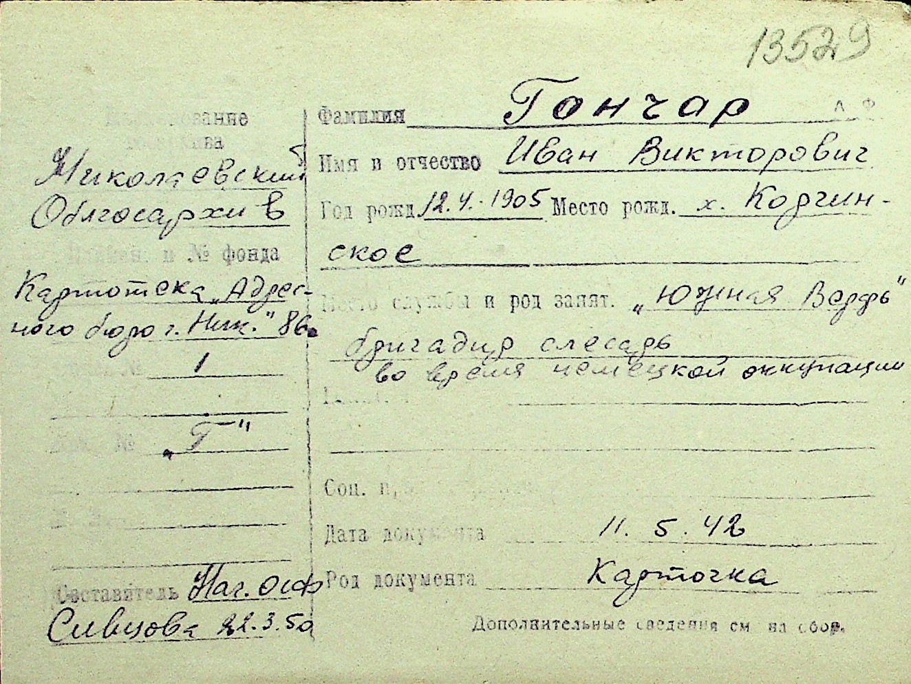 • • Перелік карток до фонду № Н-1016