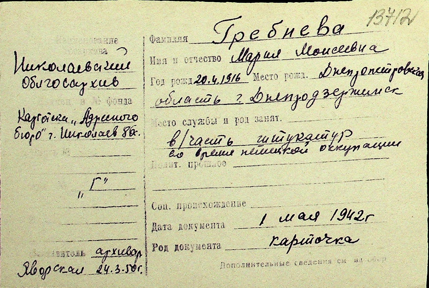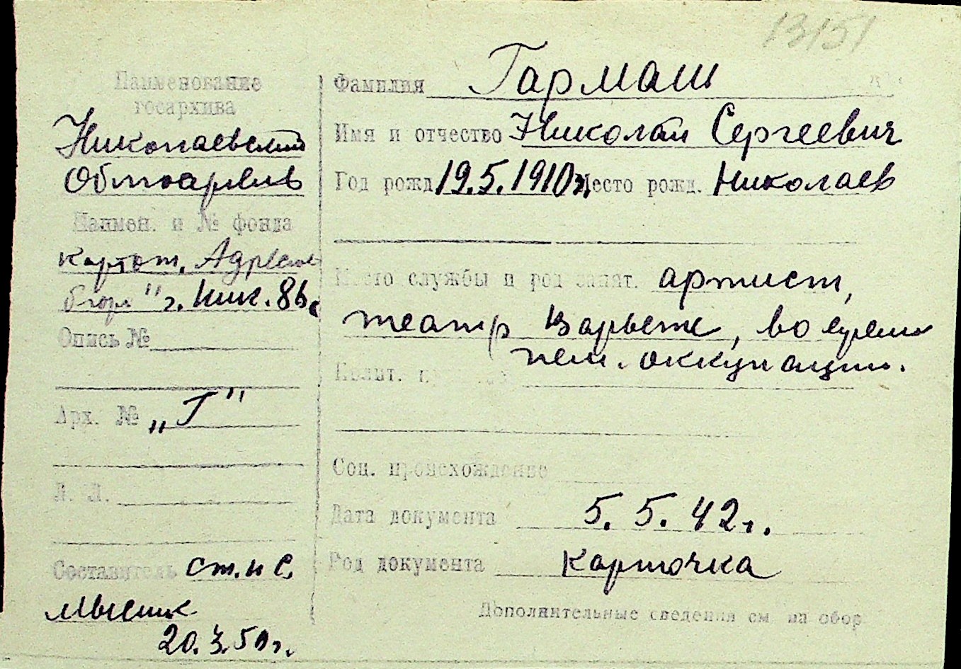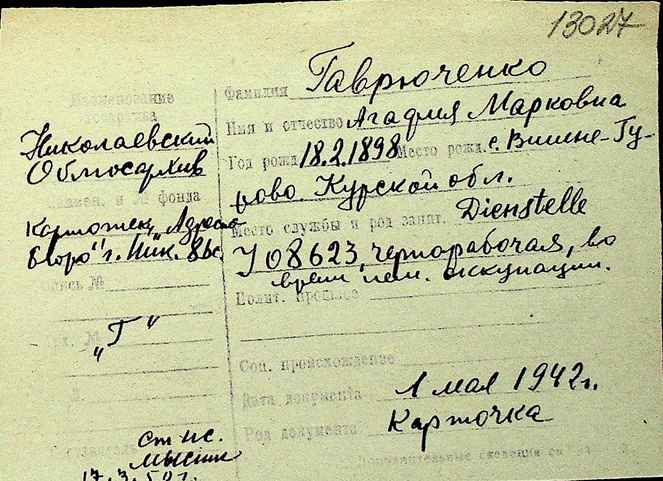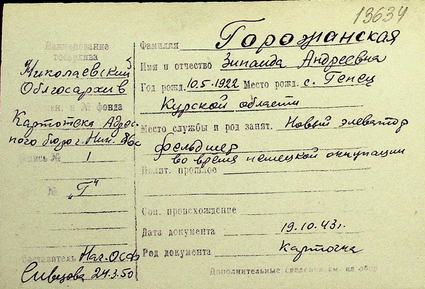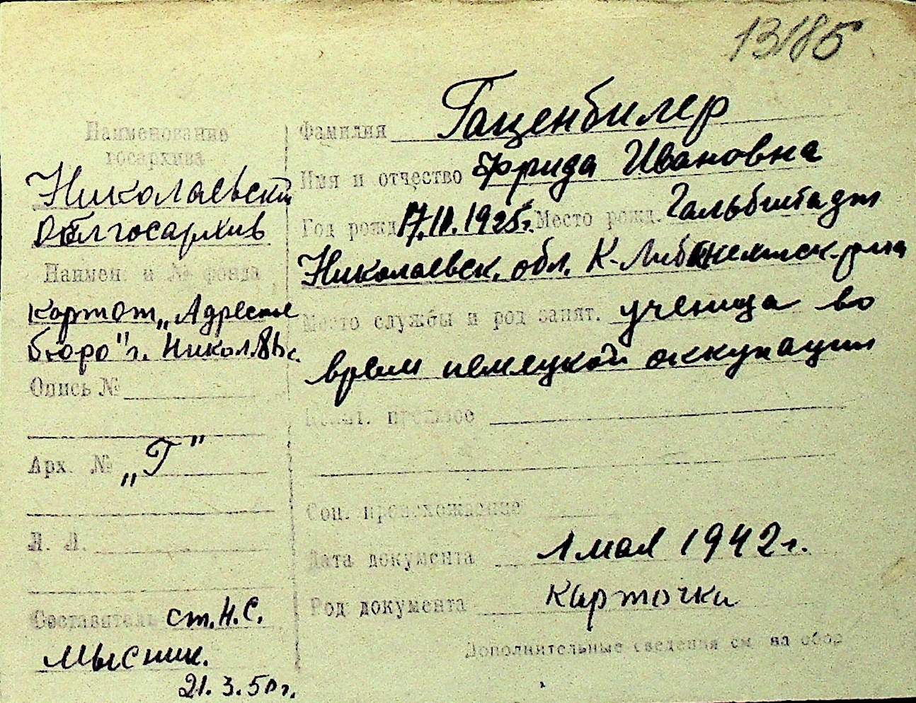 • • Перелік карток до фонду № Н-1016