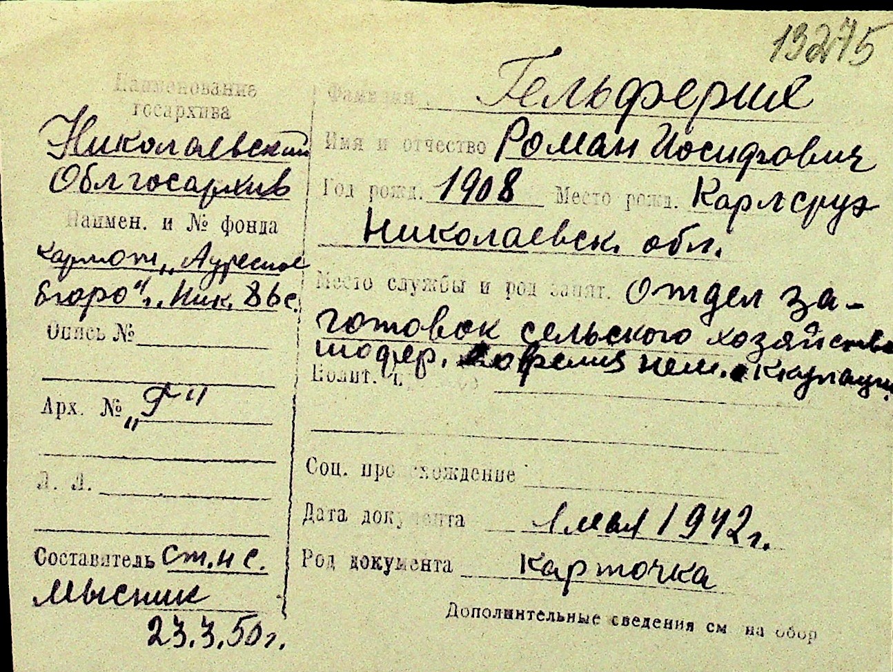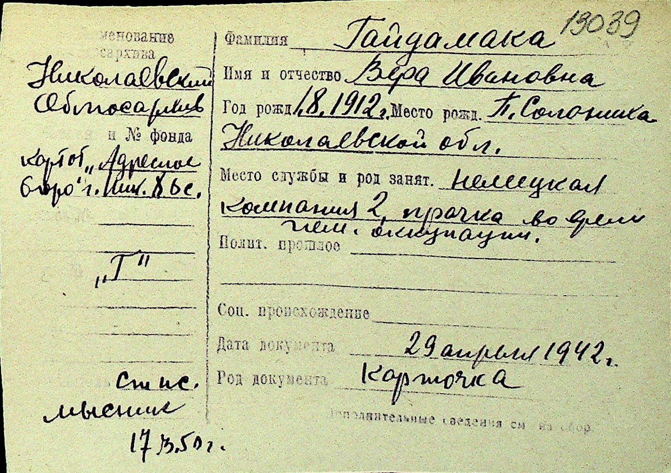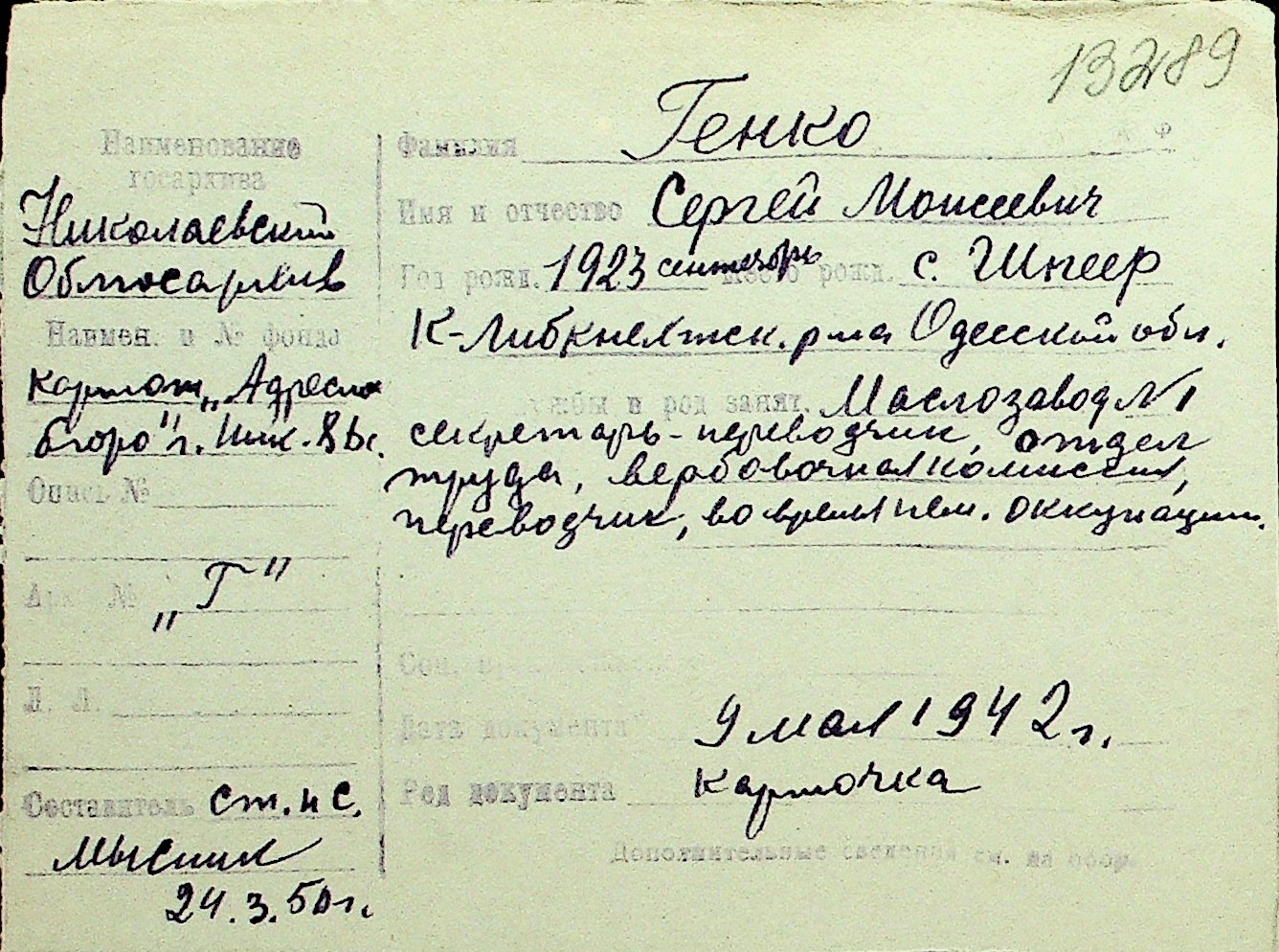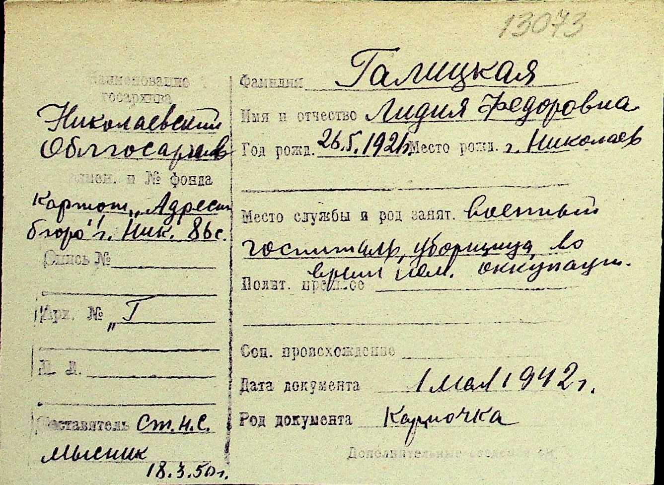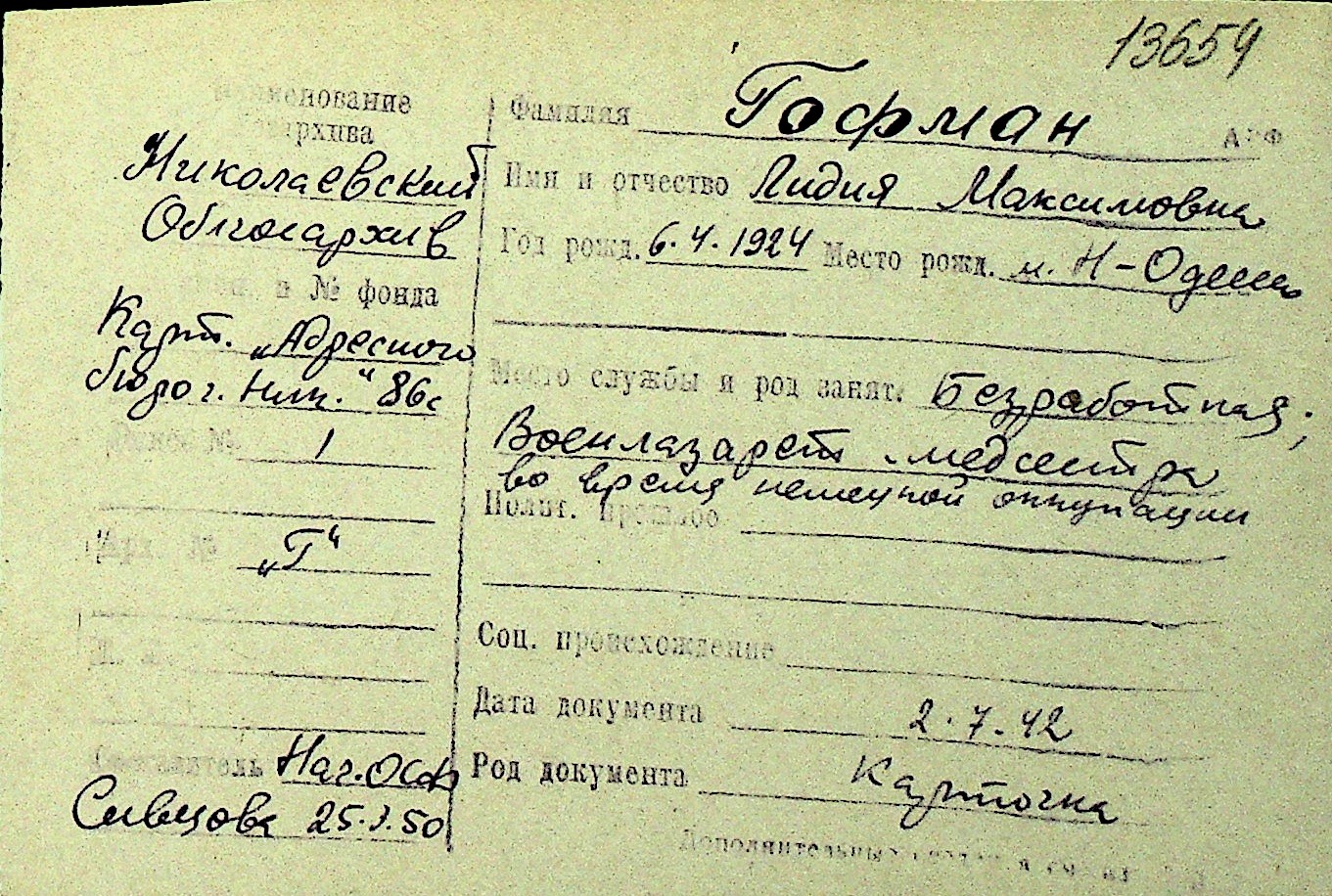 • • Перелік карток до фонду № Н-1016