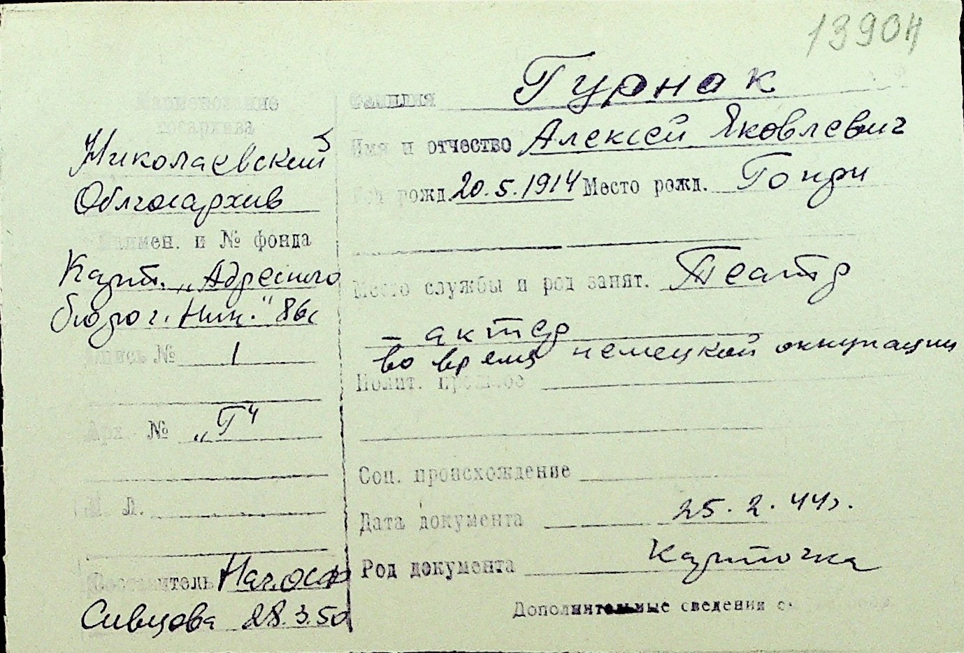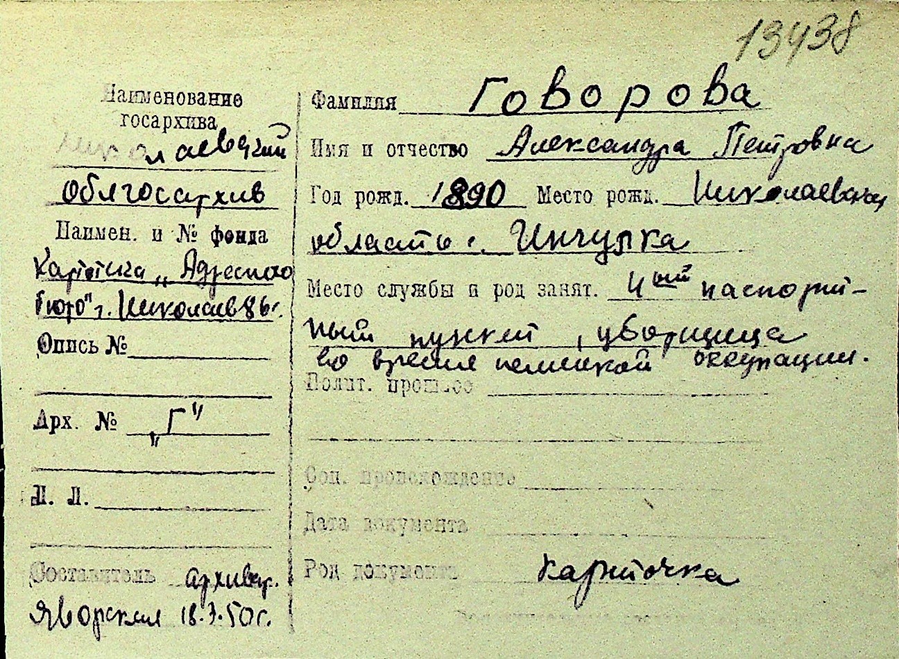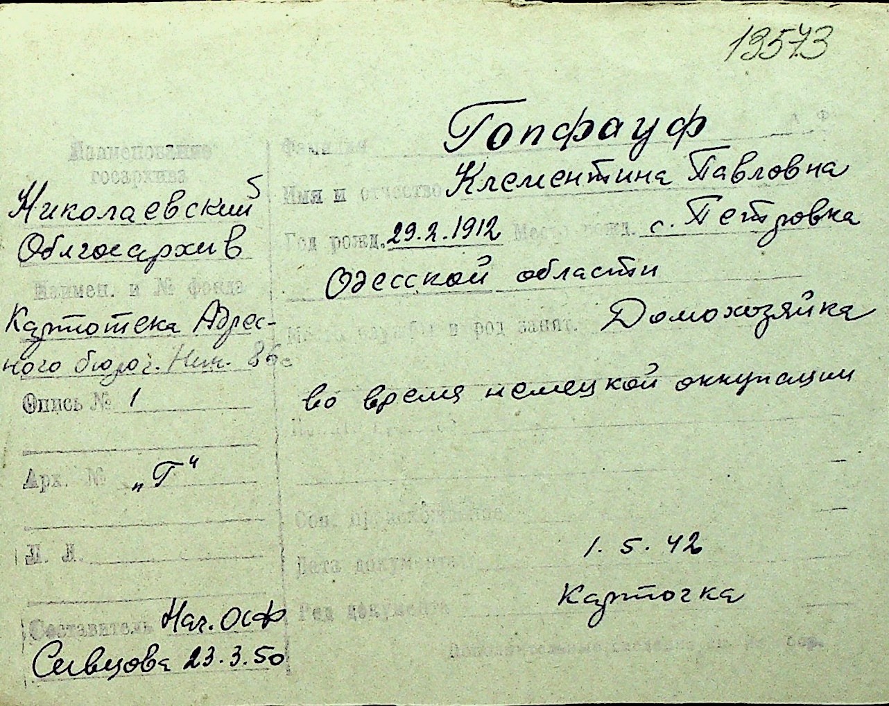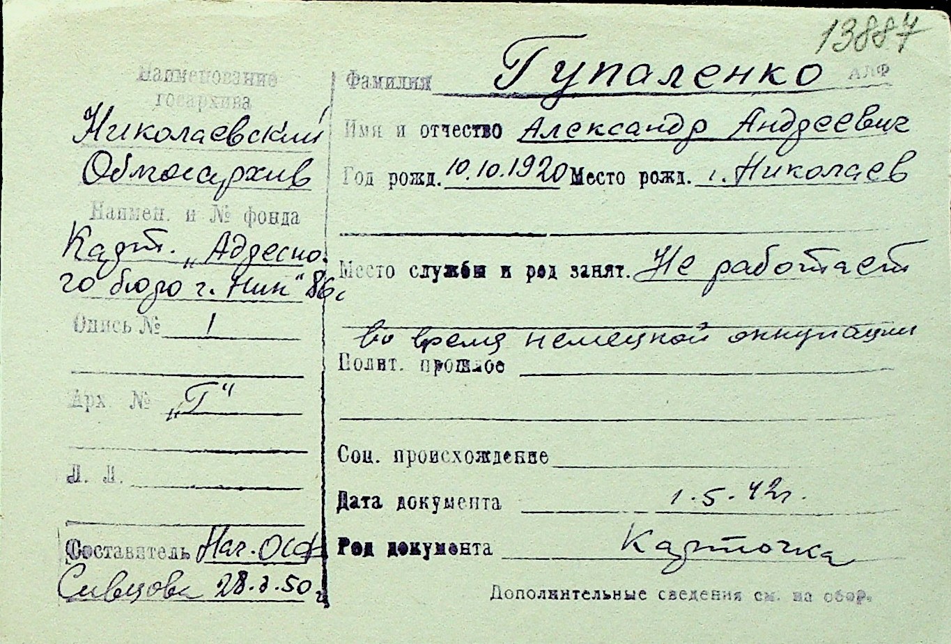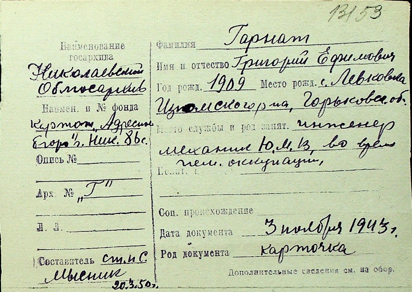 • • Перелік карток до фонду № Н-1016