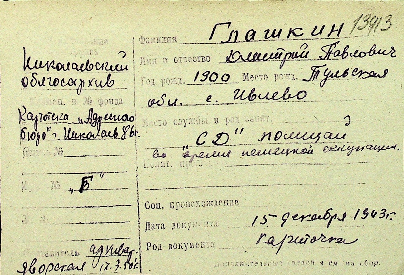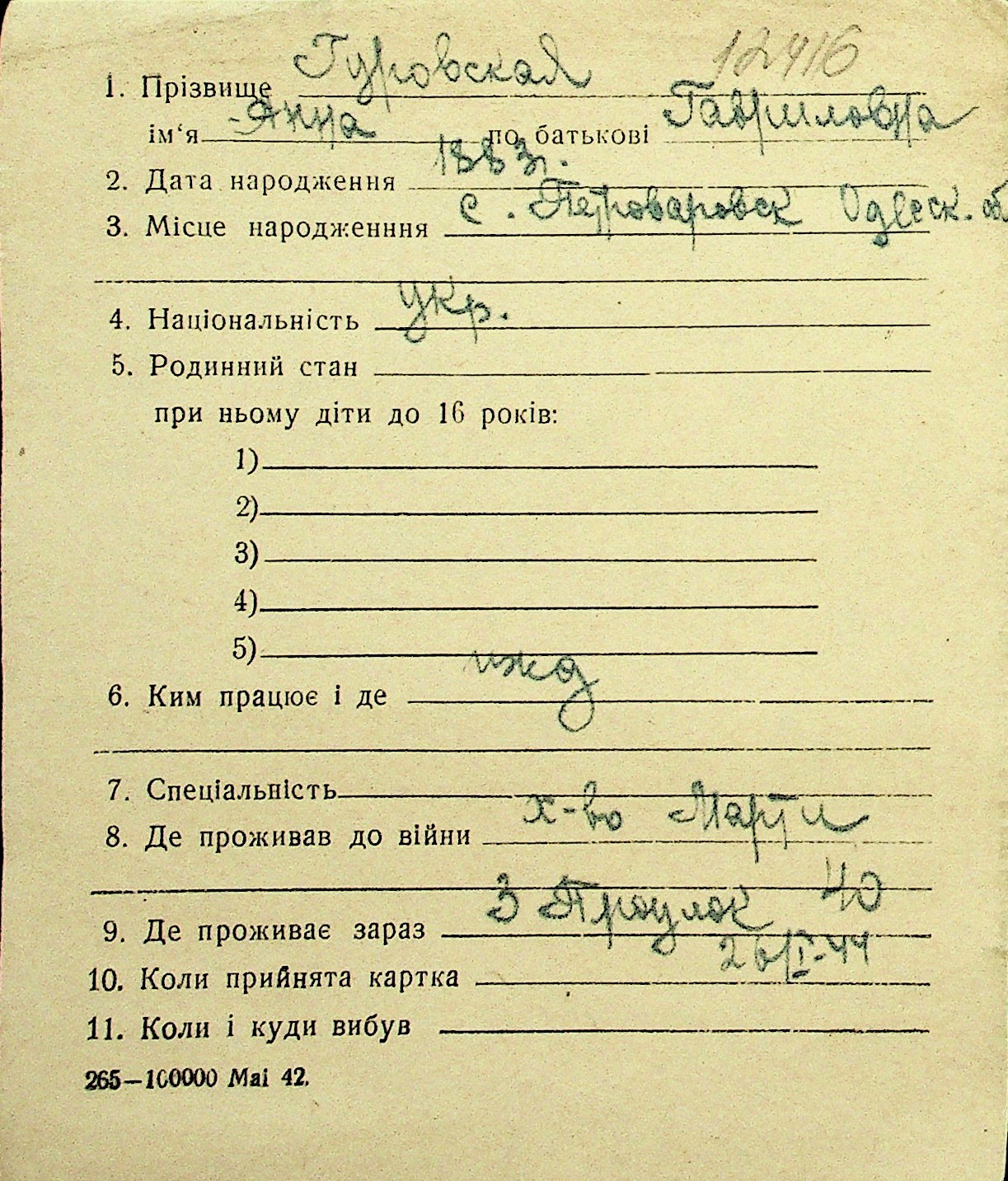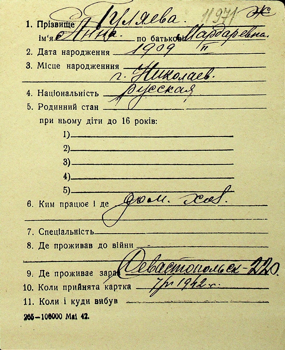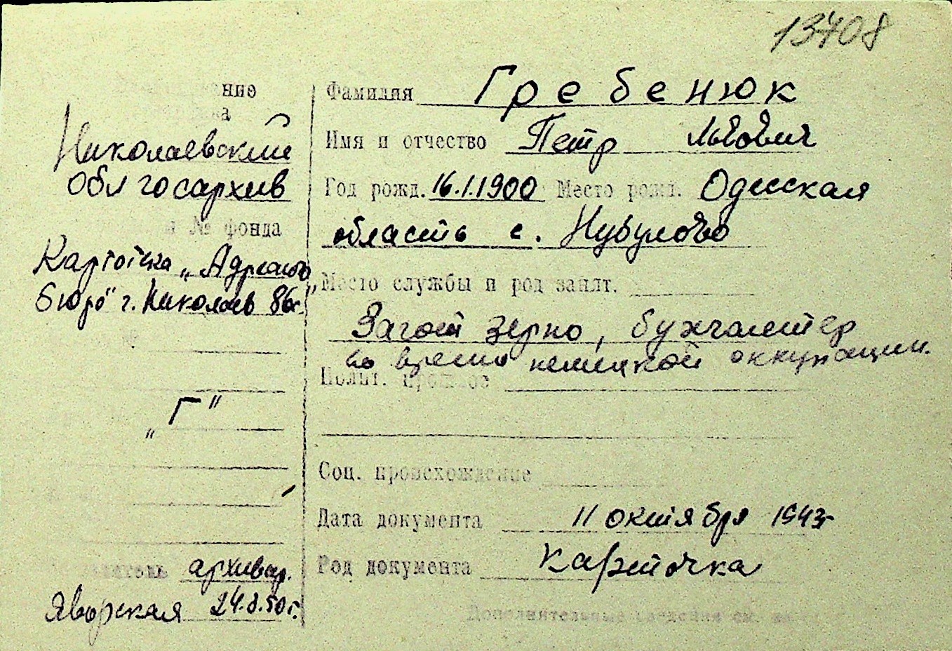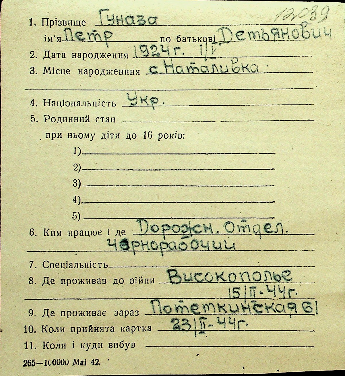 • • Перелік карток до фонду № Н-1016