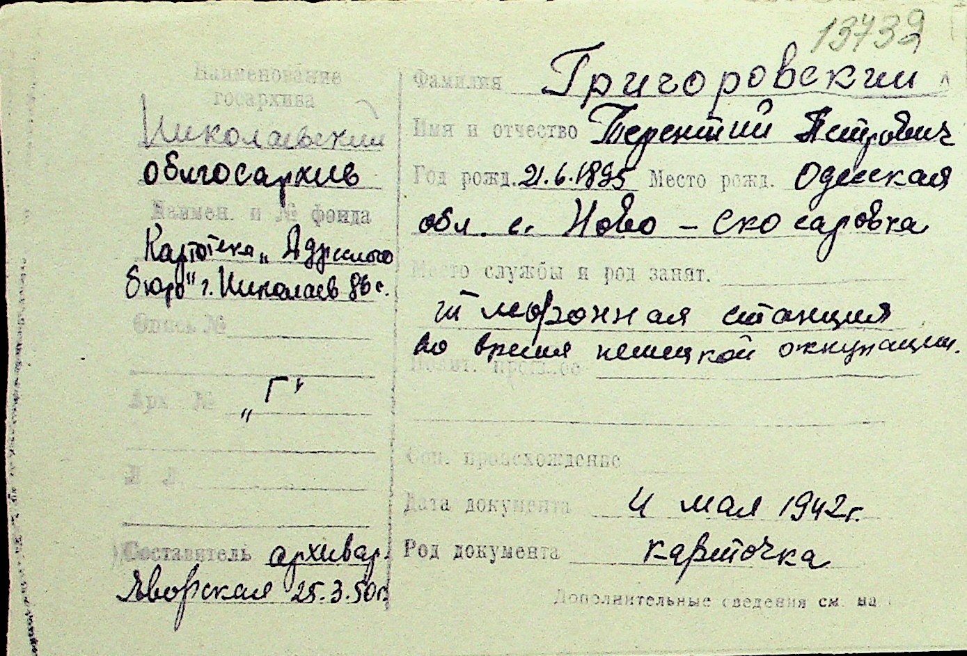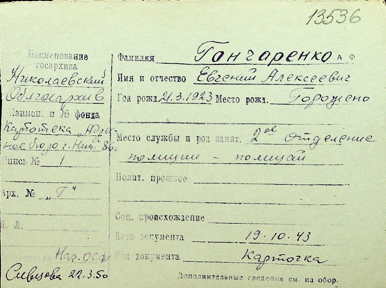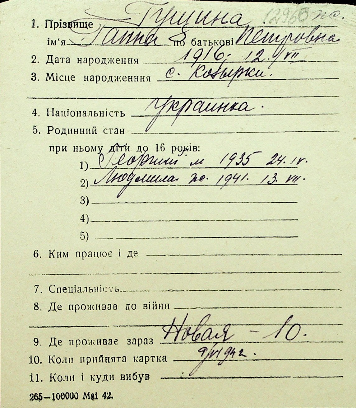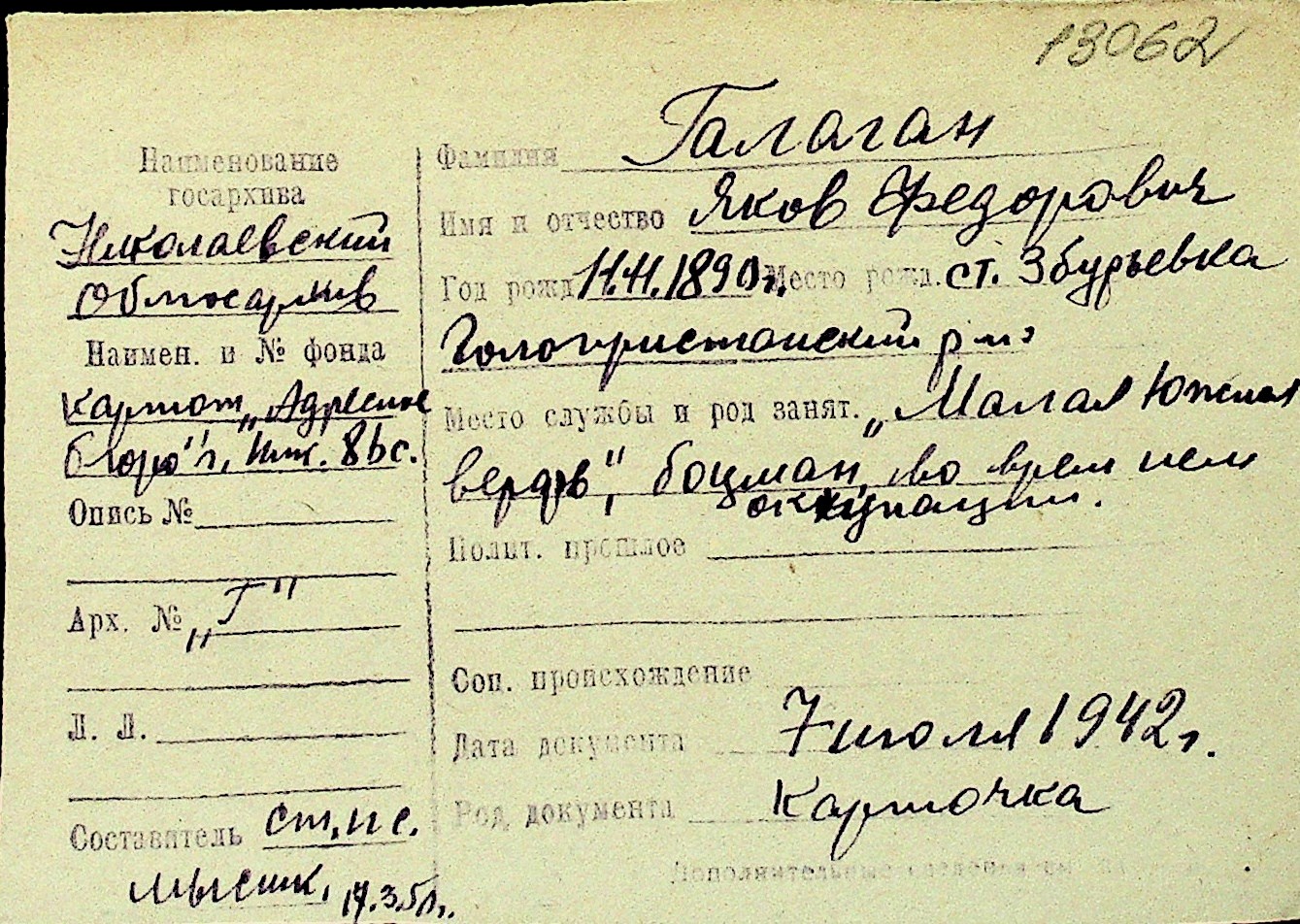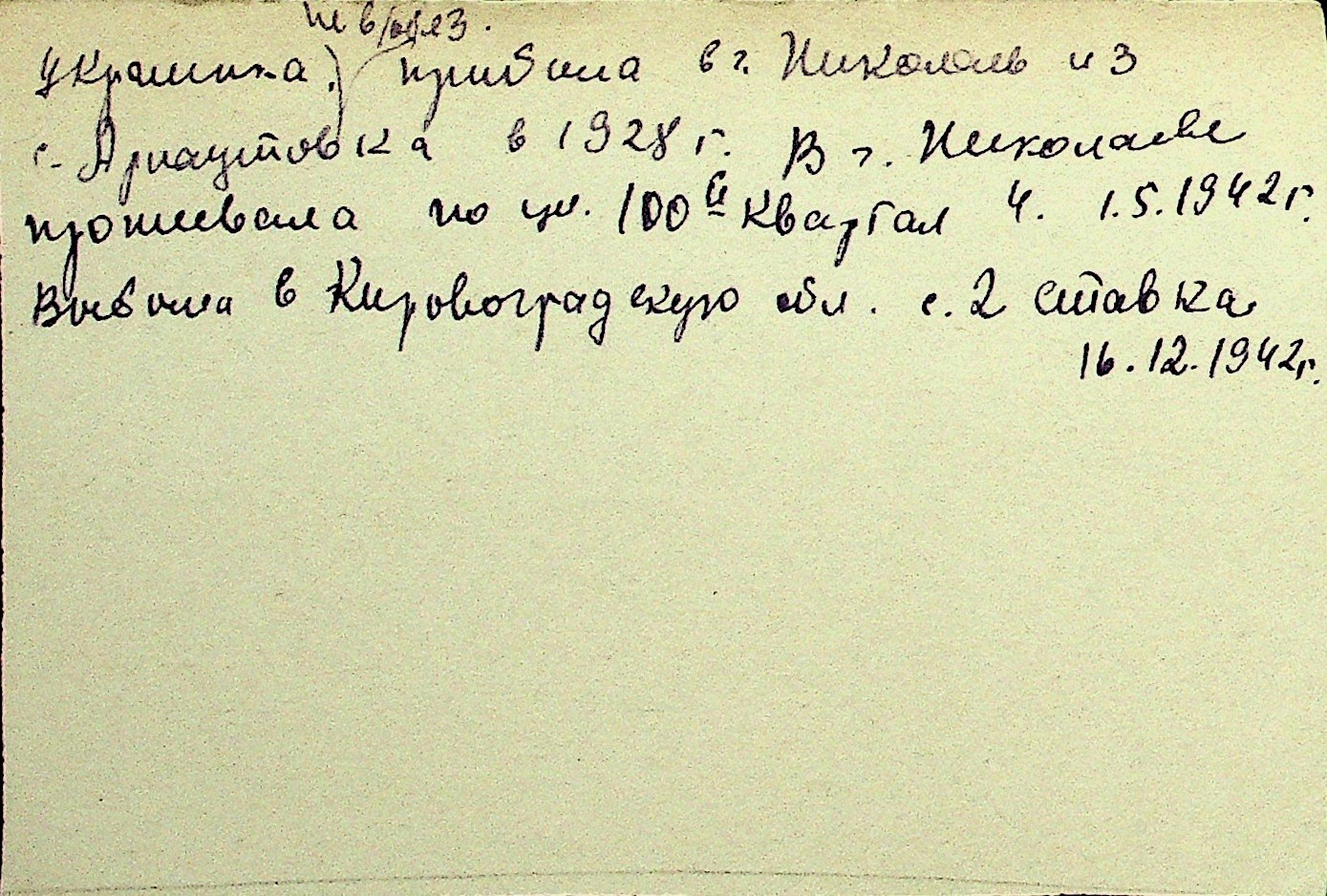 • • Перелік карток до фонду № Н-1016