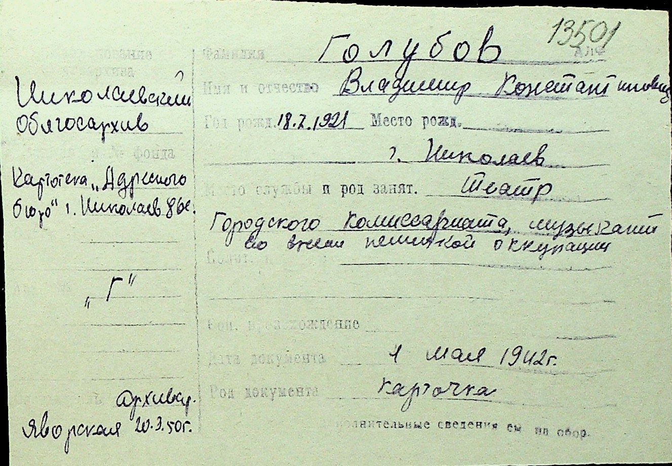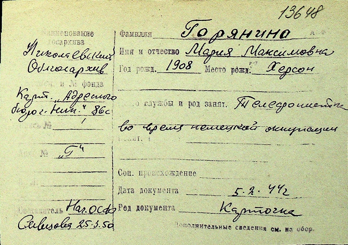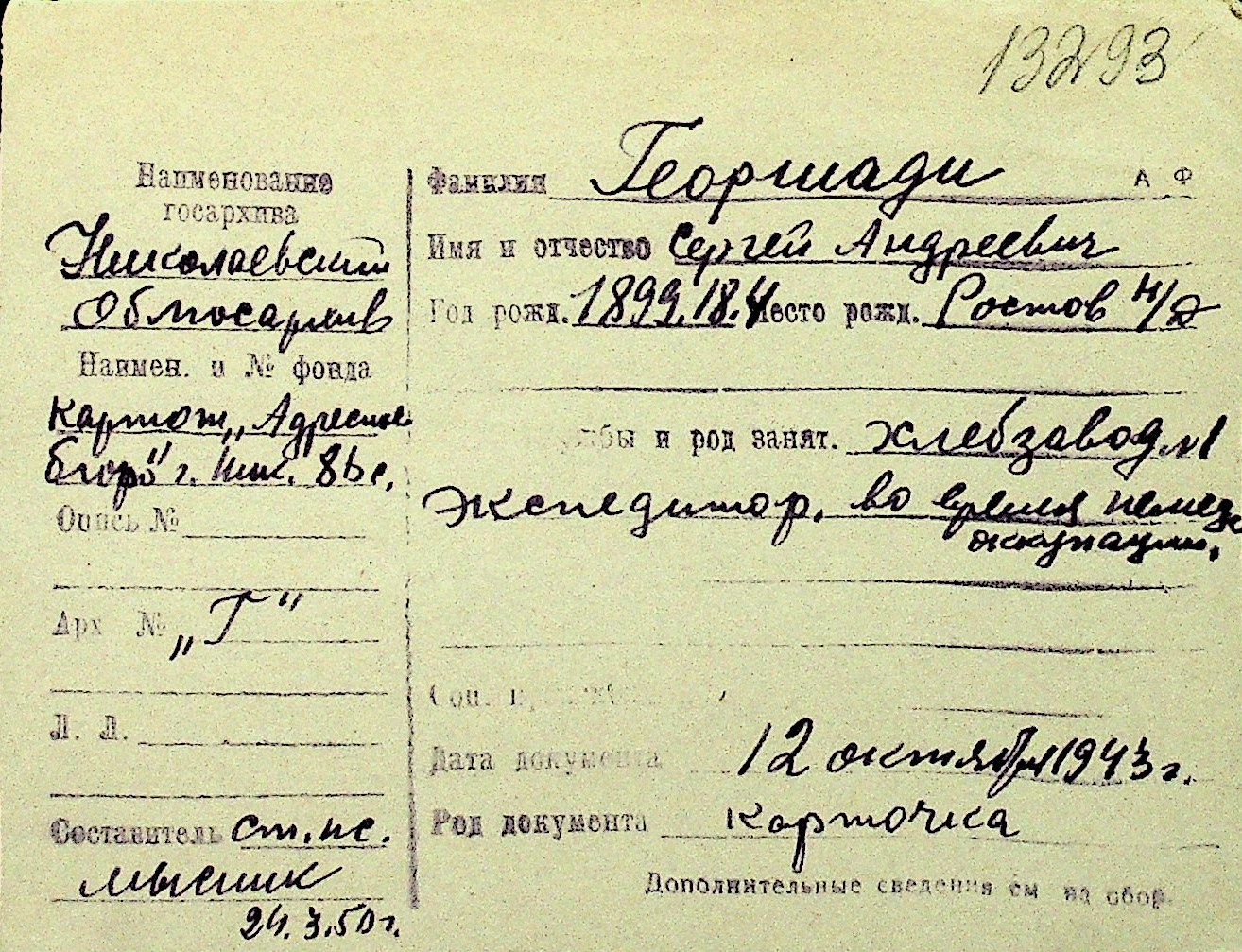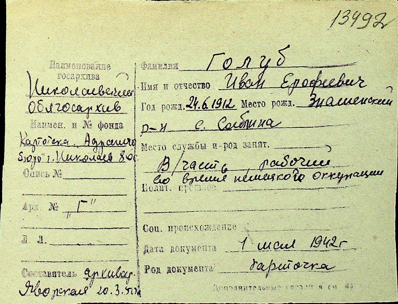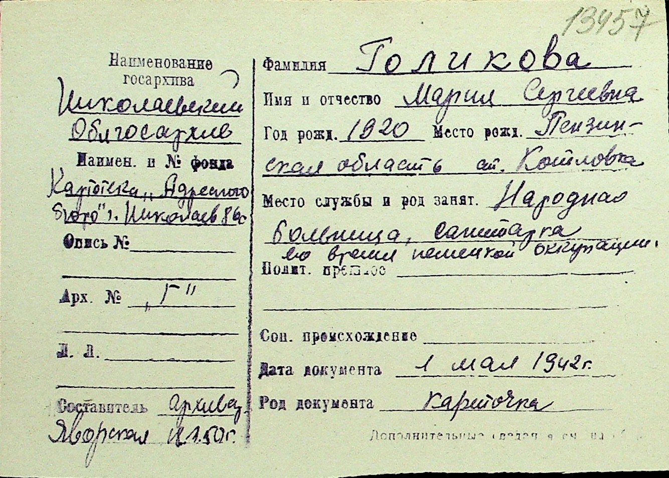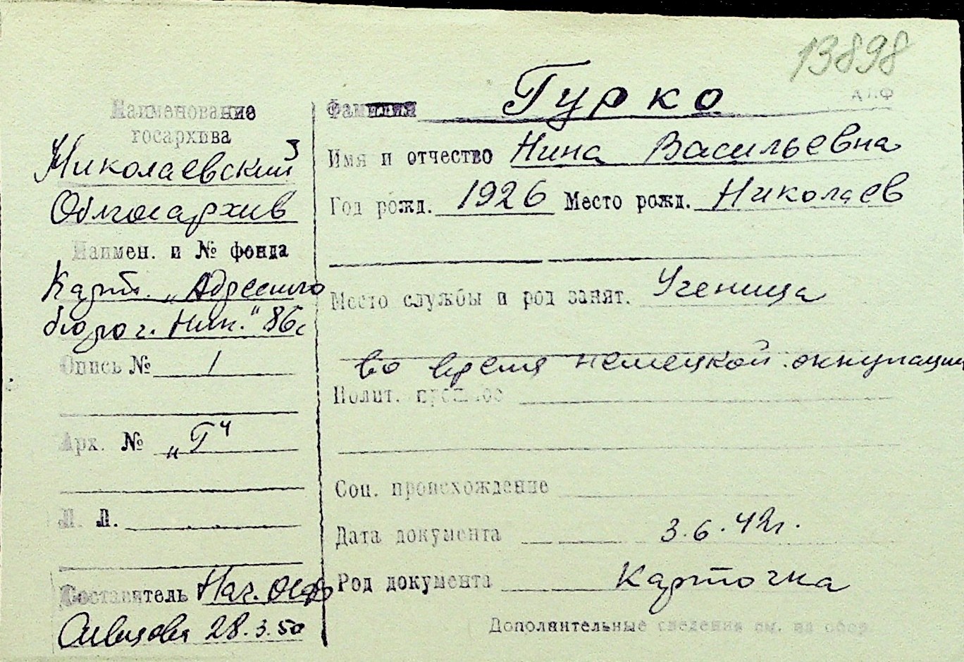 • • Перелік карток до фонду № Н-1016