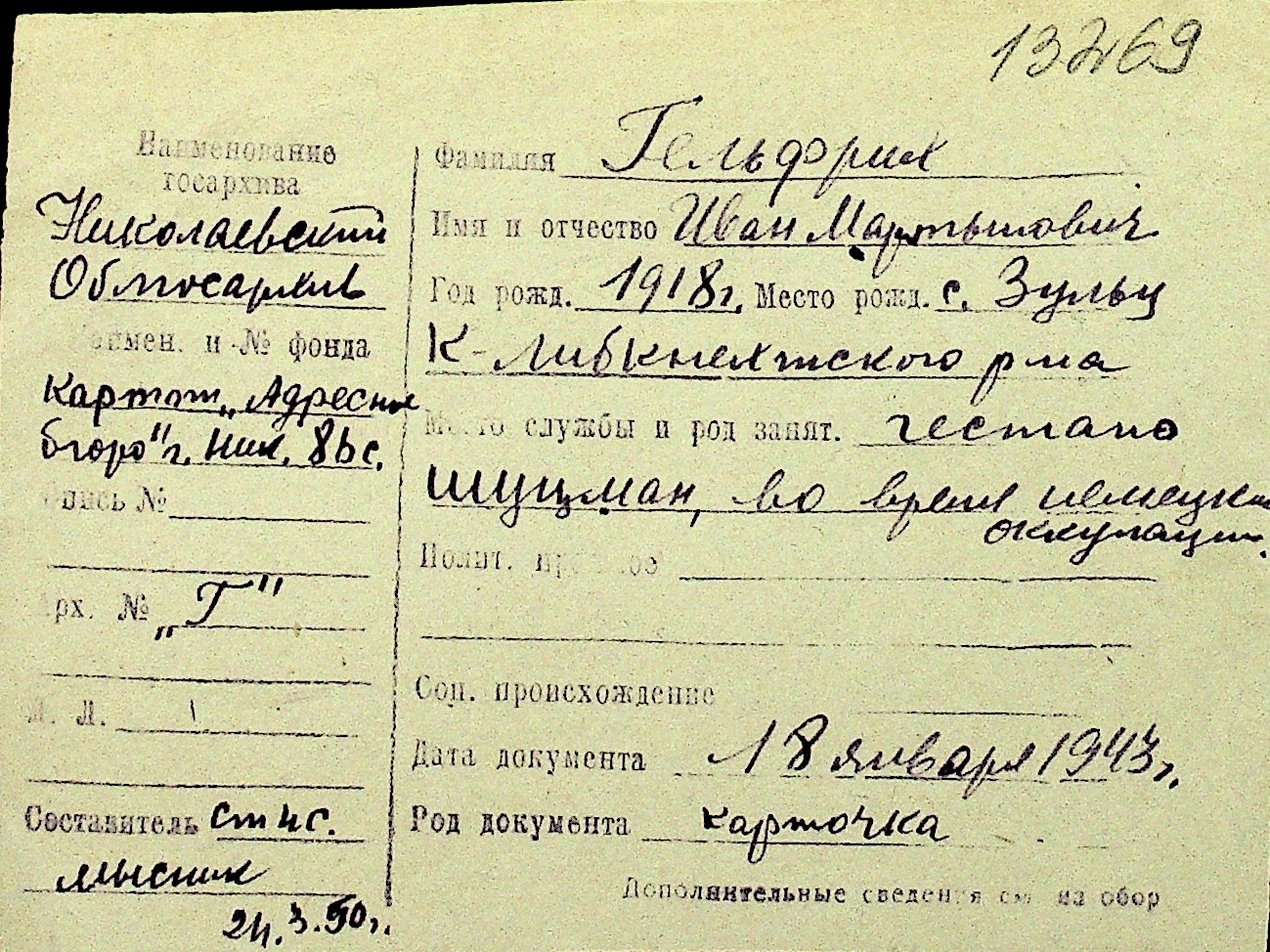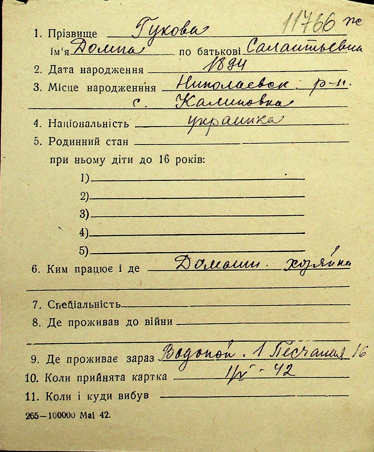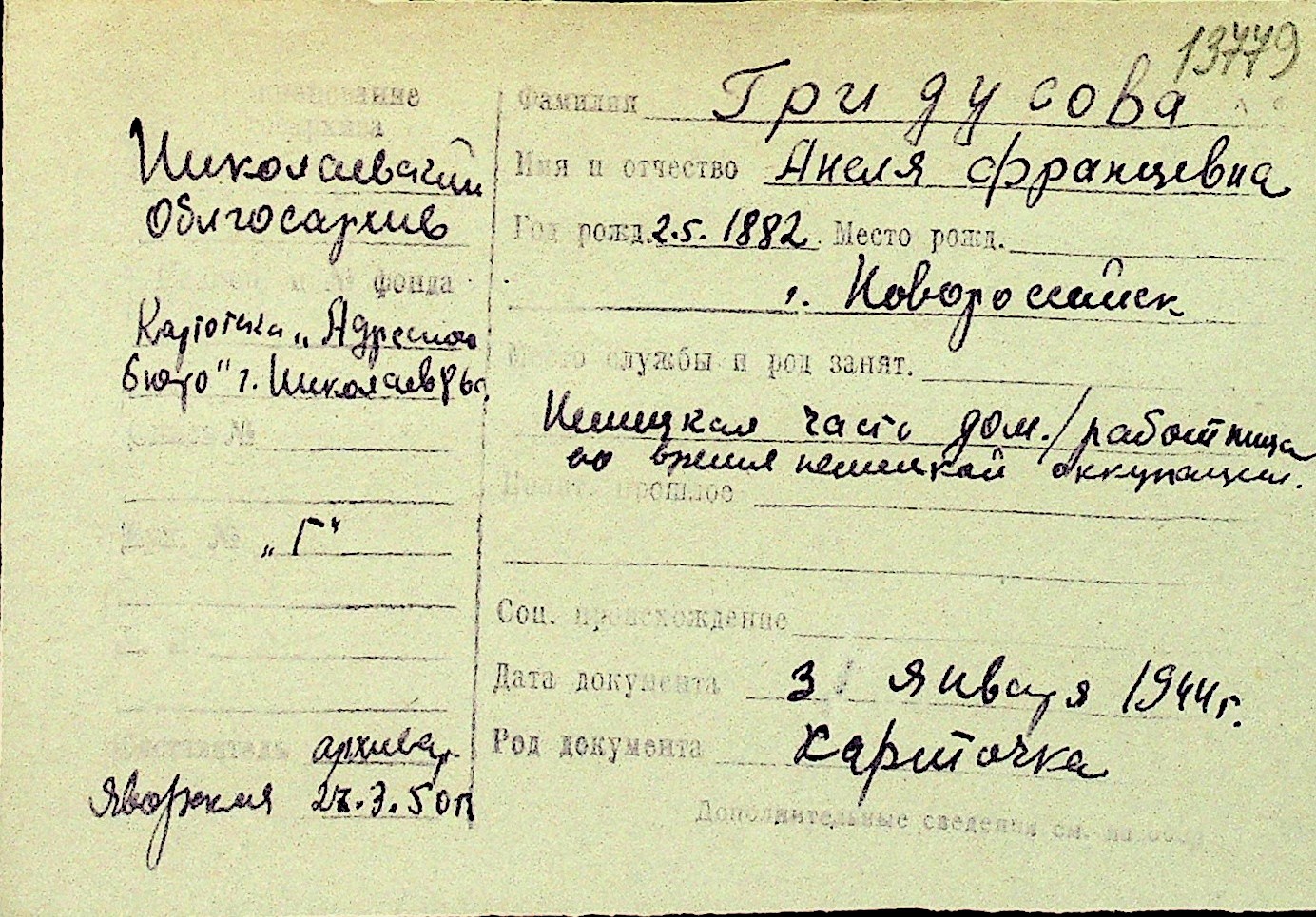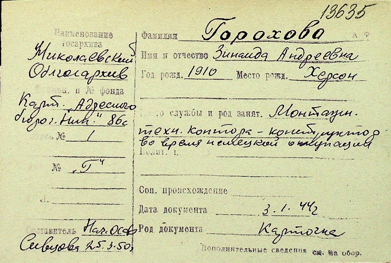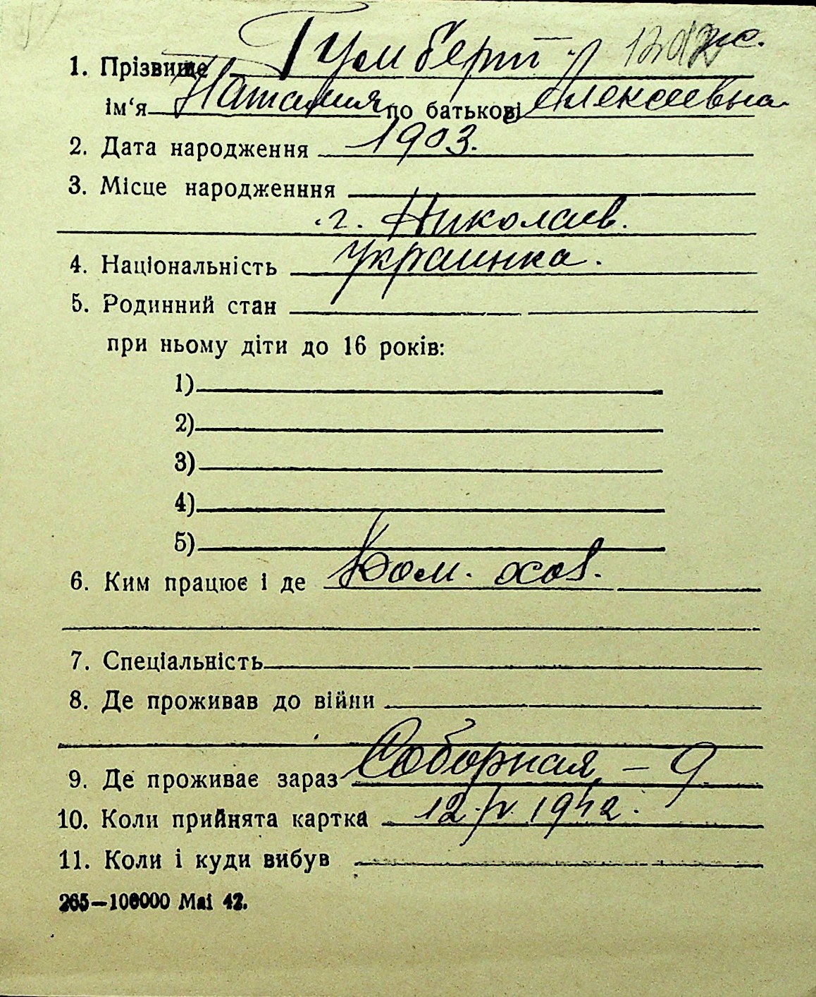 • • Перелік карток до фонду № Н-1016