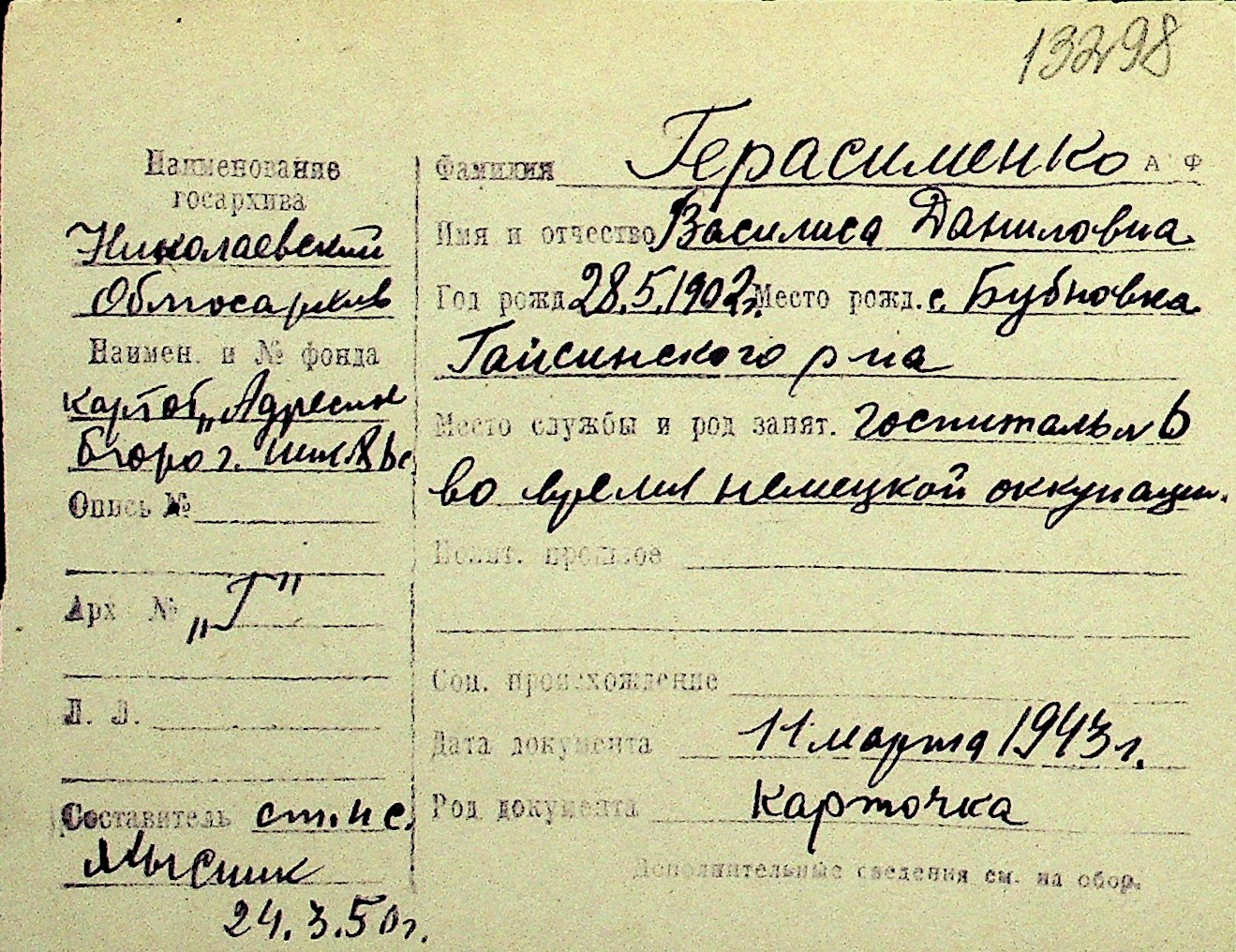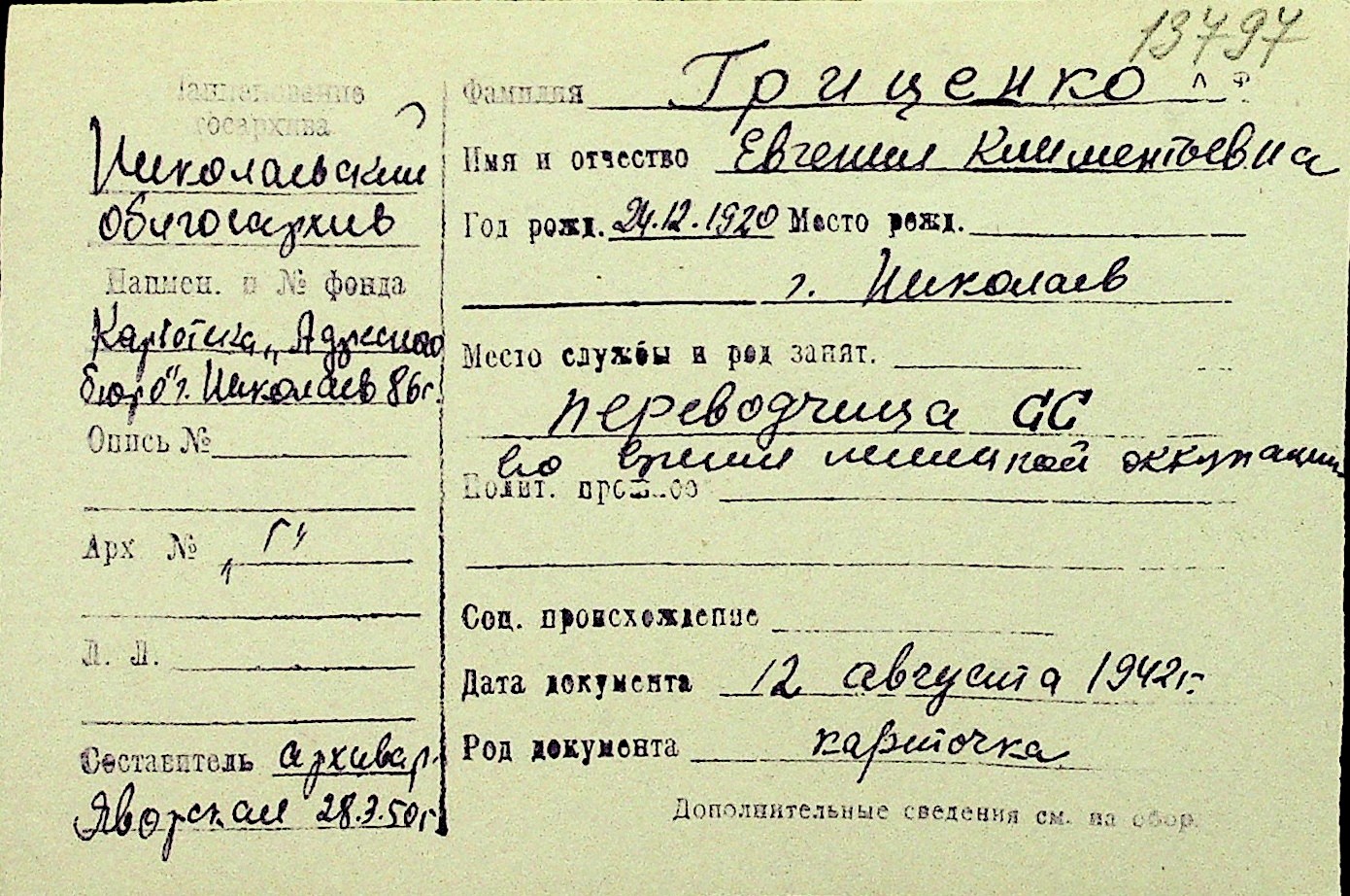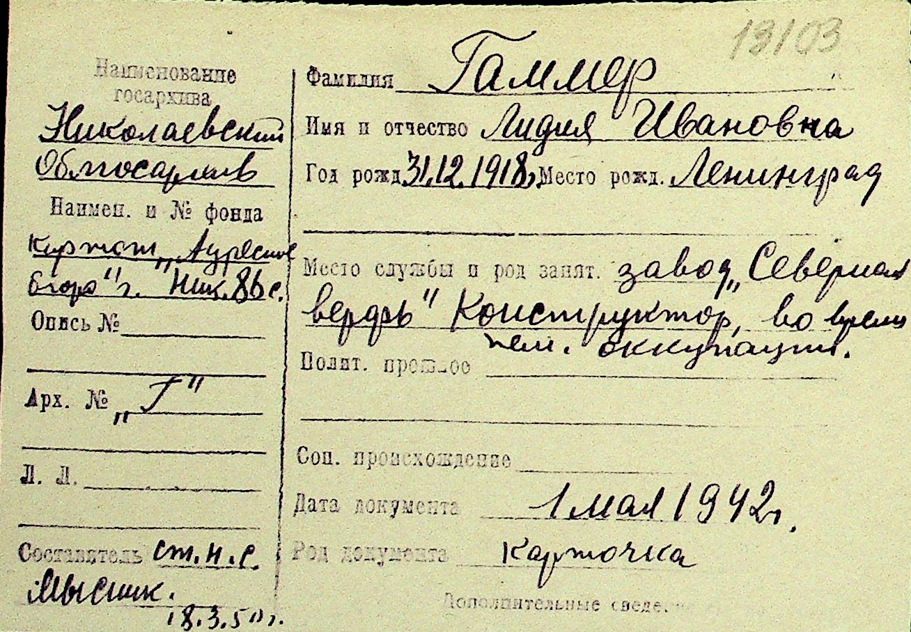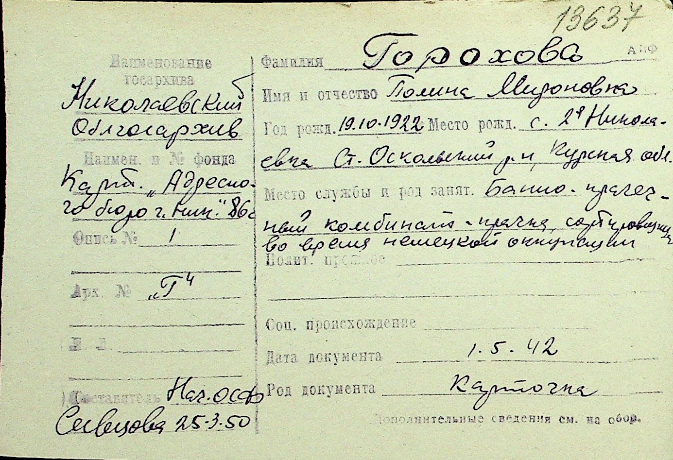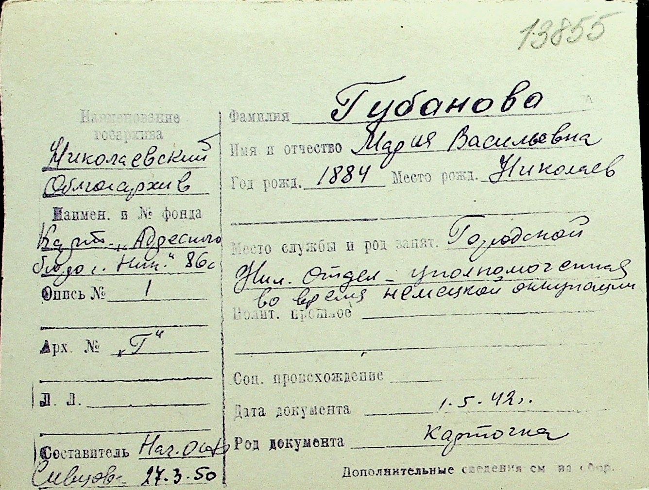 • • Перелік карток до фонду № Н-1016