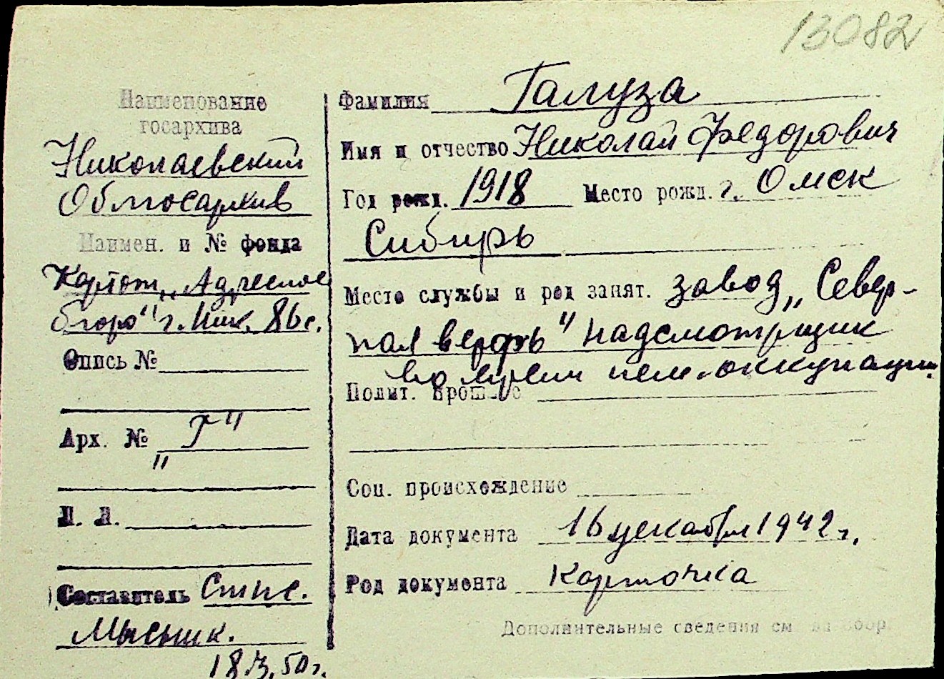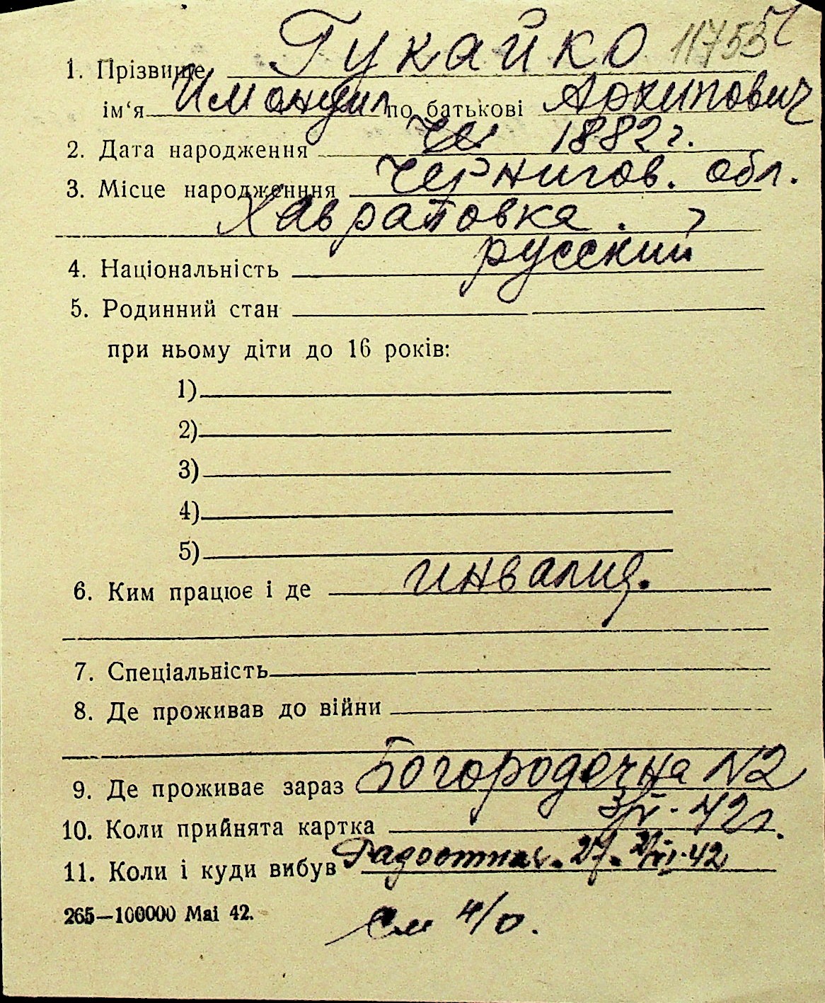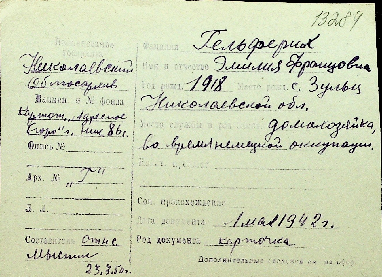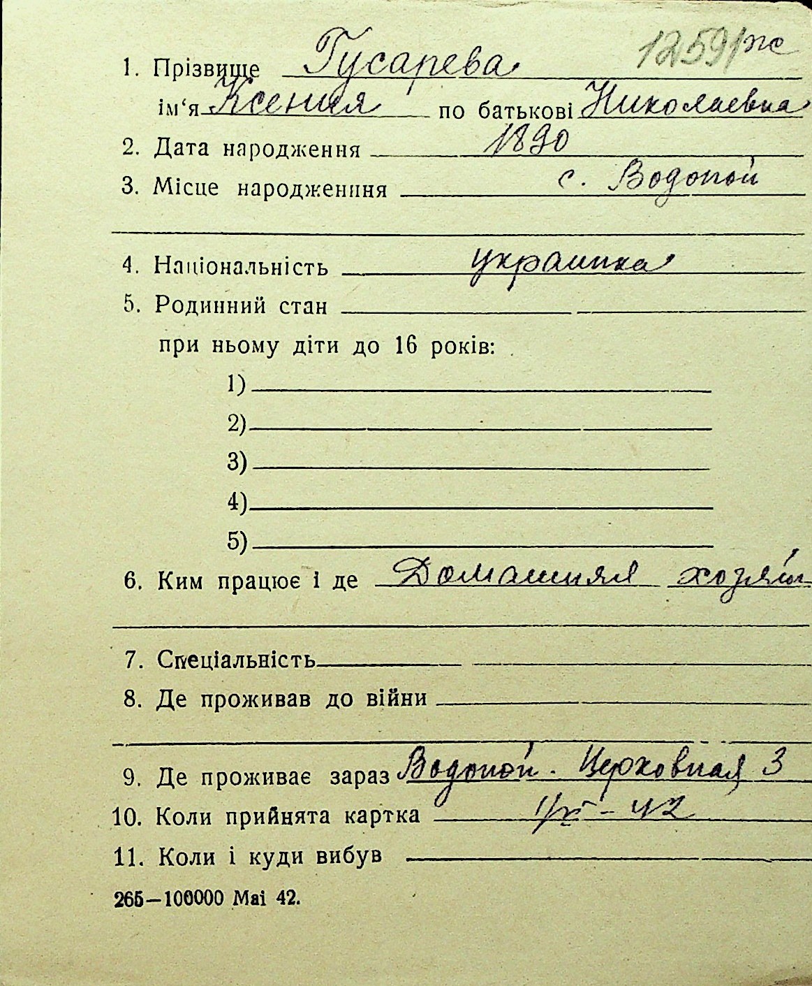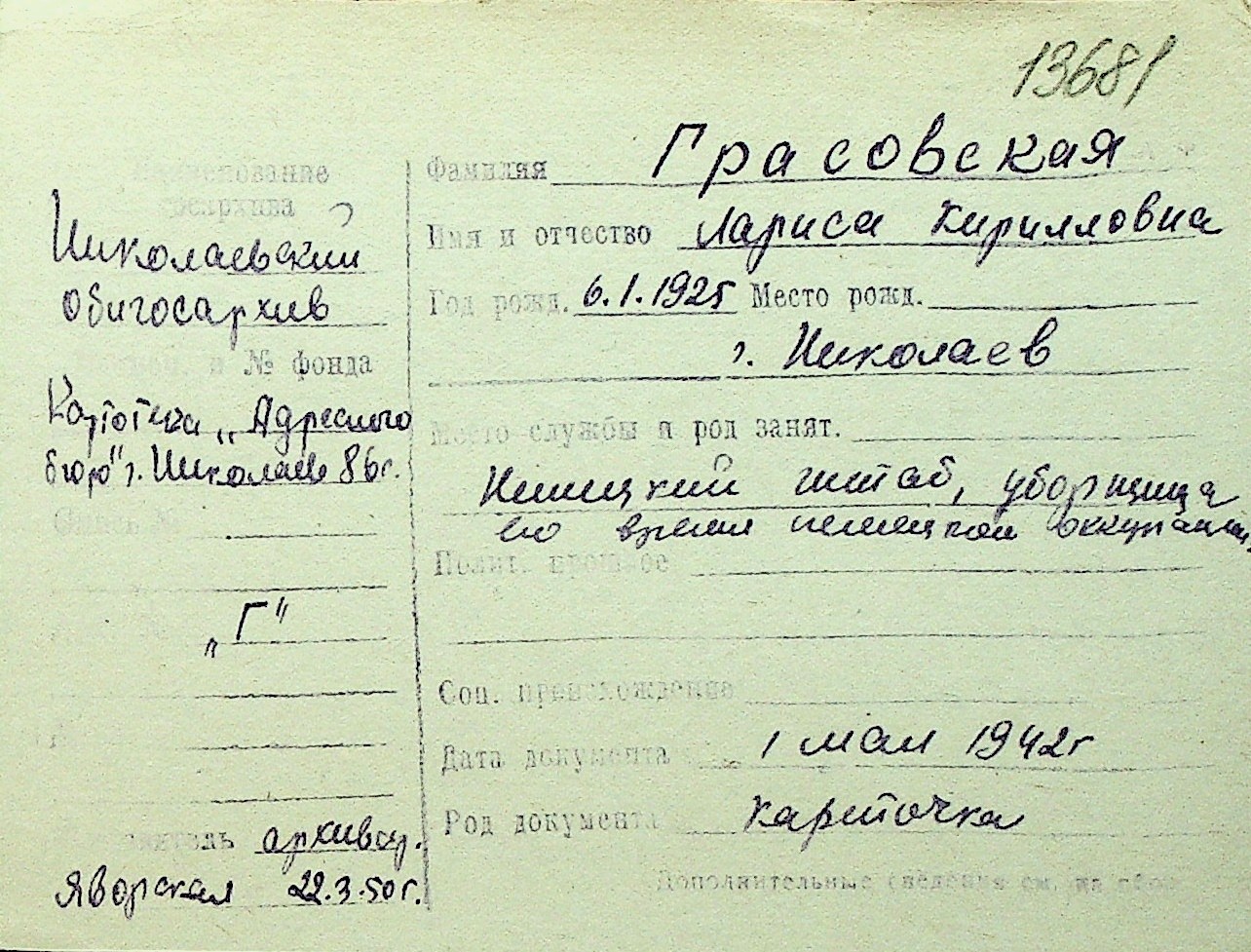 • • Перелік карток до фонду № Н-1016