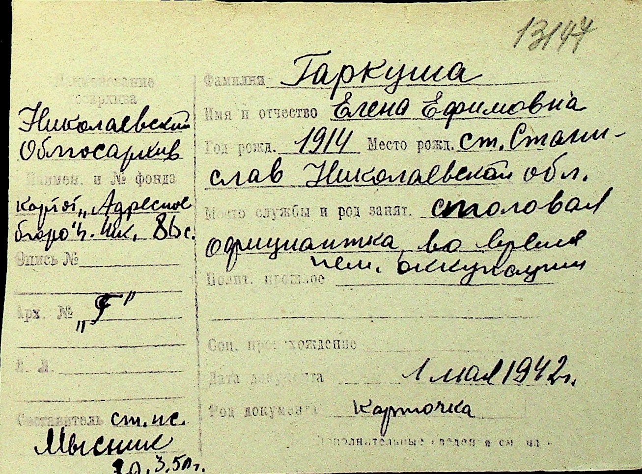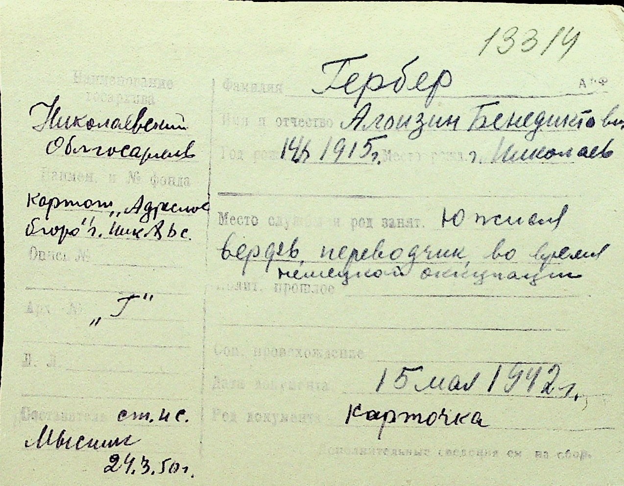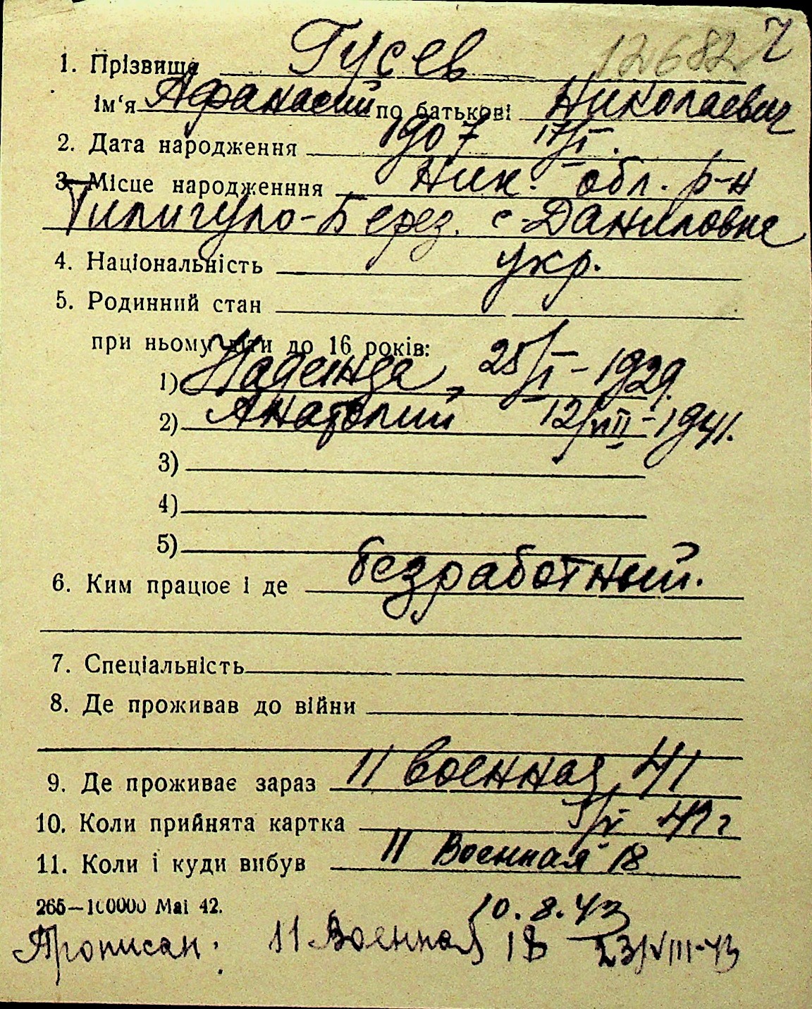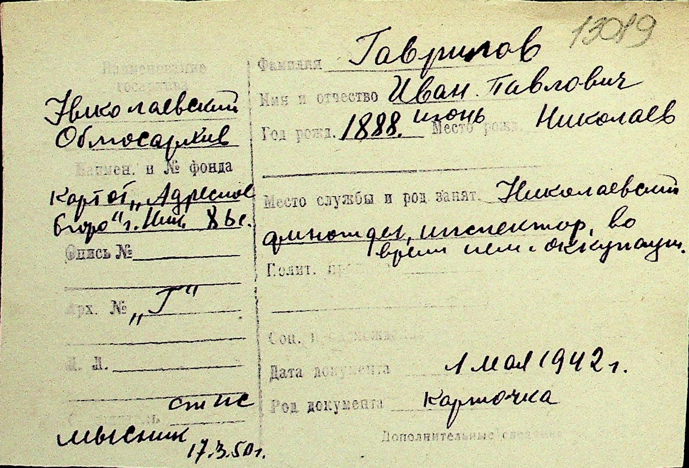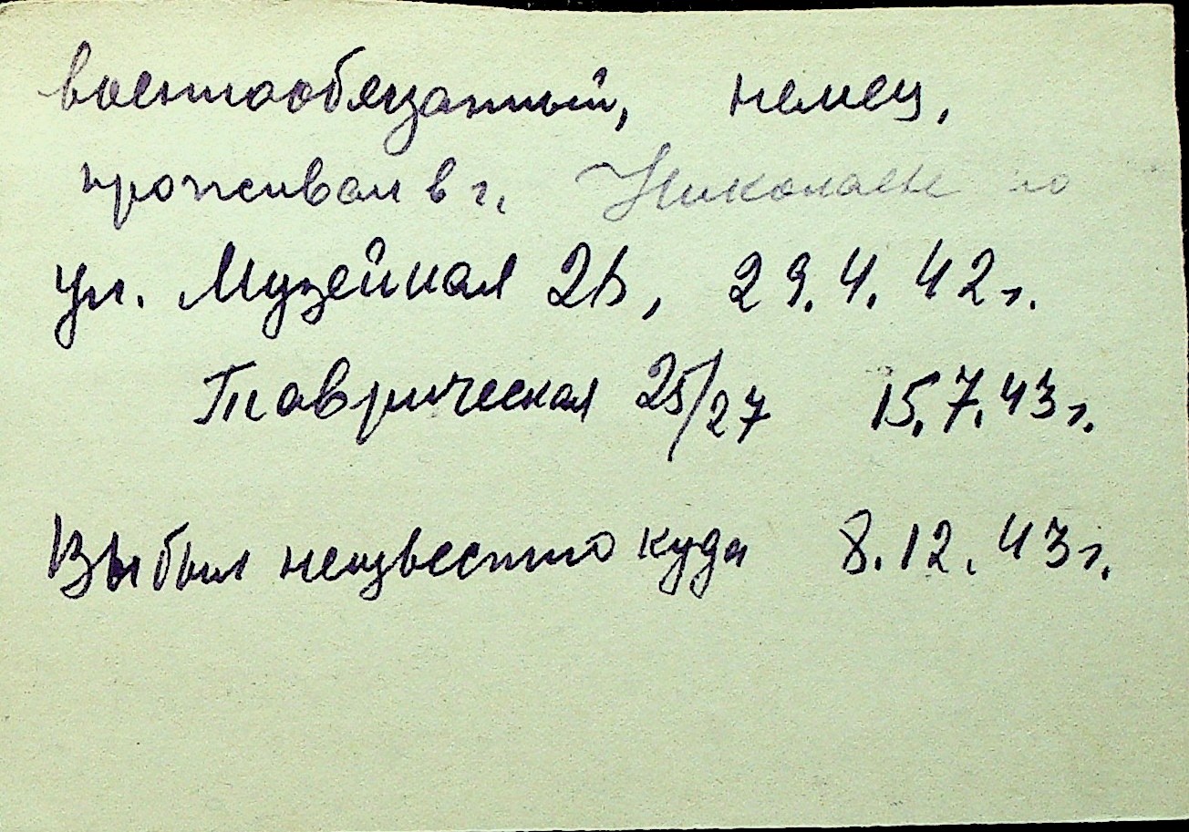 • • Перелік карток до фонду № Н-1016