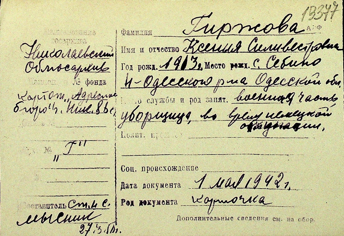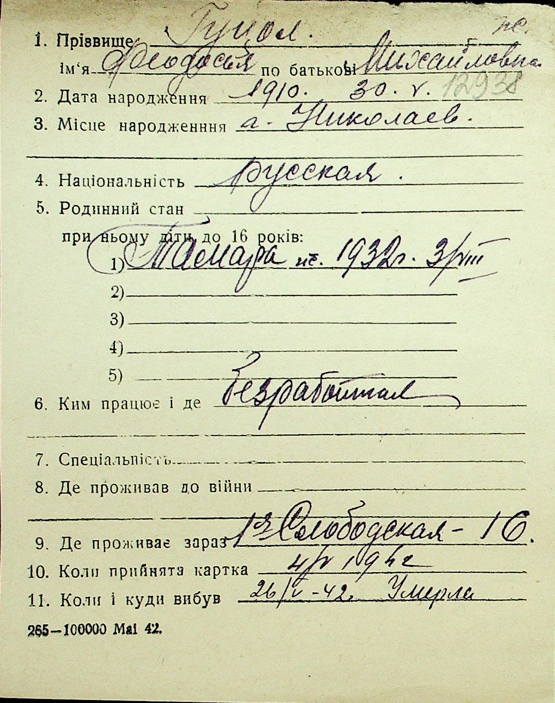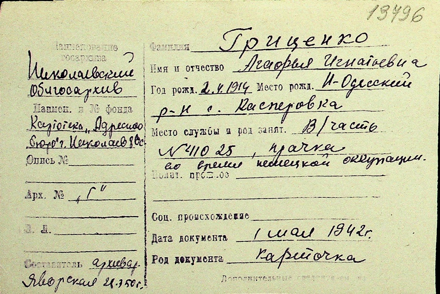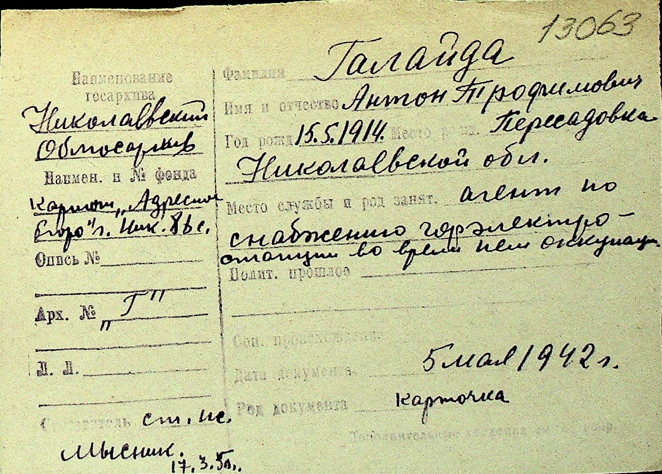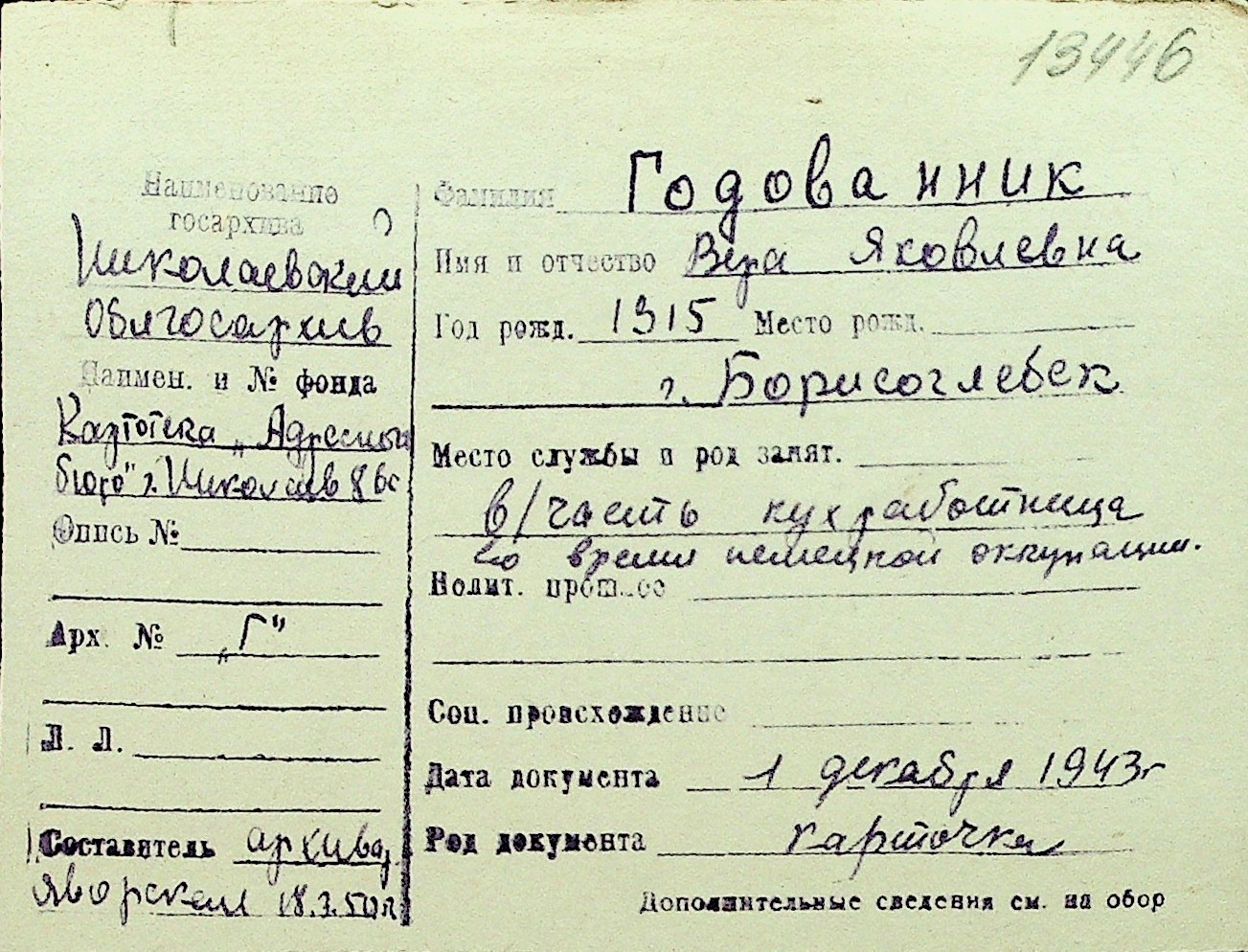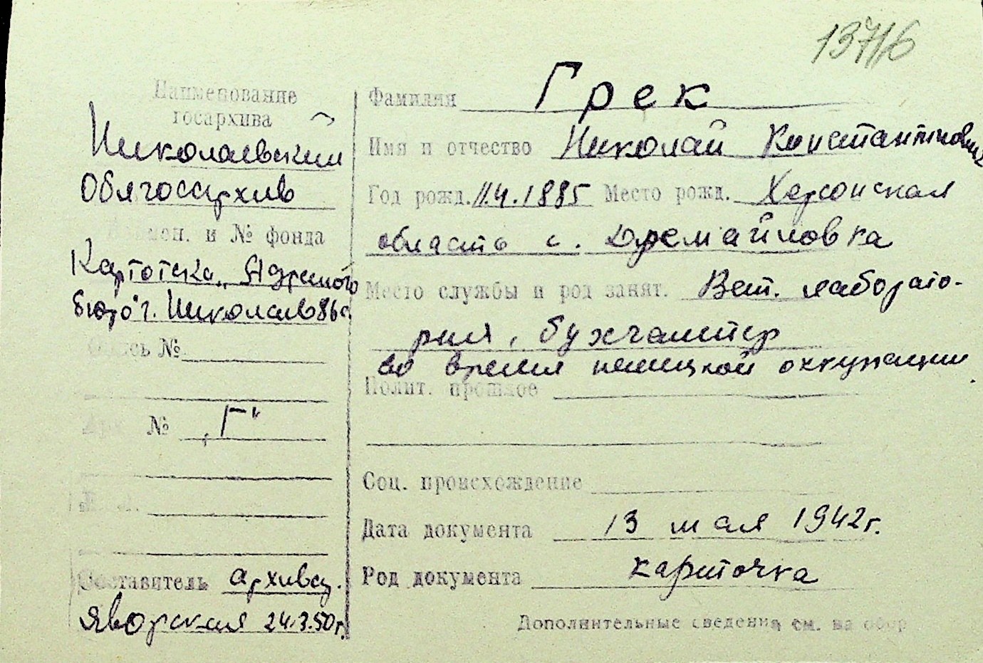 • • Перелік карток до фонду № Н-1016
