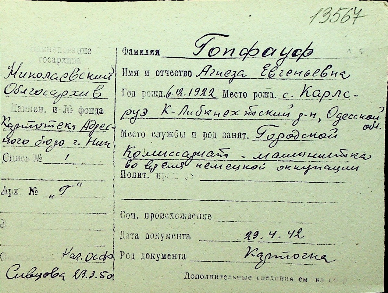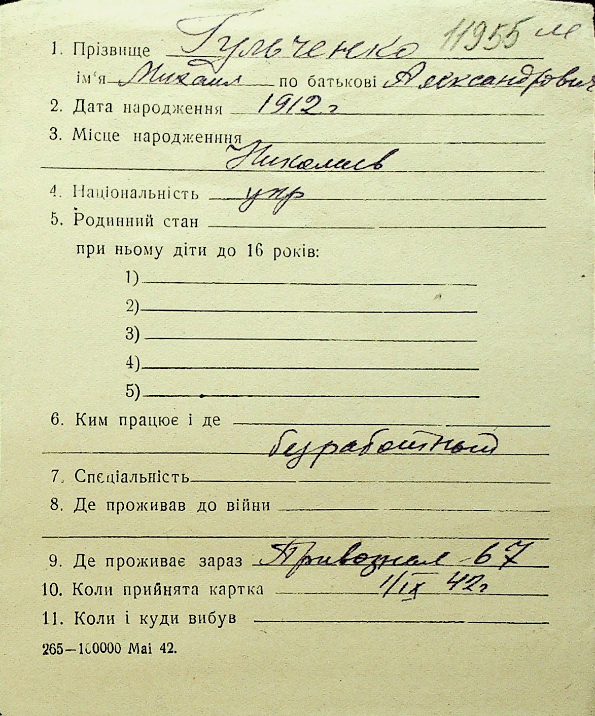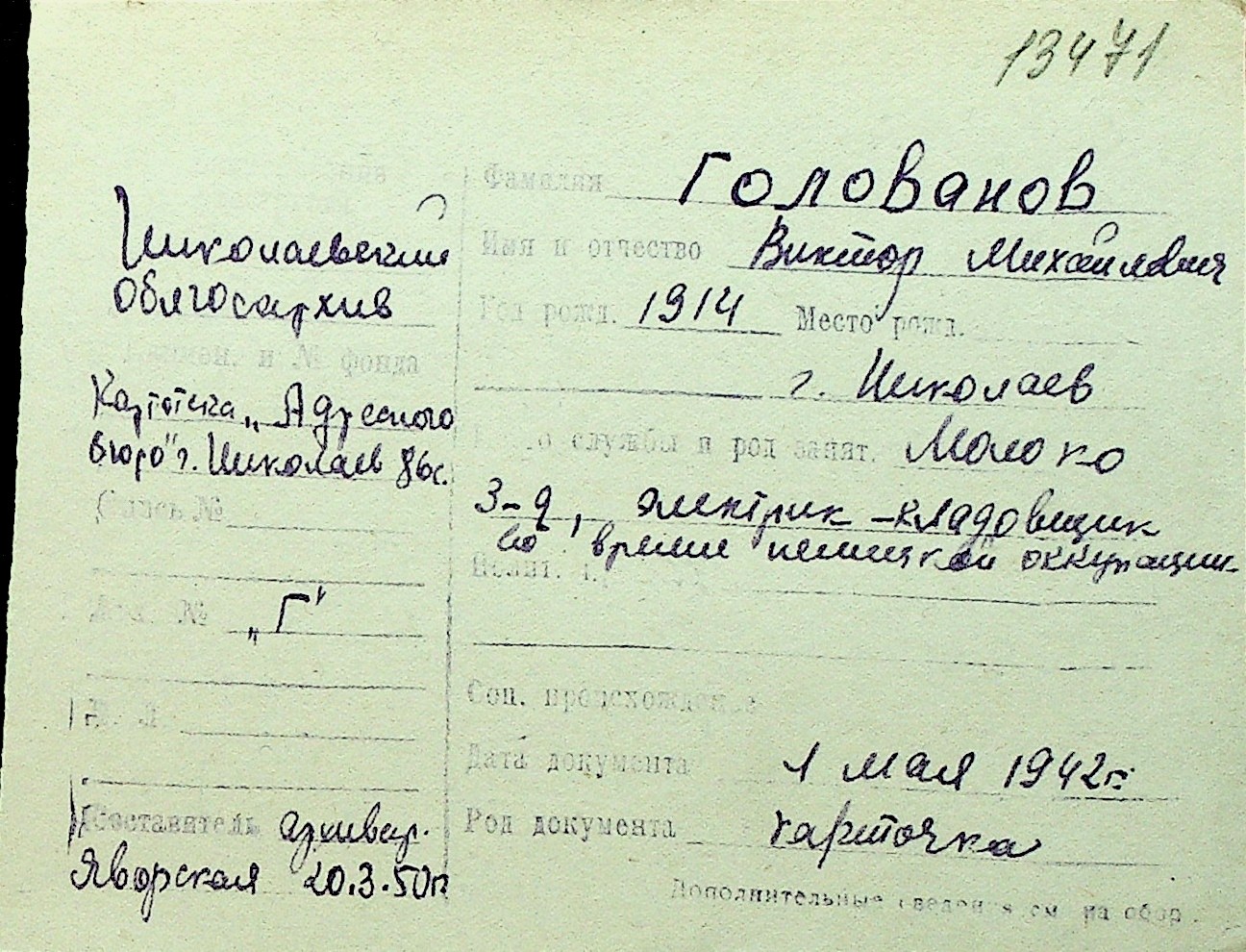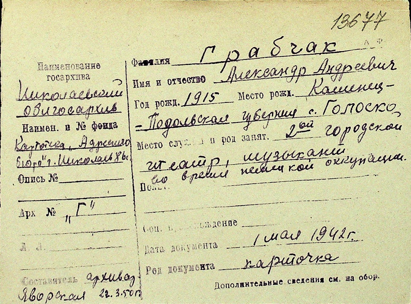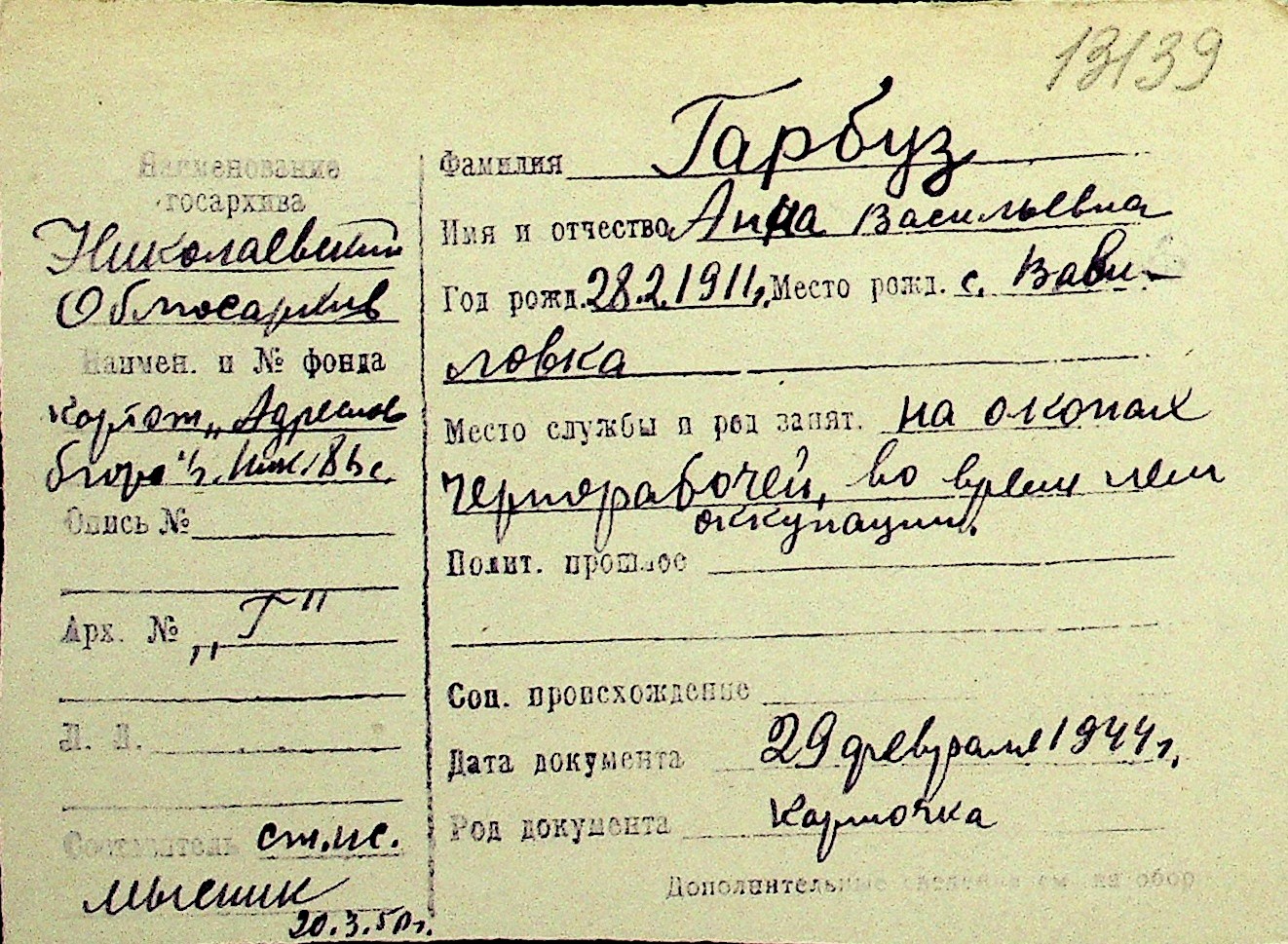 • • Перелік карток до фонду № Н-1016