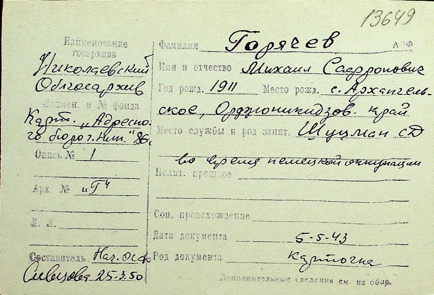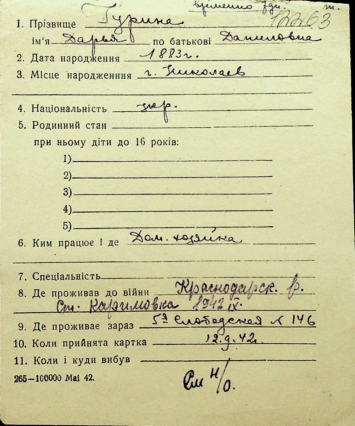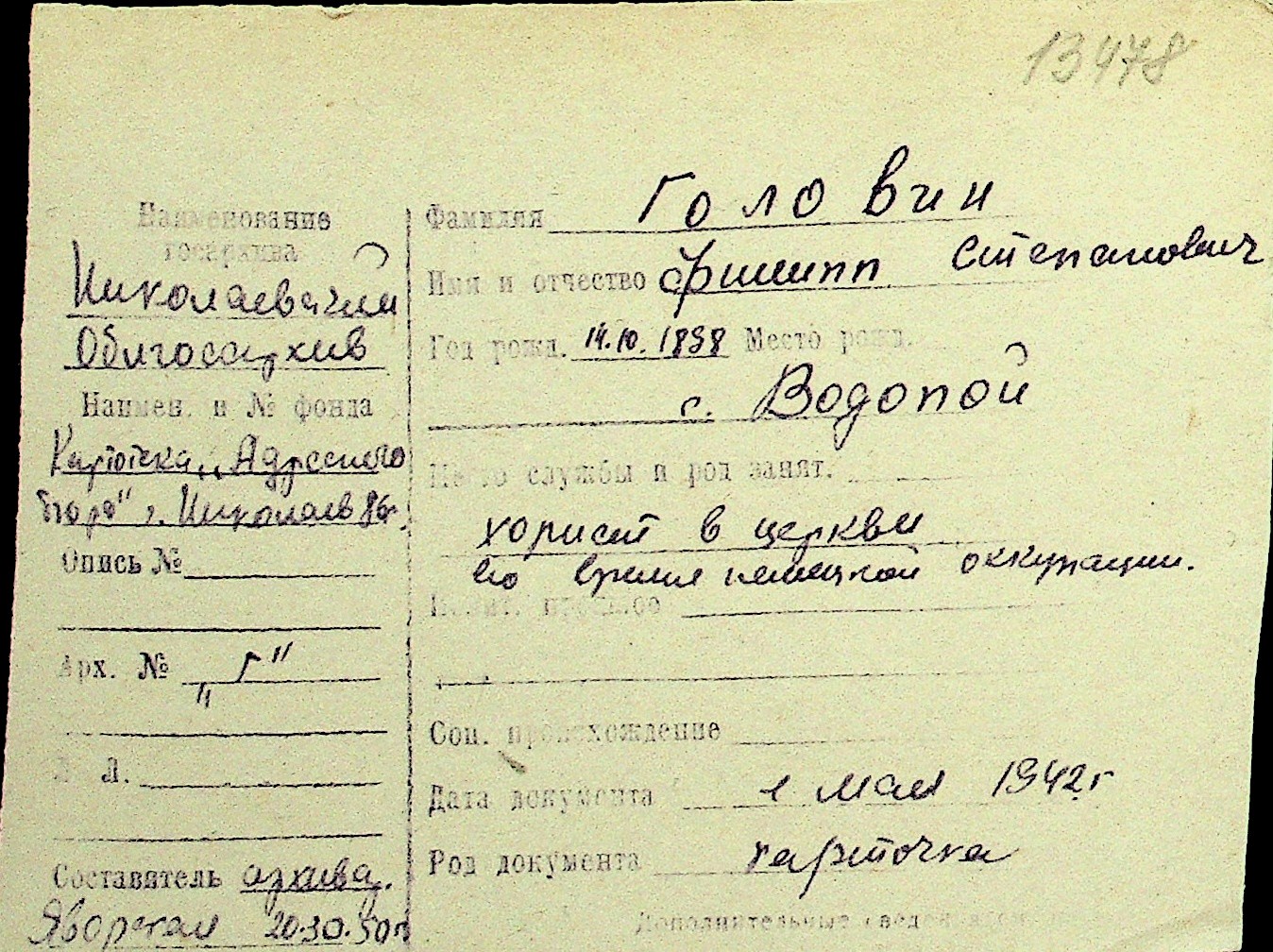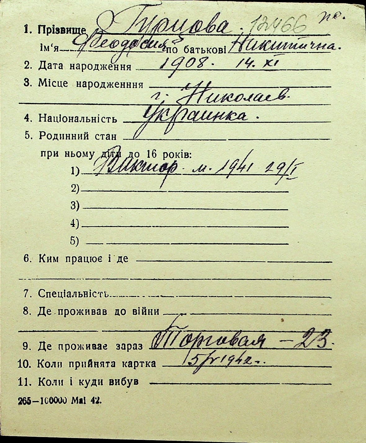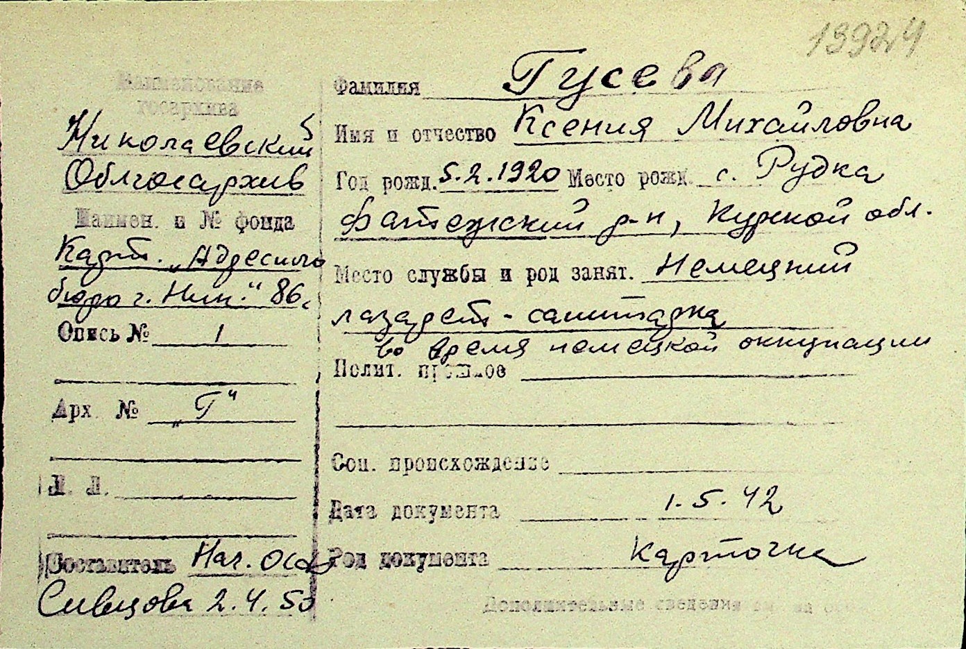 • • Перелік карток до фонду № Н-1016