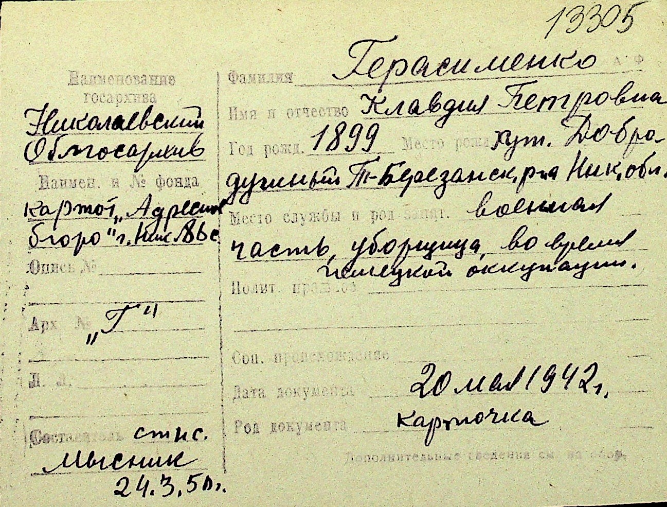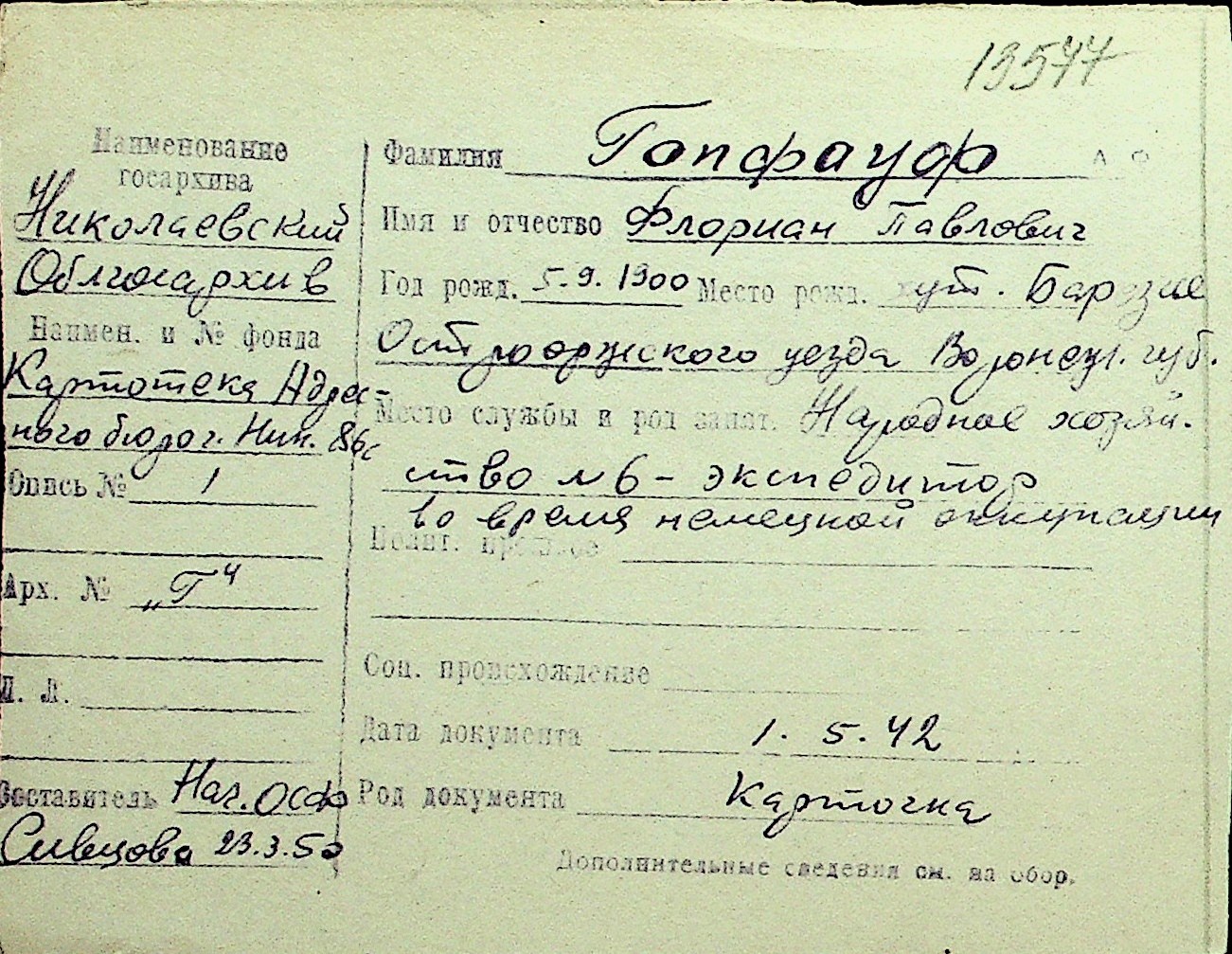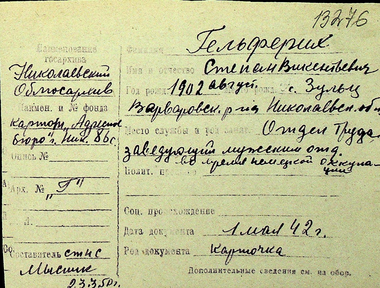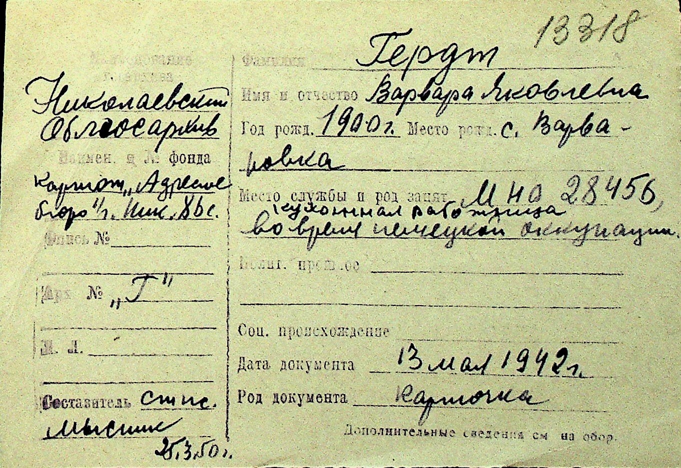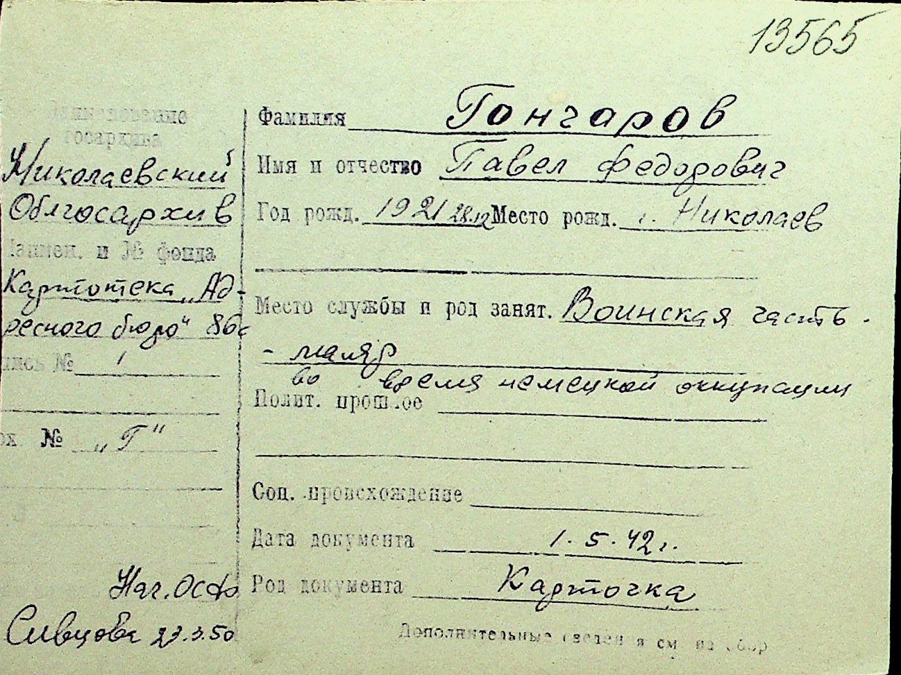 • • Перелік карток до фонду № Н-1016