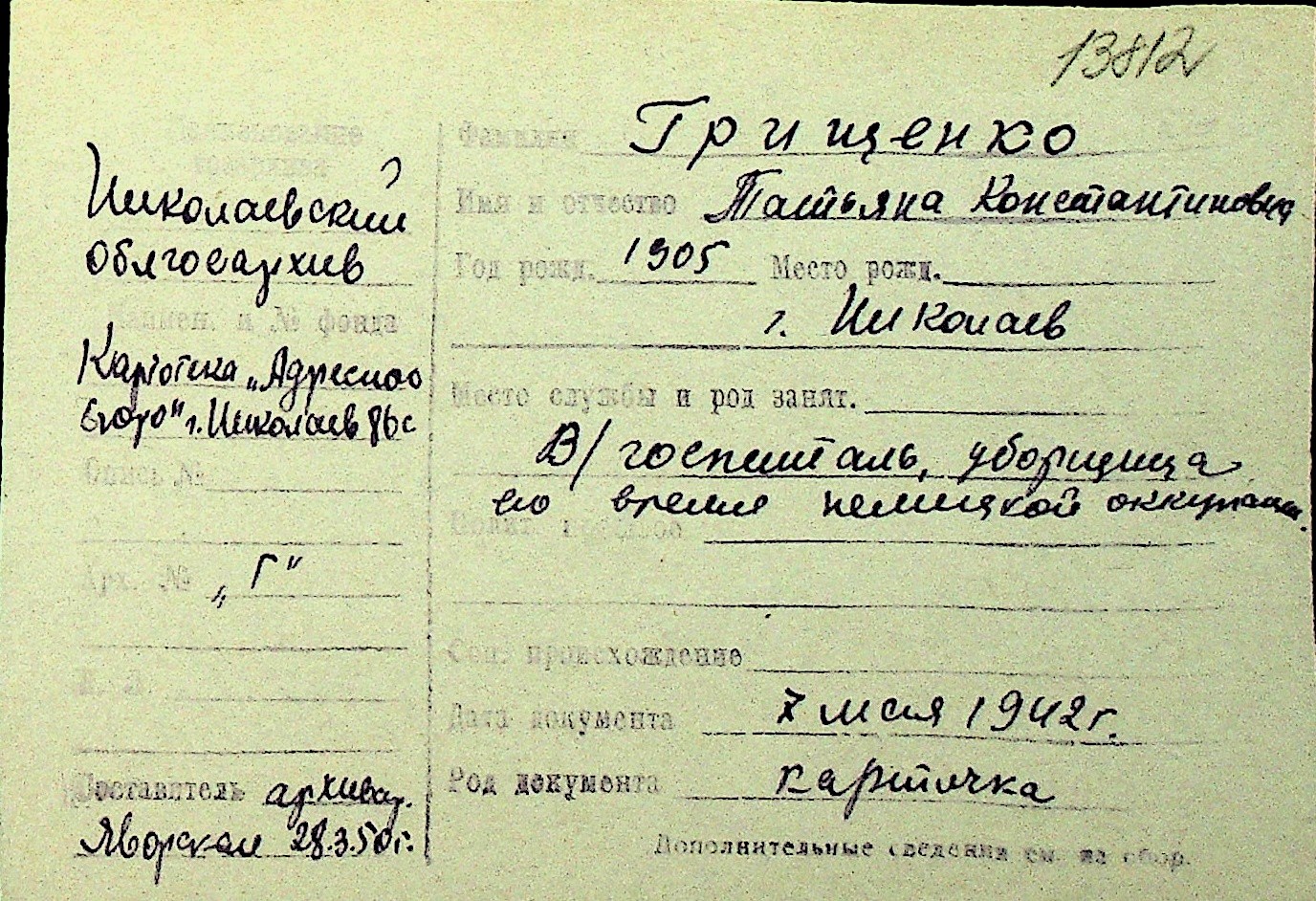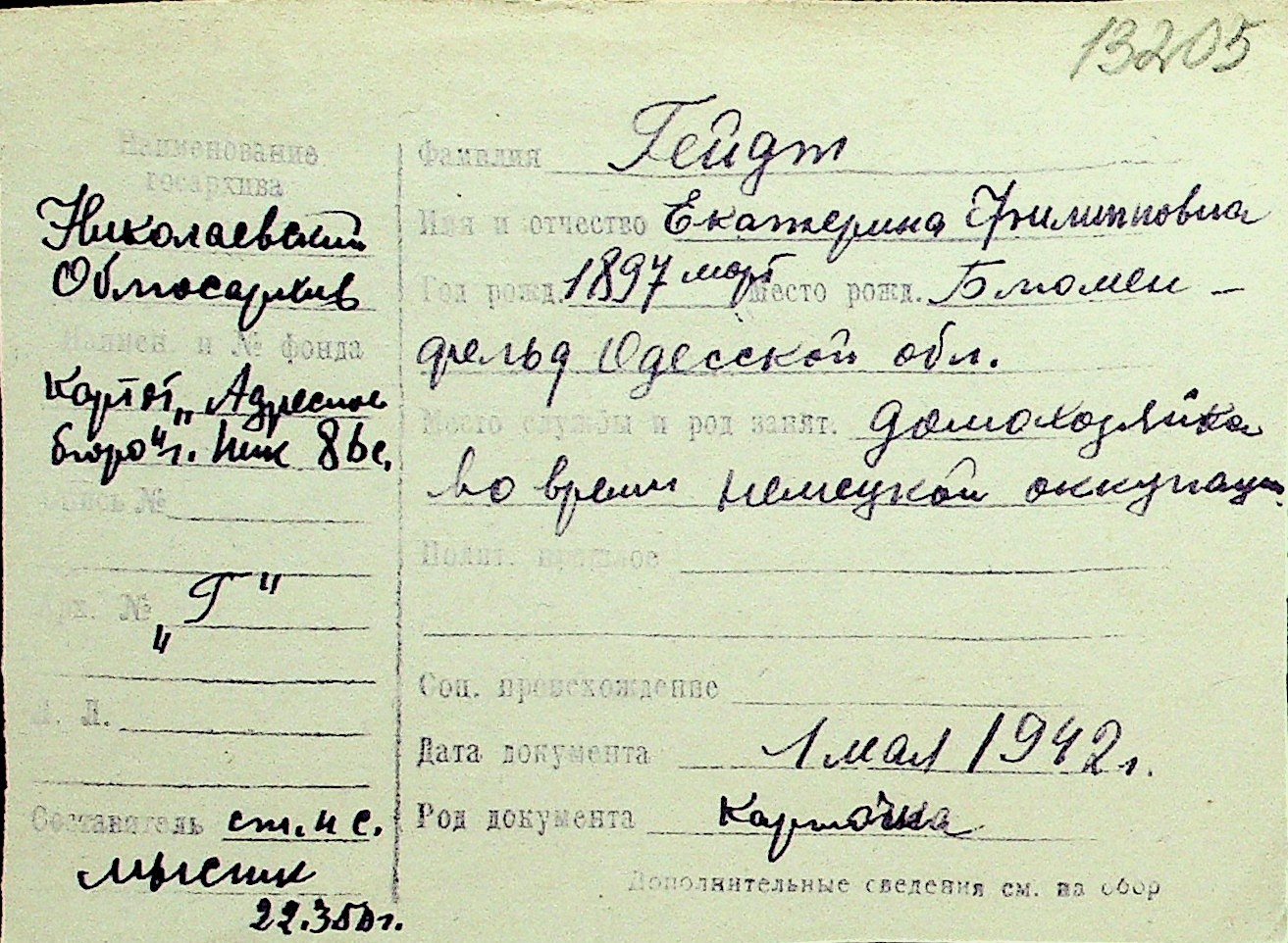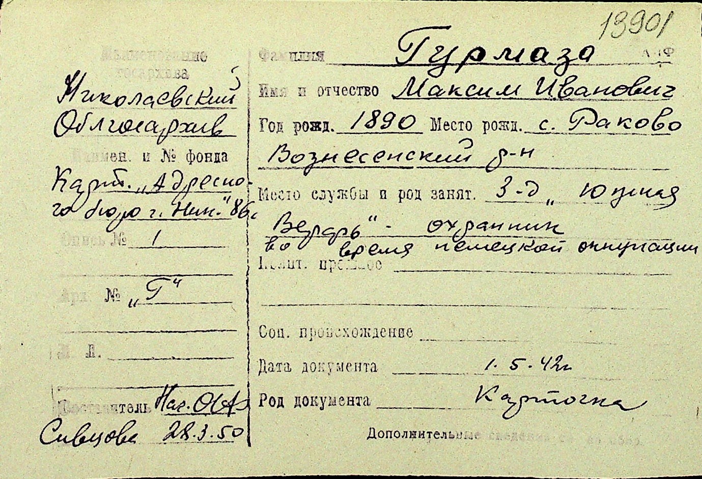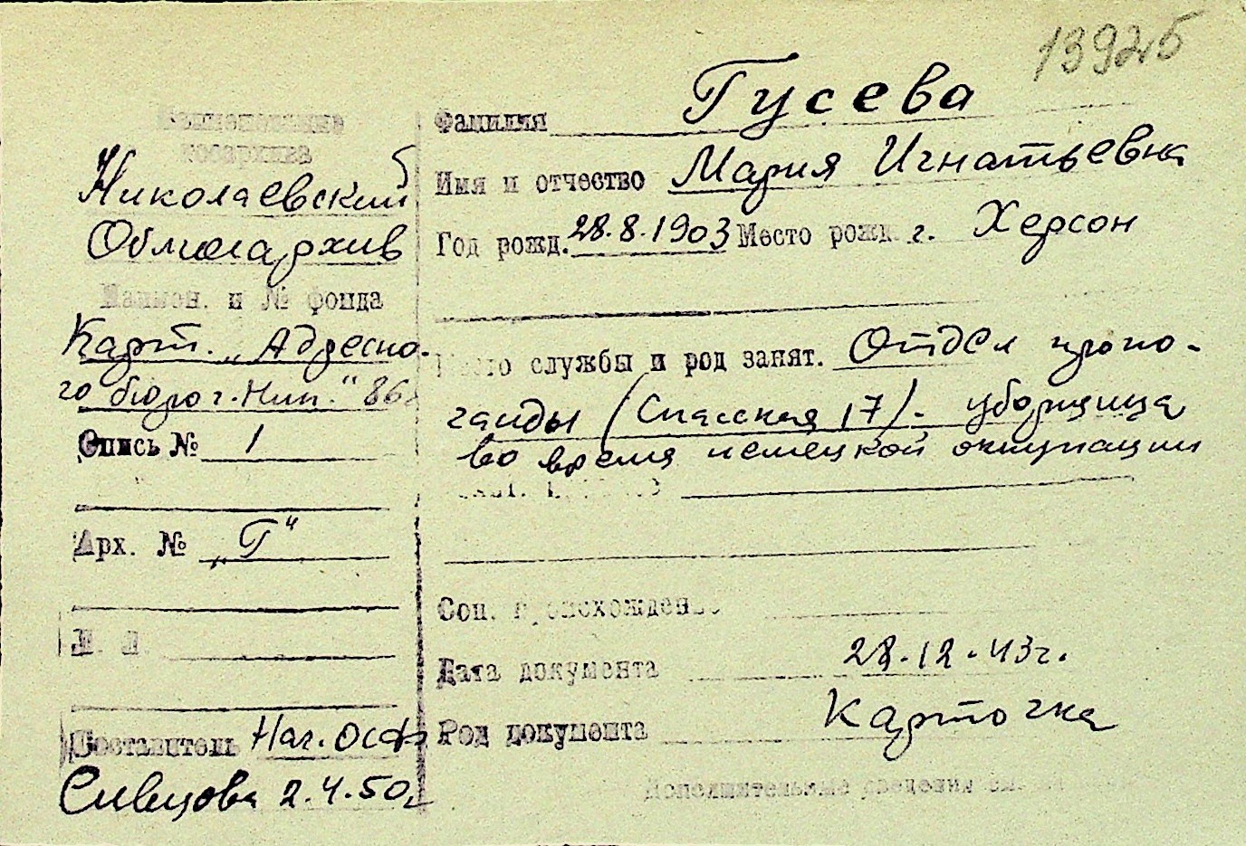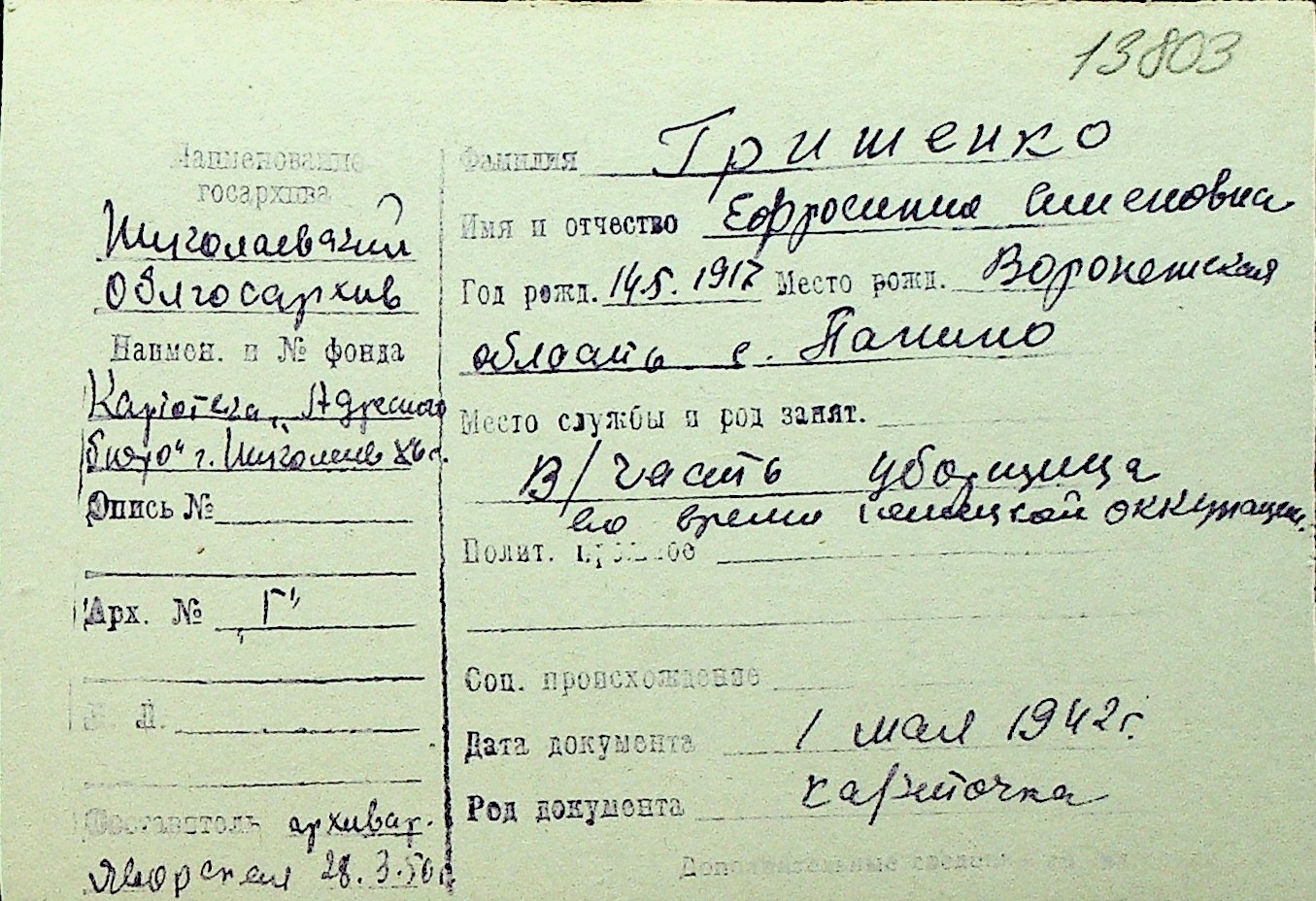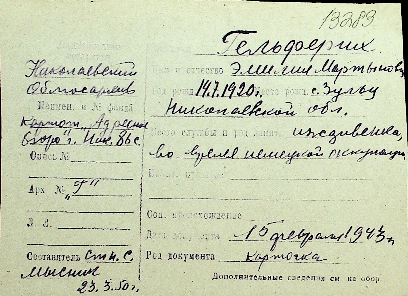 • • Перелік карток до фонду № Н-1016