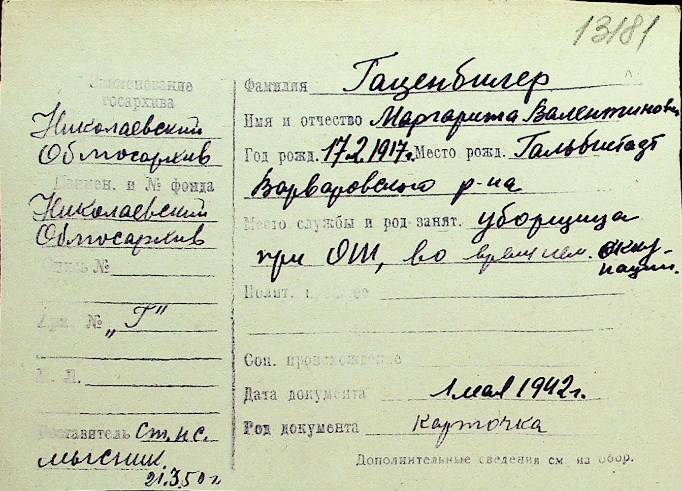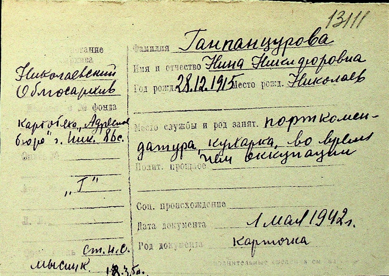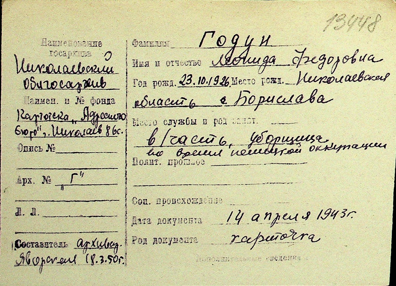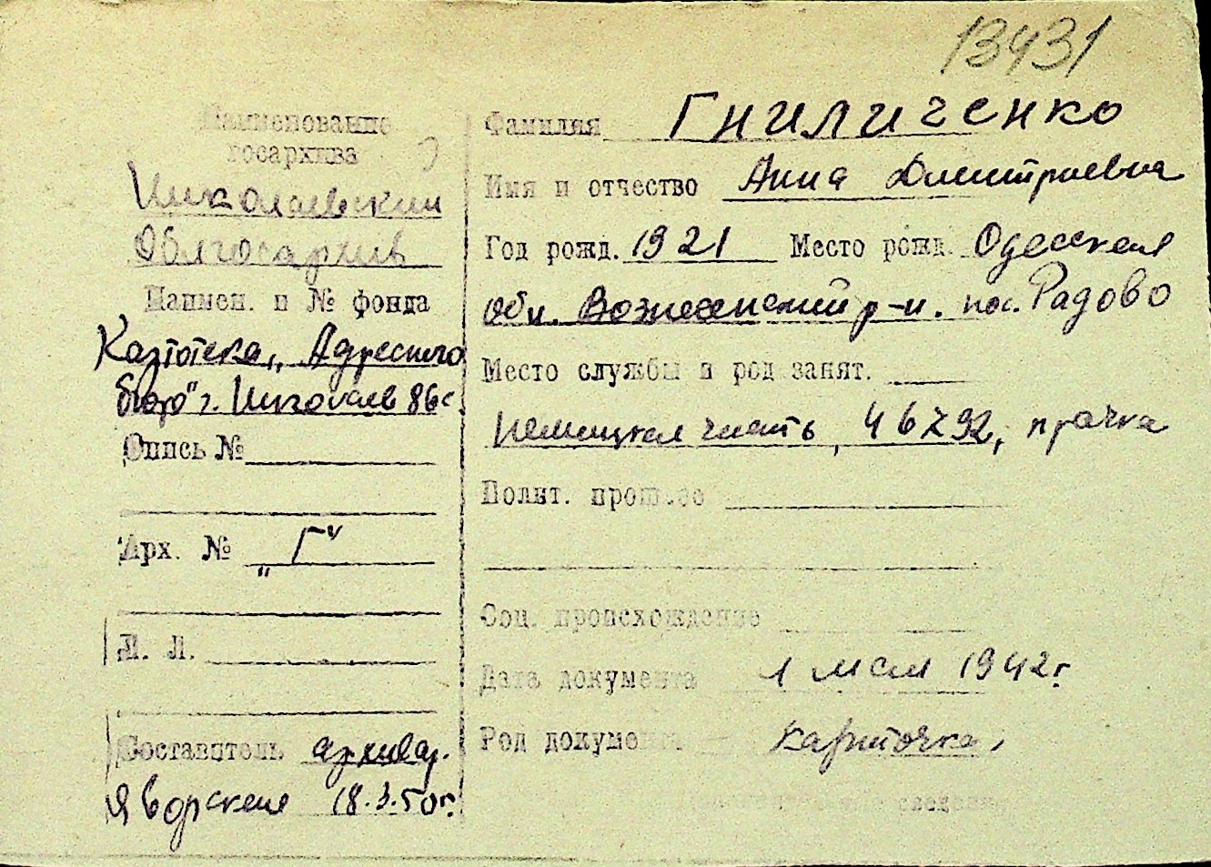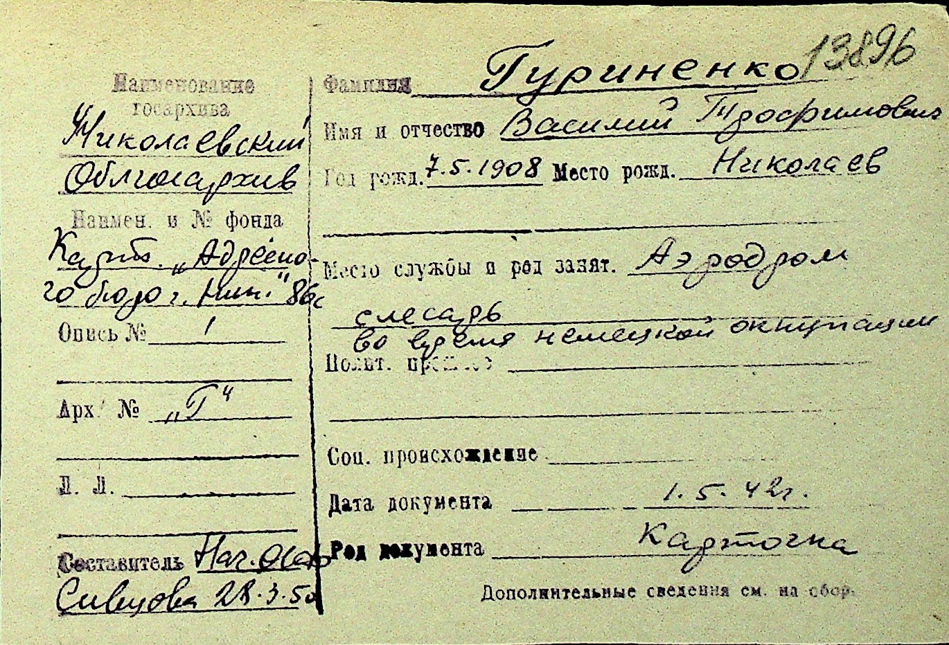 • • Перелік карток до фонду № Н-1016