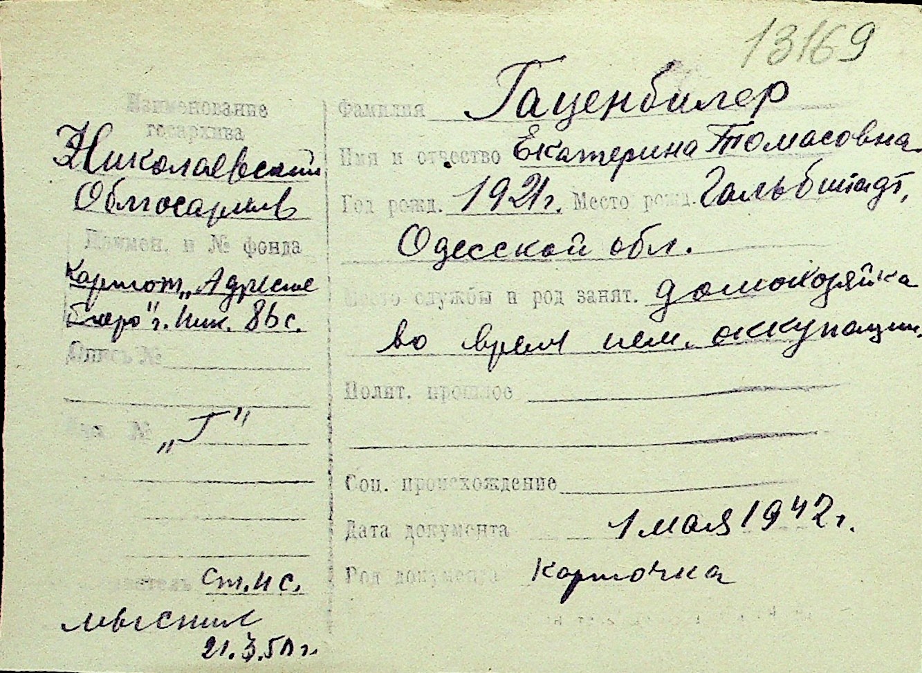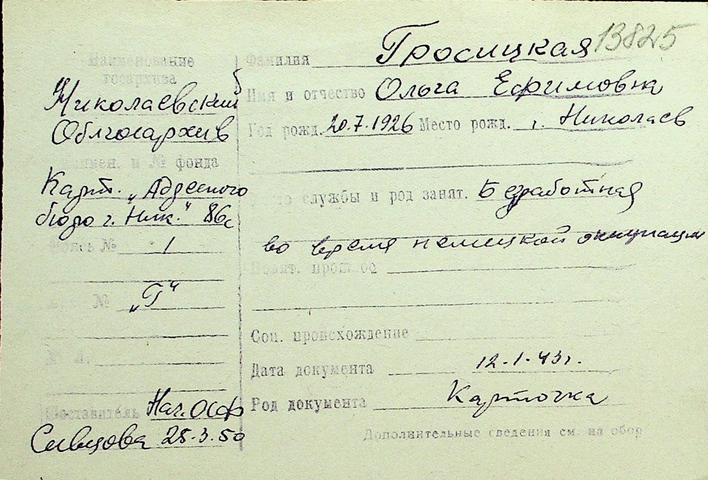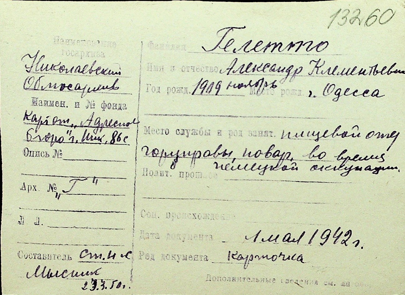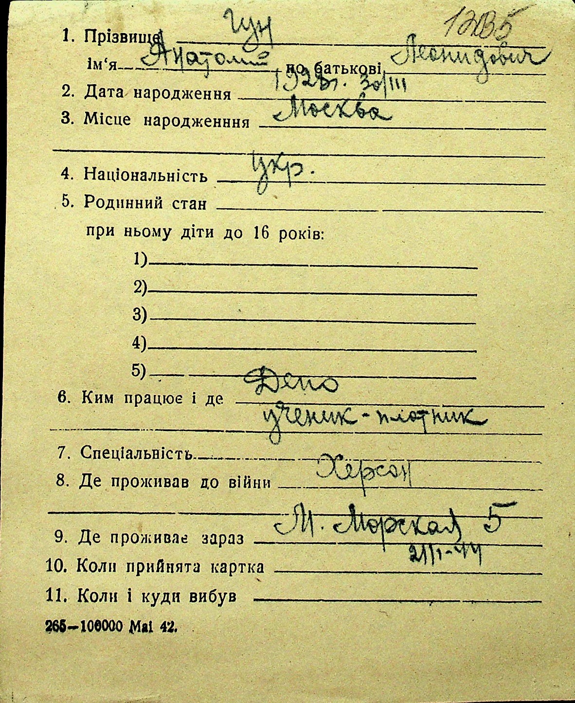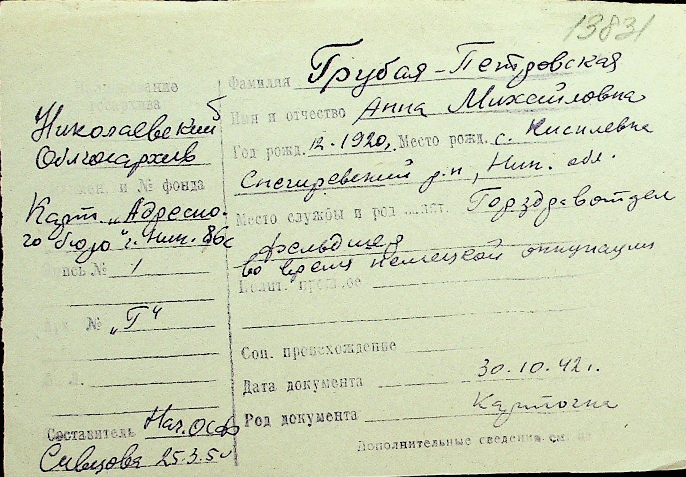 • • Перелік карток до фонду № Н-1016