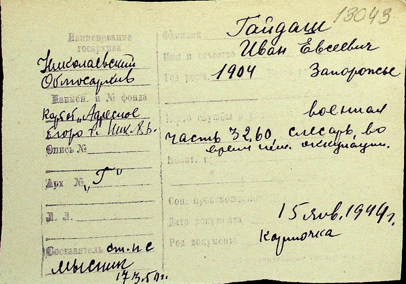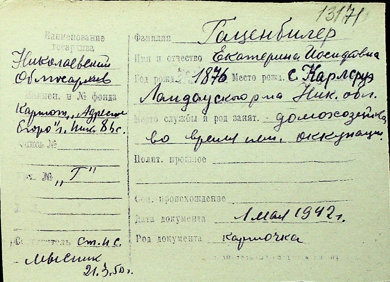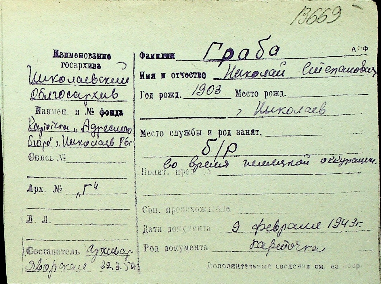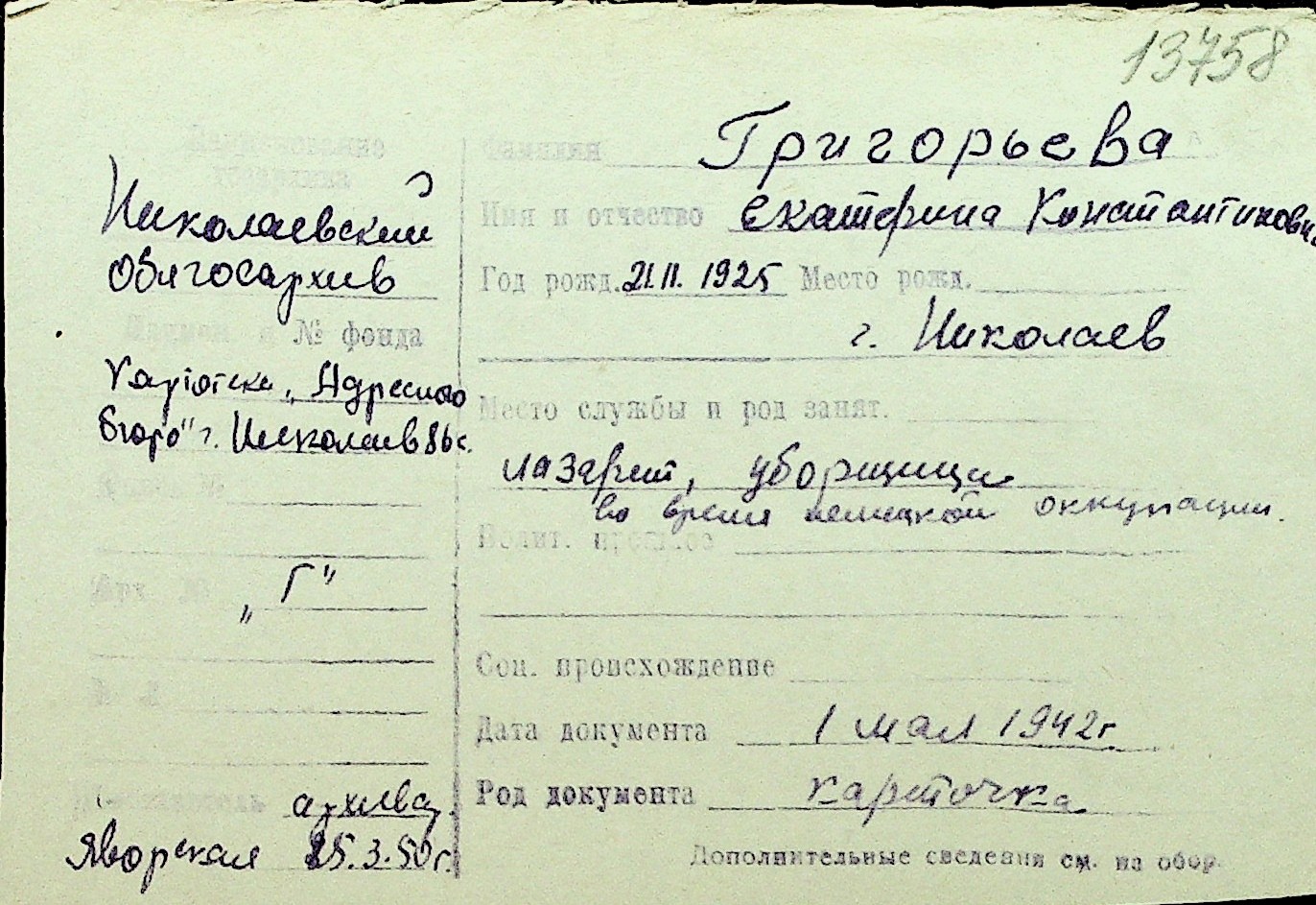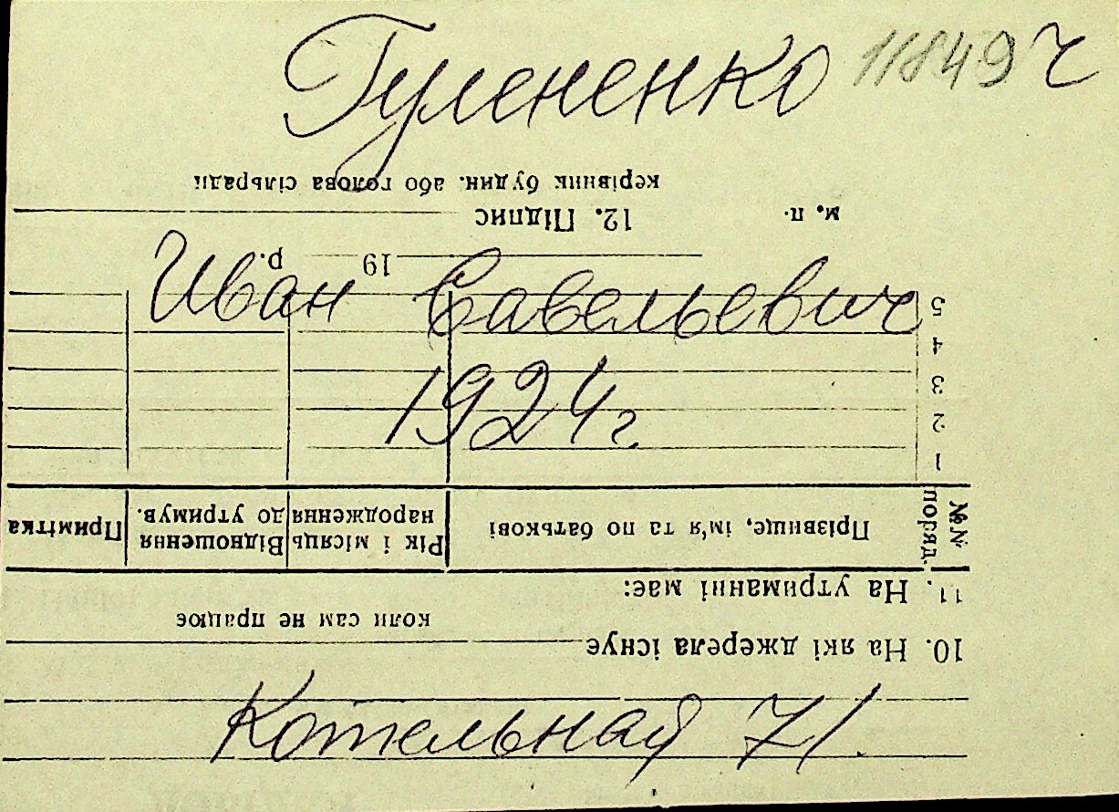 • • Перелік карток до фонду № Н-1016