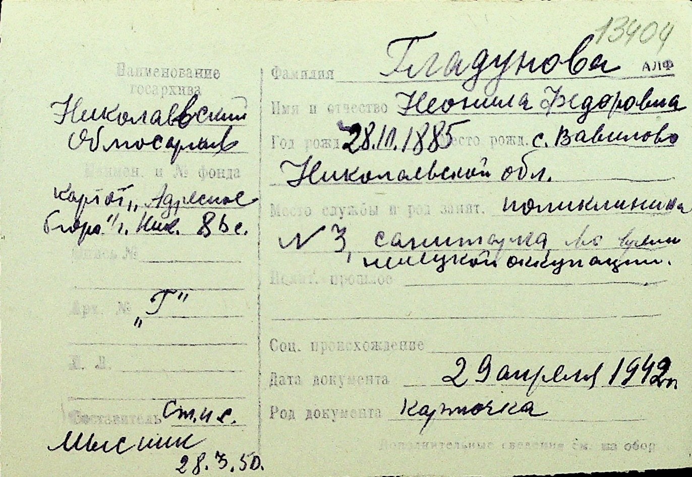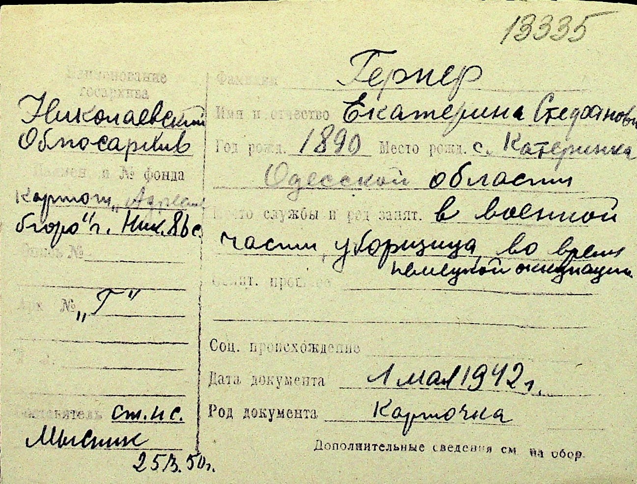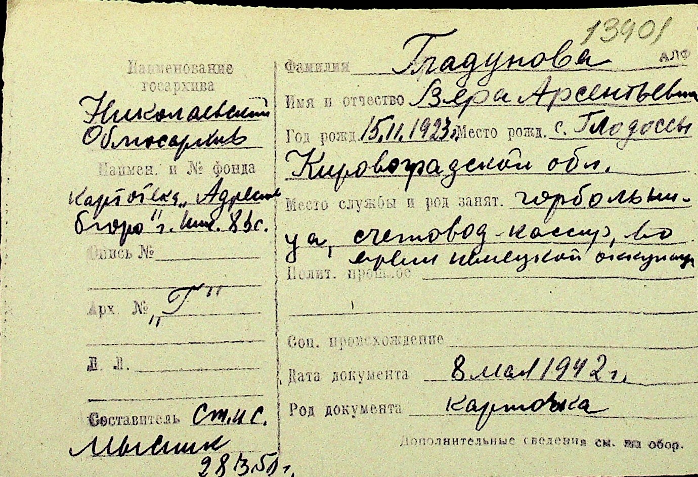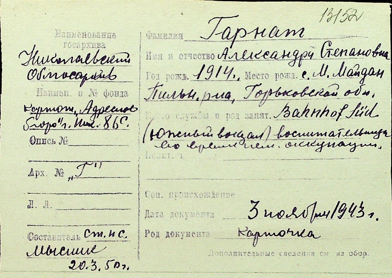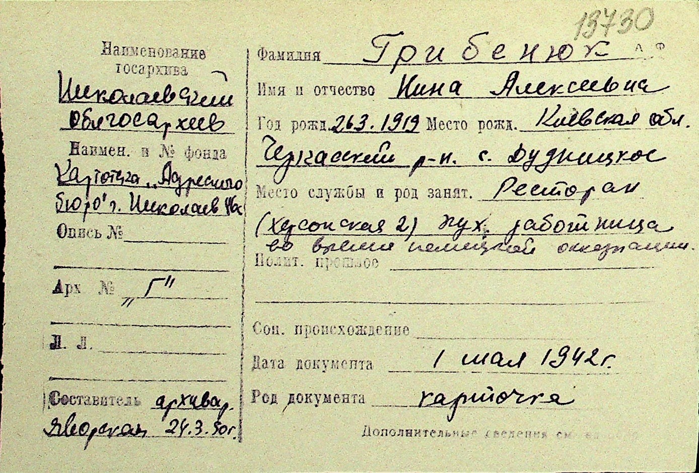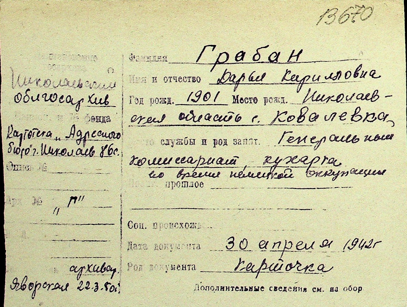 • • Перелік карток до фонду № Н-1016