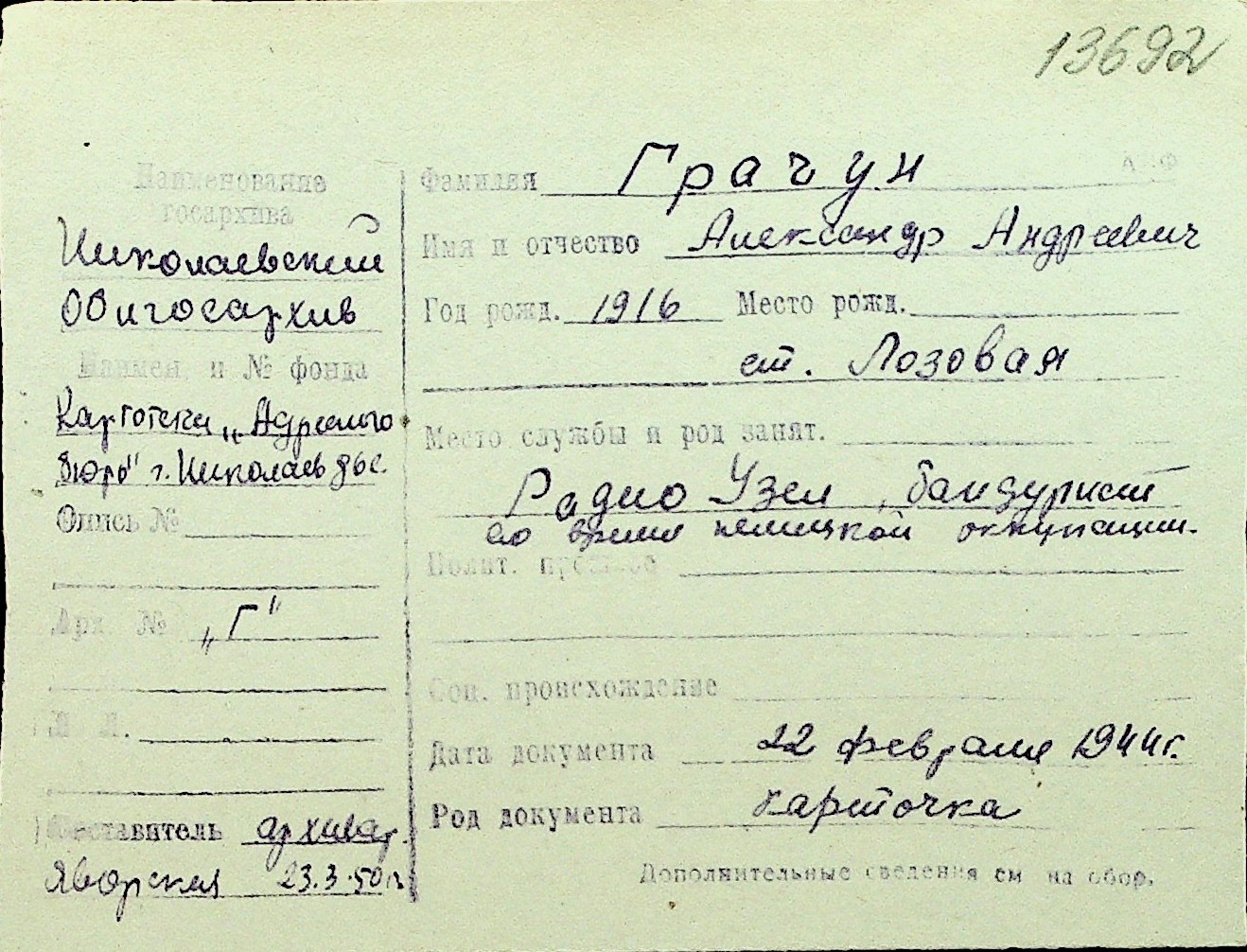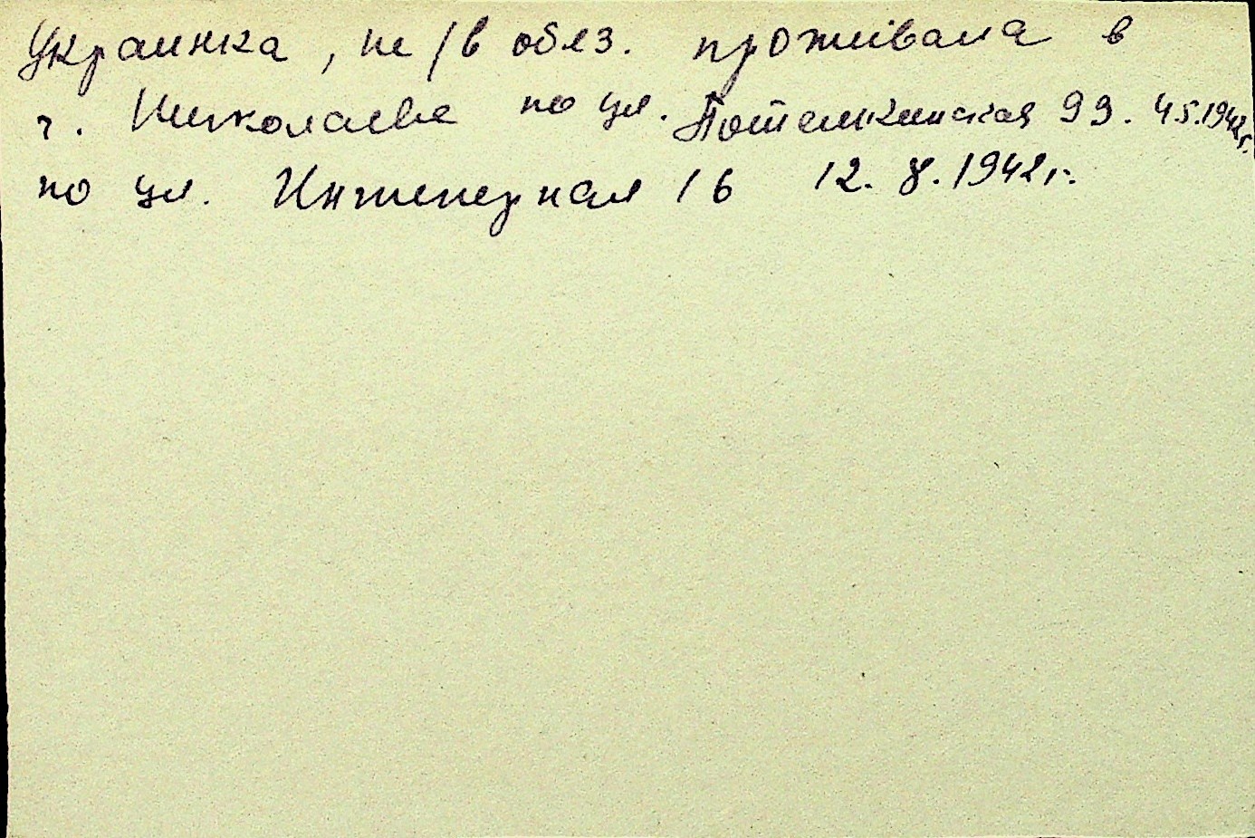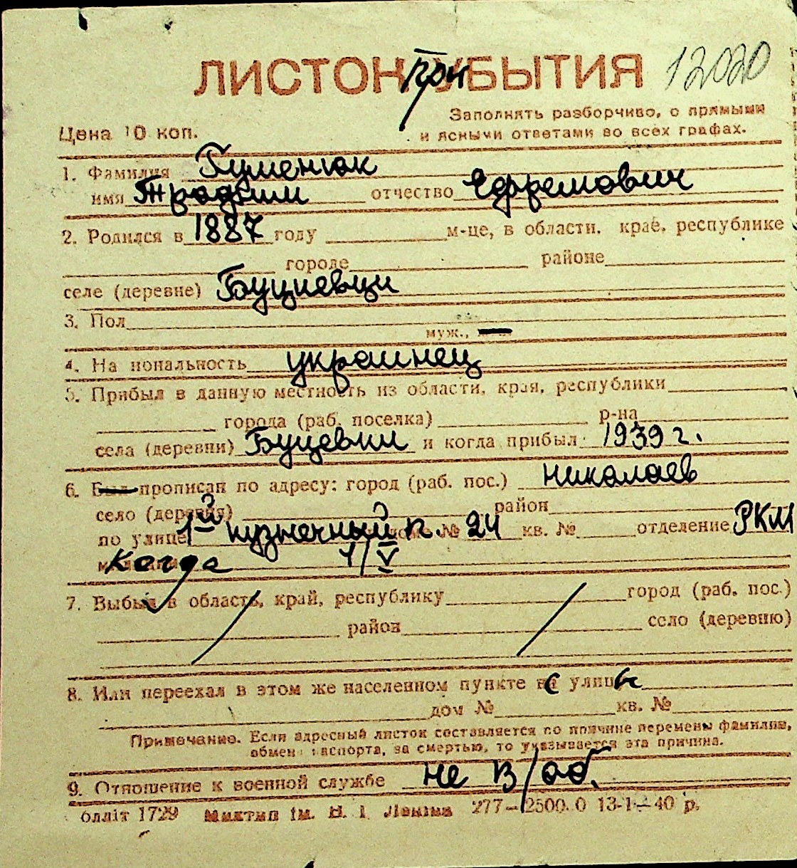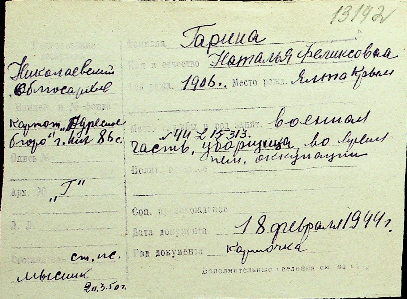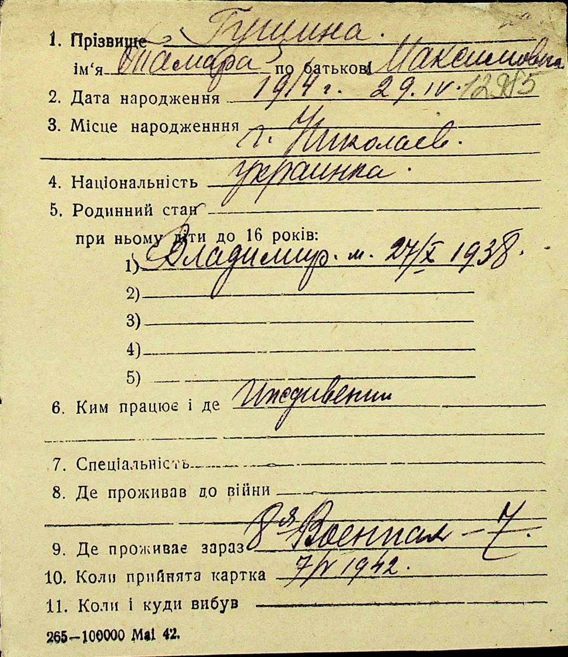 • • Перелік карток до фонду № Н-1016
