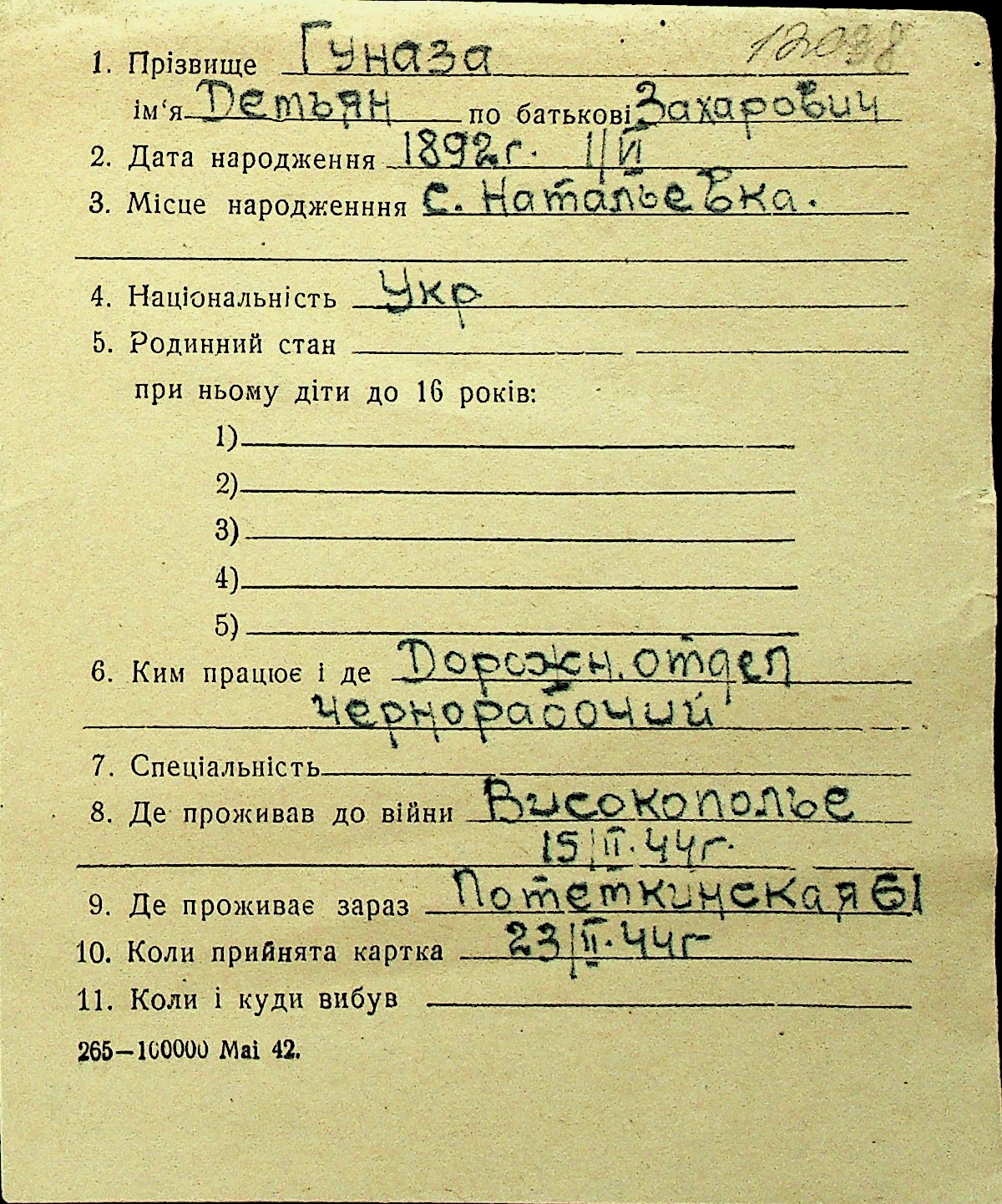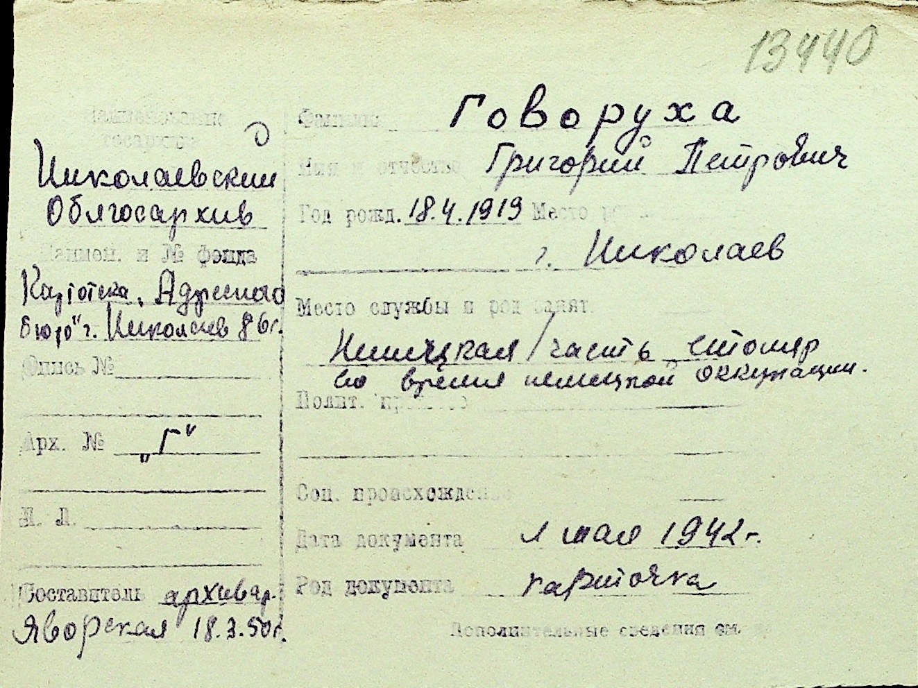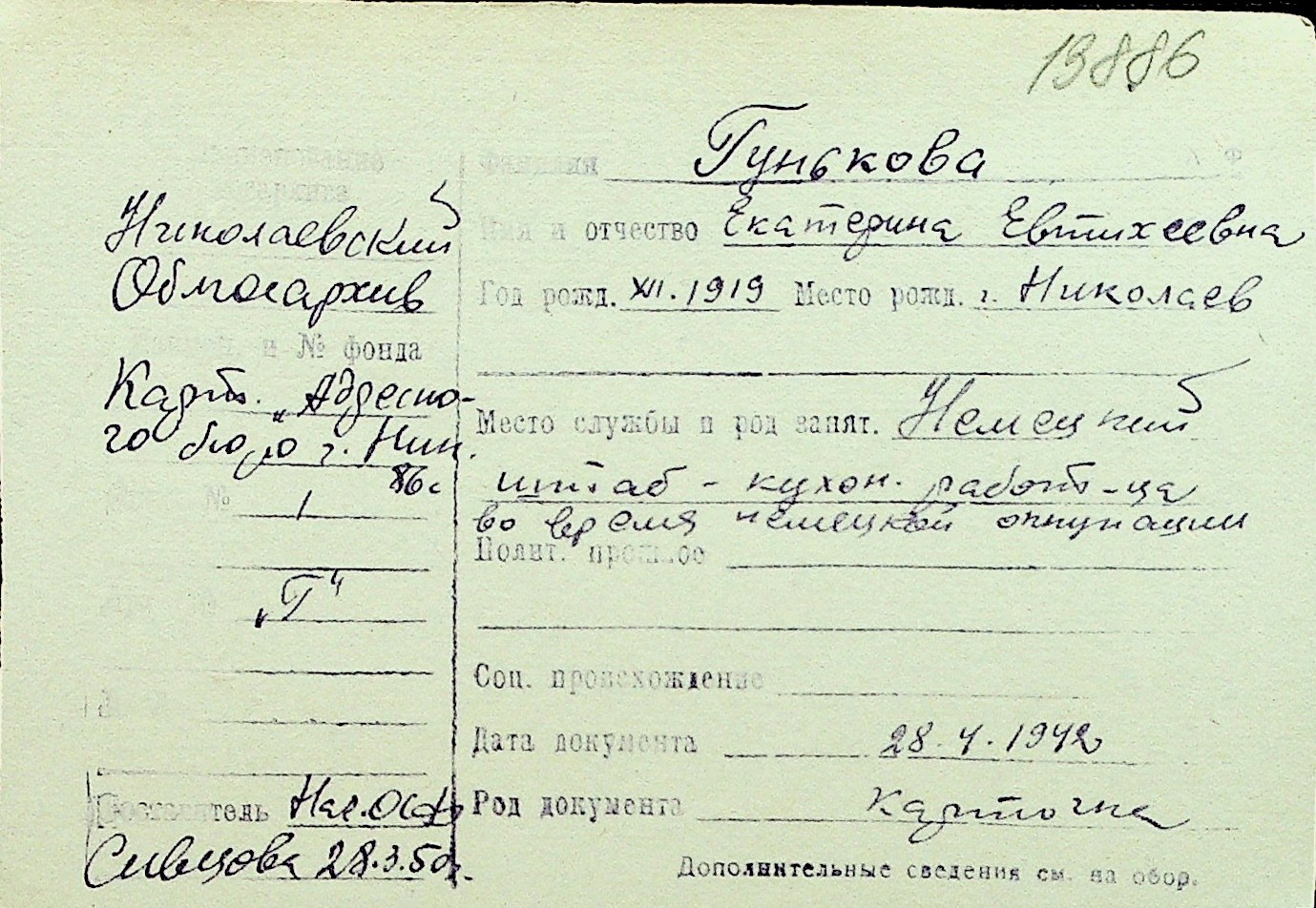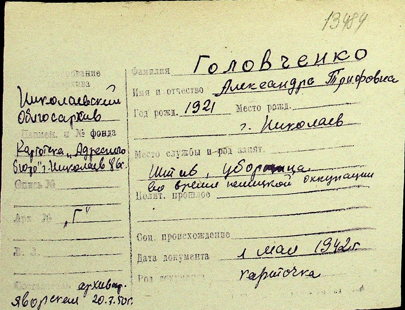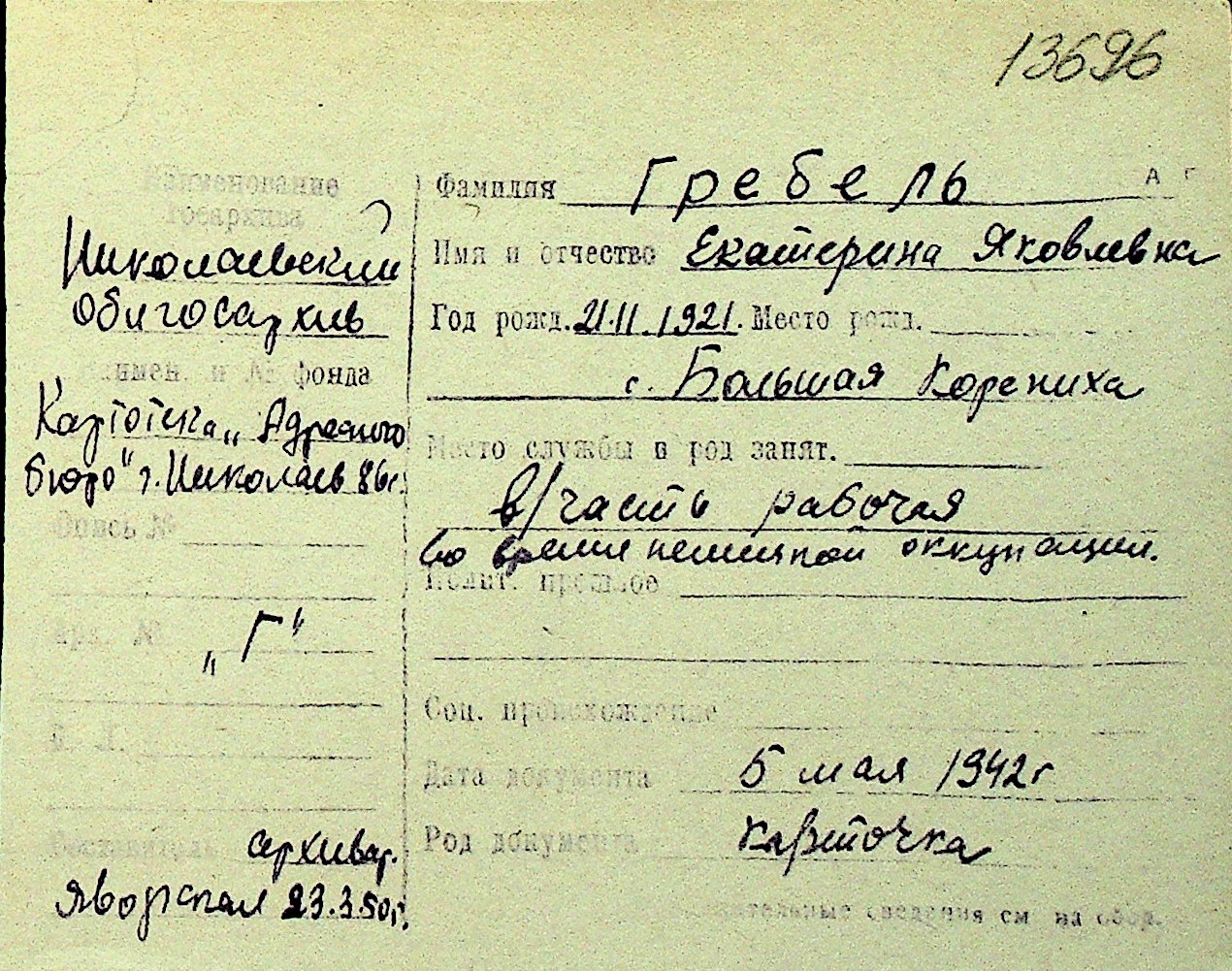 • • Перелік карток до фонду № Н-1016
