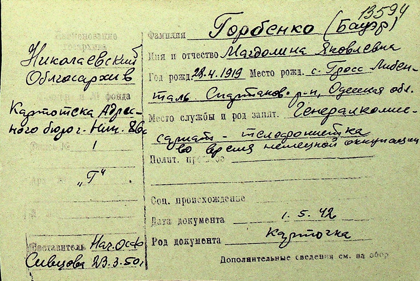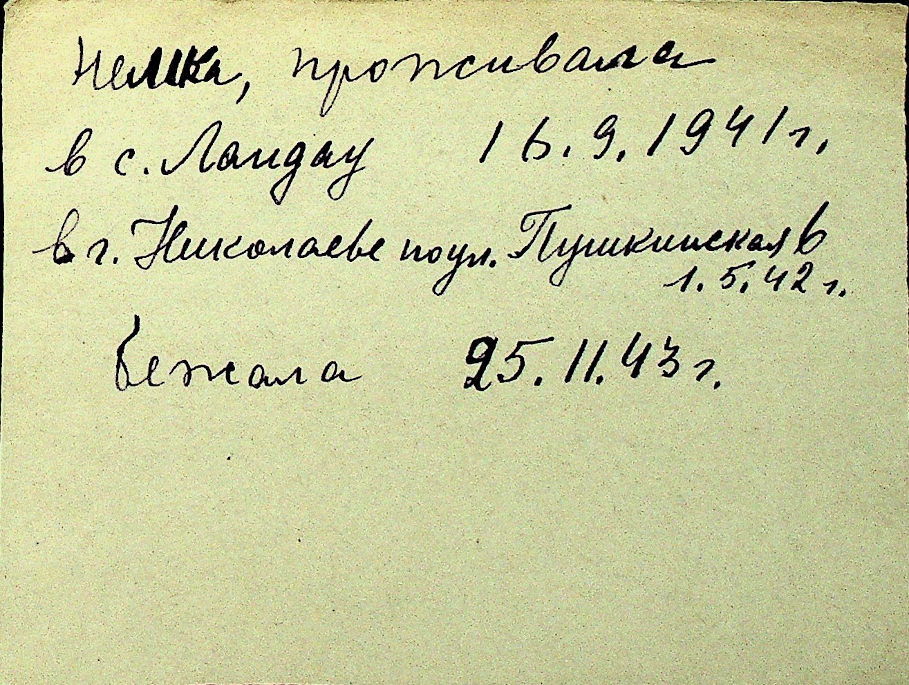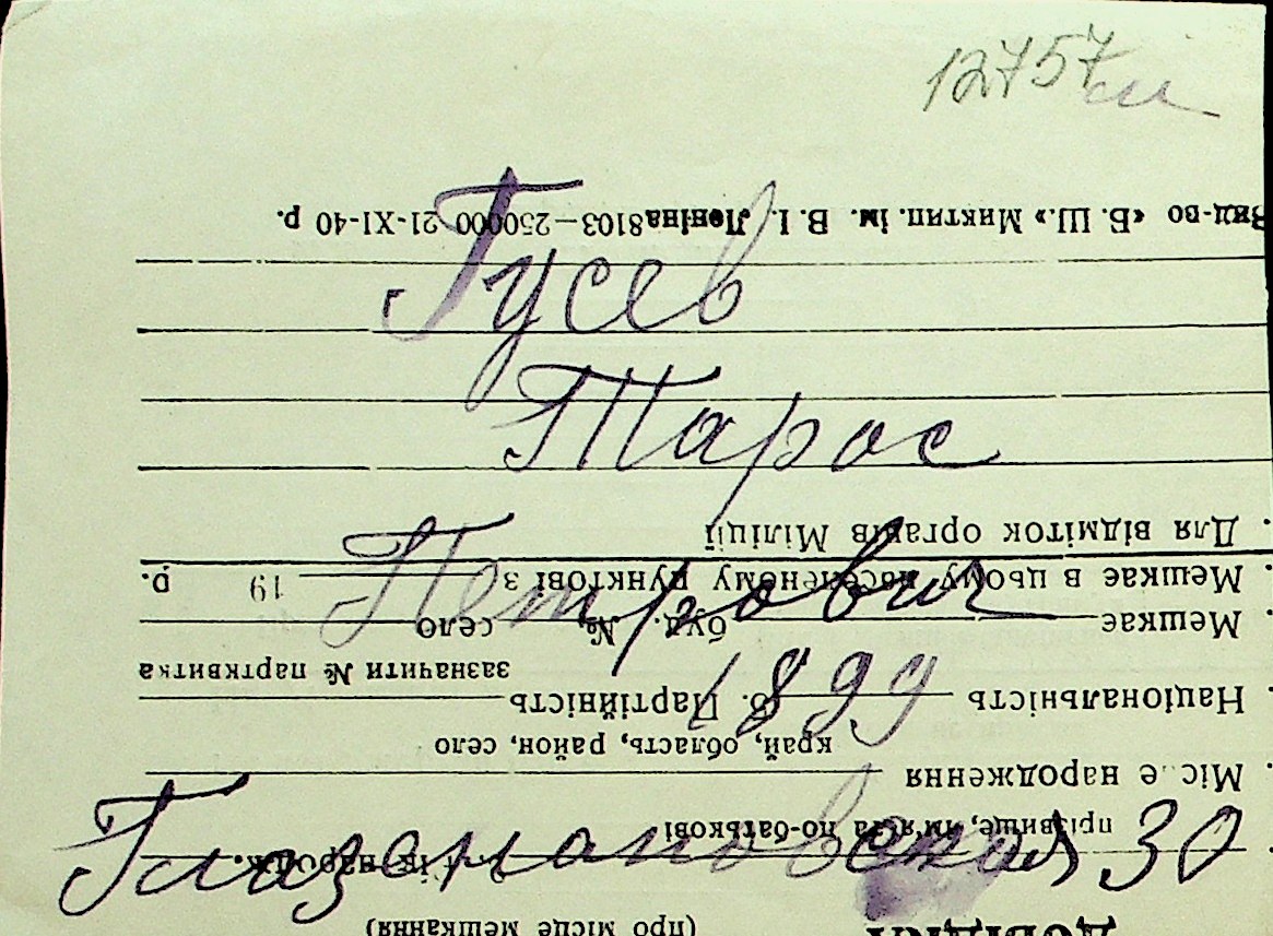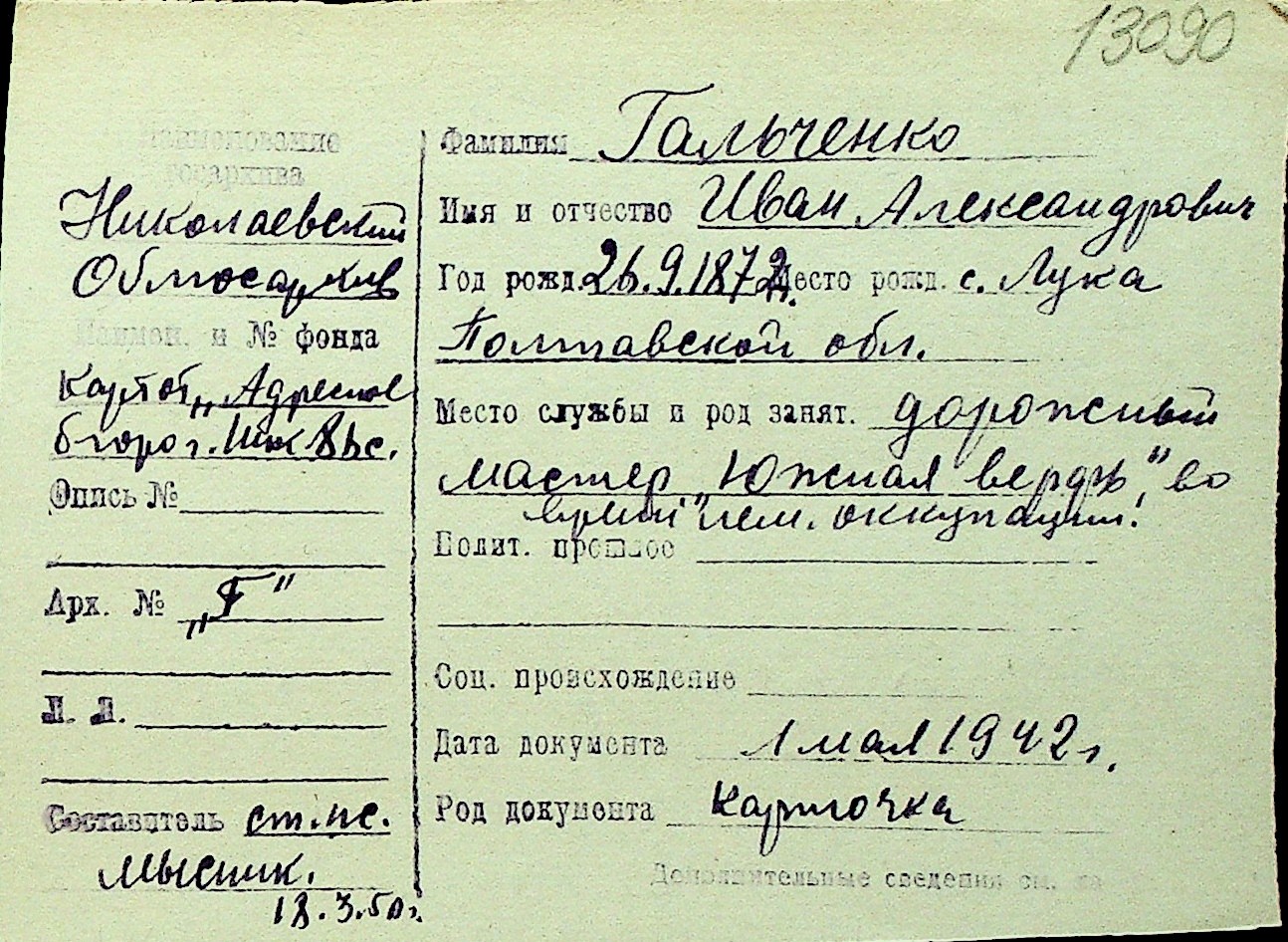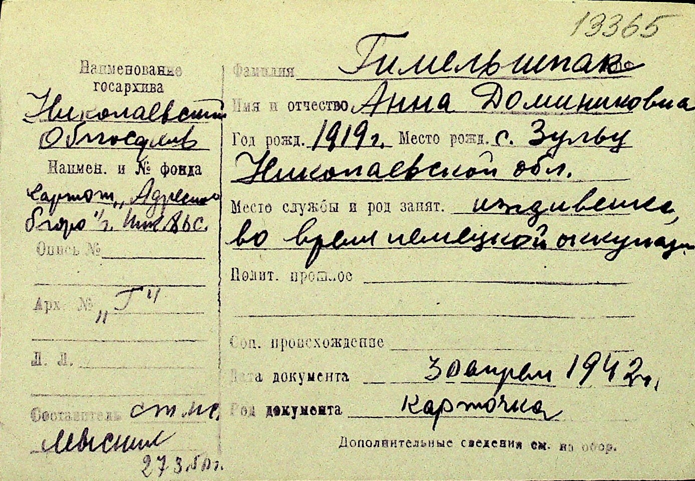 • • Перелік карток до фонду № Н-1016