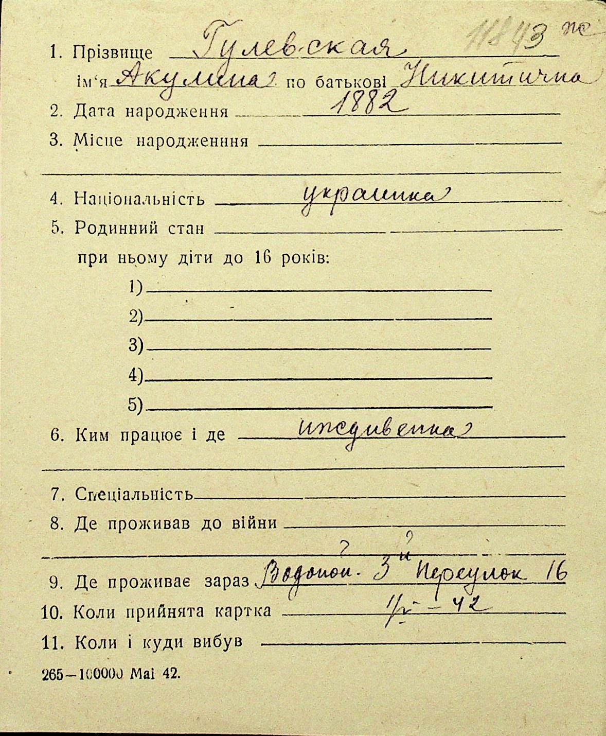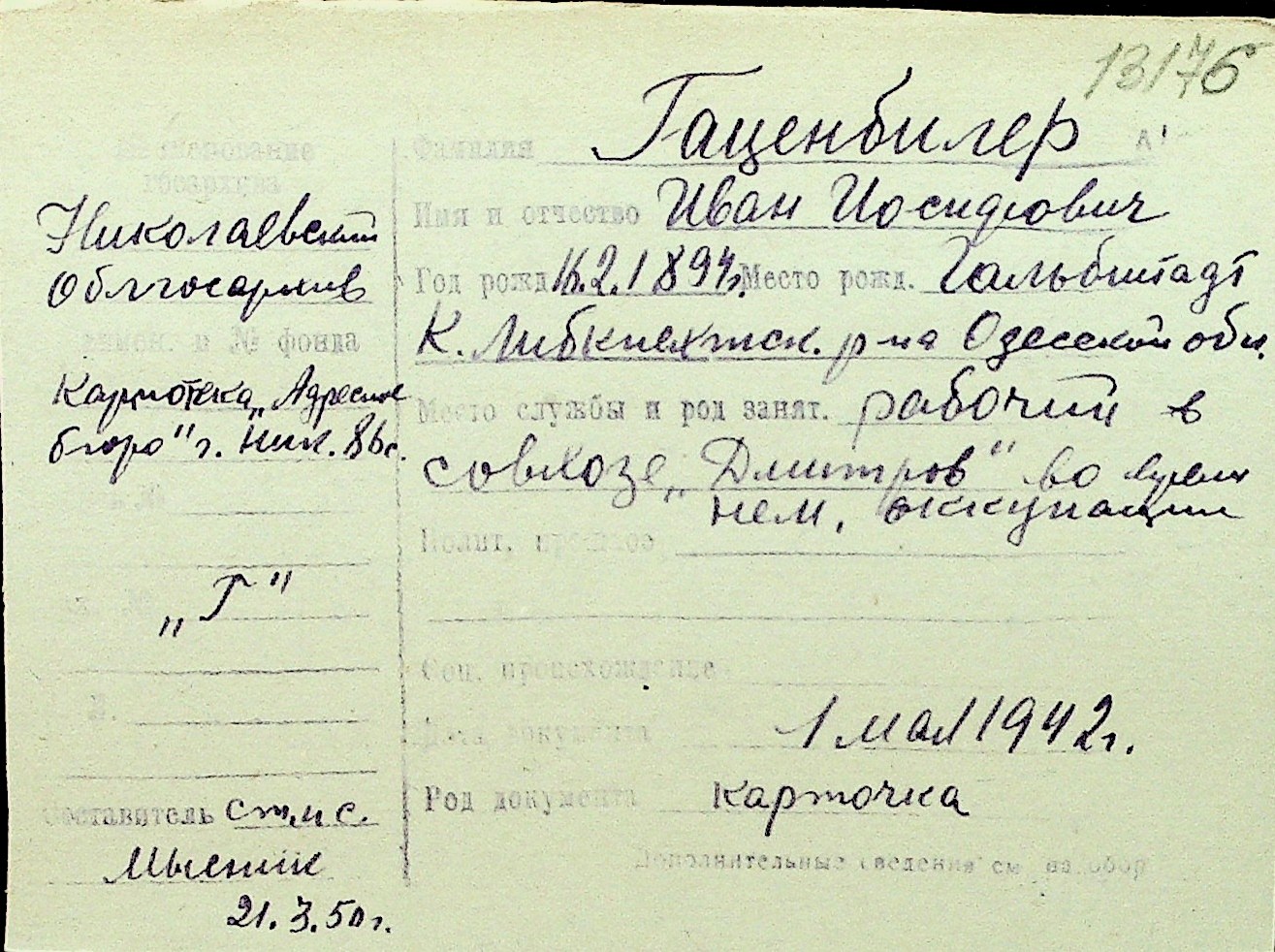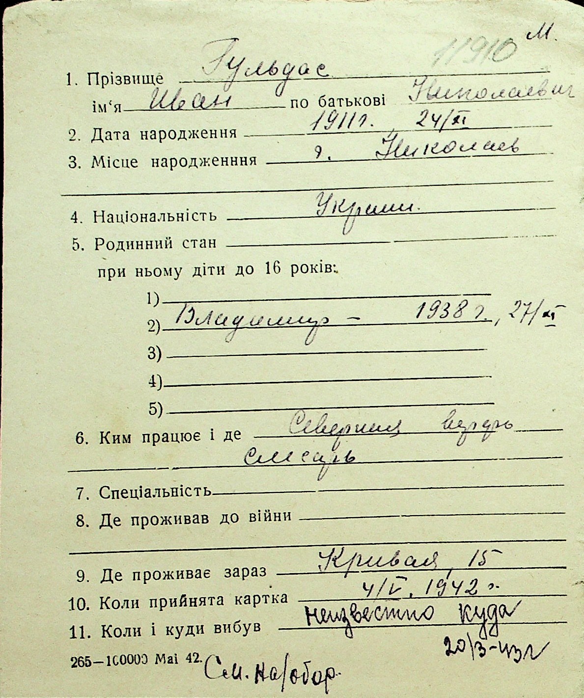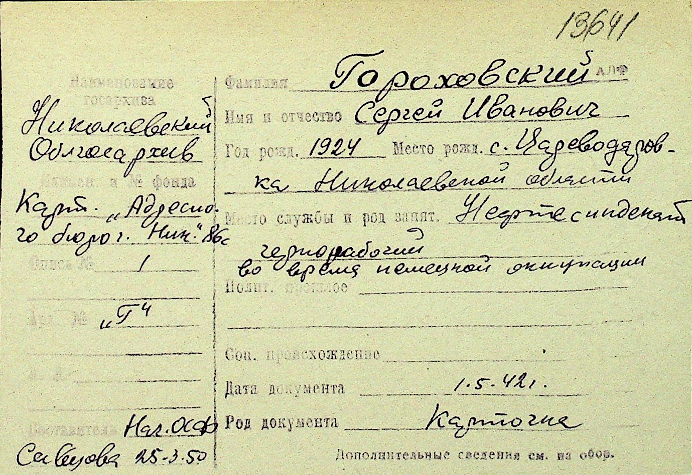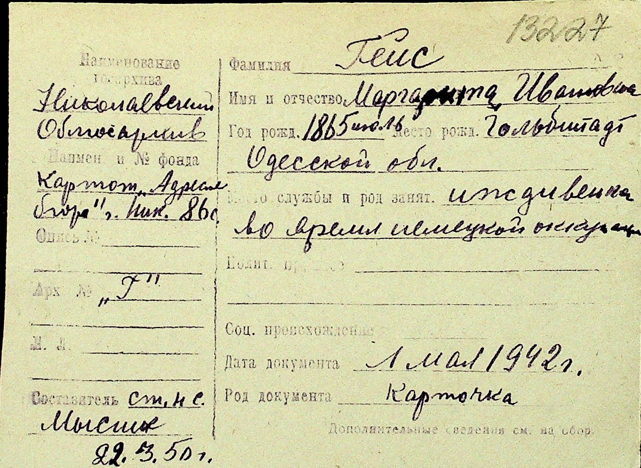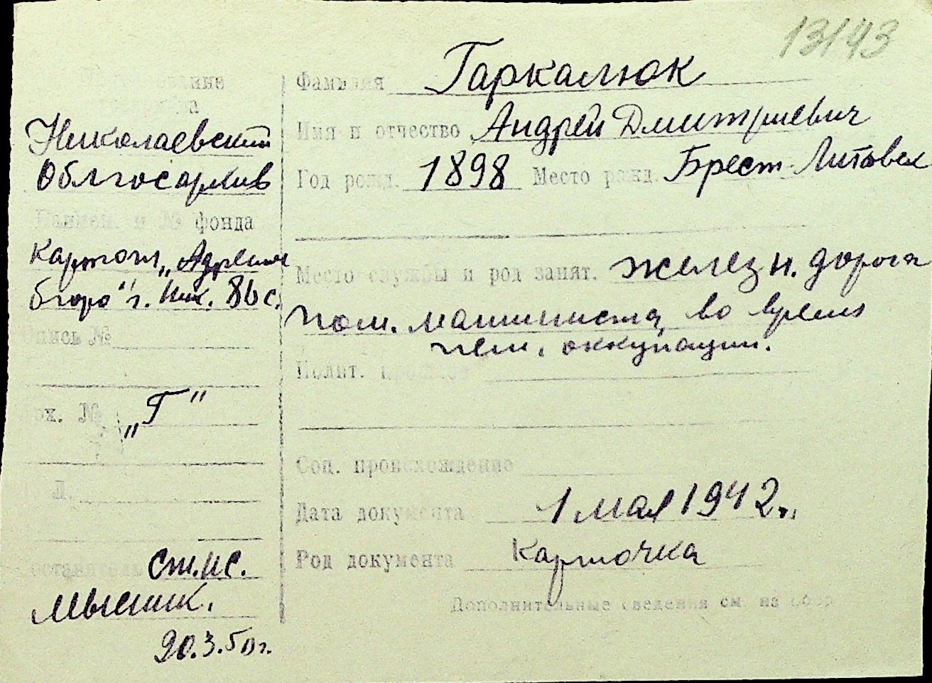 • • Перелік карток до фонду № Н-1016