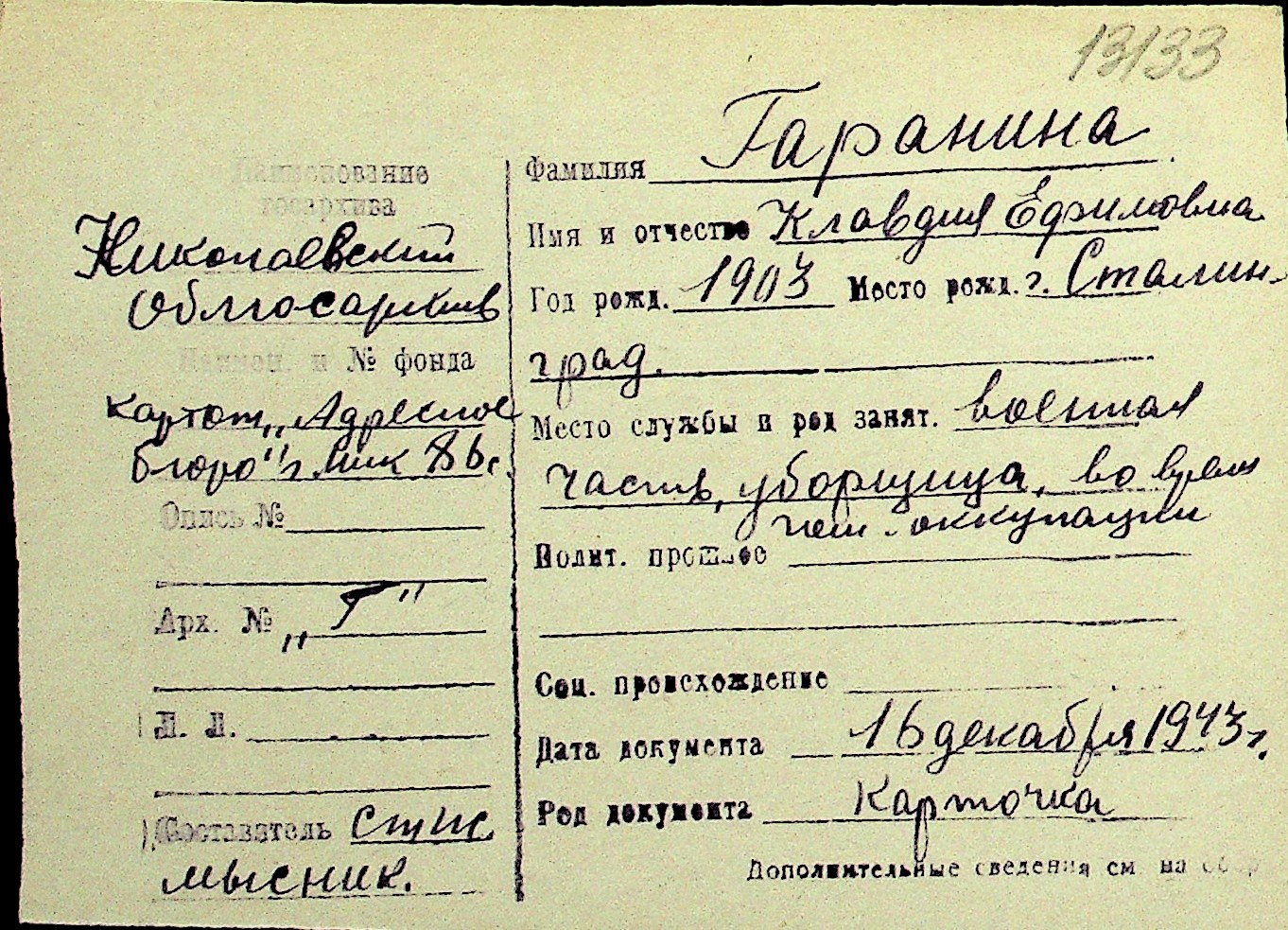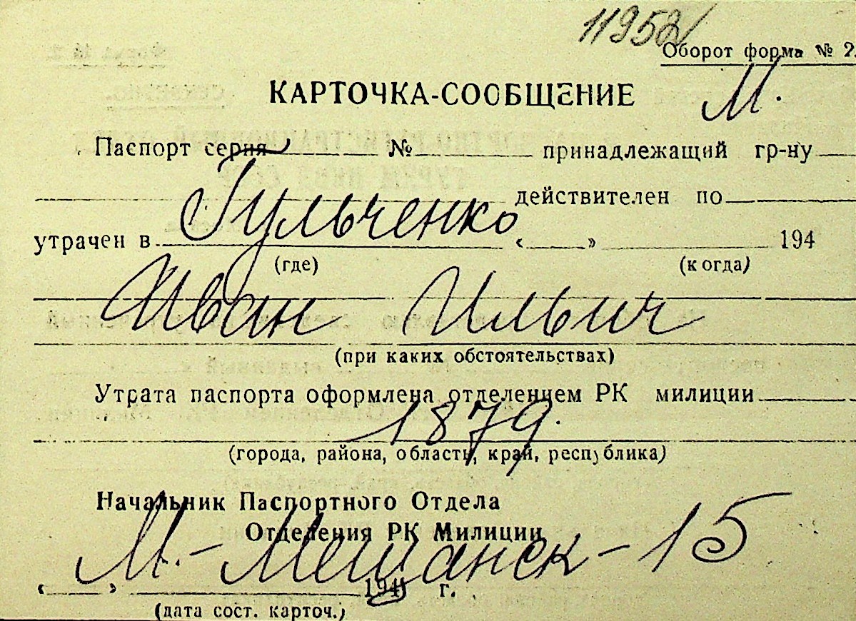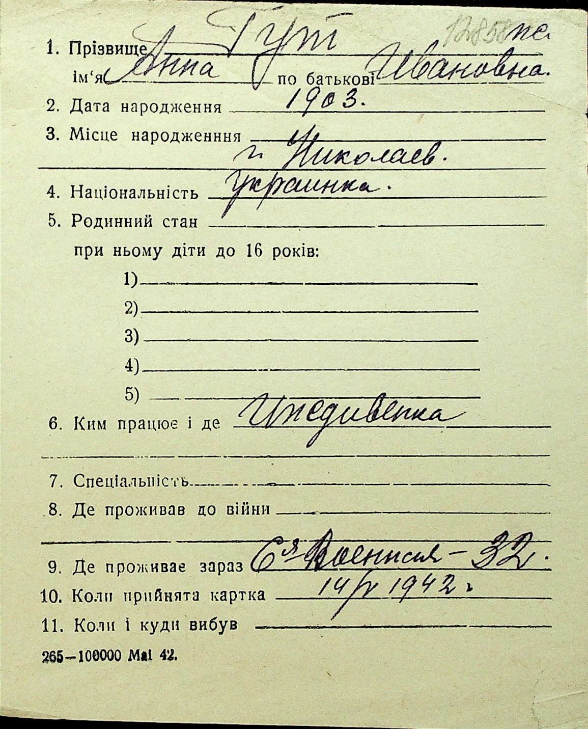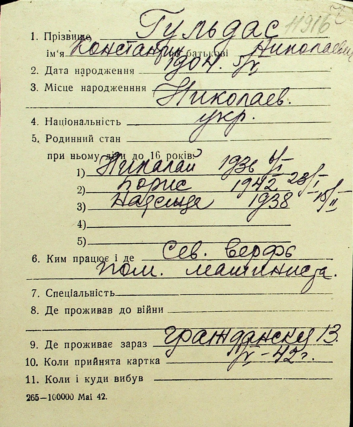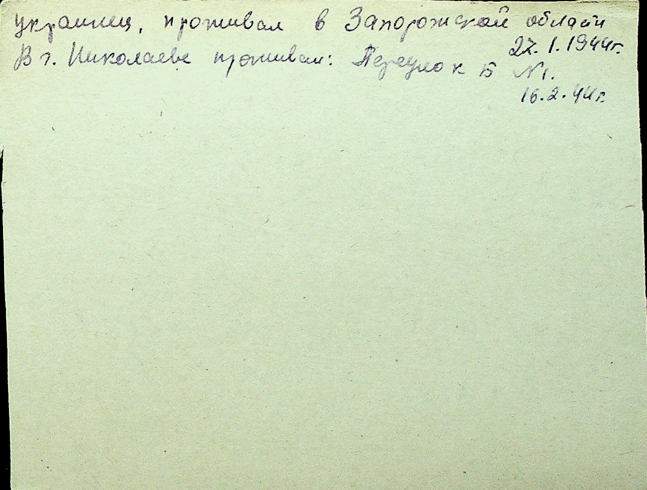 • • Перелік карток до фонду № Н-1016