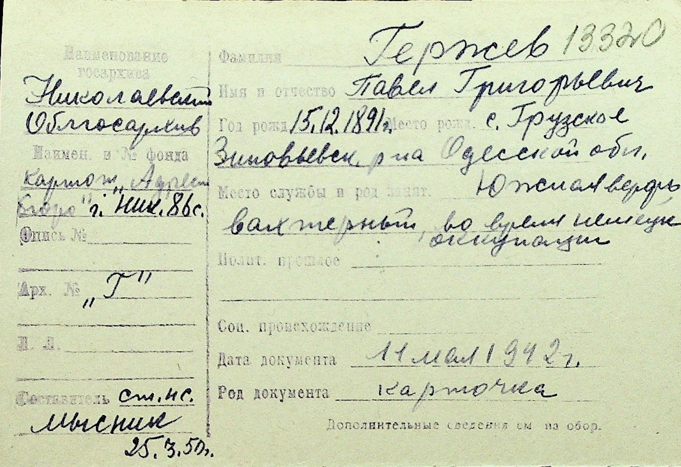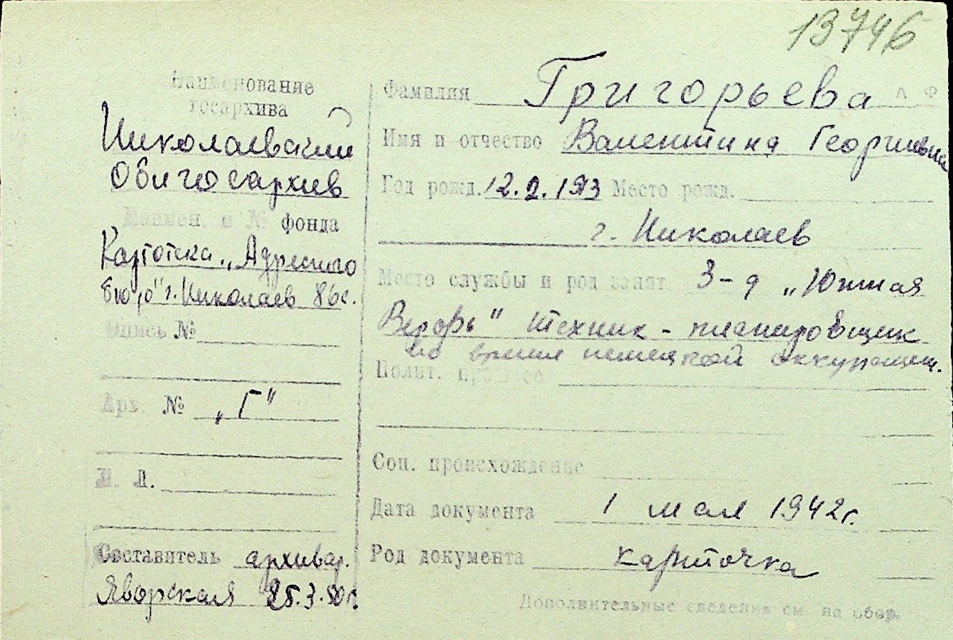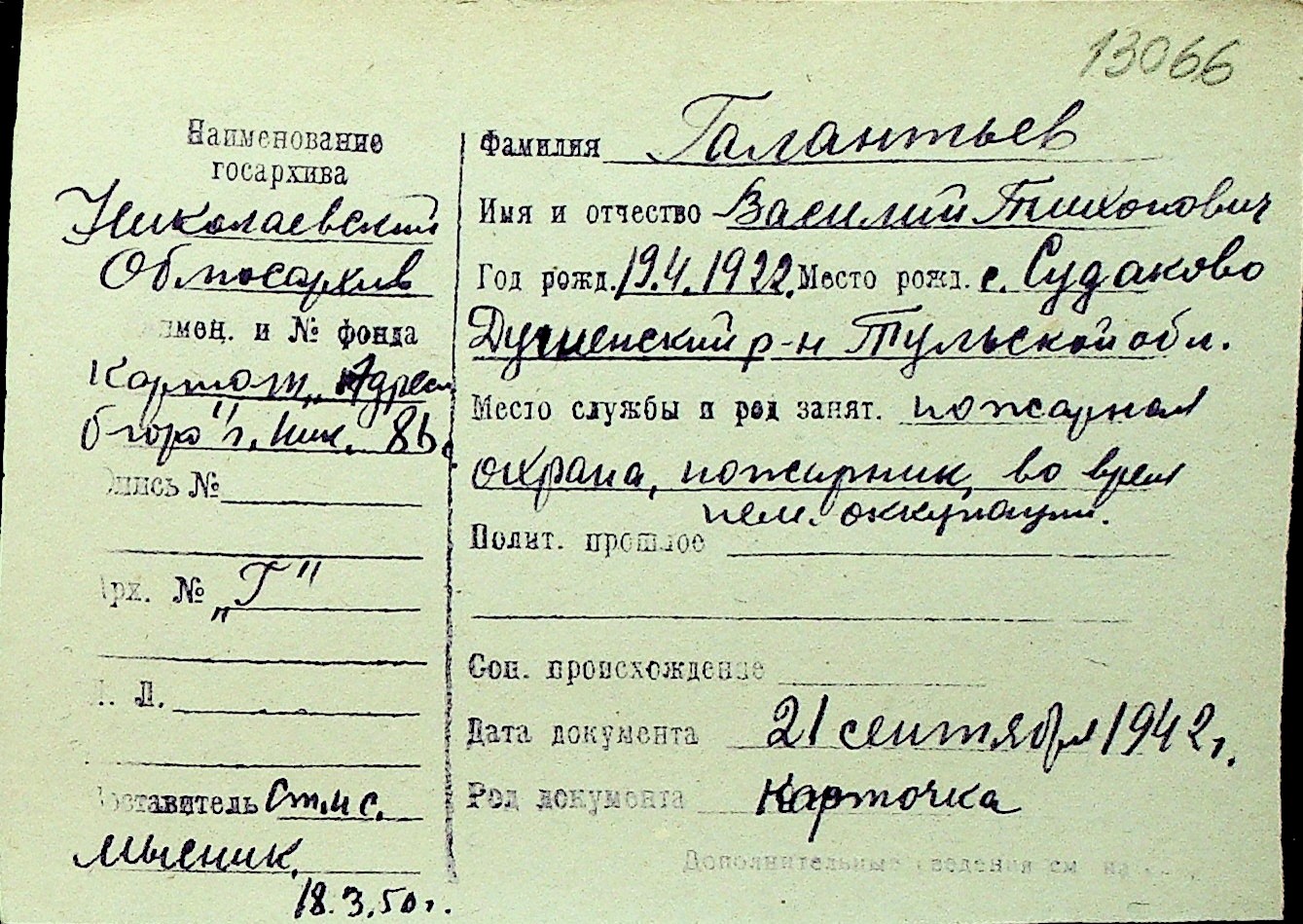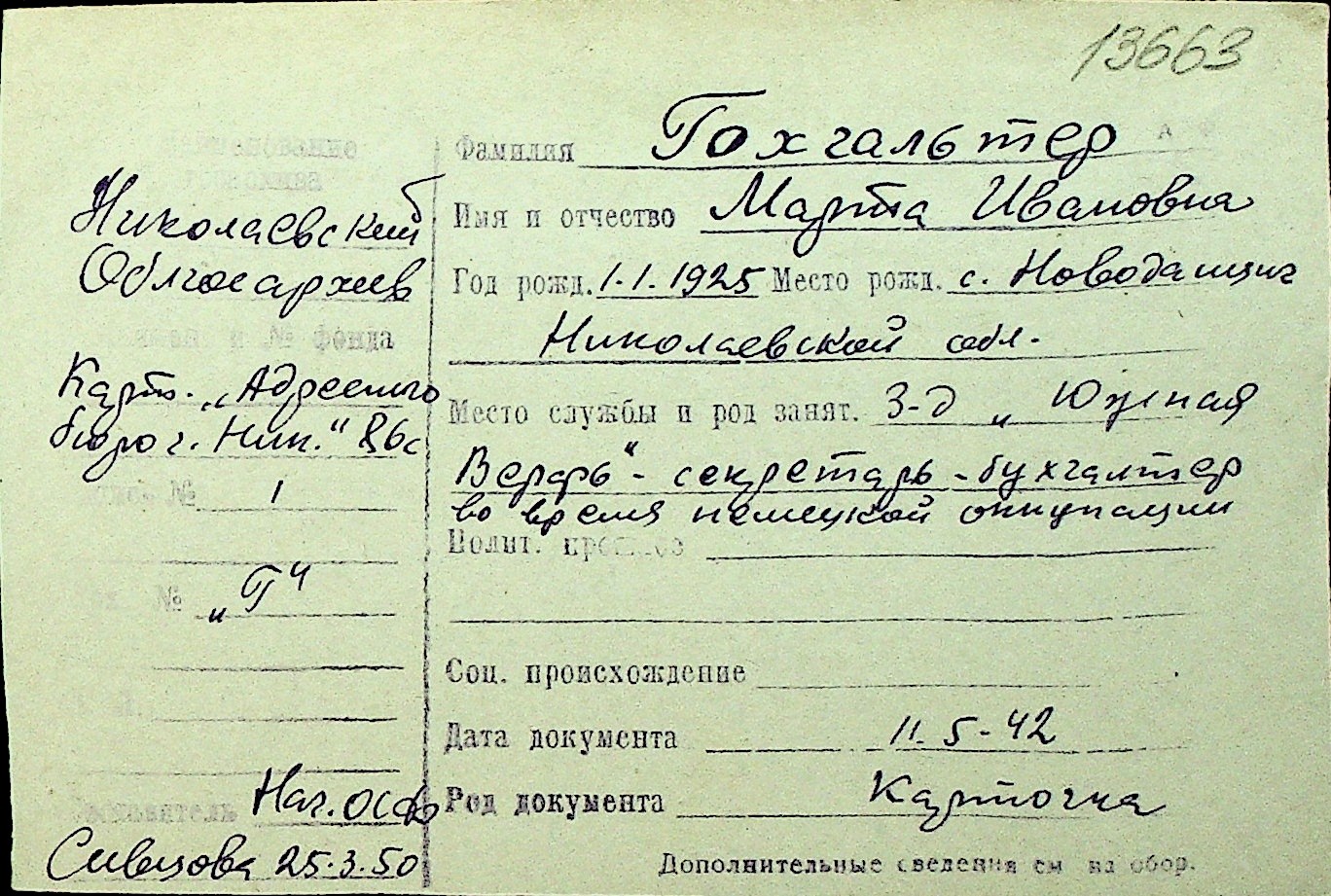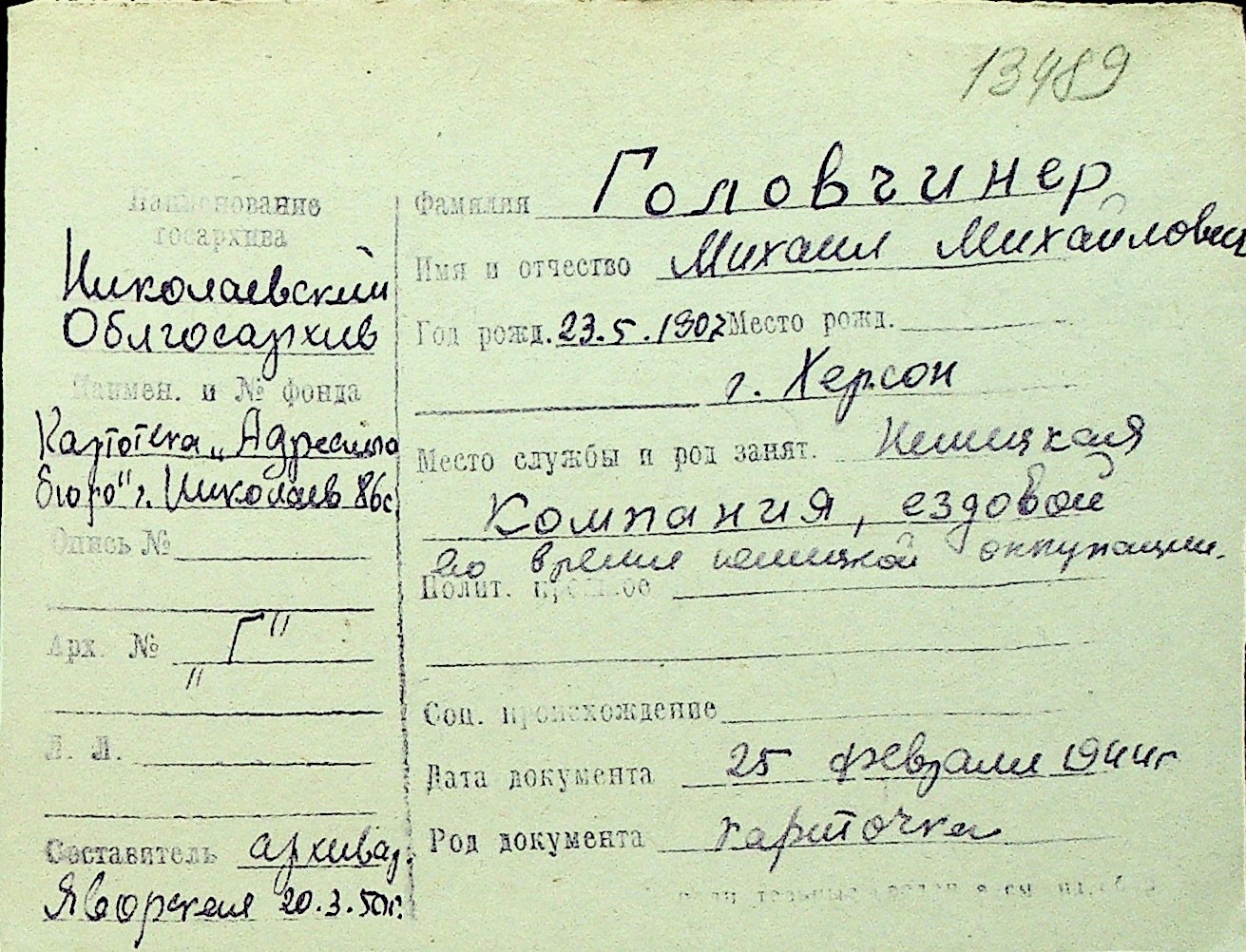 • • Перелік карток до фонду № Н-1016
