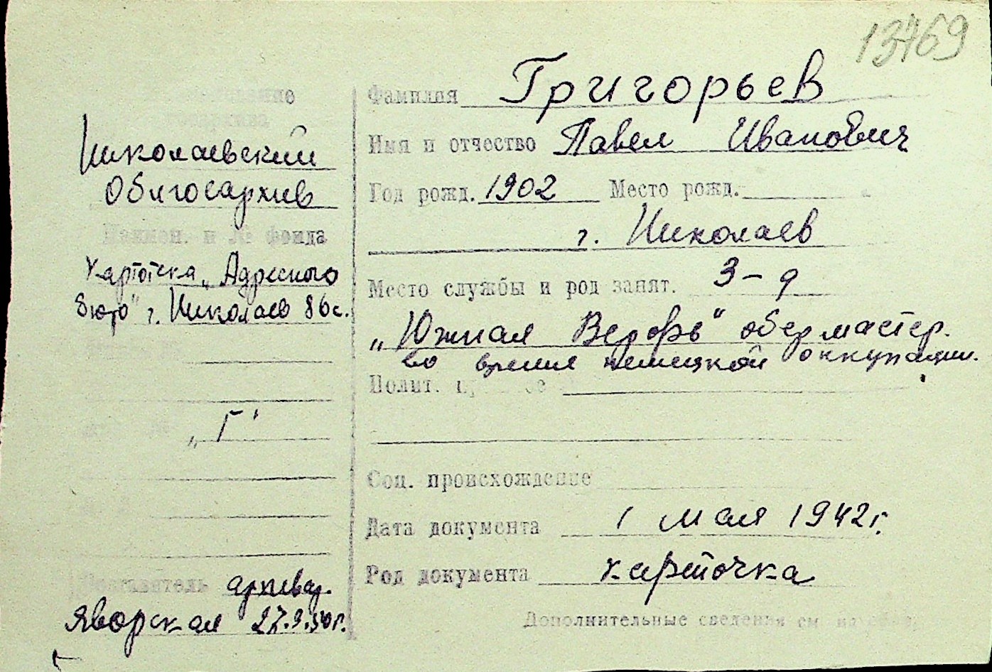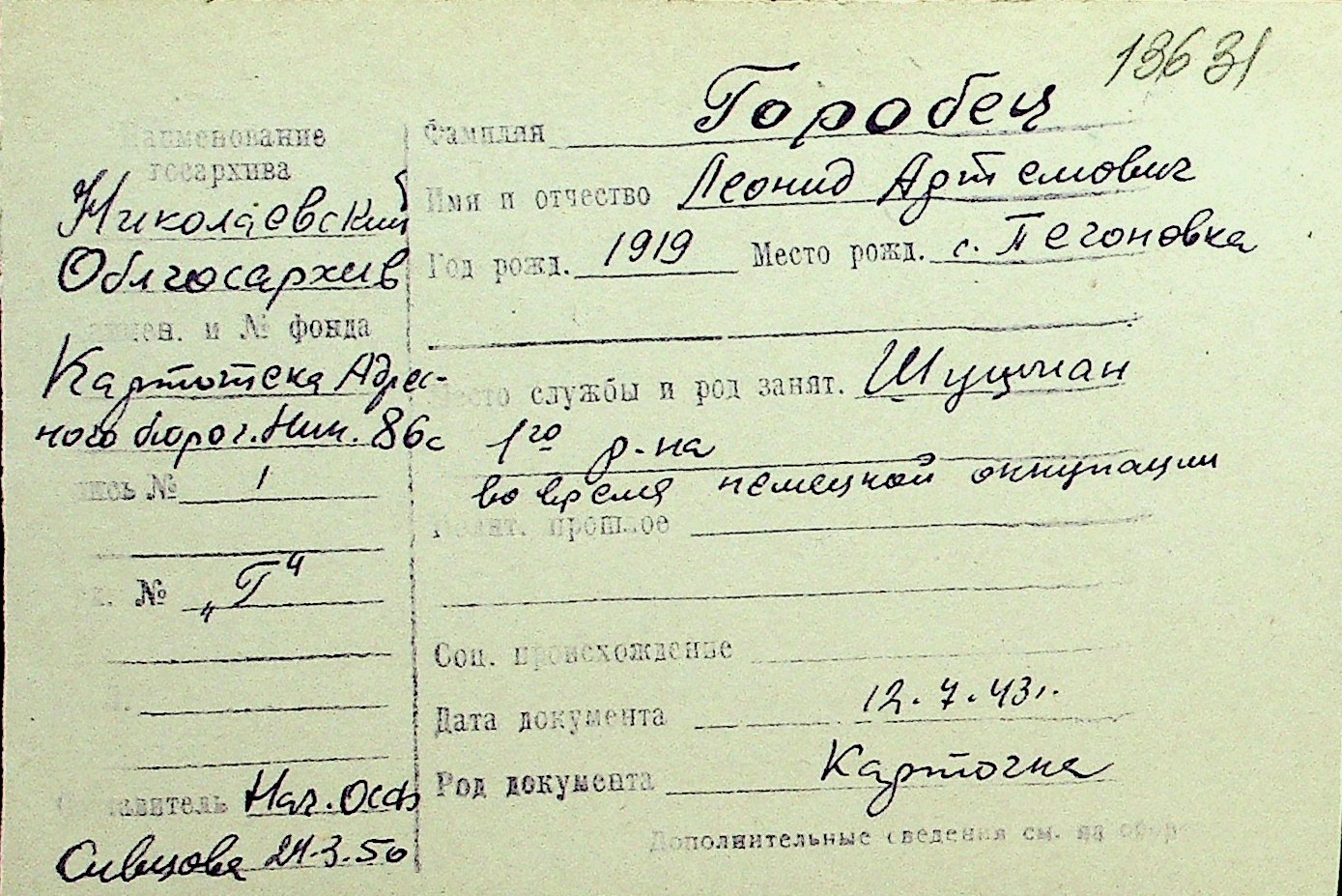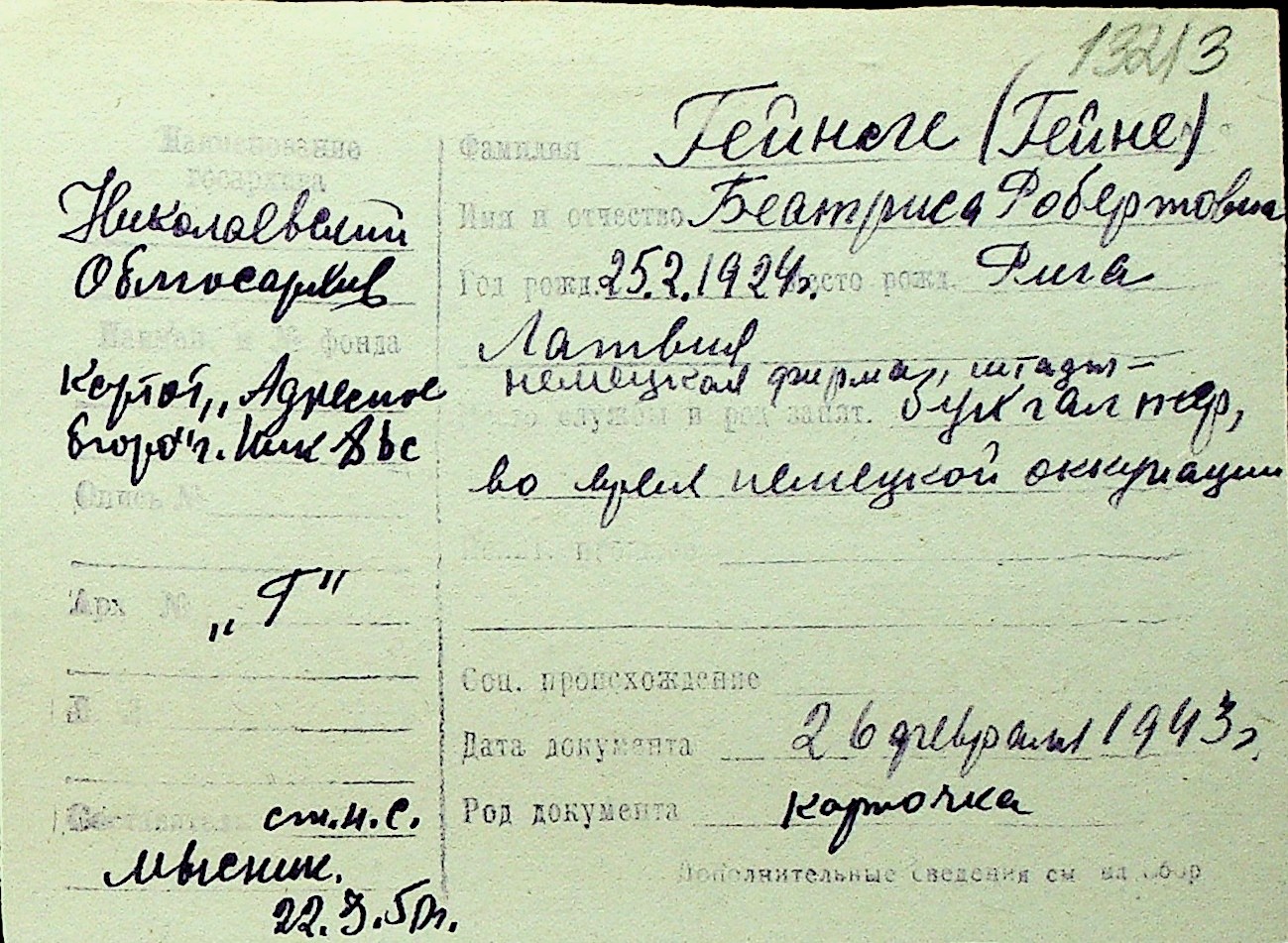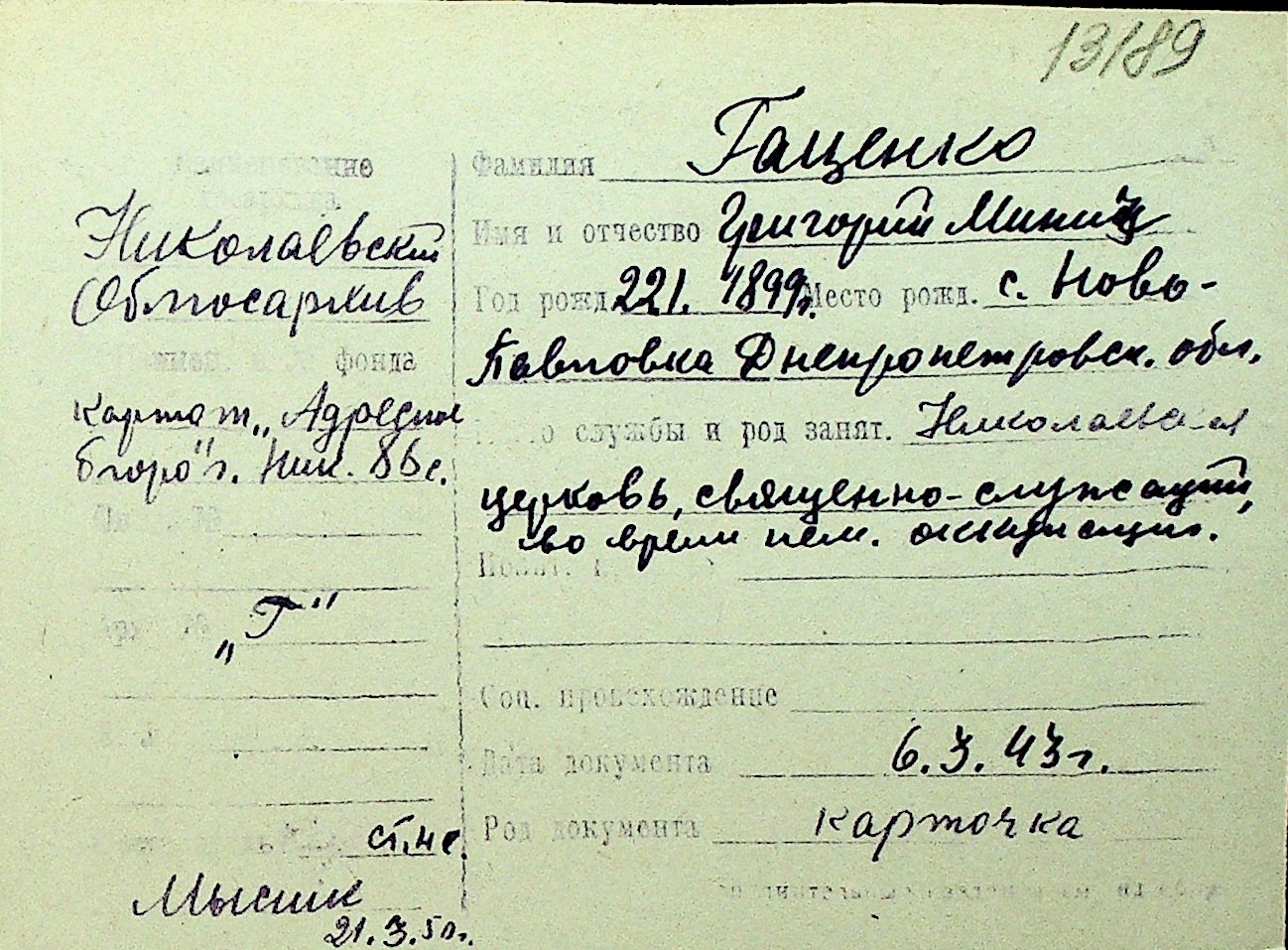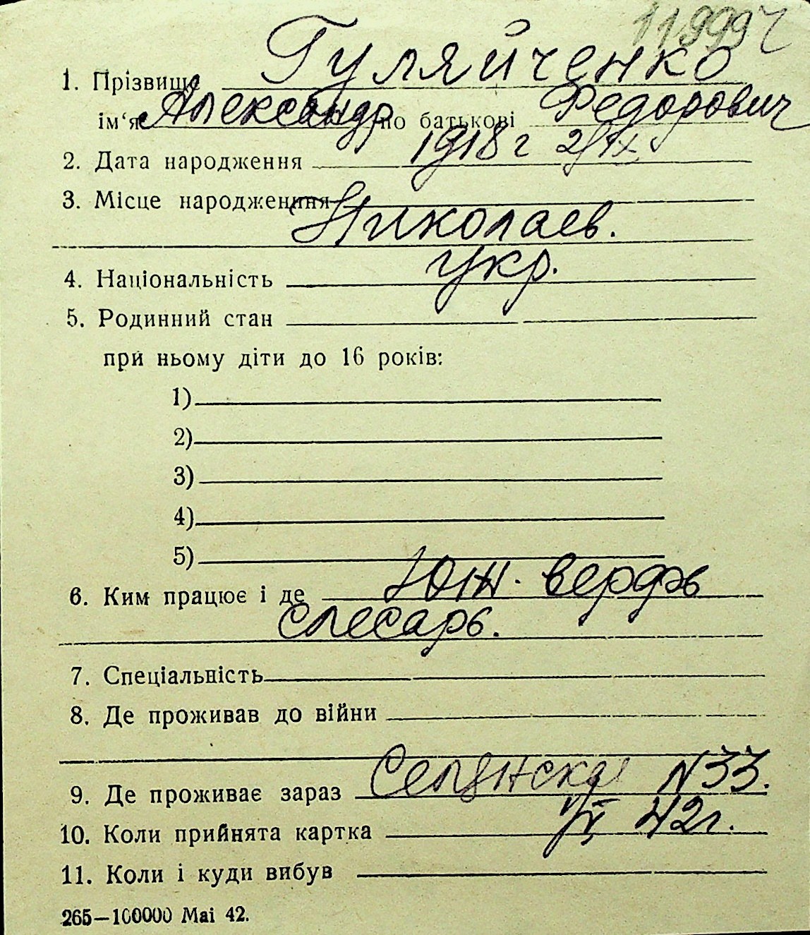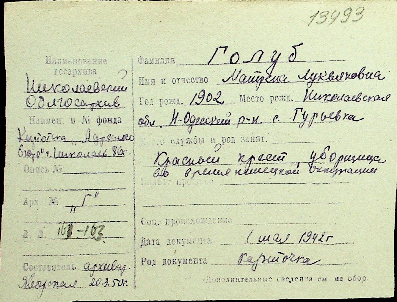• • Перелік карток до фонду № Н-1016