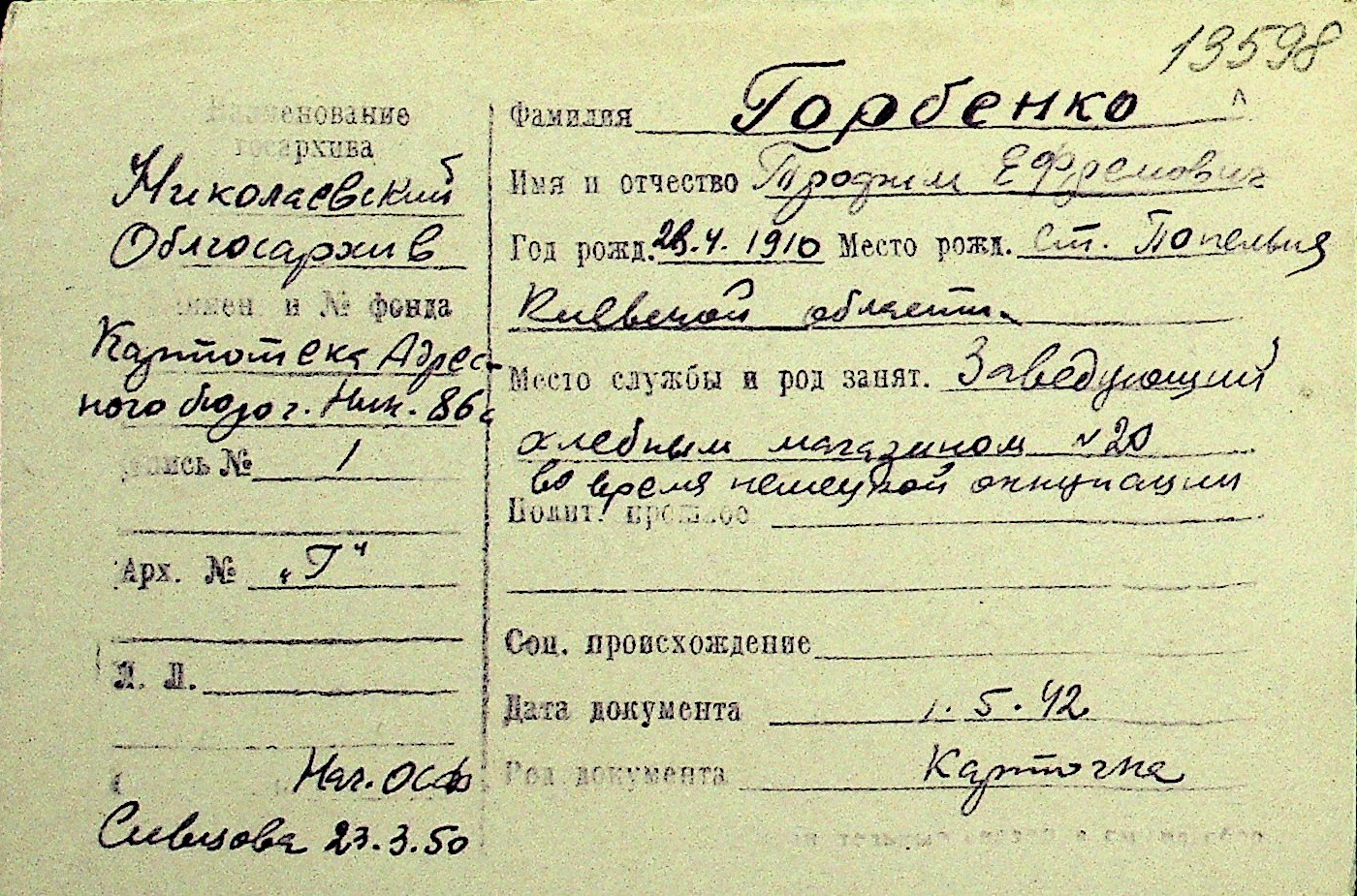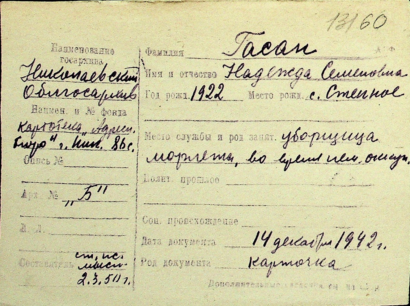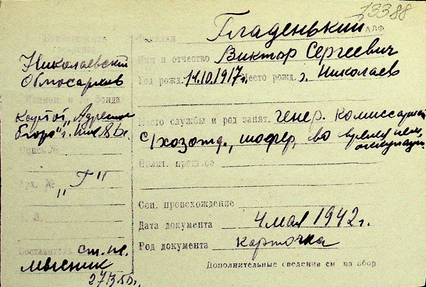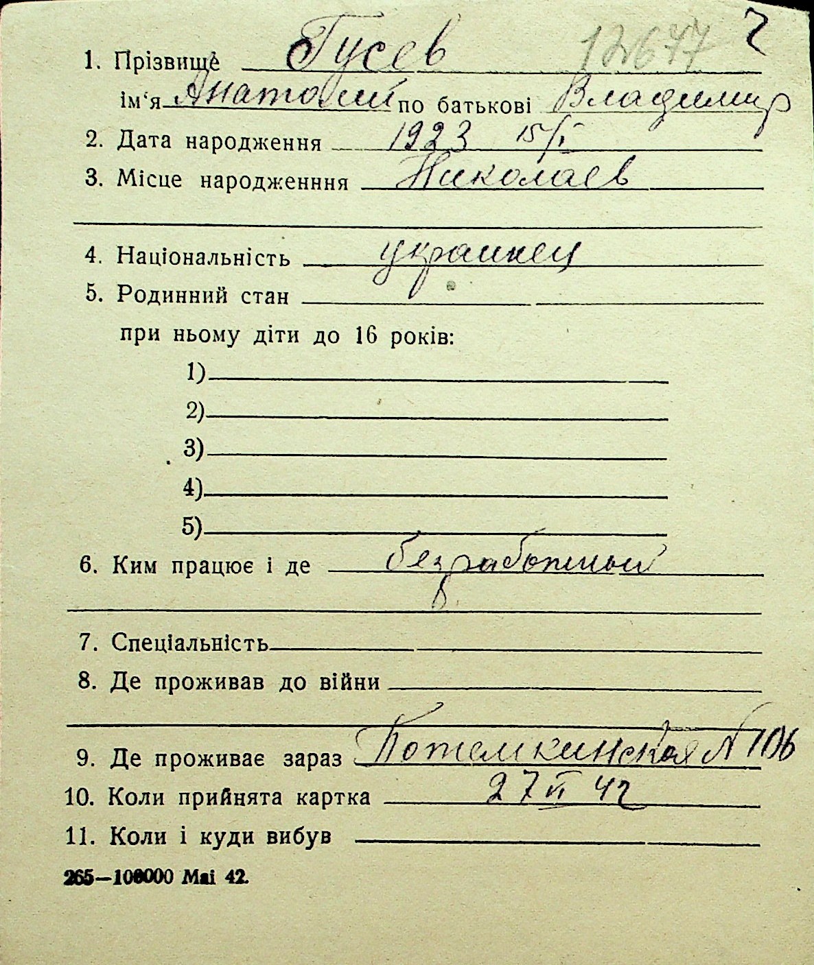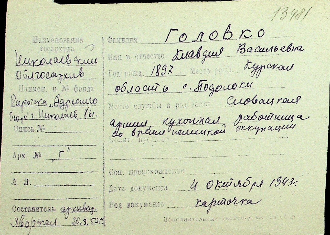 • • Перелік карток до фонду № Н-1016