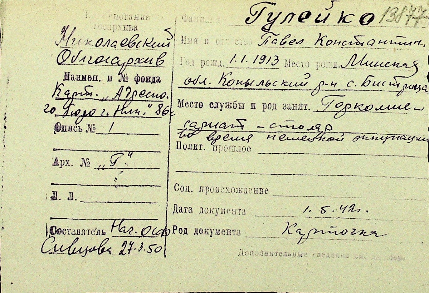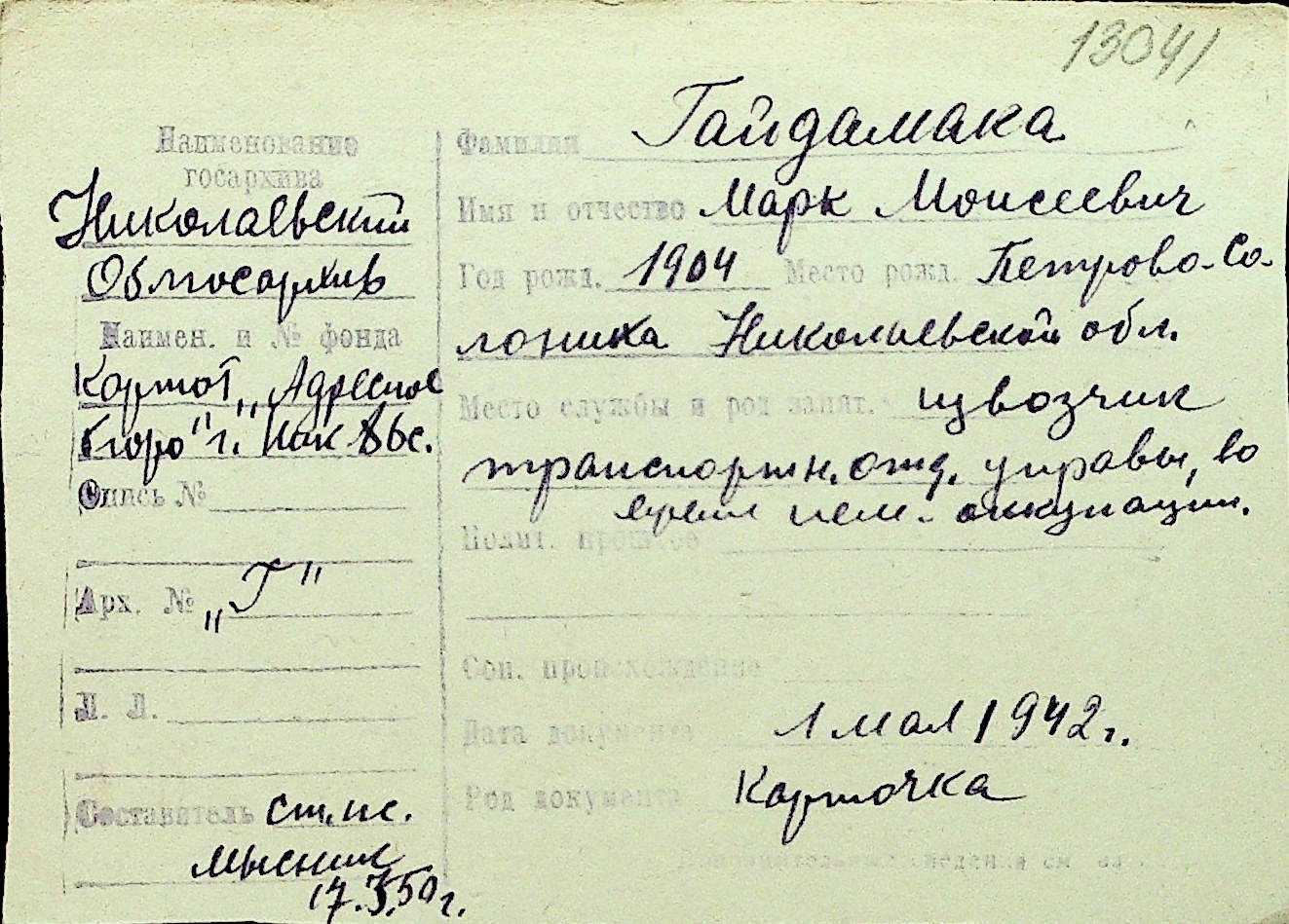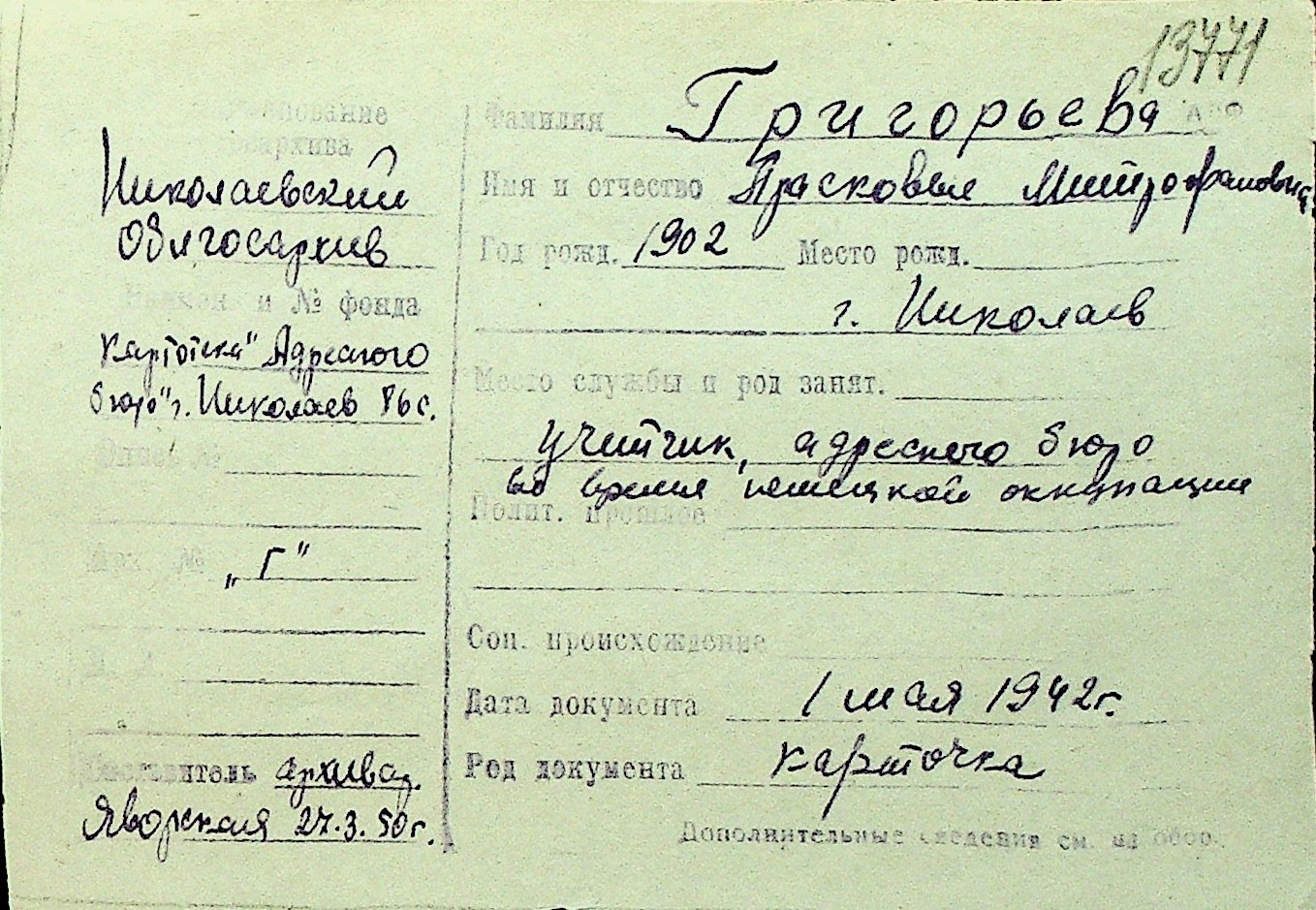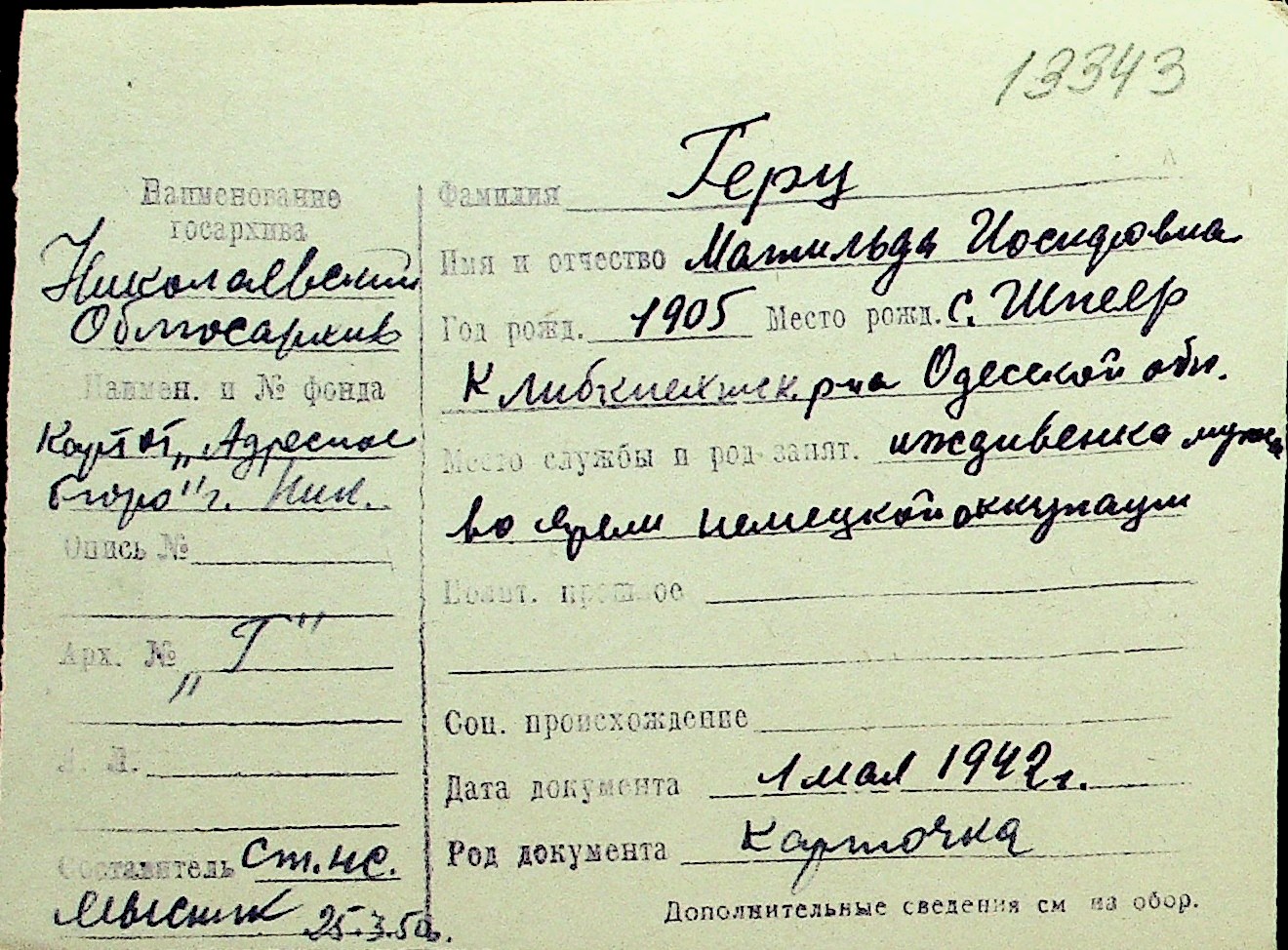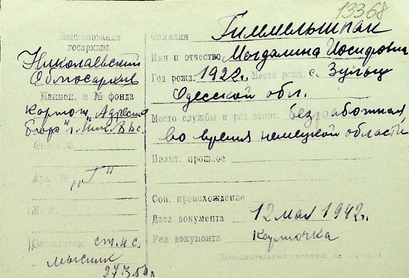 • • Перелік карток до фонду № Н-1016